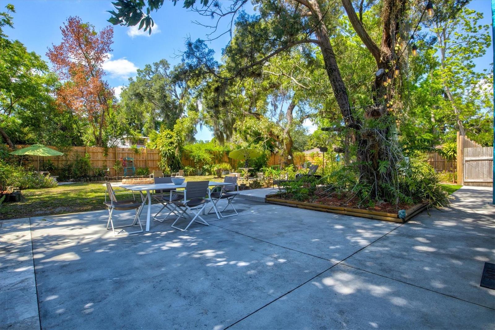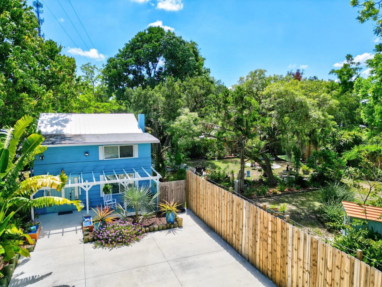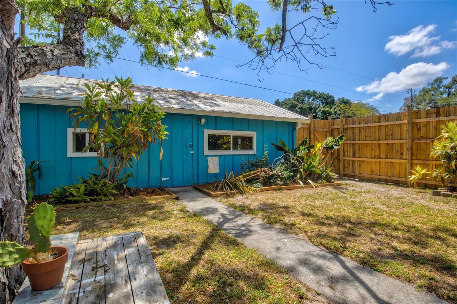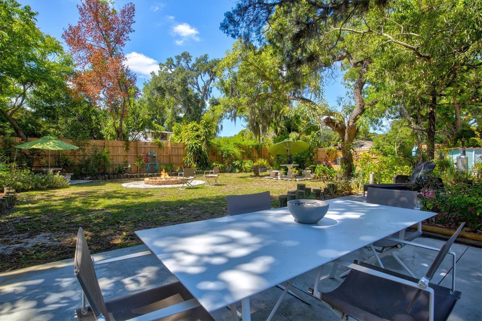 Welcome to this beautifully restored 1940 farmhouse nestled on approximately half an acre of serene Sarasota City living with a country flair. This charming 2-storyTURNKEY FURNISHED Home offers 3 bedrooms, 1.5 baths, and a unique blend of vintage character and modern amenities. As you step inside, you'll find a bedroom and bath conveniently located on the first floor, providing flexibility and accessibility. The property is enclosed within an enchanting illuminated private gated compound, offering tranquility and privacy on a quiet dead-end street. Ideal for multigenerational living or as a family compound, this home boasts unlimited potential for expansion. With multiple outbuildings and room to grow, envision adding a tiny house, RV parking, boat parking or converting the oversized 2-car garage to suit your needs. Imagine having a front driveway that can accommodate 9 vehicles The property's zoning and lack of deed restrictions present a canvas for creating a Zen retreat or other inspired spaces. Experience true relaxation with an enclosed private spa and outdoor massage room, surrounded by lush landscaping reminiscent of Selby Gardens. Over 200 plants and fruit trees—including pineapple, bananas, guava, tamarind, avocado, mango, and more—adorn the landscape, creating a tropical oasis. With $80,000 invested in new landscaping and over 400 flowering bulbs, the grounds are a horticultural delight. This property offers exceptional value with recent renovations, including a new well pump and filtration system, a 12x14 workshop building, insulated and drywalled interiors, refinished original floors, Enjoy "peace of mind" and lower Insurance Costs with Hurricane shutters for the home. Cedar Built-in Closet, and a stunningly renovated kitchen with imported Italian tile, quartz counters, stainless steel appliances, gas stove, and new cabinets. A brand-new metal roof, hurricane windows, and poured wheelchair-accessible sidewalks ensure durability and accessibility. Whether you seek a private sanctuary or an income-generating opportunity through VRBO, this farmhouse invites you to embrace the best of Sarasota living. With NO FLOOD insurance required, NO DEED RESTRICTIONS, NO HOA fees peace of mind and endless possibilities await. This property boasts a 12-foot round swimming pool surrounded by a wood pool deck, perfect for relaxation and enjoyment on sunny days. Step onto the outdoor patios adorned with imported Italian crystal tile, creating elegant and inviting spaces for outdoor dining, lounging, or simply soaking in the beauty of your surroundings. Whether you're hosting gatherings or seeking a peaceful retreat, these patio areas offer versatility and charm. As evening falls, gather around the firepit area to unwind under the stars, creating cherished memories with family and friends. This property truly is a must-see to believe! Immerse yourself in the tranquility and beauty of this unique farmhouse and its lush surroundings. Schedule a showing today to experience the full extent of what this exceptional home has to offer!
