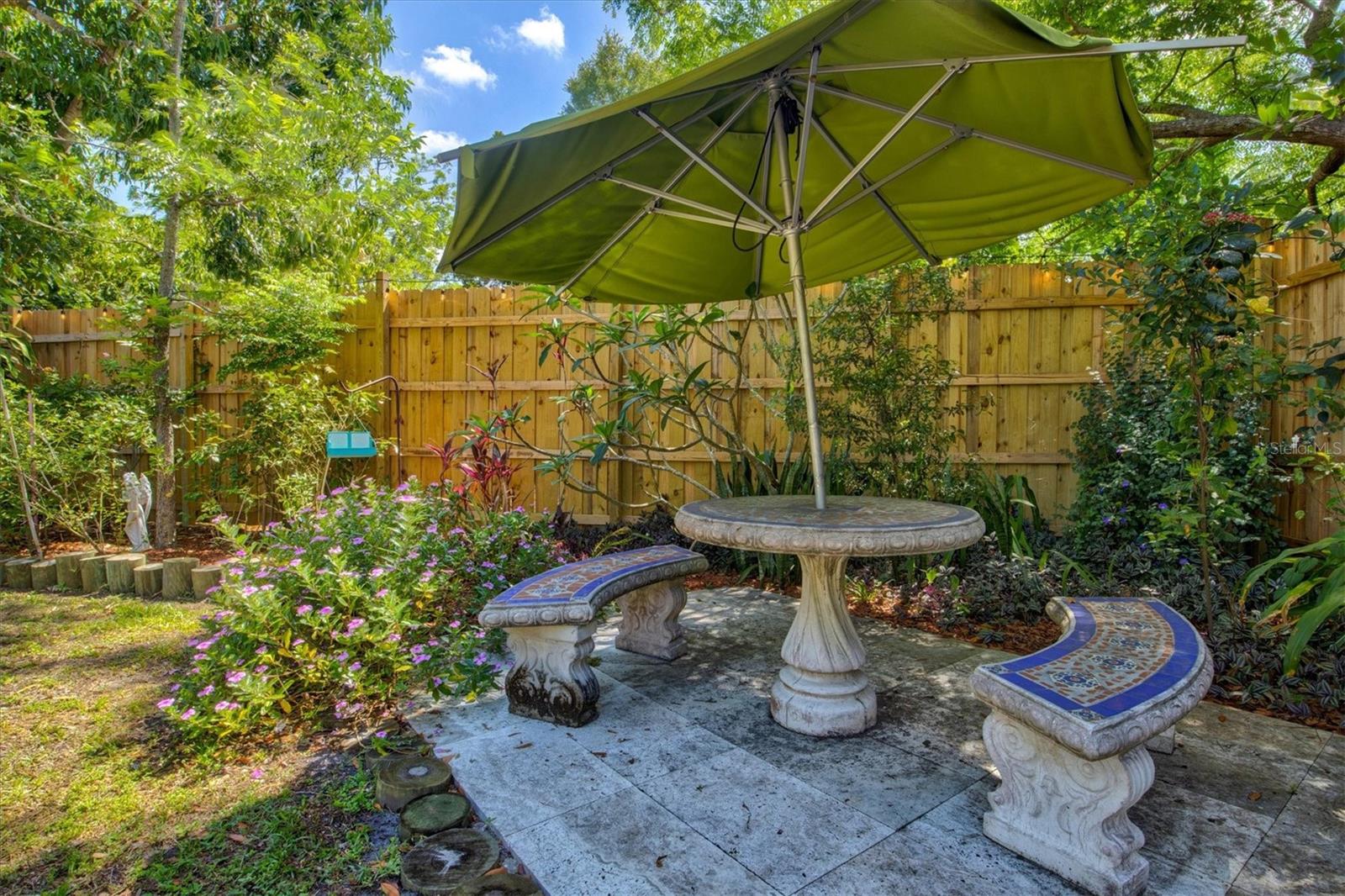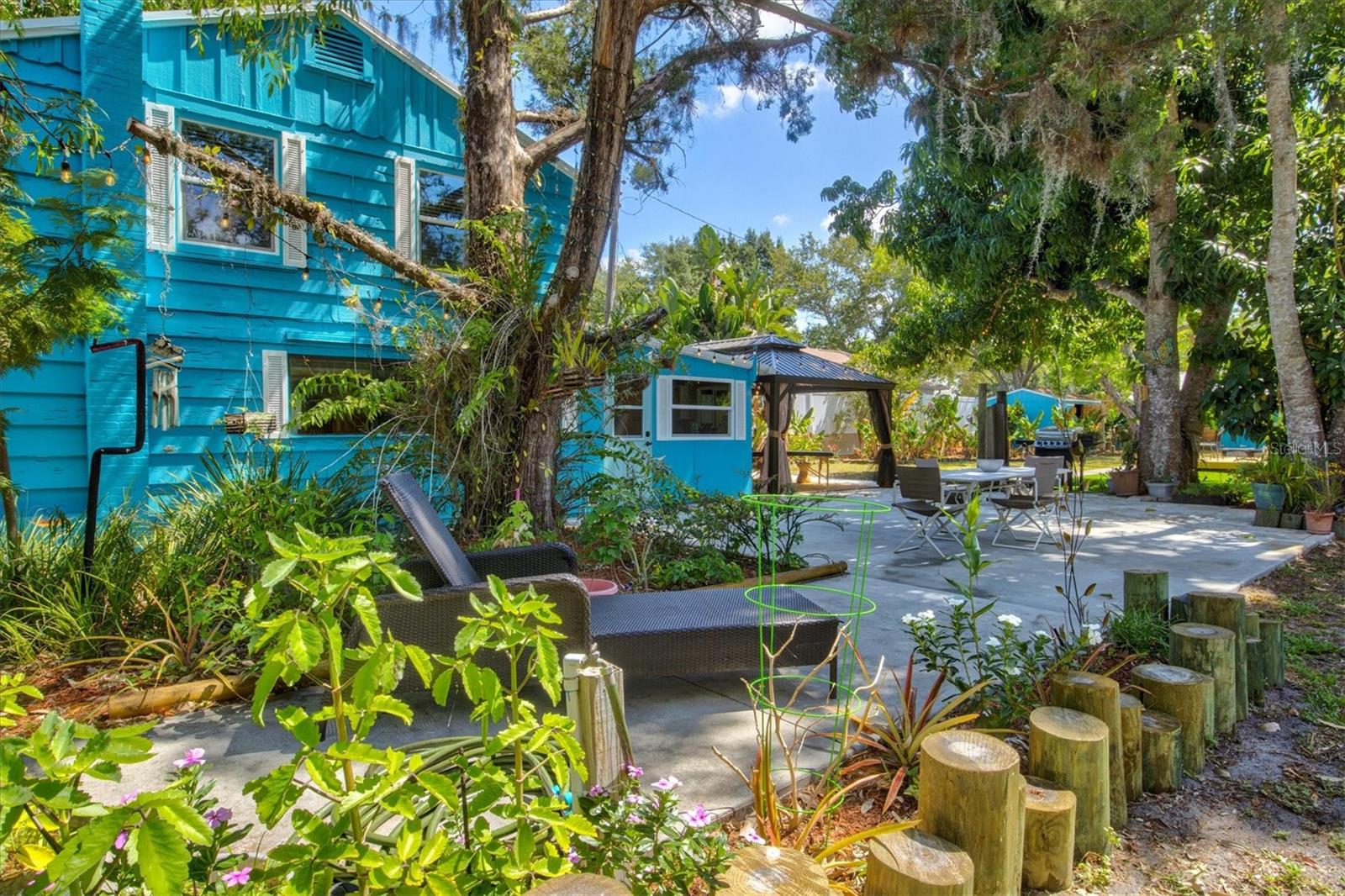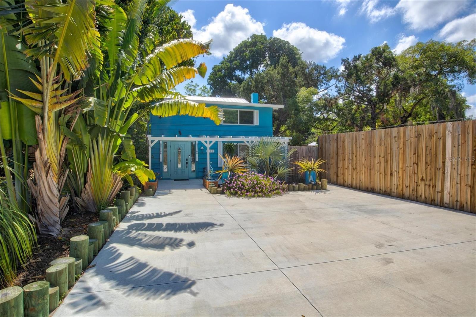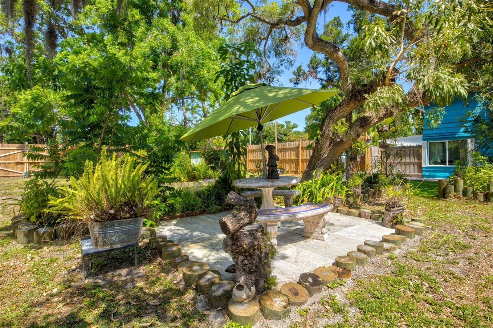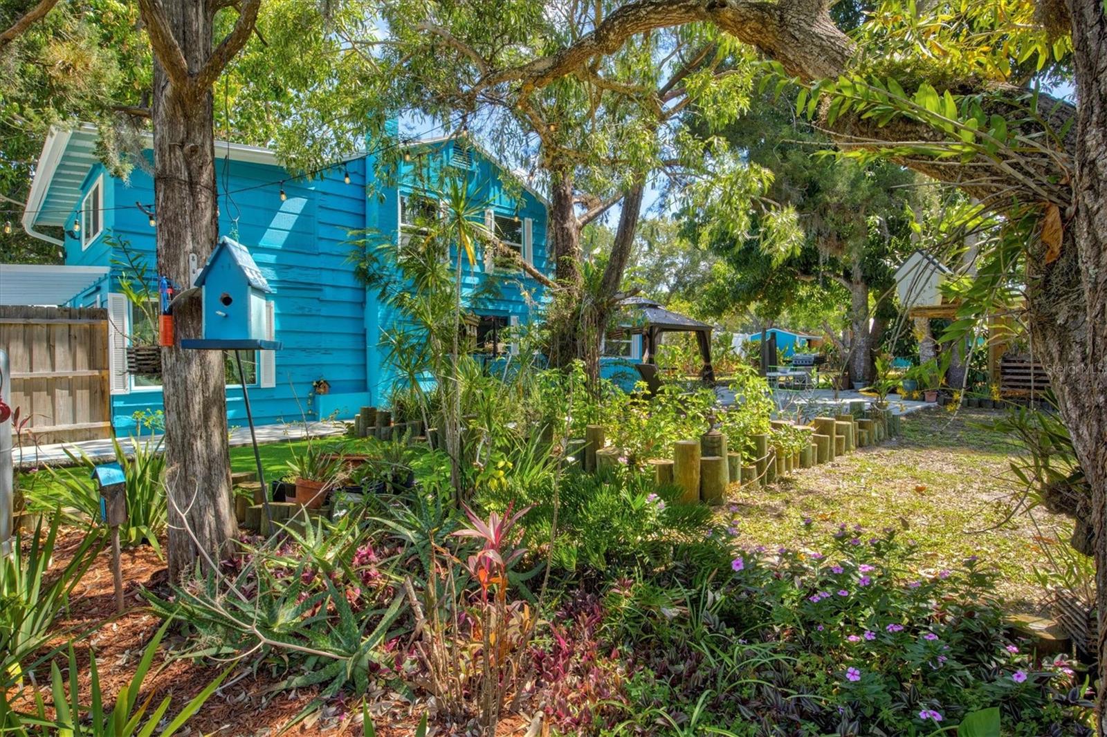 Welcome to this beautifully restored 1940 farmhouse nestled on approximately half an acre of serene Sarasota City living with a country flair. This charming 2-storyTURNKEY FURNISHED Home offers 3 bedrooms, 1.5 baths, and a unique blend of vintage character and modern amenities. As you step inside, you'll find a bedroom and bath conveniently located on the first floor, providing flexibility and accessibility. The property is enclosed within an enchanting illuminated private gated compound, offering tranquility and privacy on a quiet dead-end street. Ideal for multigenerational living or as a family compound, this home boasts unlimited potential for expansion. With multiple outbuildings and room to grow, envision adding a tiny house, RV parking, boat parking or converting the oversized 2-car garage to suit your needs. Imagine having a front driveway that can accommodate 9 vehicles The property's zoning and lack of deed restrictions present a canvas for creating a Zen retreat or other inspired spaces. Experience true relaxation with an enclosed private spa and outdoor massage room, surrounded by lush landscaping reminiscent of Selby Gardens. Over 200 plants and fruit trees—including pineapple, bananas, guava, tamarind, avocado, mango, and more—adorn the landscape, creating a tropical oasis. With $80,000 invested in new landscaping and over 400 flowering bulbs, the grounds are a horticultural delight. This property offers exceptional value with recent renovations, including a new well pump and filtration system, a 12x14 workshop building, insulated and drywalled interiors, refinished original floors, Enjoy "peace of mind" and lower Insurance Costs with Hurricane shutters for the home. Cedar Built-in Closet, and a stunningly renovated kitchen with imported Italian tile, quartz counters, stainless steel appliances, gas stove, and new cabinets. A brand-new metal roof, hurricane windows, and poured wheelchair-accessible sidewalks ensure durability and accessibility. Whether you seek a private sanctuary or an income-generating opportunity through VRBO, this farmhouse invites you to embrace the best of Sarasota living. With NO FLOOD insurance required, NO DEED RESTRICTIONS, NO HOA fees peace of mind and endless possibilities await. This property boasts a 12-foot round swimming pool surrounded by a wood pool deck, perfect for relaxation and enjoyment on sunny days. Step onto the outdoor patios adorned with imported Italian crystal tile, creating elegant and inviting spaces for outdoor dining, lounging, or simply soaking in the beauty of your surroundings. Whether you're hosting gatherings or seeking a peaceful retreat, these patio areas offer versatility and charm. As evening falls, gather around the firepit area to unwind under the stars, creating cherished memories with family and friends. This property truly is a must-see to believe! Immerse yourself in the tranquility and beauty of this unique farmhouse and its lush surroundings. Schedule a showing today to experience the full extent of what this exceptional home has to offer!