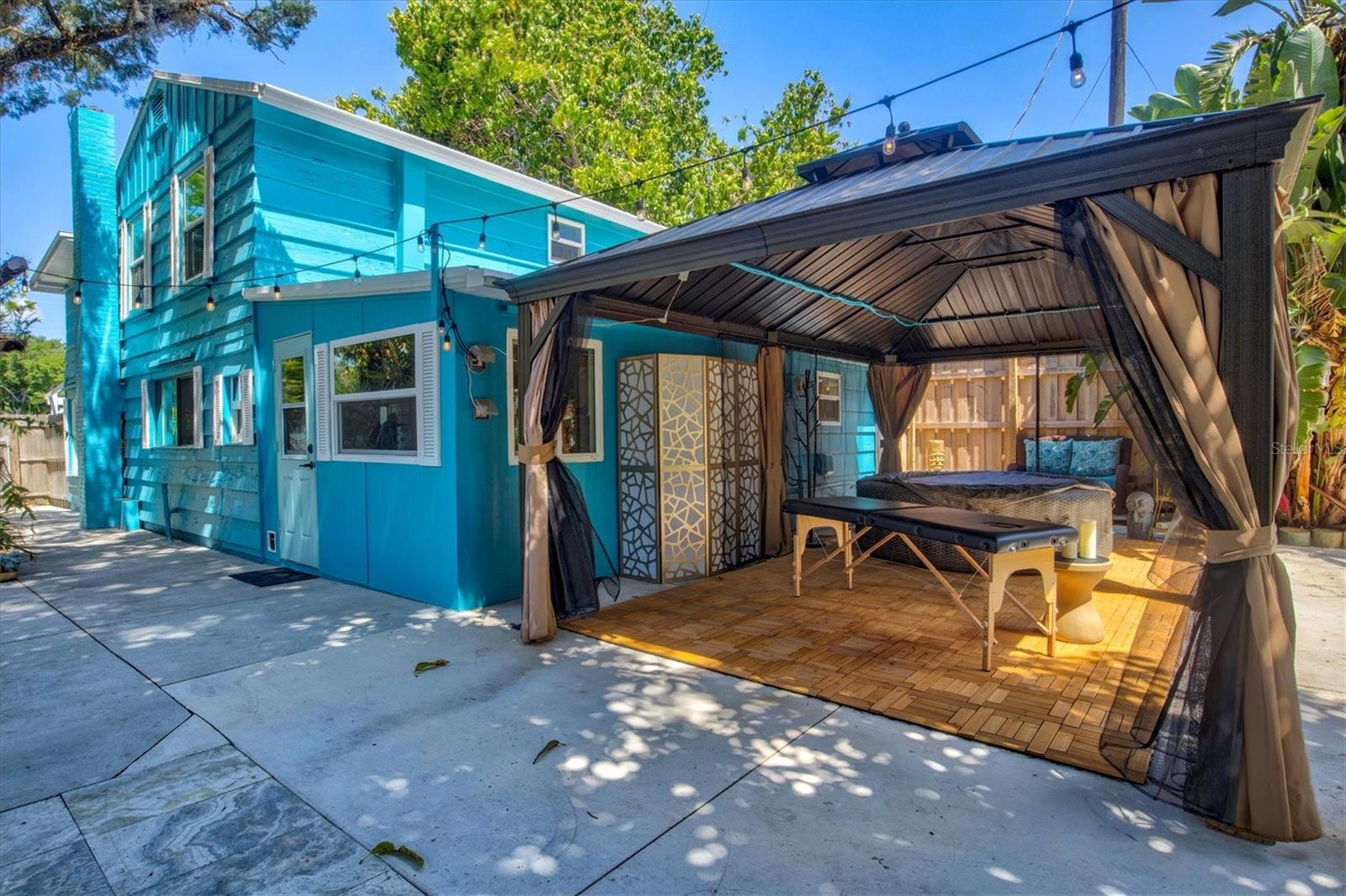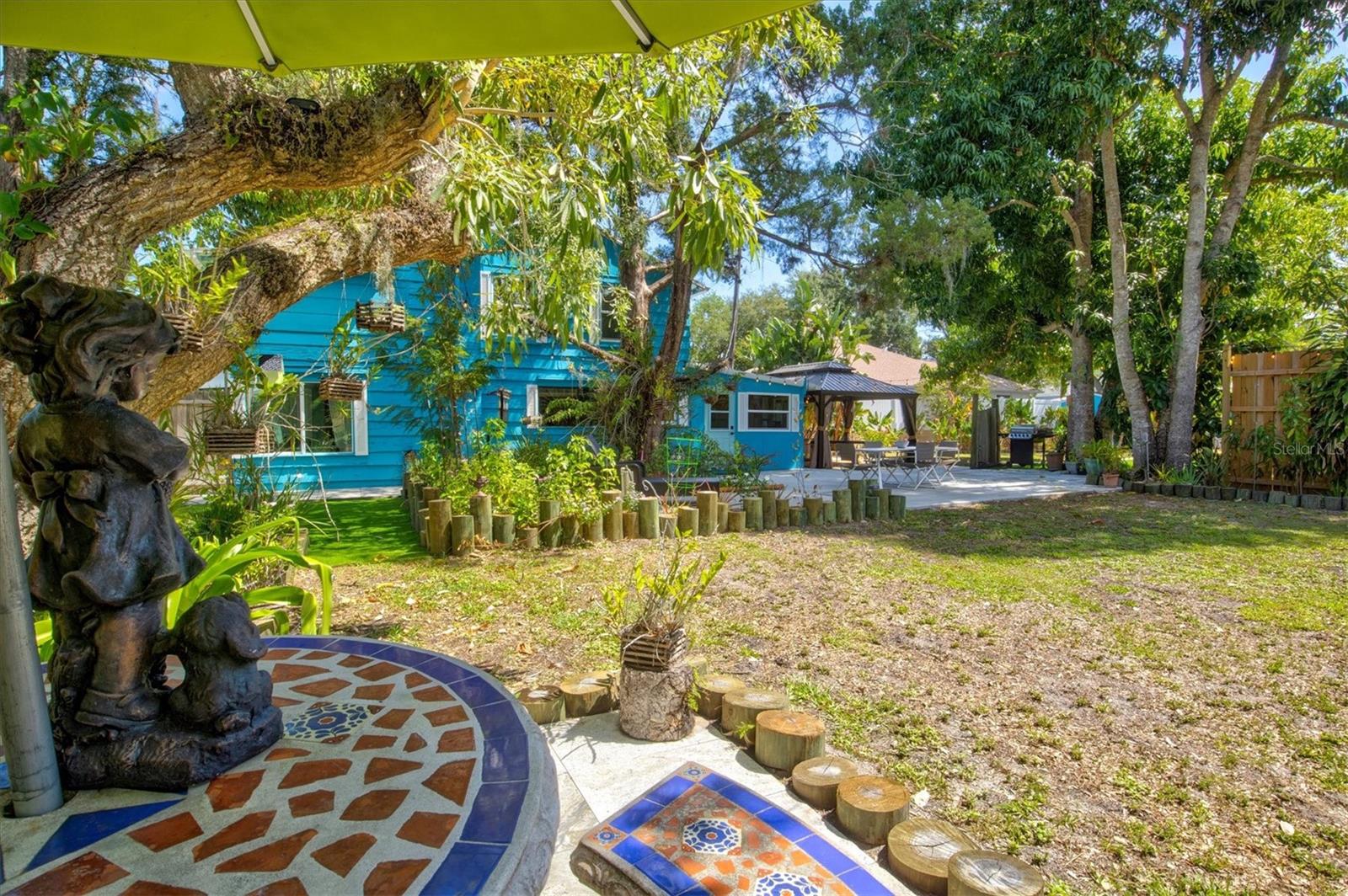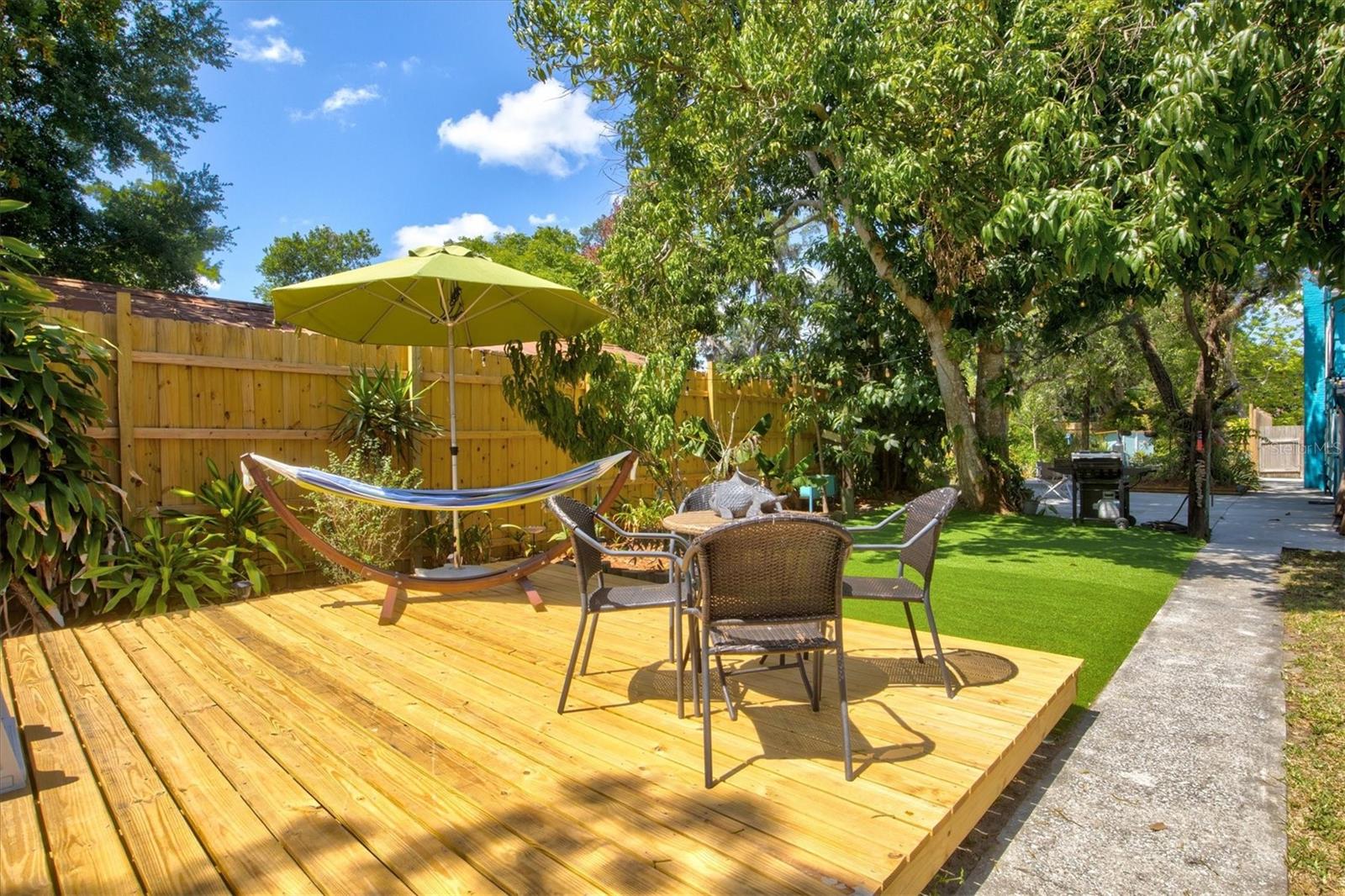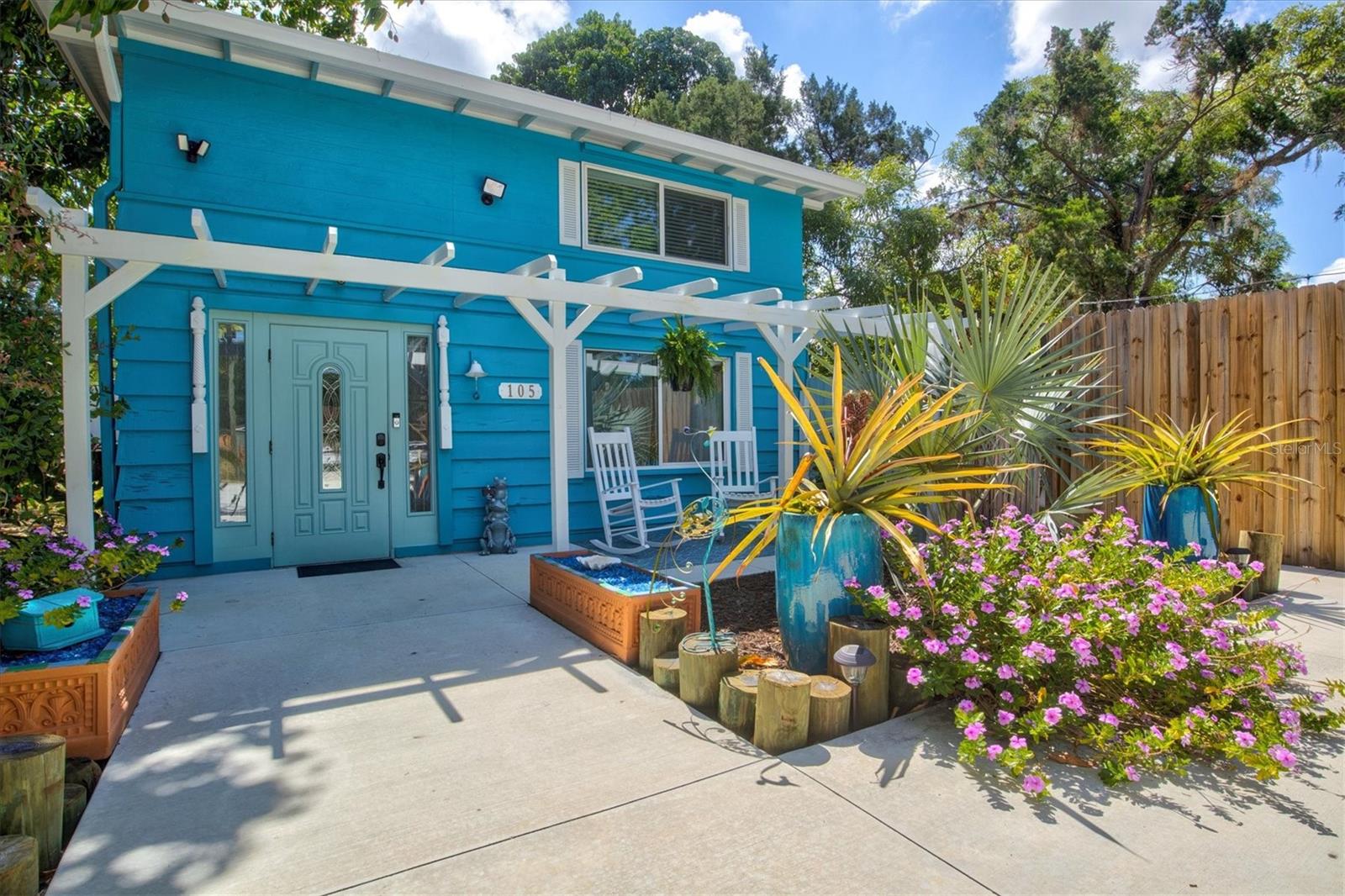 Welcome to this beautifully restored 1940 farmhouse nestled on approximately half an acre of serene Sarasota City living with a country flair. This charming 2-storyTURNKEY FURNISHED Home offers 3 bedrooms, 1.5 baths, and a unique blend of vintage character and modern amenities. As you step inside, you'll find a bedroom and bath conveniently located on the first floor, providing flexibility and accessibility. The property is enclosed within an enchanting illuminated private gated compound, offering tranquility and privacy on a quiet dead-end street. Ideal for multigenerational living or as a family compound, this home boasts unlimited potential for expansion. With multiple outbuildings and room to grow, envision adding a tiny house, RV parking, boat parking or converting the oversized 2-car garage to suit your needs. Imagine having a front driveway that can accommodate 9 vehicles The property's zoning and lack of deed restrictions present a canvas for creating a Zen retreat or other inspired spaces. Experience true relaxation with an enclosed private spa and outdoor massage room, surrounded by lush landscaping reminiscent of Selby Gardens. Over 200 plants and fruit trees—including pineapple, bananas, guava, tamarind, avocado, mango, and more—adorn the landscape, creating a tropical oasis. With $80,000 invested in new landscaping and over 400 flowering bulbs, the grounds are a horticultural delight. This property offers exceptional value with recent renovations, including a new well pump and filtration system, a 12x14 workshop building, insulated and drywalled interiors, refinished original floors, Enjoy "peace of mind" and lower Insurance Costs with Hurricane shutters for the home. Cedar Built-in Closet, and a stunningly renovated kitchen with imported Italian tile, quartz counters, stainless steel appliances, gas stove, and new cabinets. A brand-new metal roof, hurricane windows, and poured wheelchair-accessible sidewalks ensure durability and accessibility. Whether you seek a private sanctuary or an income-generating opportunity through VRBO, this farmhouse invites you to embrace the best of Sarasota living. With NO FLOOD insurance required, NO DEED RESTRICTIONS, NO HOA fees peace of mind and endless possibilities await. This property boasts a 12-foot round swimming pool surrounded by a wood pool deck, perfect for relaxation and enjoyment on sunny days. Step onto the outdoor patios adorned with imported Italian crystal tile, creating elegant and inviting spaces for outdoor dining, lounging, or simply soaking in the beauty of your surroundings. Whether you're hosting gatherings or seeking a peaceful retreat, these patio areas offer versatility and charm. As evening falls, gather around the firepit area to unwind under the stars, creating cherished memories with family and friends. This property truly is a must-see to believe! Immerse yourself in the tranquility and beauty of this unique farmhouse and its lush surroundings. Schedule a showing today to experience the full extent of what this exceptional home has to offer!