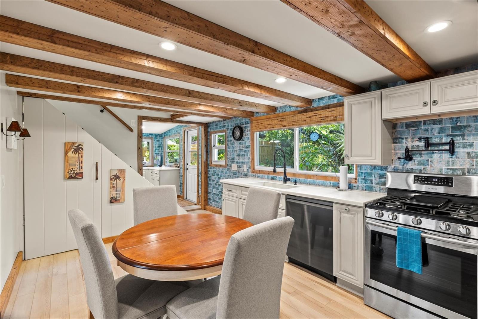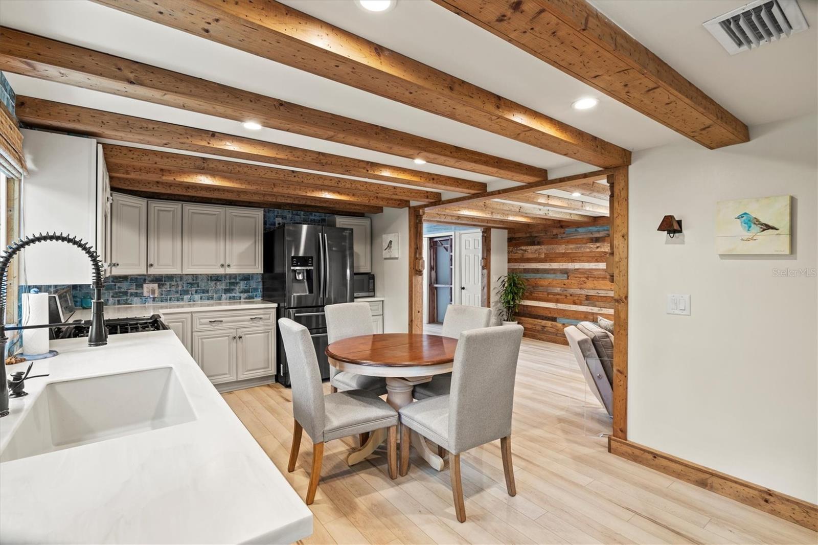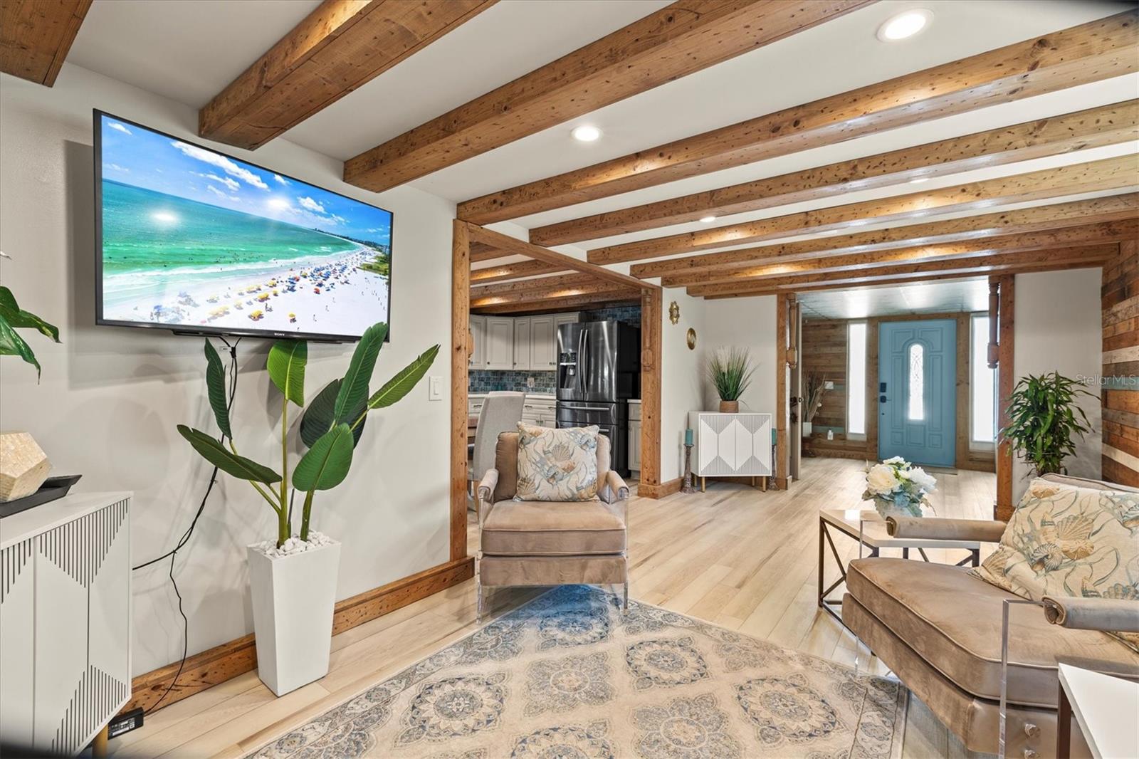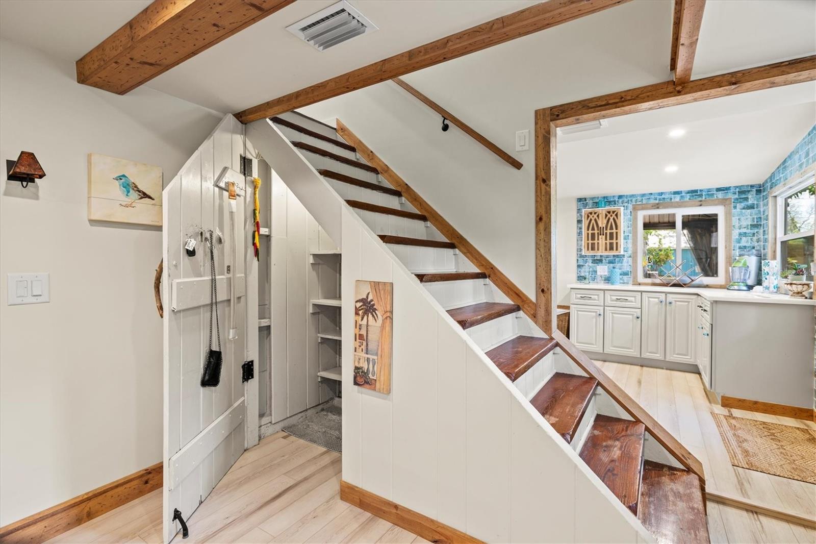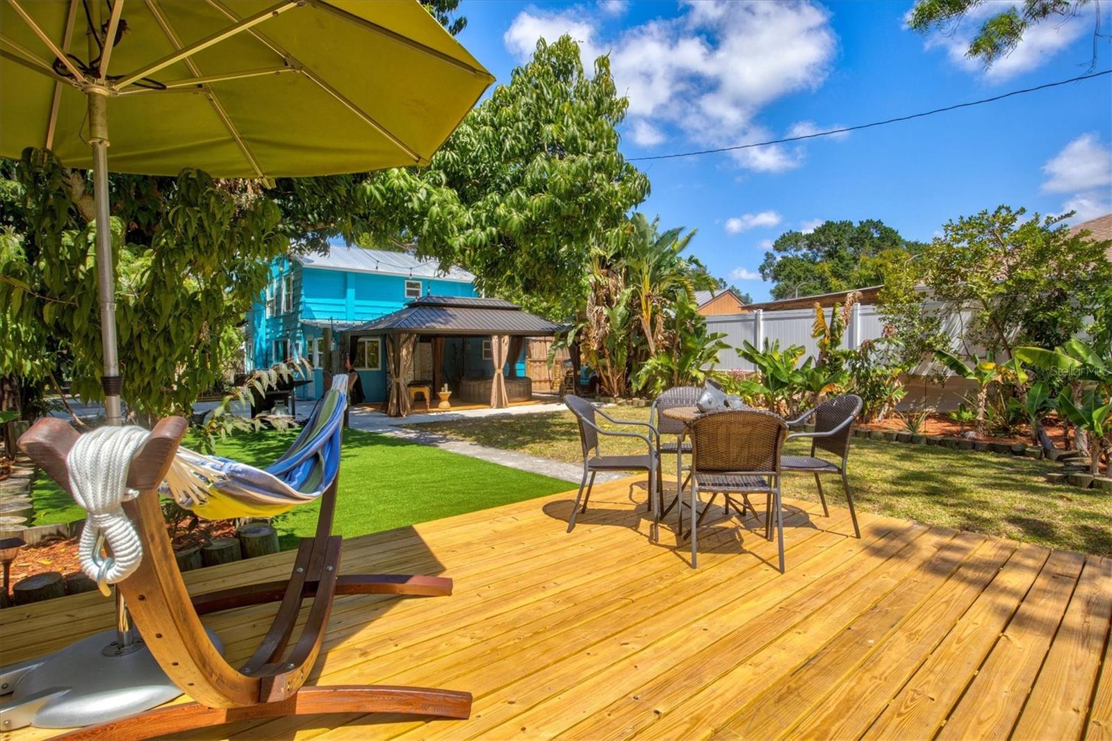 Welcome to this beautifully restored 1940 farmhouse nestled on approximately half an acre of serene Sarasota City living with a country flair. This charming 2-storyTURNKEY FURNISHED Home offers 3 bedrooms, 1.5 baths, and a unique blend of vintage character and modern amenities. As you step inside, you'll find a bedroom and bath conveniently located on the first floor, providing flexibility and accessibility. The property is enclosed within an enchanting illuminated private gated compound, offering tranquility and privacy on a quiet dead-end street. Ideal for multigenerational living or as a family compound, this home boasts unlimited potential for expansion. With multiple outbuildings and room to grow, envision adding a tiny house, RV parking, boat parking or converting the oversized 2-car garage to suit your needs. Imagine having a front driveway that can accommodate 9 vehicles The property's zoning and lack of deed restrictions present a canvas for creating a Zen retreat or other inspired spaces. Experience true relaxation with an enclosed private spa and outdoor massage room, surrounded by lush landscaping reminiscent of Selby Gardens. Over 200 plants and fruit trees—including pineapple, bananas, guava, tamarind, avocado, mango, and more—adorn the landscape, creating a tropical oasis. With $80,000 invested in new landscaping and over 400 flowering bulbs, the grounds are a horticultural delight. This property offers exceptional value with recent renovations, including a new well pump and filtration system, a 12x14 workshop building, insulated and drywalled interiors, refinished original floors, Enjoy "peace of mind" and lower Insurance Costs with Hurricane shutters for the home. Cedar Built-in Closet, and a stunningly renovated kitchen with imported Italian tile, quartz counters, stainless steel appliances, gas stove, and new cabinets. A brand-new metal roof, hurricane windows, and poured wheelchair-accessible sidewalks ensure durability and accessibility. Whether you seek a private sanctuary or an income-generating opportunity through VRBO, this farmhouse invites you to embrace the best of Sarasota living. With NO FLOOD insurance required, NO DEED RESTRICTIONS, NO HOA fees peace of mind and endless possibilities await. This property boasts a 12-foot round swimming pool surrounded by a wood pool deck, perfect for relaxation and enjoyment on sunny days. Step onto the outdoor patios adorned with imported Italian crystal tile, creating elegant and inviting spaces for outdoor dining, lounging, or simply soaking in the beauty of your surroundings. Whether you're hosting gatherings or seeking a peaceful retreat, these patio areas offer versatility and charm. As evening falls, gather around the firepit area to unwind under the stars, creating cherished memories with family and friends. This property truly is a must-see to believe! Immerse yourself in the tranquility and beauty of this unique farmhouse and its lush surroundings. Schedule a showing today to experience the full extent of what this exceptional home has to offer!