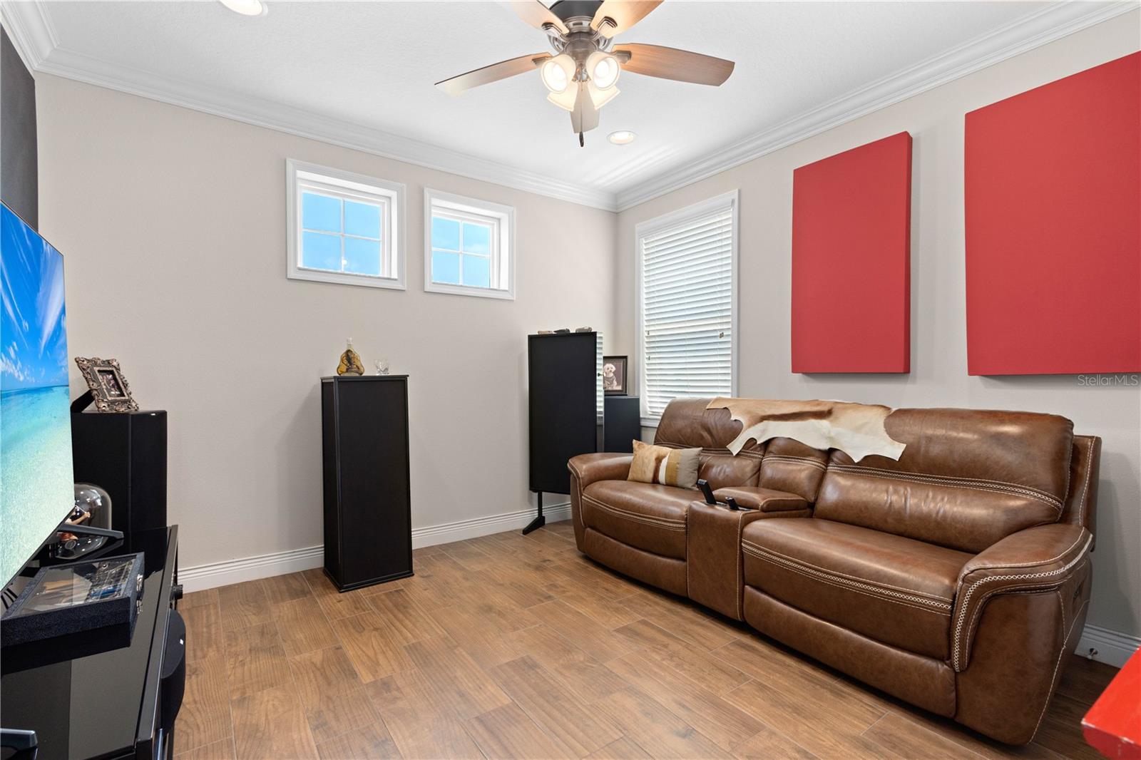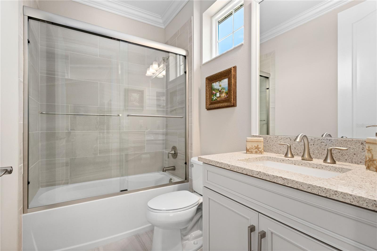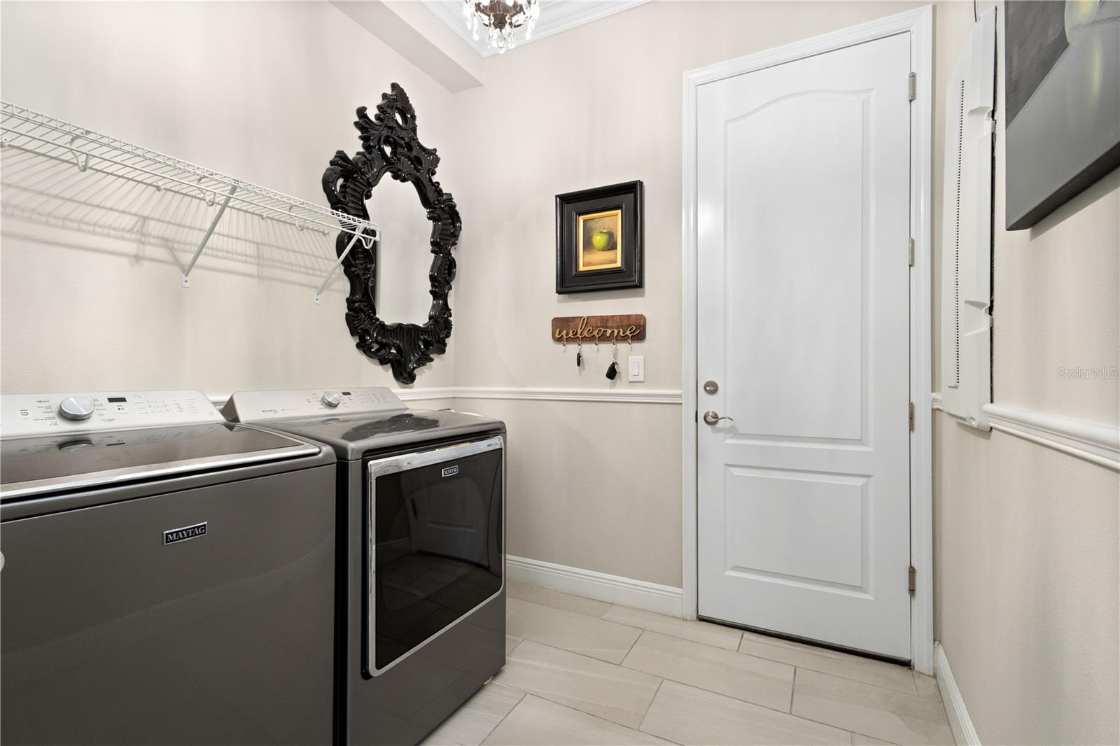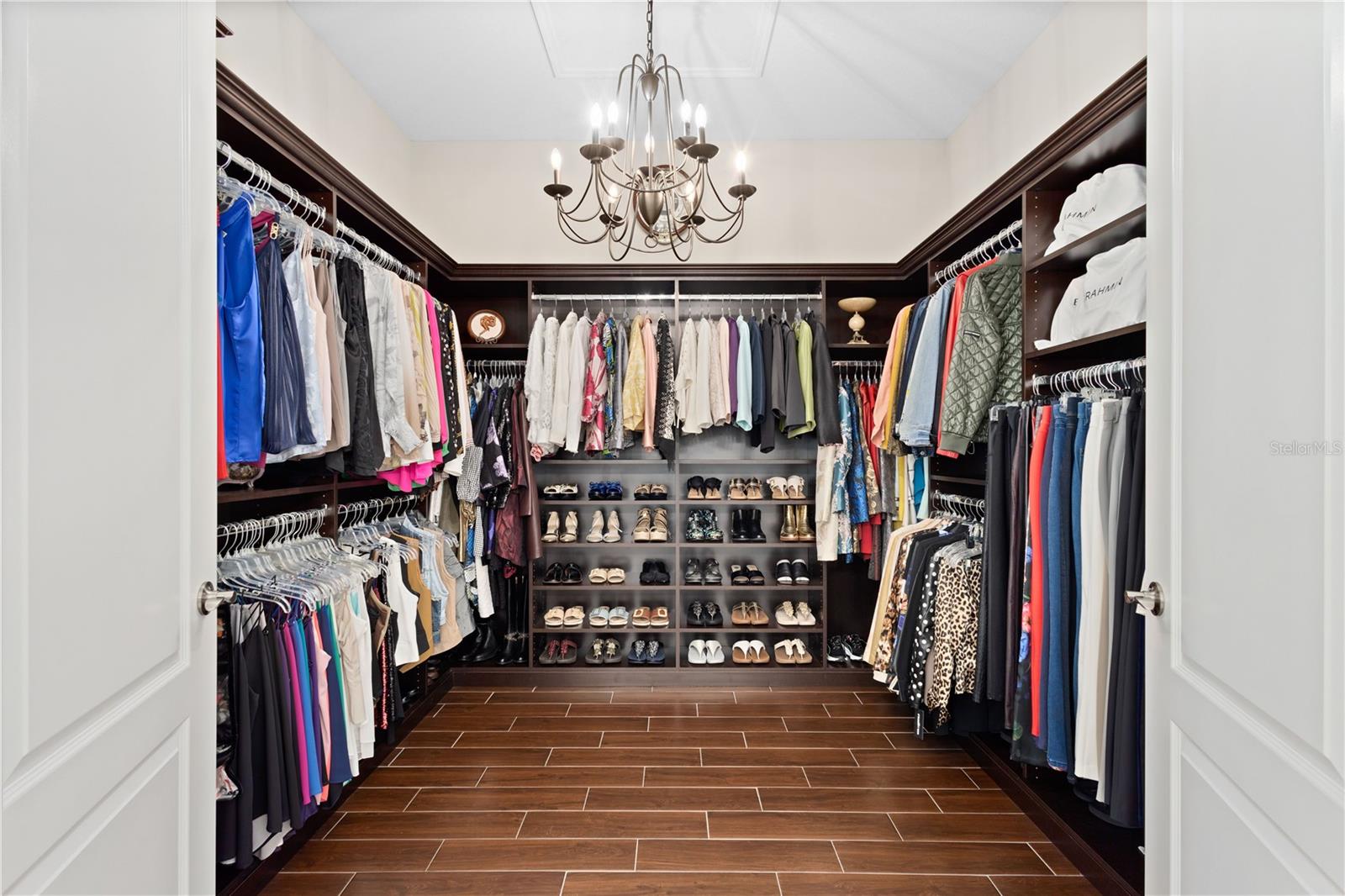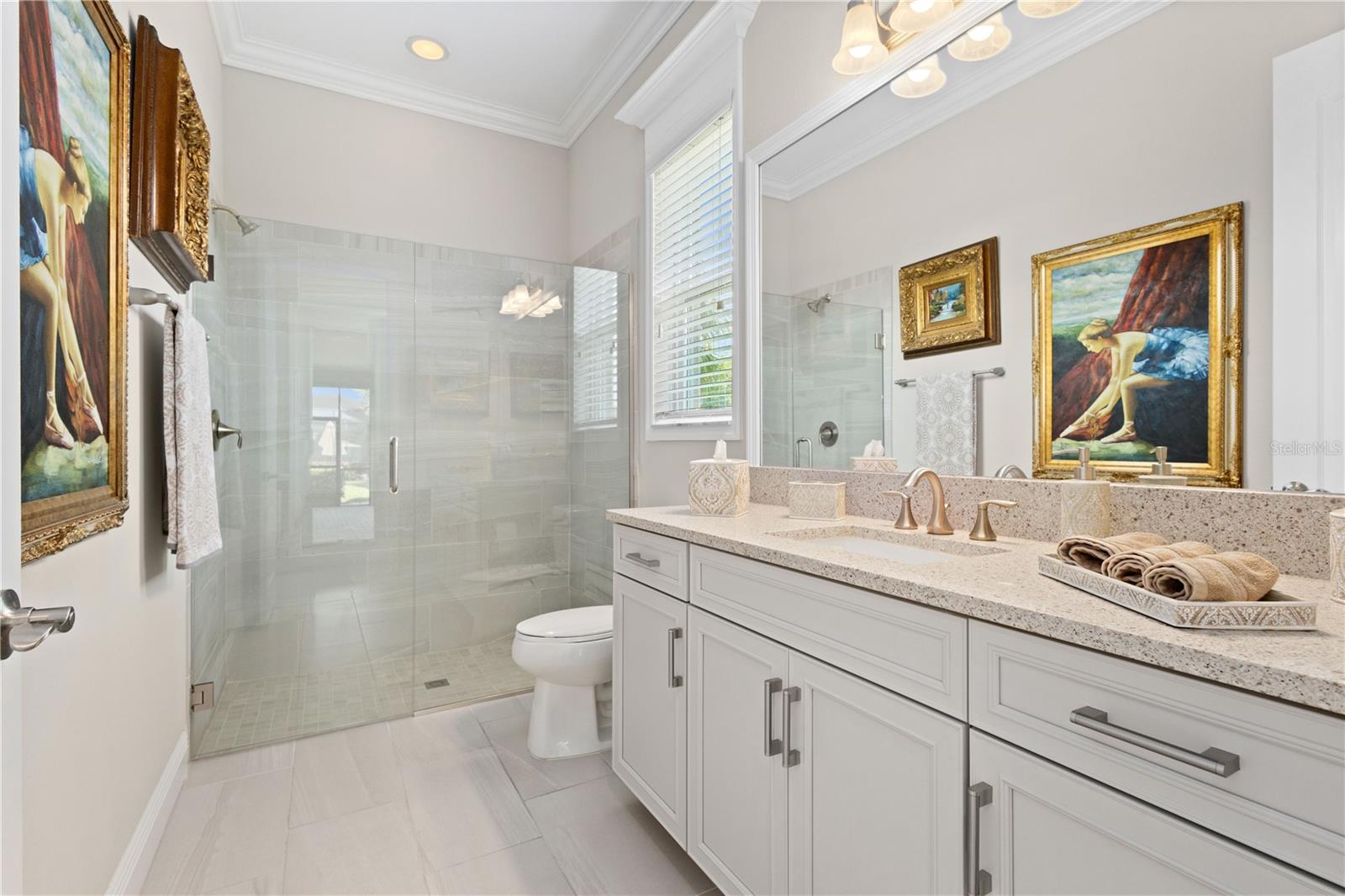 You will fall in love from the moment you walk in to the beautiful foyer of this Jubilee floor plan that consists of 4 bedrooms, 4 bathrooms plus bonus room, 2 separate dens, 3 car garage located on a tranquil lake. This home is light and bright, perfect for entertaining with it's spacious great room that is open to the gourmet kitchen boasting top of the line Cafe appliances consisting of a 5-burner gas cooktop and range hood, built in oven and convection/microwave oven, dishwasher, French door refrigerator that includes instant hot water, expansive center island with seating, three chandeliers, large stainless sink, gorgeous granite counters with subway tile back splash, shaker wood cabinetry with lots of drawers, and walk in pantry. Butlers pantry is perfect for a coffee bar which includes a wine refrigerator. The convenient first-floor owner's suite leaves nothing to be desired with a show stopping walk-in closet with custom built-ins and safe, quartz counters, two sinks and large cabinetry, soaking tub, walk-in roman shower with seat, and separate water closet. The main floor has two additional bedrooms which makes this home a perfect split plan. Laundry room includes washer, dryer and pedestal sink. Upstairs has a large bonus room with walk-in closet for additional storage, another bedroom with a built in safe located in the closet plus an additional full bathroom. The owners have spared no expense in creating a luxurious comfortable home featuring 10' ceilings, 8' doors, tray ceilings, recessed lighting, tile flooring throughout the home including custom inlays with the exception of hardwood located in the two dens, custom crown molding, wainscoting, chair railing, and detailed wood working around the windows and on the ceilings have been adorned. Enjoy relaxing on the screened in lanai over looking the peaceful lake. You will have peace of mind knowing the windows are impact glass resistant, 2 Carrier A/C units, tankless gas water heater, irrigation system with reclaimed water, and rain gutters. This home has been meticulously maintained and cared for creating a welcoming and inviting space for all that enter. Rivo Lakes is a gated community with LOW HOA Fees and NO CDD FEES conveniently located to Siesta Key, the beaches, shopping, restaurants, hospitals, downtown Sarasota, UTC, airports, and I-75.
