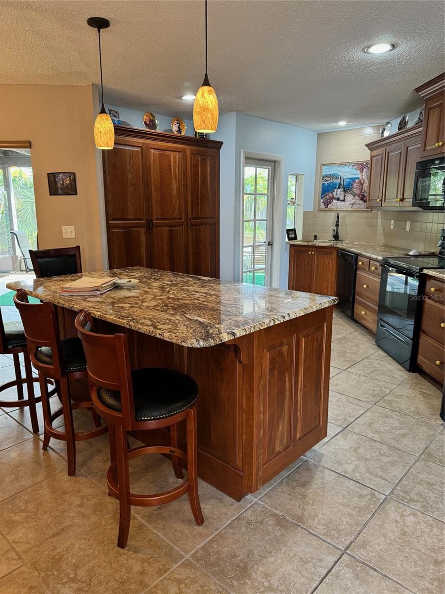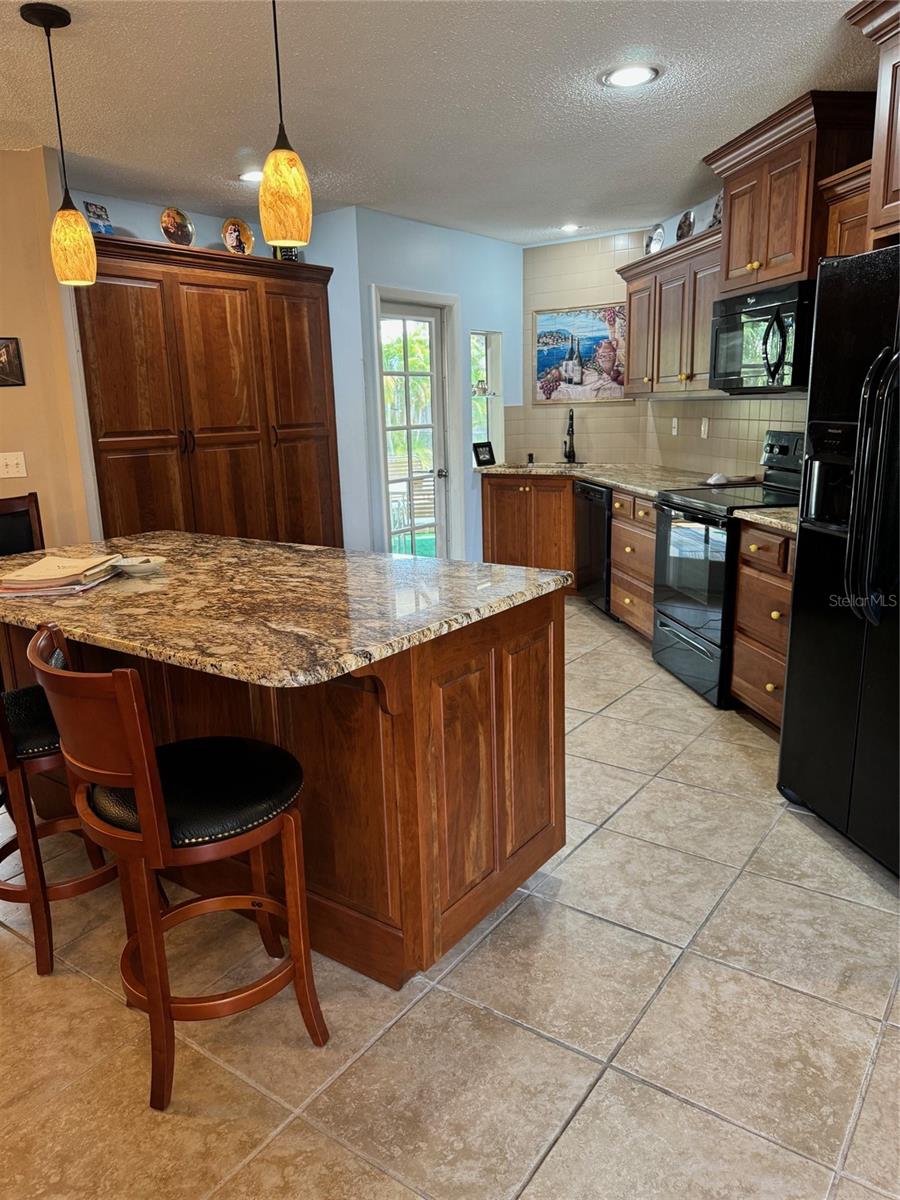 Village Green home with kitchen solid wood custom cabinets. A/C has been installed in 2023 and water heater in 2024. The entire home has been re-piped and new sewer line in 2023. The lanai roof has been installed in 2021. Enjoy the open floor-plan of the kitchen, dining area and living room with tile flooring. As you enter the light and airy three bedrooms plus two bathrooms home you are greeted by the open feel of the living room. The living room features a ceiling fan. The kitchen boasts large granite island where you would have your casual dining with magnificent contemporary light fixtures plus recessed lighting. Additionally, for extra storage, there is a large pantry in the kitchen. ALL THE CABINETS ARE SOLID WOOD AND CUSTOM MADE. The glassed sliding doors in the dining area lead to the spacious screened-in lanai, over looking the backyard with fence around for more privacy. Enter the main bedroom off the living-dining room. The main bedroom is your retreat with a ceiling fan, walk-in closet, linen closet, bathroom with a walk-in shower and glassed sliding doors to exit into the lanai. Take advantage of the split bedroom concept as the guest bedrooms and bath are on the other side of the house, behind the kitchen. The first guest bedroom features a ceiling fan, a closet and laminate flooring. This bedroom is a flex bedroom. It can bed another room for your guests or a home office. As you walk through the hallway you will find the guest bathroom with a tub-shower and then you will enter the second guest bedroom with a ceiling fan and glassed-sliders from which you would exit to the lanai. Signature Ruth Richard glass door knobs. The lanai boasts two ceiling fans and there is the view of the backyard. Have your summer party inside or out with your neighbors and friends. Village Green a golfing community, which different levels of membership are an option. The golf club has clubhouse, a pro-shop, practice facilities, bar & grill dining. This centrally located community is 4 miles drive to Downtown Sarasota, where you will enjoy culinary and cultural venues. Enjoy couple of hours of a stroll in Payne Park where you will encounter urban art sculptures, sport activities, circus inspired playground, or take a break at the cafe. Just 18 minutes drive to our famous Siesta Key Beach with the azure water of the Gulf of Mexico and the dreamy sand. Schedule your showing today.