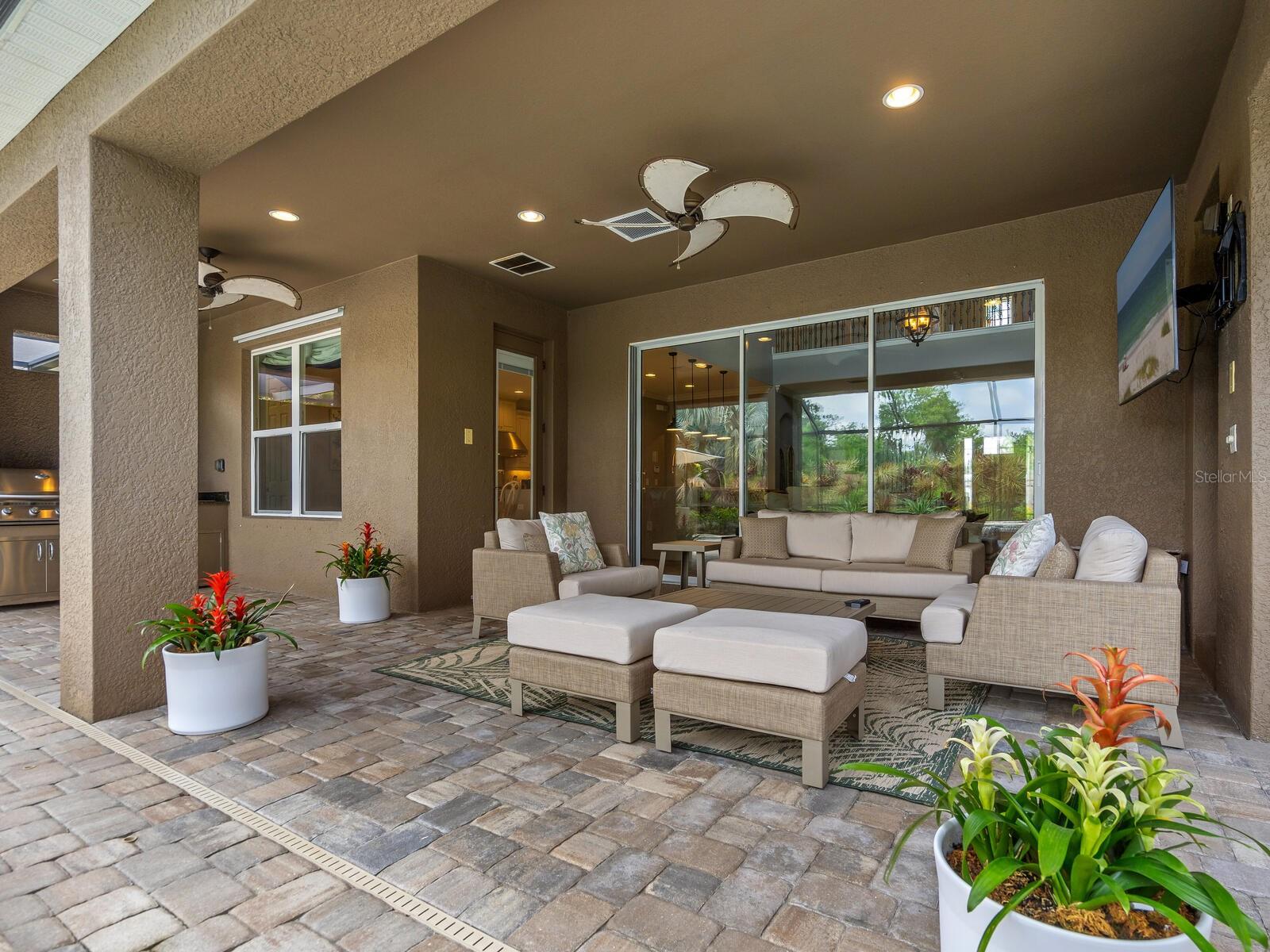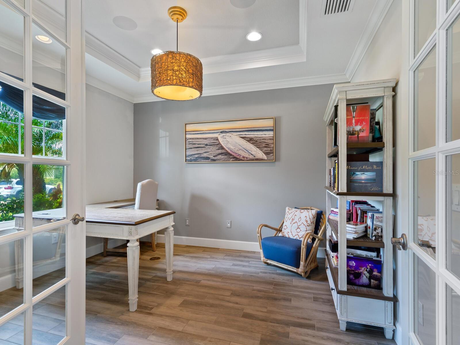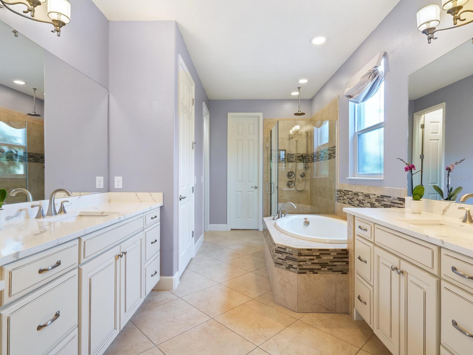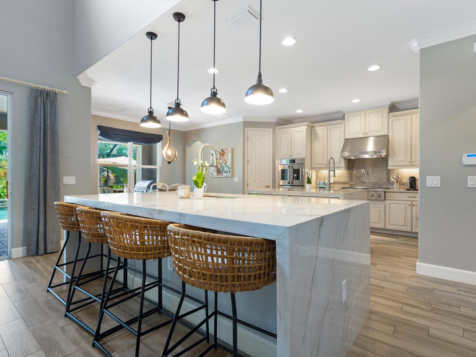 This fabulous 6 bedroom + den + loft home is both spacious and stylish with no expense spared on the upgrades and finishes. One of Taylor Morrison’s most popular floorplans, the elegant yet functional layout of the Hemmingway III model enables family and friends to enjoy open plan living, cooking and dining together as well as ample additional space in the second-floor loft and workspace, and even a media room! The outdoor living space is spectacular with a huge pool and spa set in front of a beautiful firepit feature, lush landscaping, elegant brick pavers, a spacious covered dining and lounging area with outdoor kitchen with natural gas grill. The yard offers complete privacy since it backs onto a preserve. The first floor comprises a large 20 ft high foyer with a formal dining room, an office and a powder room, and opens to a lovely light filled two story living room and huge kitchen with two islands topped with 3-inch mitered Aria quartzite with waterfall edges. Chefs will appreciate the amount of high-quality cabinet space in the kitchen, the gas range with griddle and pot filler, two full-size sinks, a full pantry, and dry bar. The GE Monogram appliances in the kitchen are both good looking and functional - the French door refrigerator includes instant hot water. There is both countertop seating and an informal eating area for everyday meals. The primary suite overlooks the pool deck and the ensuite bathroom has two closets, a separate WC, dual sinks, plus a vanity, a soaking tub, and a floor-to-ceiling tiled shower with 3 separate shower heads. The second floor comprises of a huge loft with 3 bedrooms - two of which have walk-in closets - a media room and a bathroom. A landing overlooking the main living area connects the loft to two additional bedrooms and a work/study space with a shared bathroom and a separate sink and walk in closet. The 2.5 car garage features custom flooring, racks, EV outlet and storage racks. While this preserve lot offers complete privacy, this home is surrounded by a vibrant, active neighborhood where homeowners gather to enjoy the amenities: resort-style pool, playground, hot tub, grill area, kid’s waterpark with slide, dog park, and a covered pavilion. A-rated public schools, easy access to the recreational Legacy Trail, and the proximity to the white sands of Siesta Beach and the I-75 corridor make Arbor Lakes a fabulous choice for the very best that Sarasota has to offer.