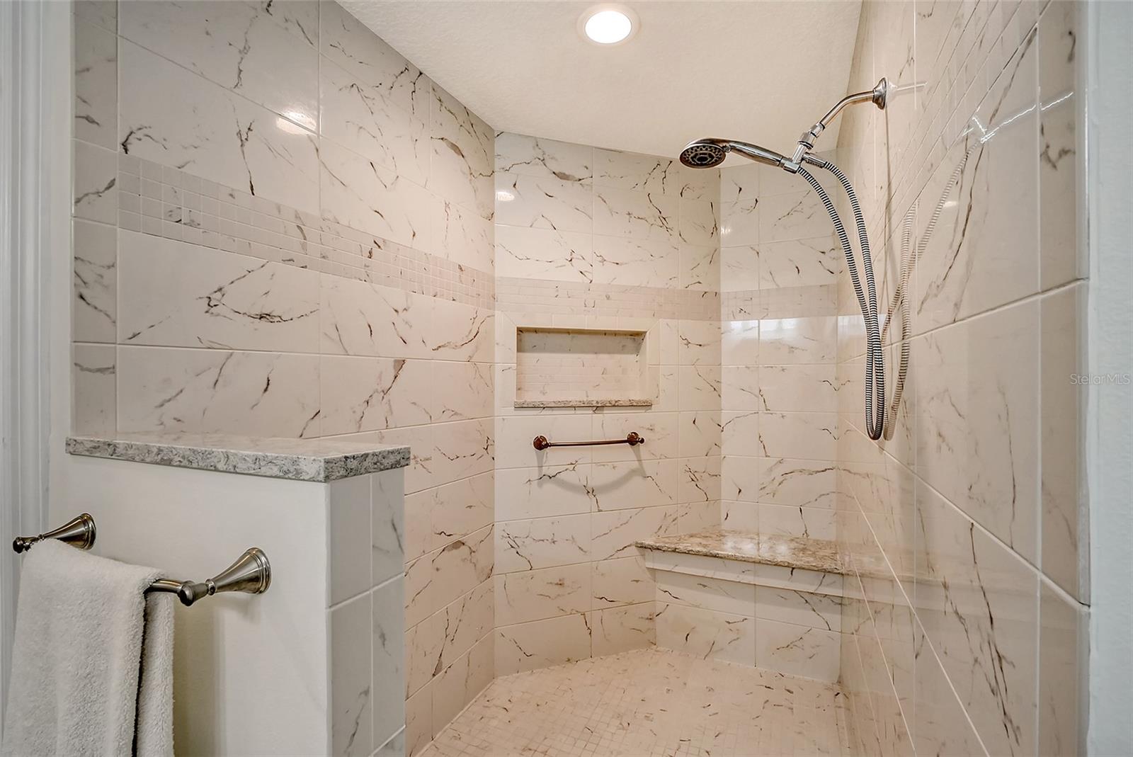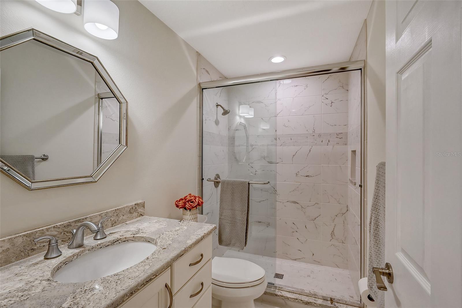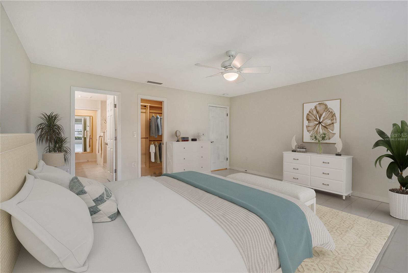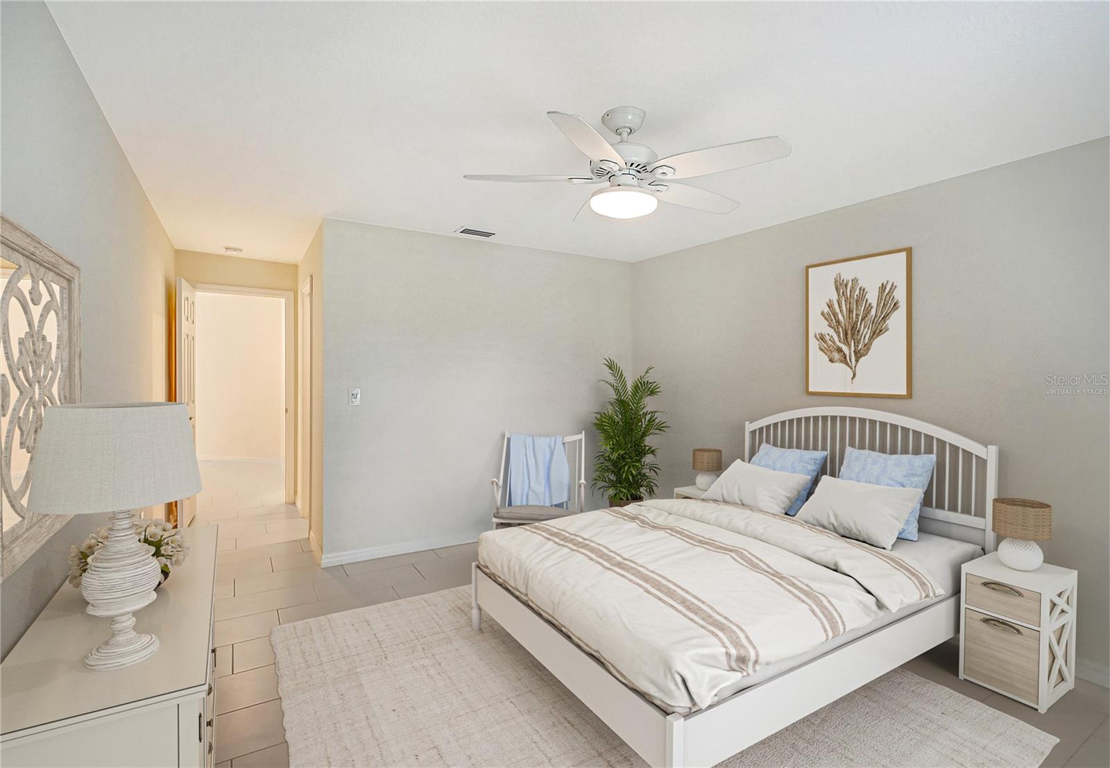 One or more photo(s) has been virtually staged. Experience serenity & comfort in this exquisite maintenance free end unit villa,2 bedroom,2 bath plus an office / study with custom built ins. Access your new home through the private gated entry. Escape the daily hustle & bustle, & embrace tranquility & comfort in this beautifully updated end unit villa. Perfect for those seeking a peaceful retreat without the hassle of constant maintenance or long commutes, this villa offers a unique blend of modern amenities, natural beauty & is a testament to meticulous care & quality updates. Freshly painted in neutral tones, the spacious open floor plan is enhanced with built-ins adding both functionality & charm. The serene neighborhood, adorned with mature landscaping & waterways, is home to a variety of resident birds, providing a picturesque backdrop for daily living. Enter through the covered & screened breezeway that connects the oversized two-car garage to the home. The garage features an epoxy moisture mitigation flooring system, painted ceiling & walls, & new 2023 Lift Master garage door openers. Additionally, a Kinetico Water Softener ensures soft water throughout the home, enhancing comfort & convenience. The luxurious interior features 12” by 24” porcelain tiles with grout sealer throughout, ensuring durability & easy maintenance. The custom kitchen is a chef's dream, featuring maple cabinetry beautifully crafted & spacious with quartz countertops both elegant & functional. The marble backsplash adds a touch of luxury. LED under cabinet lighting enhances visibility & ambiance. Innovative storage & operation solutions include a Rev-a-Lift for a mixer, coffee station, large pantry, rollout drawers everywhere, spice rack, utensil bin built-in, cutlery inserts, trash inserts & extensive work area. The spacious primary suite is bathed in natural light & offers stunning views of the greenbelt & golf course, with features including a walk-in closet with built-ins, providing ample storage. There are even two additional closets. The elegant ensuite bathroom boasts a dual sink vanity with a sparkling quartz countertop & an oversized walk-in shower with a built-in bench. The windows are equipped with full blackout adjustable custom blinds. The large guest bedroom offers comfortable guest accommodations situated at the opposite end of the villa for privacy, including a large walk-in closet with custom built-ins. The second bathroom mirrors the elegance of the primary suite, featuring a stylish shower & quartz countertops. The study, accessible through double doors, features a beautiful maple built-in desk with file drawers & book shelves. It can easily be converted into a third bedroom or serve as an occasional guest room with a pullout sofa. This villa is equipped with numerous hidden features that enhance its value & livability. There were PVC sewer lines installed throughout the home in 2015, water heater 2015, HVAC System 2018, with 10-year extended warranty, lightning surge protector, dehumidifier, & a complete home air purifier. Hurricane windows are installed throughout for added safety & shutters on lanai with all window treatments included. New roof May 2024. This exquisite end unit villa offers a rare combination of quality, comfort, modern amenities, meticulous maintenance, & serene surroundings providing a retreat for those seeking a peaceful & hassle-free lifestyle. Move right in & start enjoying the tranquility & elegance of this exceptional home & neighborhood!