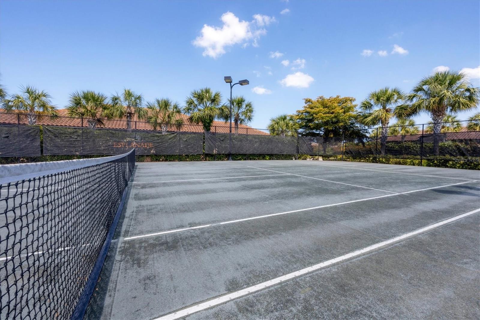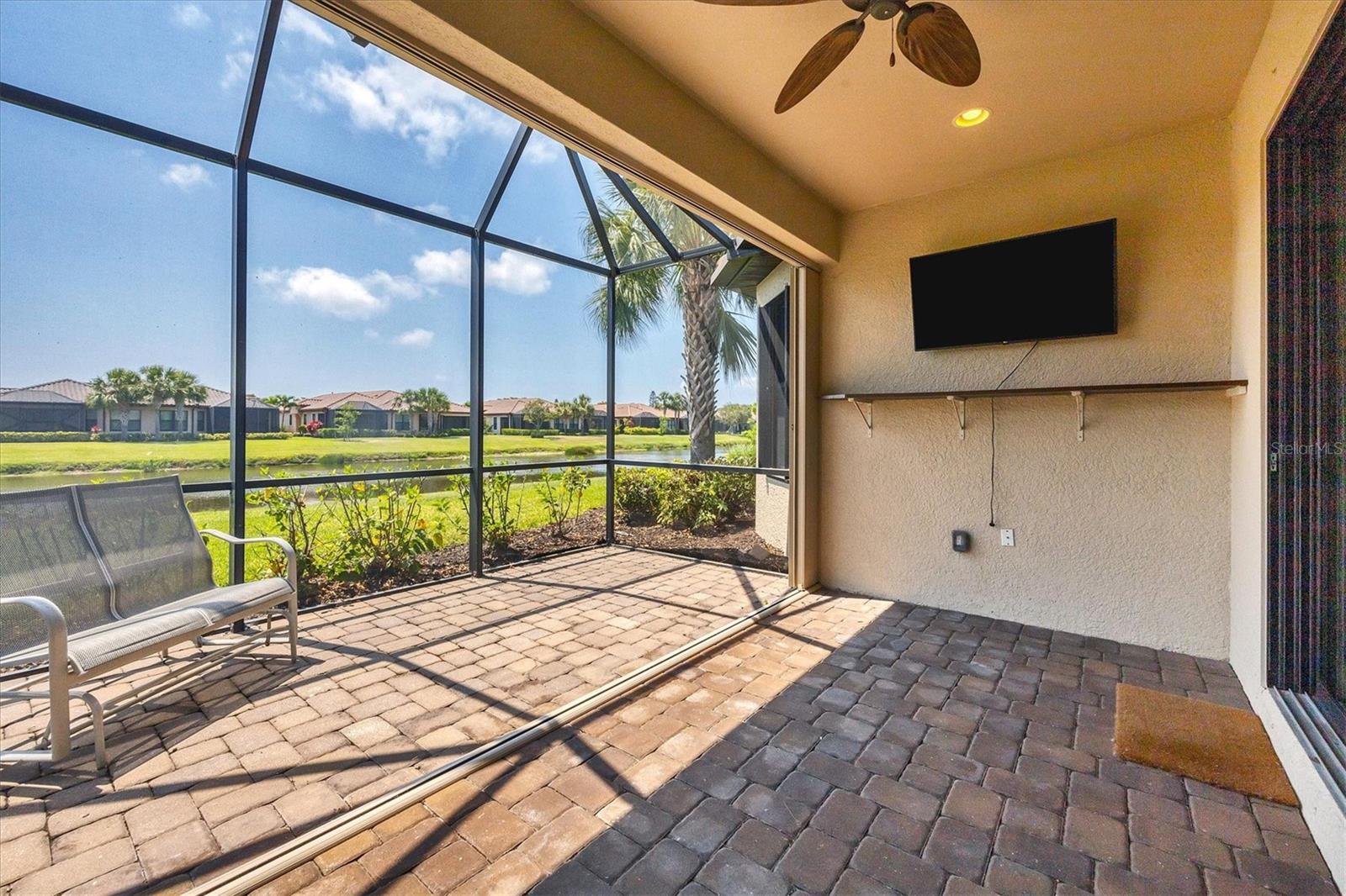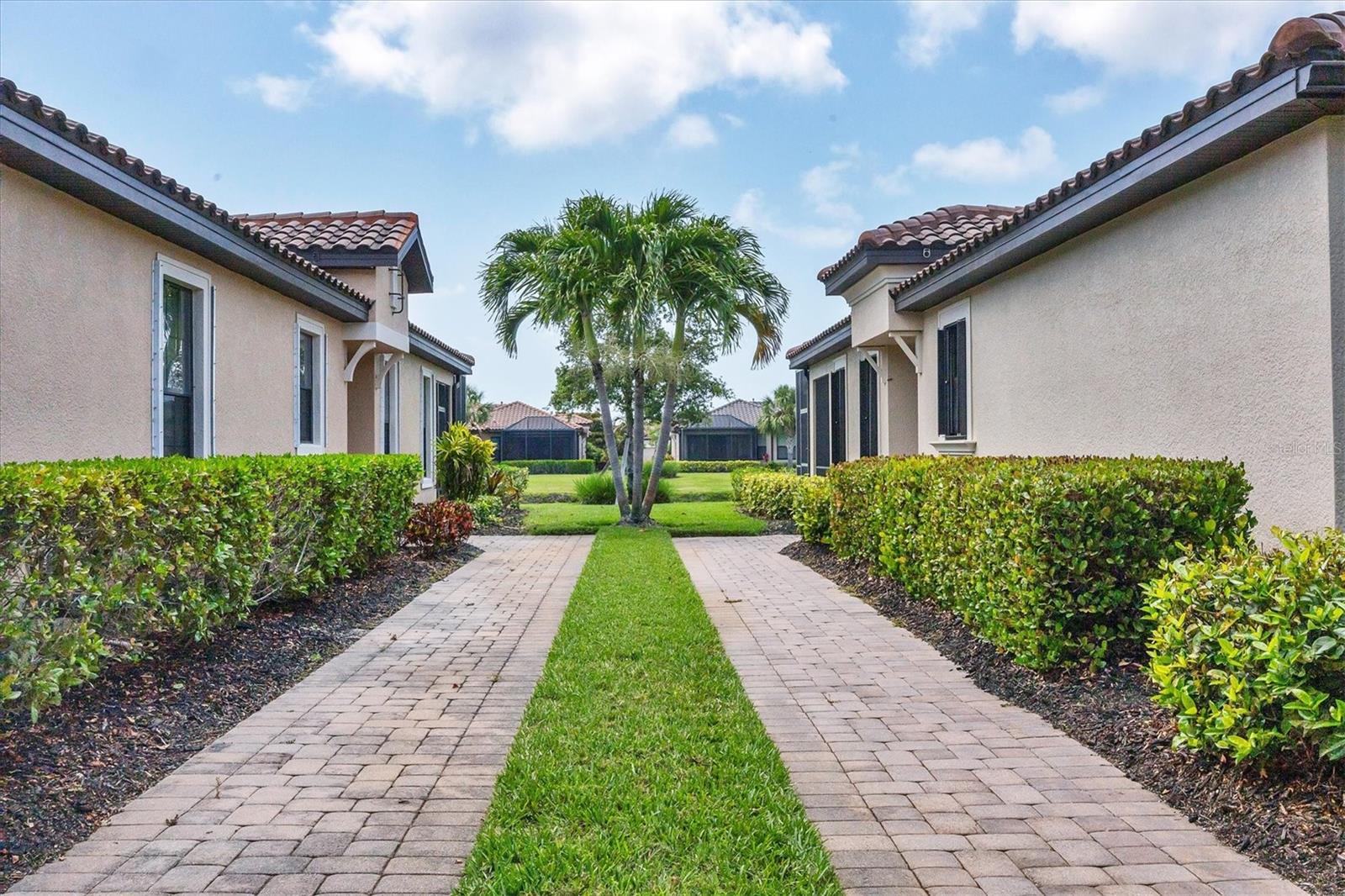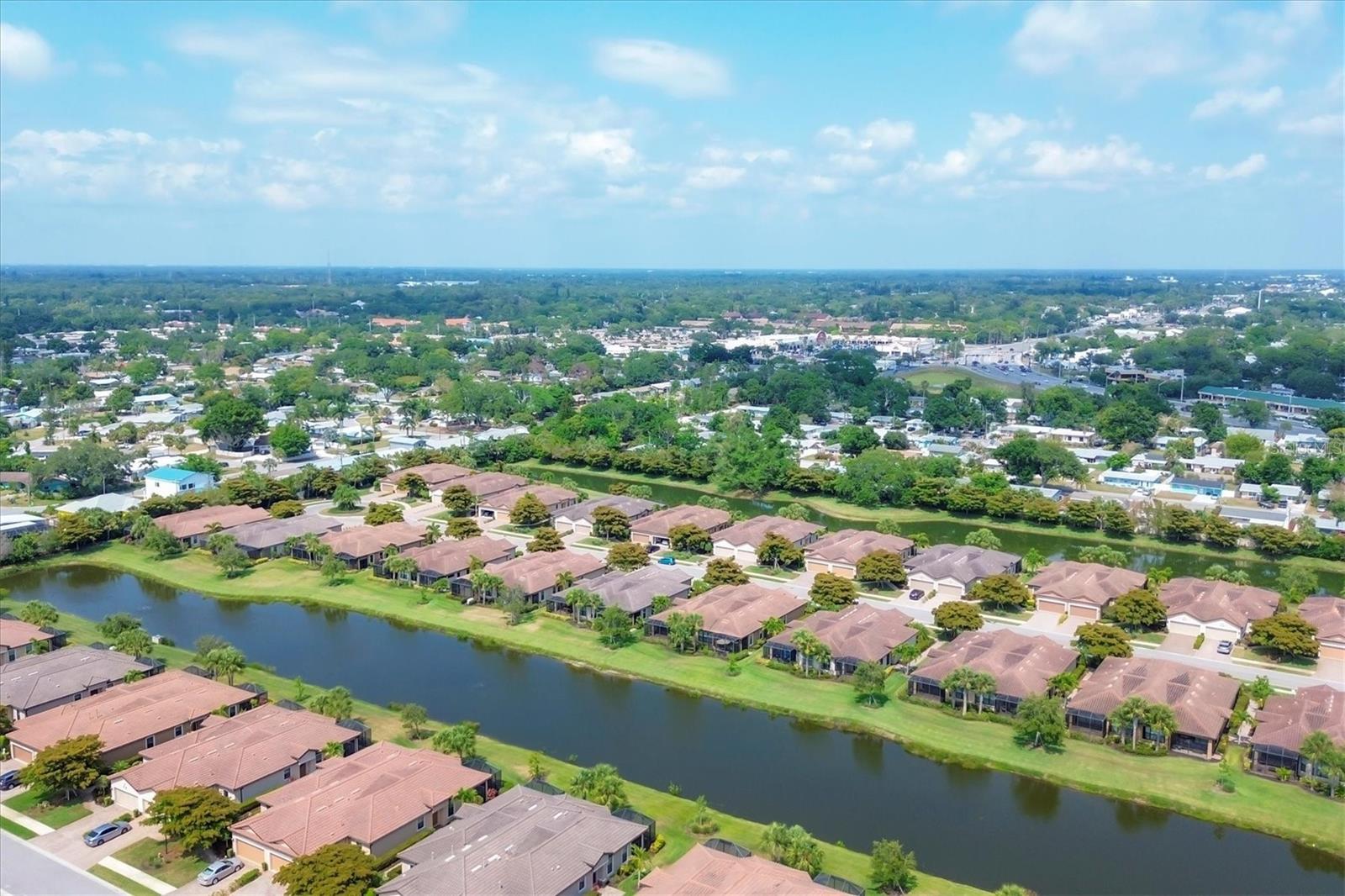 No Flooding with hurricane shutters and located in a fabulous location just one mile from Siesta Key. This rarely available villa home in Esplanade by Siesta Key, offers an active lifestyle, maintenance-free living, and gated resort-style amenities This spacious split-plan two-bedroom with den, two-bath one-level villa has an open floor plan, west-facing spacious screened-in lanai overlooking a very nice pond, two-car garage, and located just a few doors down from the amazing amenities center. The interior designer finishes have been upgraded, and the home offers crown molding, coffered ceiling in the great room, chair rails, and tray ceilings in the dining room, new refrigerator, range/oven, and microwave in the kitchen, three rooms of new neutral carpet, water softener in the garage, and natural gas for ease of cooking. More features include a spacious primary bedroom with a water view, plantation shutters, grab rails in the shower and water closet, very nicely sized walk-in closets in both bedrooms, ceiling fans throughout, and plenty of cabinets for storage in the kitchen and separate laundry room. Within the community, the residents enjoy a very social environment and access to a lagoon-style pool, pickleball, tennis on Har-Tru courts, a fitness center, a clubhouse with planned activities, a paw park, and sidewalks providing miles of walking and biking opportunities. The location is very central to dining, shopping, downtown Sarasota, and the beaches of Siesta Key. Very easy to show and move-in ready.