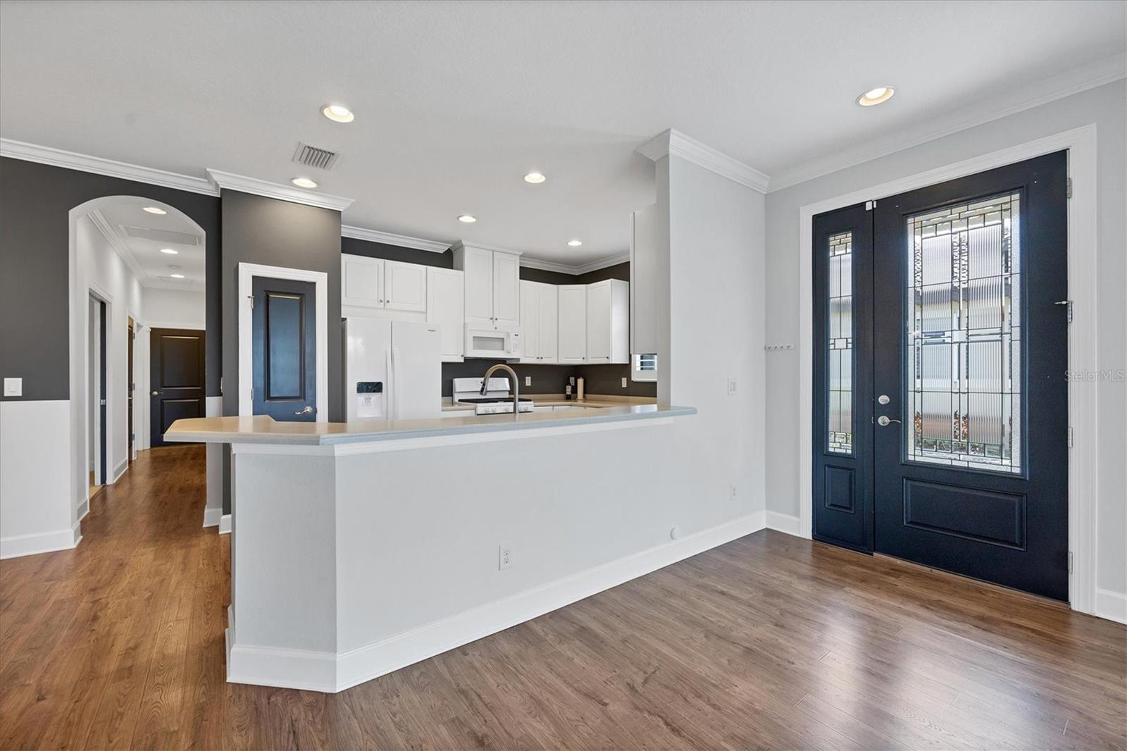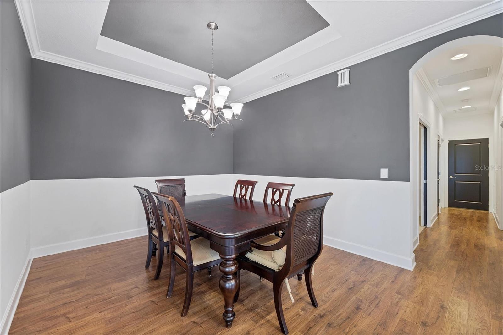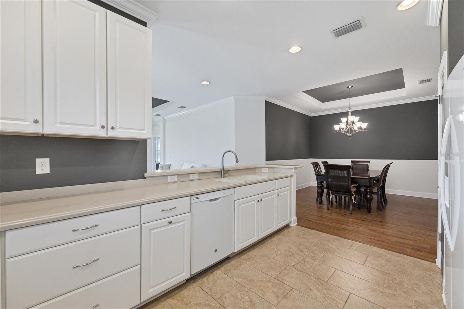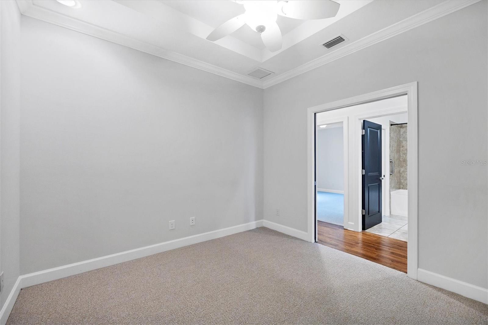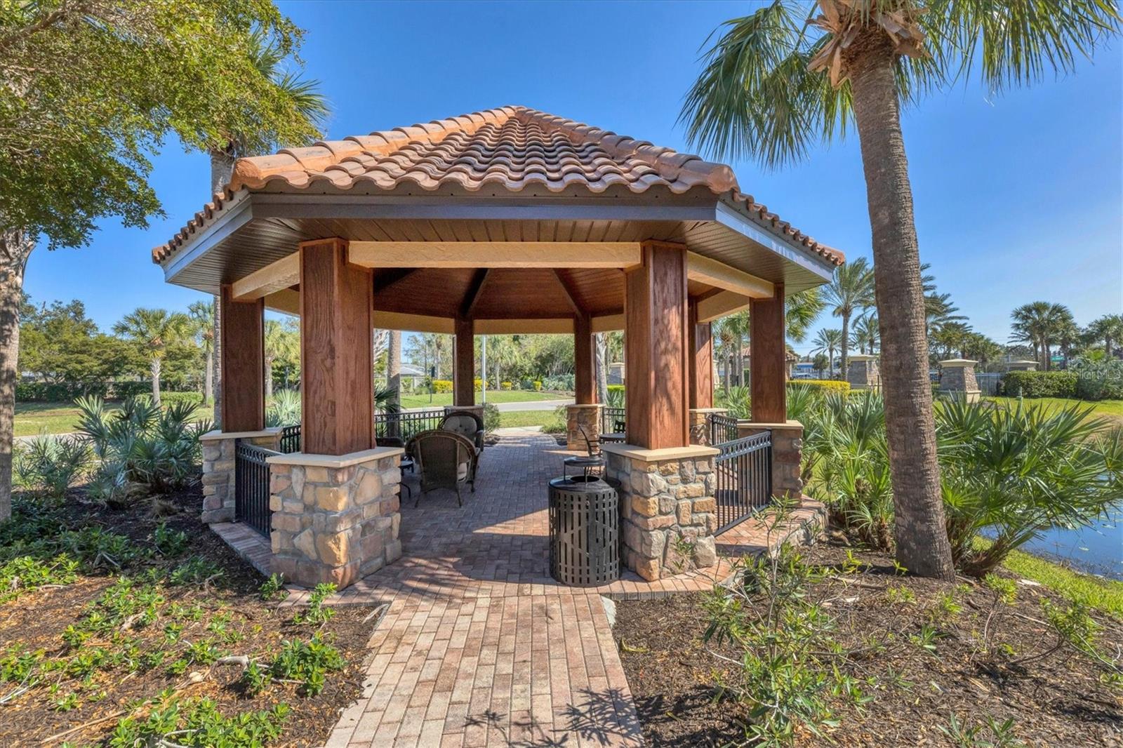 No Flooding with hurricane shutters and located in a fabulous location just one mile from Siesta Key. This rarely available villa home in Esplanade by Siesta Key, offers an active lifestyle, maintenance-free living, and gated resort-style amenities This spacious split-plan two-bedroom with den, two-bath one-level villa has an open floor plan, west-facing spacious screened-in lanai overlooking a very nice pond, two-car garage, and located just a few doors down from the amazing amenities center. The interior designer finishes have been upgraded, and the home offers crown molding, coffered ceiling in the great room, chair rails, and tray ceilings in the dining room, new refrigerator, range/oven, and microwave in the kitchen, three rooms of new neutral carpet, water softener in the garage, and natural gas for ease of cooking. More features include a spacious primary bedroom with a water view, plantation shutters, grab rails in the shower and water closet, very nicely sized walk-in closets in both bedrooms, ceiling fans throughout, and plenty of cabinets for storage in the kitchen and separate laundry room. Within the community, the residents enjoy a very social environment and access to a lagoon-style pool, pickleball, tennis on Har-Tru courts, a fitness center, a clubhouse with planned activities, a paw park, and sidewalks providing miles of walking and biking opportunities. The location is very central to dining, shopping, downtown Sarasota, and the beaches of Siesta Key. Very easy to show and move-in ready.