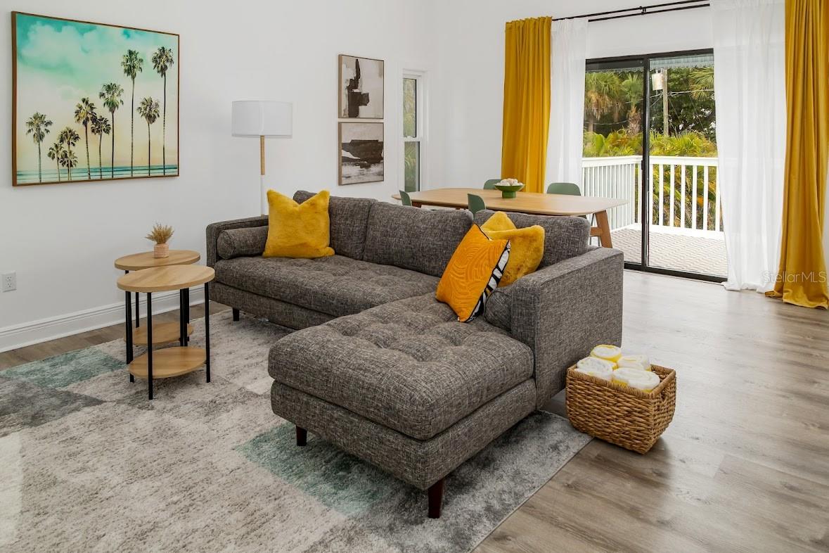 Fabulous Siesta Key Beach House, Wonderful Investment Property or Second Home ** Walk to the Vibrant Village or the Public Beach ** Modern and Maintained Meticulously ** There is no better place to park your investment than a Prime Location on Siesta Key, with no HOA fees and Premium Land Values. This 2 story beach house underwent a refreshing coastal modern update with new wood looking vinyl flooring, paint inside and out, lush tropical landscape and new “crate and barrel-style” furnishings throughout the entire property. The upstairs kitchen is wide open with gorgeous stone countertops and soaring high ceiling that welcome an abundance of joyful natural lighting. Double sliding doors can be opened during seasonal months for a cool sweeping breeze of salt air and beach vibes. From this 2nd floor deck you will appreciate a front row seat to striking sunsets, 4th of July fireworks and your maintenance-free backyard with modern pavers and firepit. This home provides many options for generating income or live on either floor and enjoy an in-law suite on the other. Location is everything on Siesta Key, and privacy is premium. This home provides a fully hedged backyard full of lush areca palms with side gates for your full serenity. One look and you will fall in love with this beach house. Offered turnkey furnished, just bring your toothbrush and flip flops :)