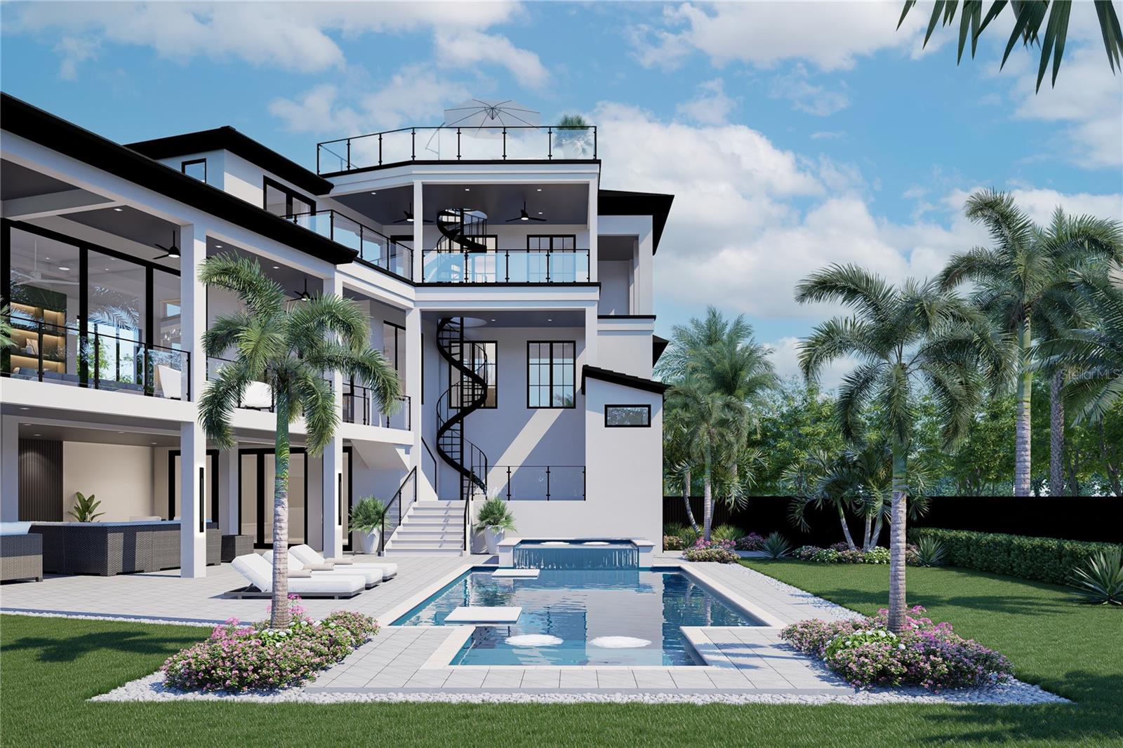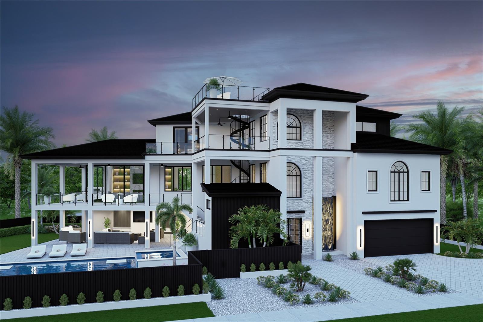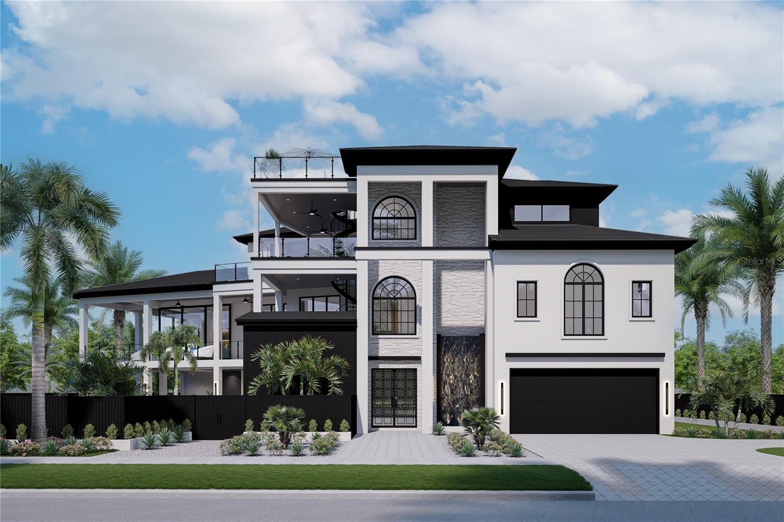 One or more photo(s) has been virtually staged. Under Construction. Unmatched in its island elegance and coastal appeal, this five-bedroom home now under construction rests in the heart of Siesta Key. Arrive home by land or by sea with the beach and Village just a short walk away, and a boat dock situated directly across the street. Launch off from the Grand Canal and explore tropical waterways or find a sandbar to drop anchor for an afternoon. Designed for entertaining, the home’s floor plan smartly unfolds itself with a blend of public and private spaces that are centered around a dazzling outdoor living area. The great room offers magazine-worthy finishes selected by acclaimed interior design firm DS15, and opens to an impressive 50’ long wrap-around covered terrace. The primary kitchen is perfect for everyday use while the fully equipped prep/catering kitchen is ideal for larger events. The main living level also offers a secondary primary suite and a guest room for family and visitors. Upstairs, the primary bedroom boasts French doors to the second covered terrace, plus two walk-in closets and a spacious en suite bath complete with tub and luxurious walk-in shower. Two additional bedrooms can be found on the second floor with a shared bath. An elevator and stairs make multi-level living easy and accessible. The piece de resistance is the 325’ rooftop deck where you can enjoy views of the sun setting over the Gulf. Impact windows and sliders provide peace of mind. The outdoors are an essential part of Florida living and this residence truly excels in offering a resort-like experience with a sparkling pool and spa, complete with a separate pool bath. The lower level also features a bonus room with sliders opening up to the covered outdoor space. In addition, there is a flex room - perfect for a gym or play area. Head to nearby Siesta Village just a few blocks away for coffee, ice cream, or your pick of delicious seafood restaurants. Downtown Sarasota is just over the bridge with one-of-a-kind arts, culture and a host of urban amenities.