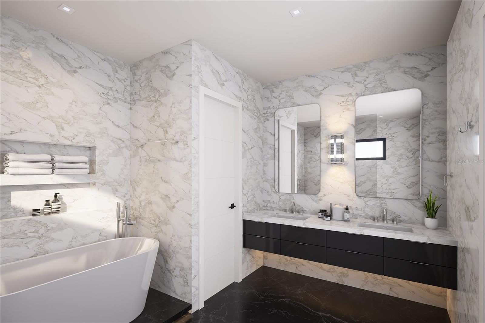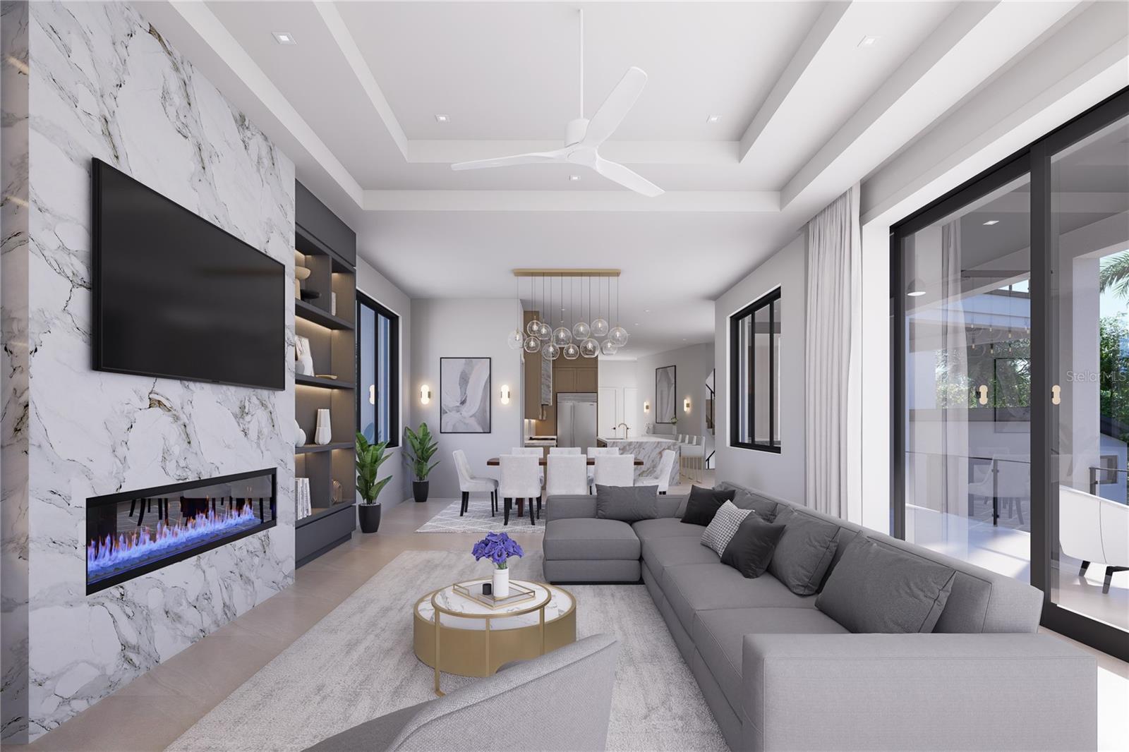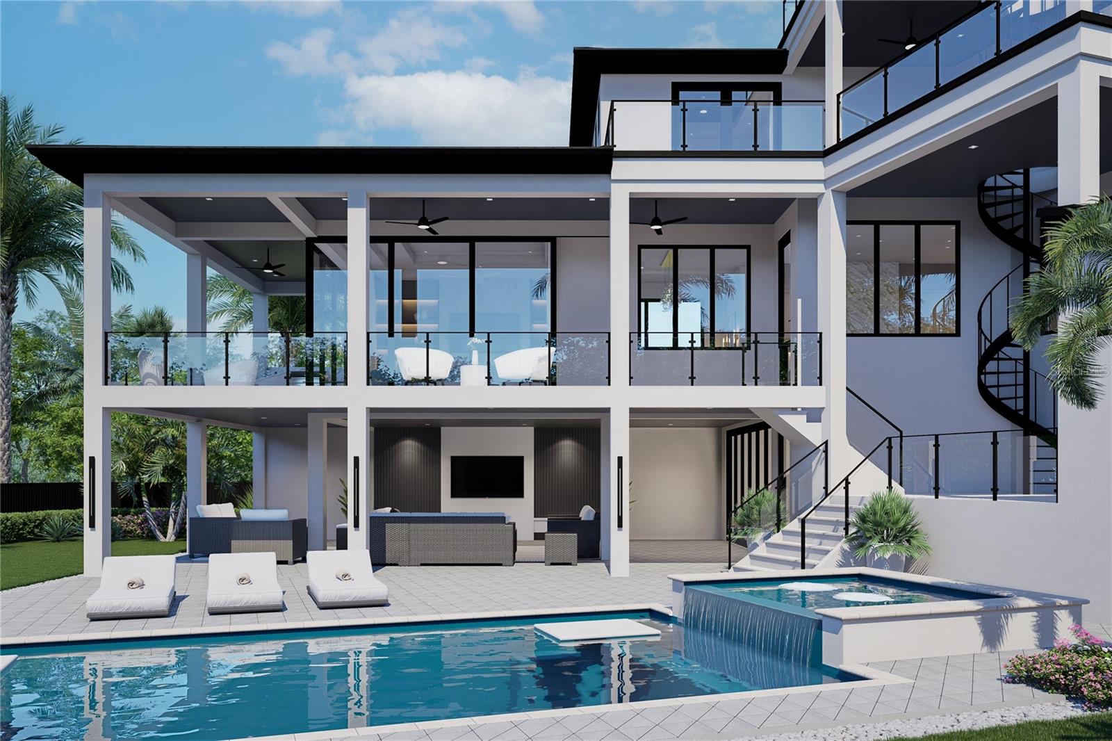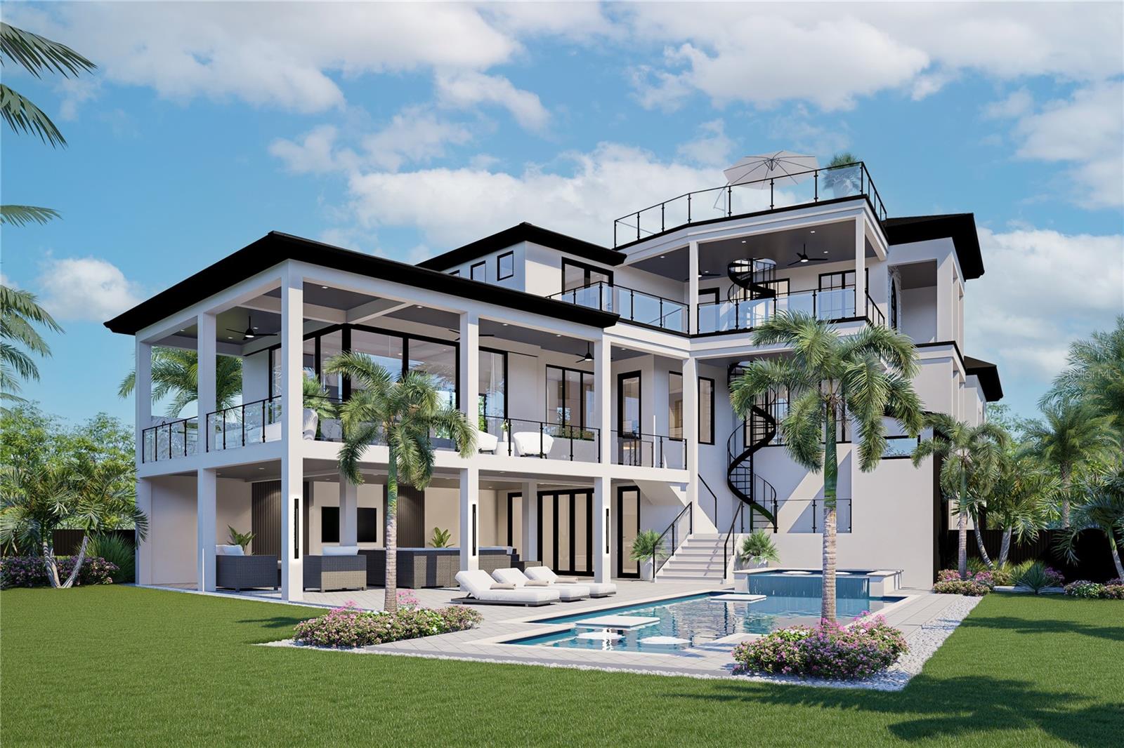 One or more photo(s) has been virtually staged. Under Construction. Unmatched in its island elegance and coastal appeal, this five-bedroom home now under construction rests in the heart of Siesta Key. Arrive home by land or by sea with the beach and Village just a short walk away, and a boat dock situated directly across the street. Launch off from the Grand Canal and explore tropical waterways or find a sandbar to drop anchor for an afternoon. Designed for entertaining, the home’s floor plan smartly unfolds itself with a blend of public and private spaces that are centered around a dazzling outdoor living area. The great room offers magazine-worthy finishes selected by acclaimed interior design firm DS15, and opens to an impressive 50’ long wrap-around covered terrace. The primary kitchen is perfect for everyday use while the fully equipped prep/catering kitchen is ideal for larger events. The main living level also offers a secondary primary suite and a guest room for family and visitors. Upstairs, the primary bedroom boasts French doors to the second covered terrace, plus two walk-in closets and a spacious en suite bath complete with tub and luxurious walk-in shower. Two additional bedrooms can be found on the second floor with a shared bath. An elevator and stairs make multi-level living easy and accessible. The piece de resistance is the 325’ rooftop deck where you can enjoy views of the sun setting over the Gulf. Impact windows and sliders provide peace of mind. The outdoors are an essential part of Florida living and this residence truly excels in offering a resort-like experience with a sparkling pool and spa, complete with a separate pool bath. The lower level also features a bonus room with sliders opening up to the covered outdoor space. In addition, there is a flex room - perfect for a gym or play area. Head to nearby Siesta Village just a few blocks away for coffee, ice cream, or your pick of delicious seafood restaurants. Downtown Sarasota is just over the bridge with one-of-a-kind arts, culture and a host of urban amenities.