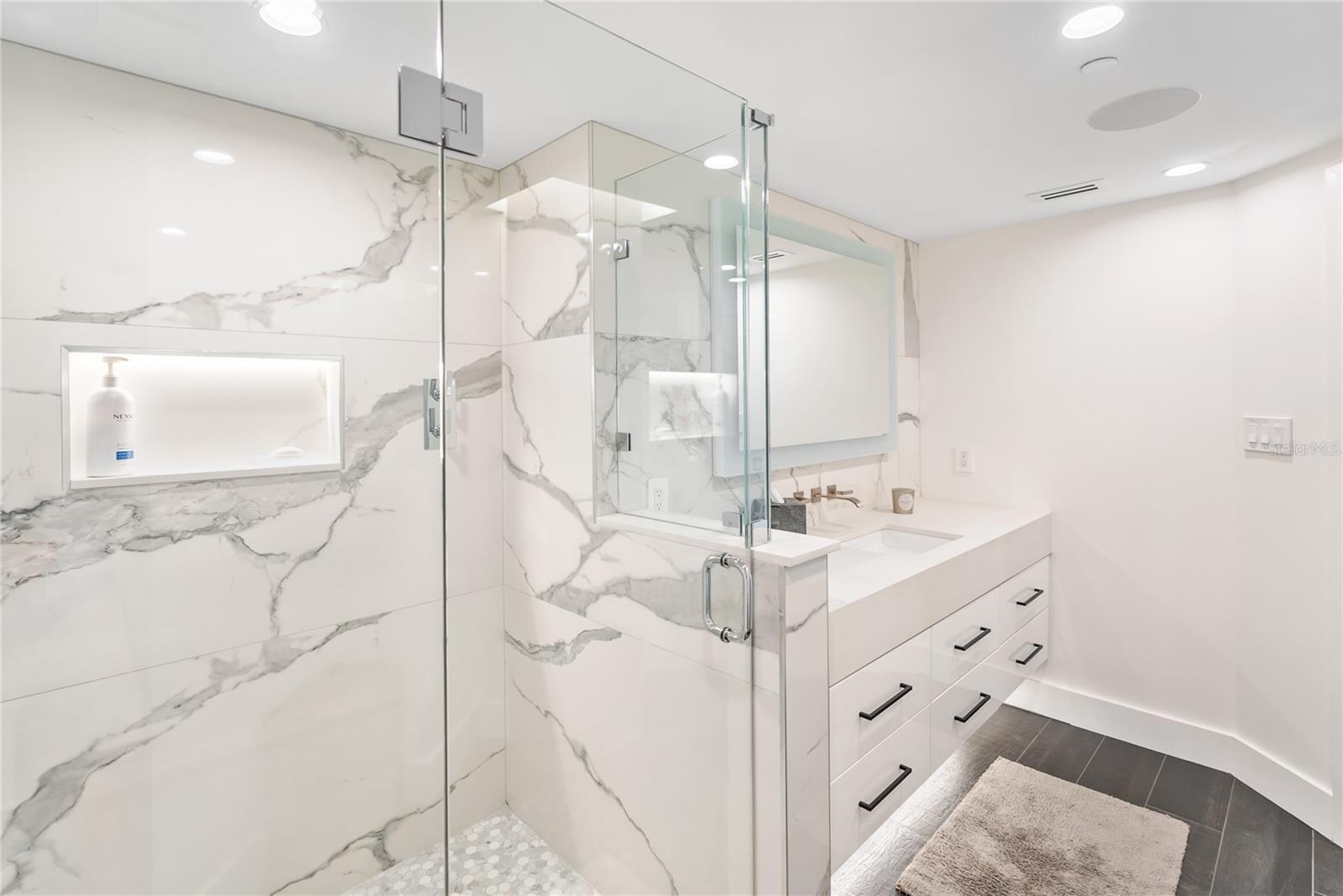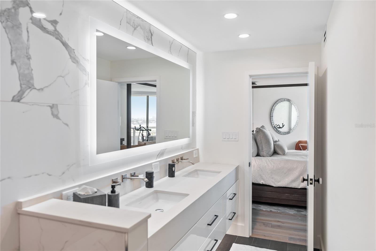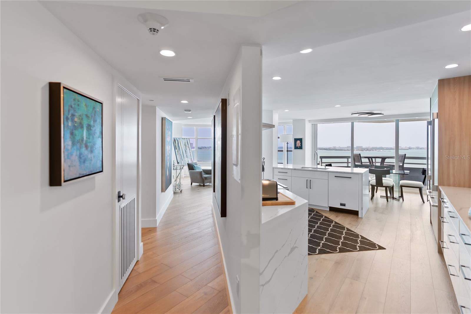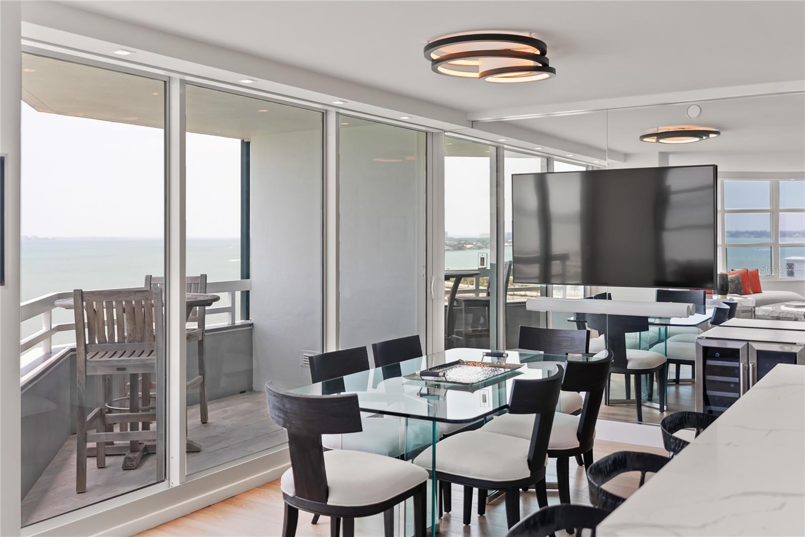 Step into the most luxurious waterfront condo that awaits you in this stunning two bedroom, two-bath condo in the heart of Sarasota! Enjoy breathtaking views of the Bay of Sarasota and The Gulf of Mexico from one of two of your private balconies. This stunning 100% completely renovated 5 stack VanGogh located on the 17th floor will leave you breathless. You will not believe your eyes when you see the attention to detail built into this stunning condo. Floor to ceiling mirrors in entryway accentuate the grand view as you enter the condo. Seller did a complete demolition of all interior drywall, ceiling tiles, all interior AC ductwork, plumbing, flooring and electrical. Installed all new plumbing, electrical, AC ductwork and / outdoor lighting. All new indoor lighting design and hardware throughout. The gorgeous all new wood flooring is in main areas and bedrooms, with all new tile in the bathrooms and patios. Raised the ceilings for maximum grand feeling and the stunning views. Both bathrooms completely remodeled with top of the line marble, quartz and waterworks hardware. Extended the width of the hall to open up laundry area with a stackable washer and dryer as well as a tankless water heater. Installed all new hurricane doors at both patios. Custom doors and hardware throughout. Brand new cabinetry along with custom closet cabinetry in primary suite. Installation of a completely new and hard wired AV system for Sound, TV, lighting & shades for the entire house. Hard wired the WiFi Sonos system through out the entire condo. And wait until you see this extraordinary kitchen, it is a culinary dream… brand new top of the line Fulgor Italian appliances! Waterfall quartz island countertop and quartz backsplash. Full size counter depth refrigerator, wine cellar, and 2 freezers. Microwave, convection combo, built in coffee maker, induction range top, oven & dishwasher. Smart home features include Ring and Nest. When you are ready to retire for the evening you simply use the remote powered shade system by Creston for all windows. Entry into 888 Boulevard of the Arts has a 24 hour guarded gate station. Just steps outside the condo you will find access to kayaks and/or boats. You can also enjoy the resort style heated pool along with pickleball, tennis courts and fitness room. Assigned underground parking (this unit has the best spot in the building) as well as 2 EV charging stations up on the top deck. You are close to all the key spots that beautiful Sarasota has to offer: Lido Beach, Siesta Key, Anna Maria Island, Long Boat Key and St Armands Circle. Sarasota offers exquisite restaurants, shopping, theaters and many cultural activities including Asolo Theater, Van Wezel Performing Arts Center and John Ringling Museum. You don’t want to miss this extraordinary condo with the most precise attention to detail at every turn. This unit is truly perfection.