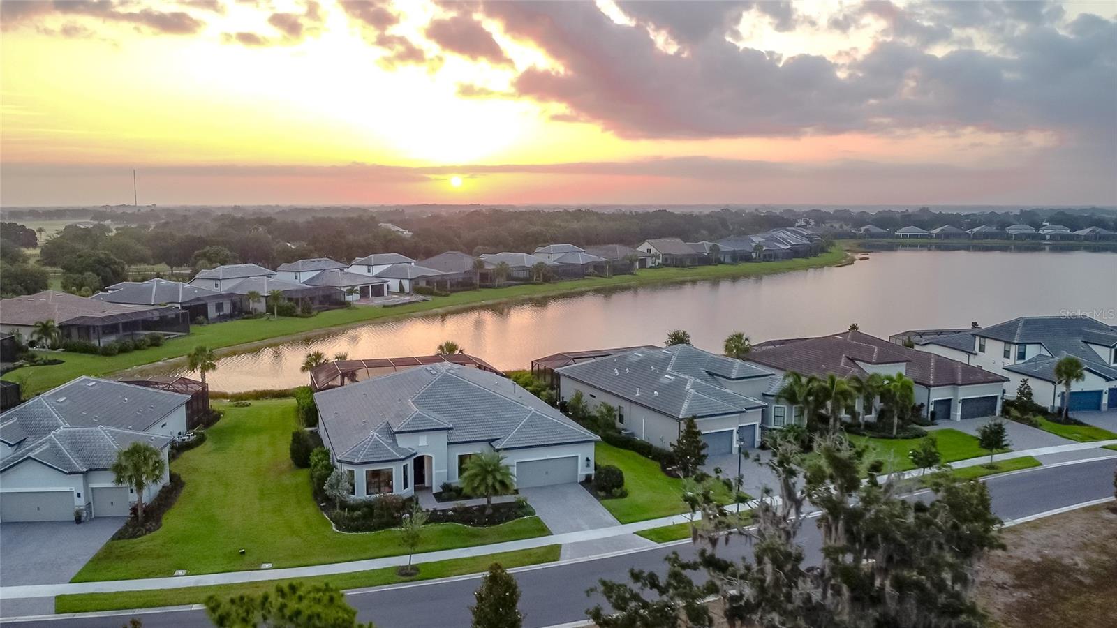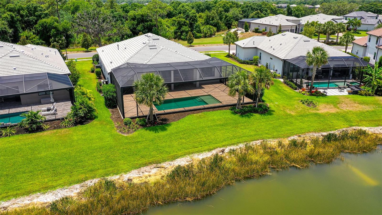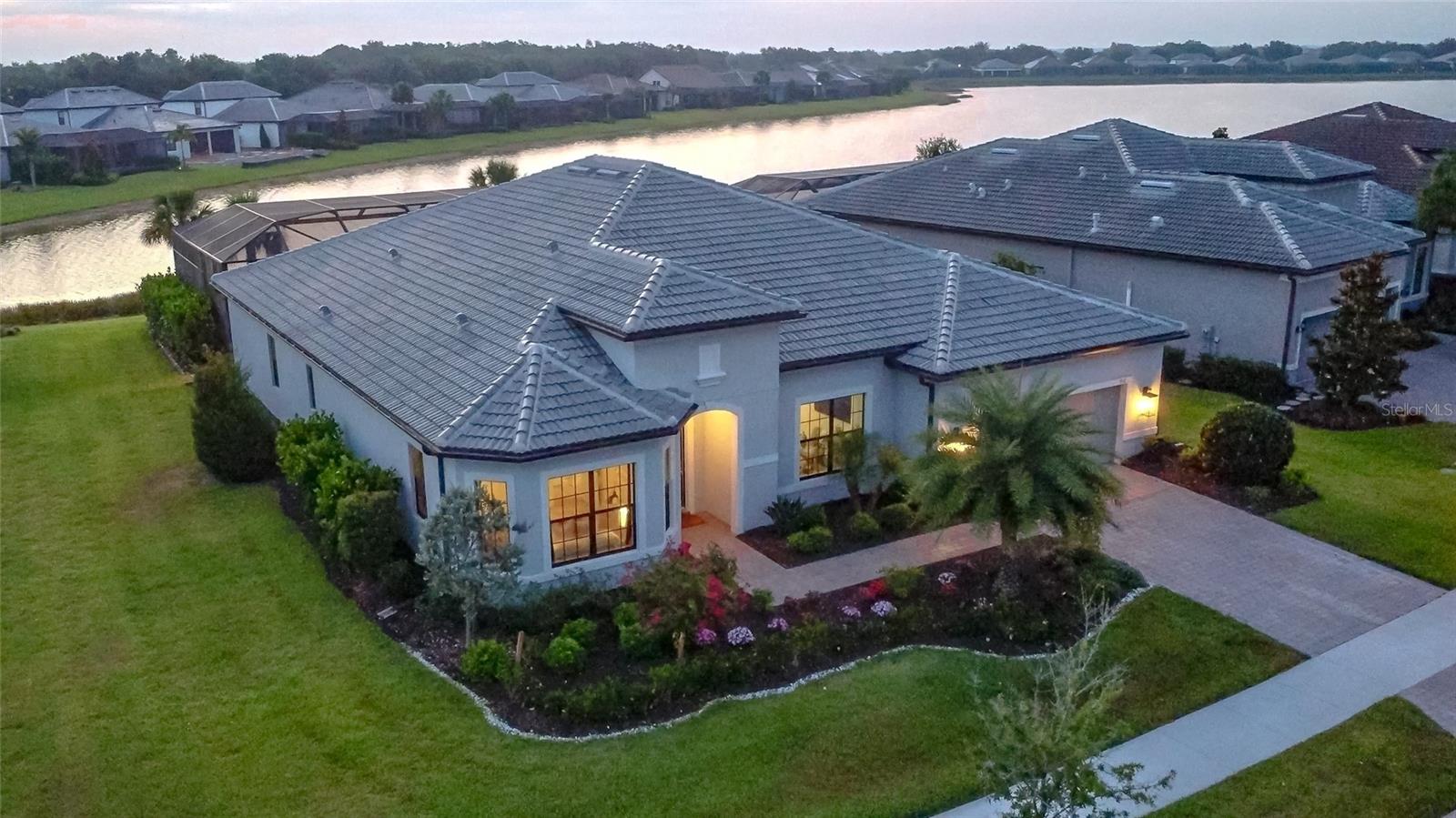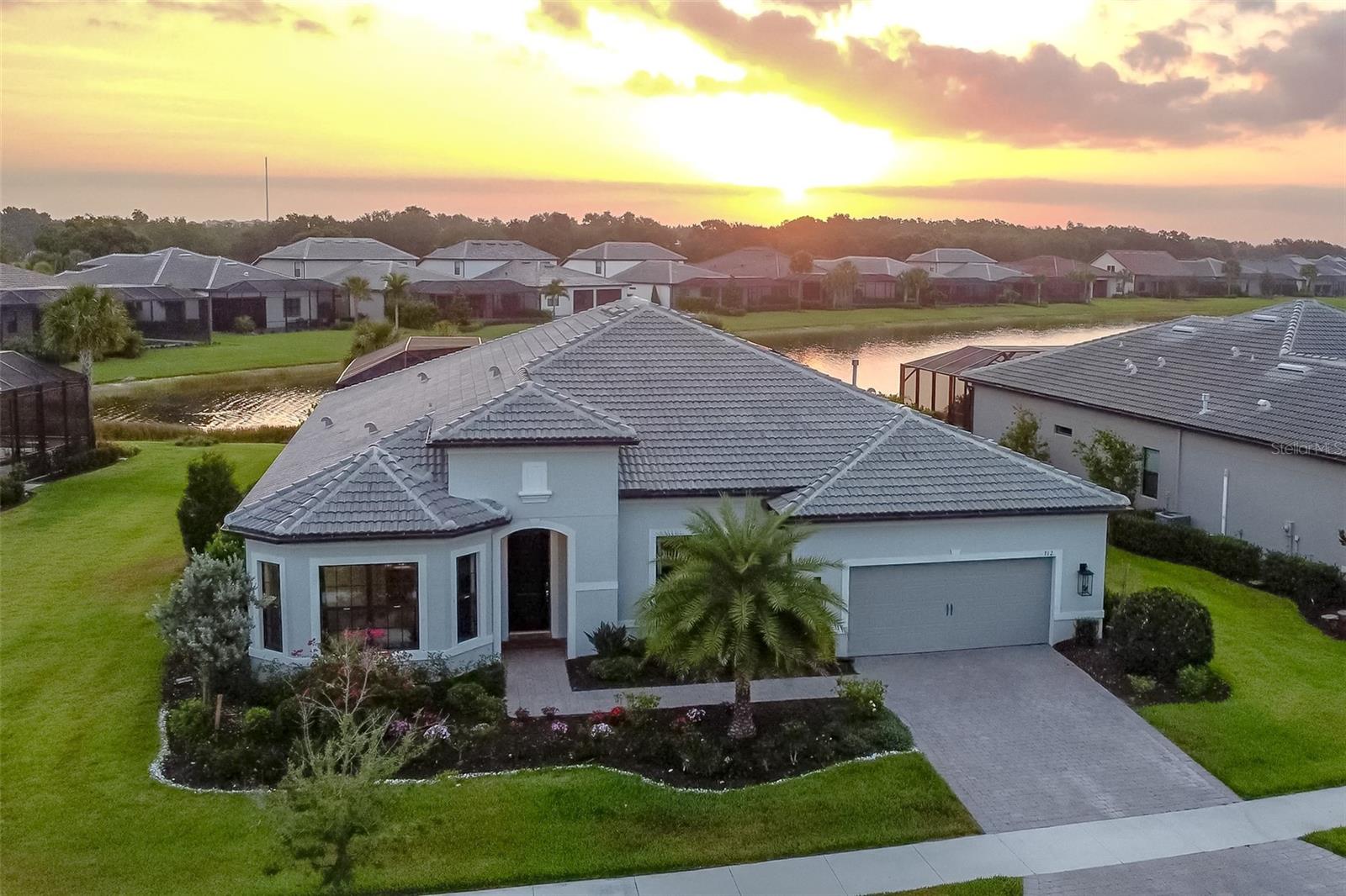 Discover Lakewood Ranch Waterside's sought after lifestyle in this exquisite 4-bedroom, 3.5-bath residence situated on a premier homesite with lake views in back and preserve in front. With 3,207 square feet of spacious living, the Camelot floor plan offers versatile space that can be tailored to your needs including a sizable flex room that can be used as a dining room, office, or playroom. Open to the great room, the kitchen boasts stainless appliances, leathered quartz counters, a gas cooktop, reverse-osmosis water system, a generous walk-in pantry, and a large center island. The great room, which also includes a spacious dining area, features a coffered ceiling and pocket sliders to the lanai. Impressive in size, the primary retreat showcases a tray ceiling, a generously-sized dressing room, double vanity, walk-in closet, and two linen closets. Step outside to the expansive lanai with clear view screens offering unobstructed lake views, a heated saltwater pool, and gas and water plumbing in place for an outdoor kitchen. Additional highlights include tandem garage space (allowing parking for a third car,) energy-efficient insulated windows, hurricane shutters, 12 x 24 tile throughout (no carpet in home), a utility sink in the laundry room, epoxy painted garage floors, a water softener and filtration system and more. Located close to a variety of shopping and dining destinations like Waterside Place, University Town Center, and Downtown Sarasota, this home is a perfect blend of elegance and convenience. Lakewood Ranch is the #1 bestselling community in the country close to medical facilities, beaches, and airports.