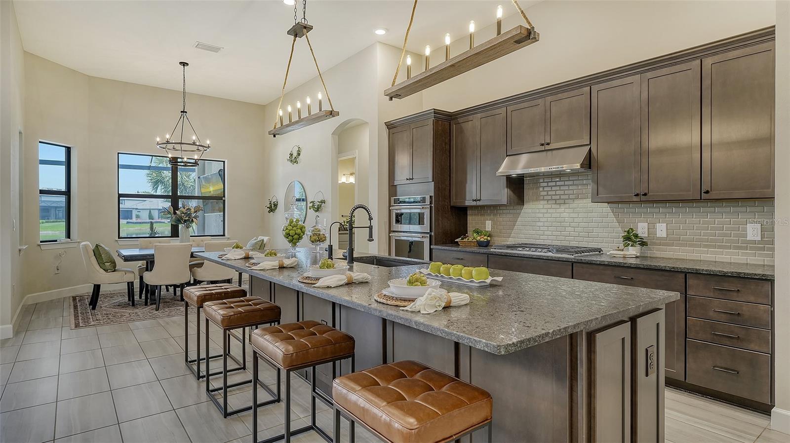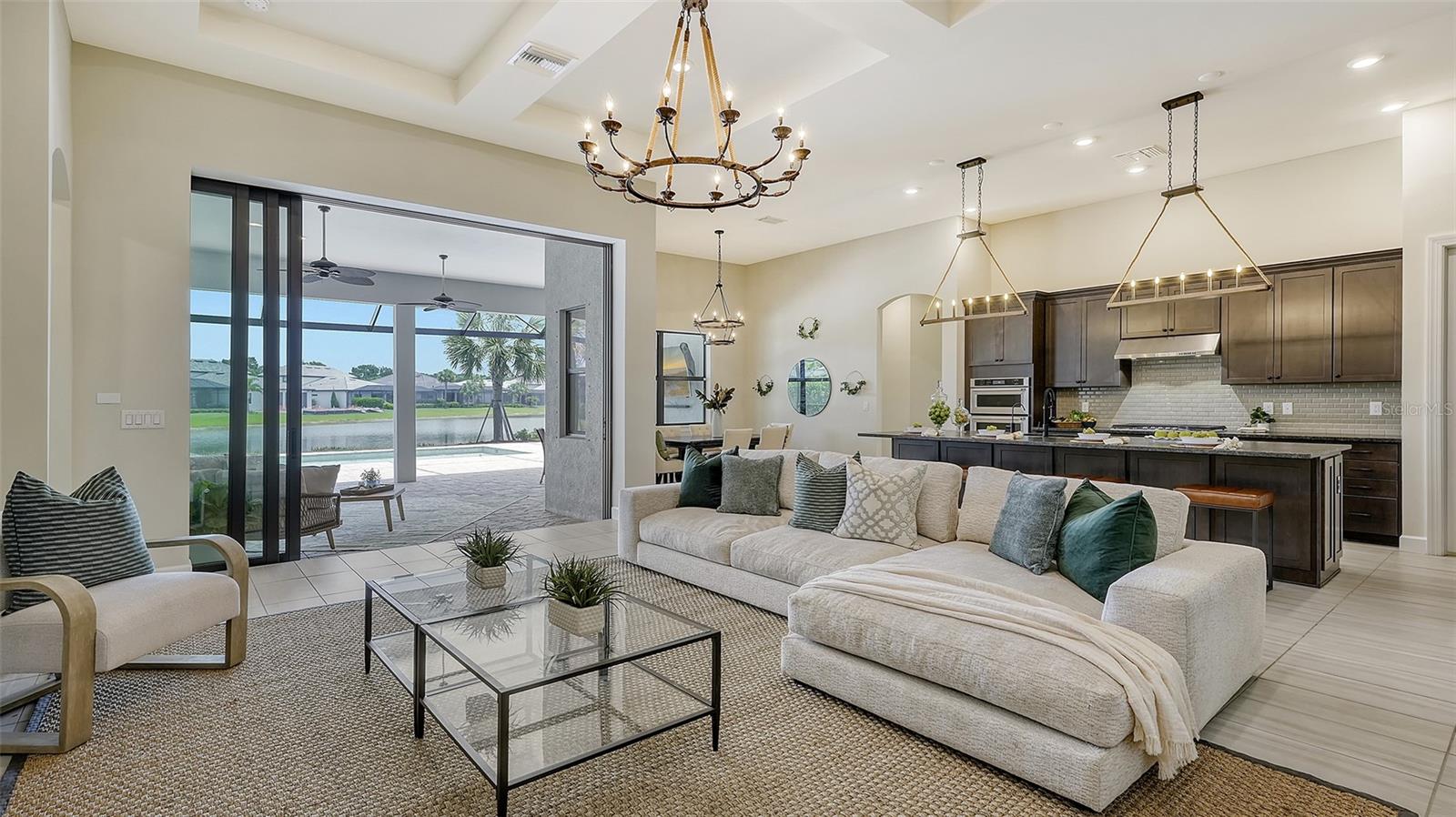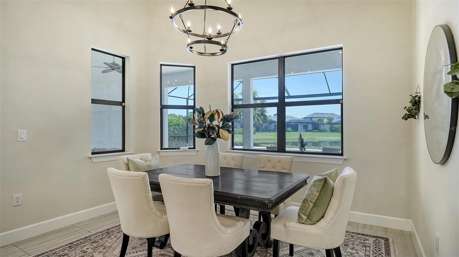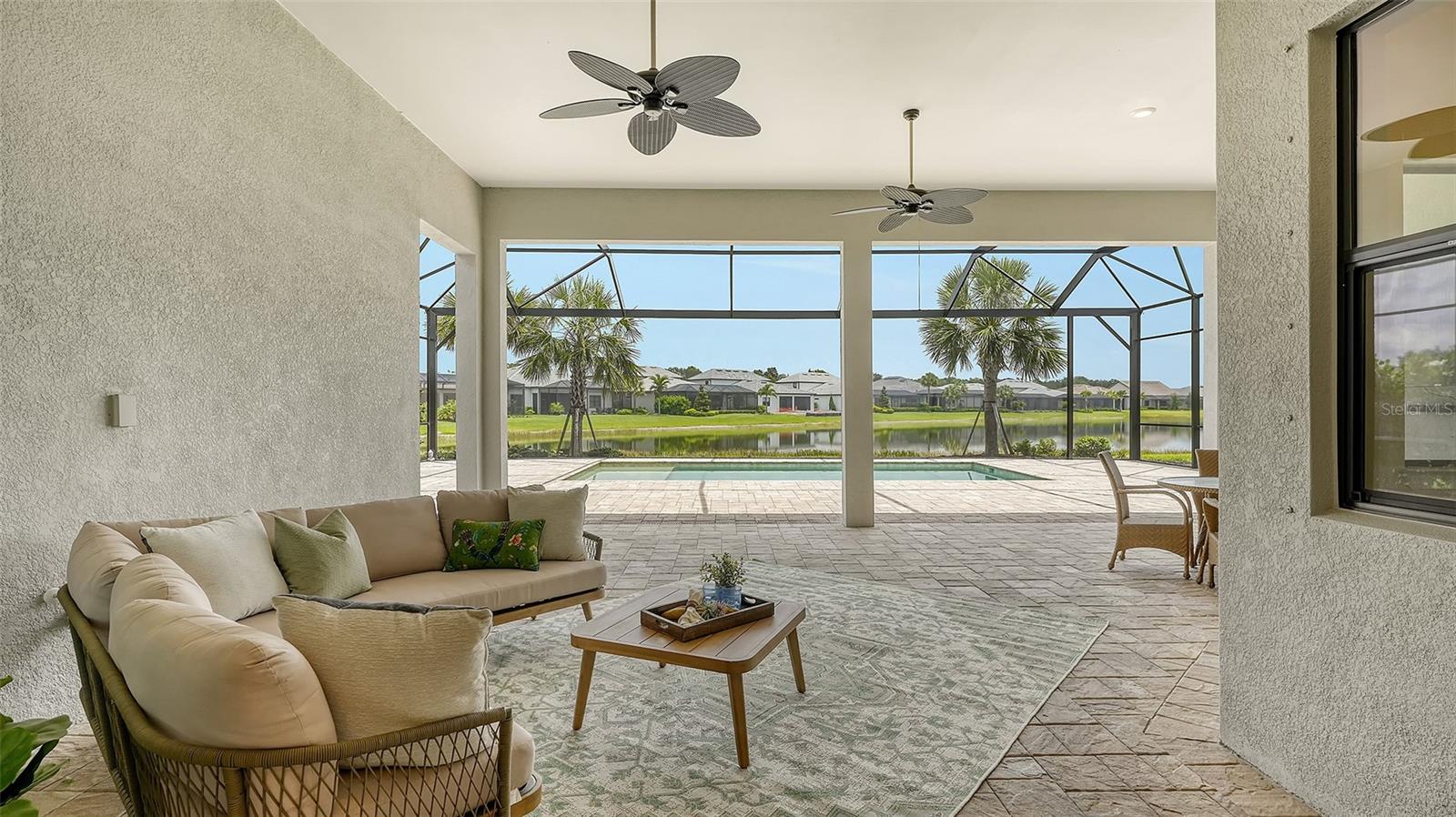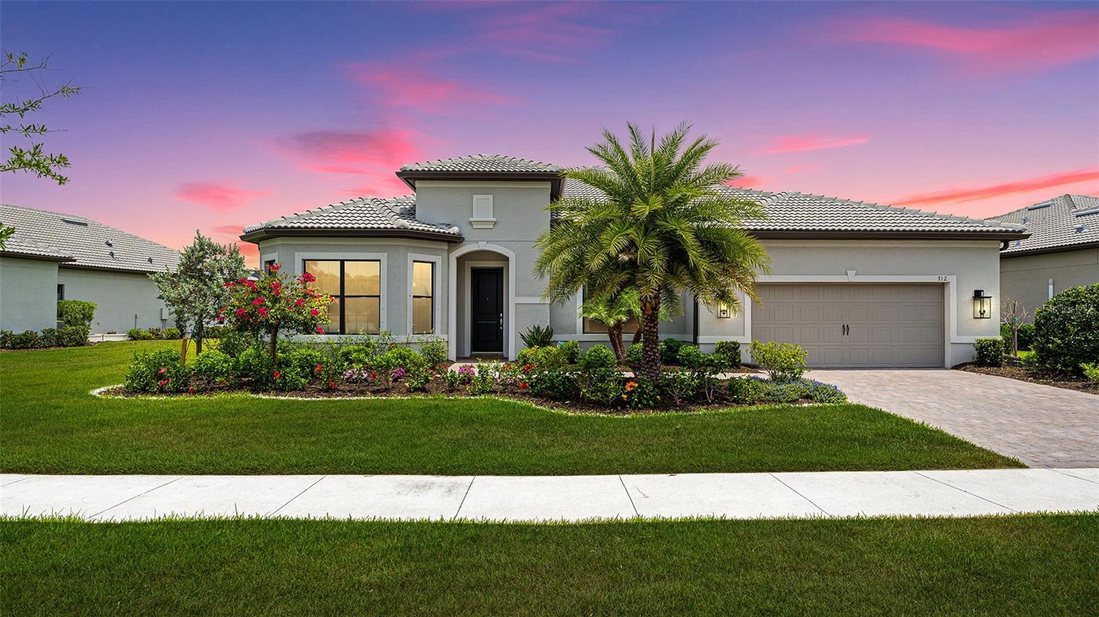 Discover Lakewood Ranch Waterside's sought after lifestyle in this exquisite 4-bedroom, 3.5-bath residence situated on a premier homesite with lake views in back and preserve in front. With 3,207 square feet of spacious living, the Camelot floor plan offers versatile space that can be tailored to your needs including a sizable flex room that can be used as a dining room, office, or playroom. Open to the great room, the kitchen boasts stainless appliances, leathered quartz counters, a gas cooktop, reverse-osmosis water system, a generous walk-in pantry, and a large center island. The great room, which also includes a spacious dining area, features a coffered ceiling and pocket sliders to the lanai. Impressive in size, the primary retreat showcases a tray ceiling, a generously-sized dressing room, double vanity, walk-in closet, and two linen closets. Step outside to the expansive lanai with clear view screens offering unobstructed lake views, a heated saltwater pool, and gas and water plumbing in place for an outdoor kitchen. Additional highlights include tandem garage space (allowing parking for a third car,) energy-efficient insulated windows, hurricane shutters, 12 x 24 tile throughout (no carpet in home), a utility sink in the laundry room, epoxy painted garage floors, a water softener and filtration system and more. Located close to a variety of shopping and dining destinations like Waterside Place, University Town Center, and Downtown Sarasota, this home is a perfect blend of elegance and convenience. Lakewood Ranch is the #1 bestselling community in the country close to medical facilities, beaches, and airports.