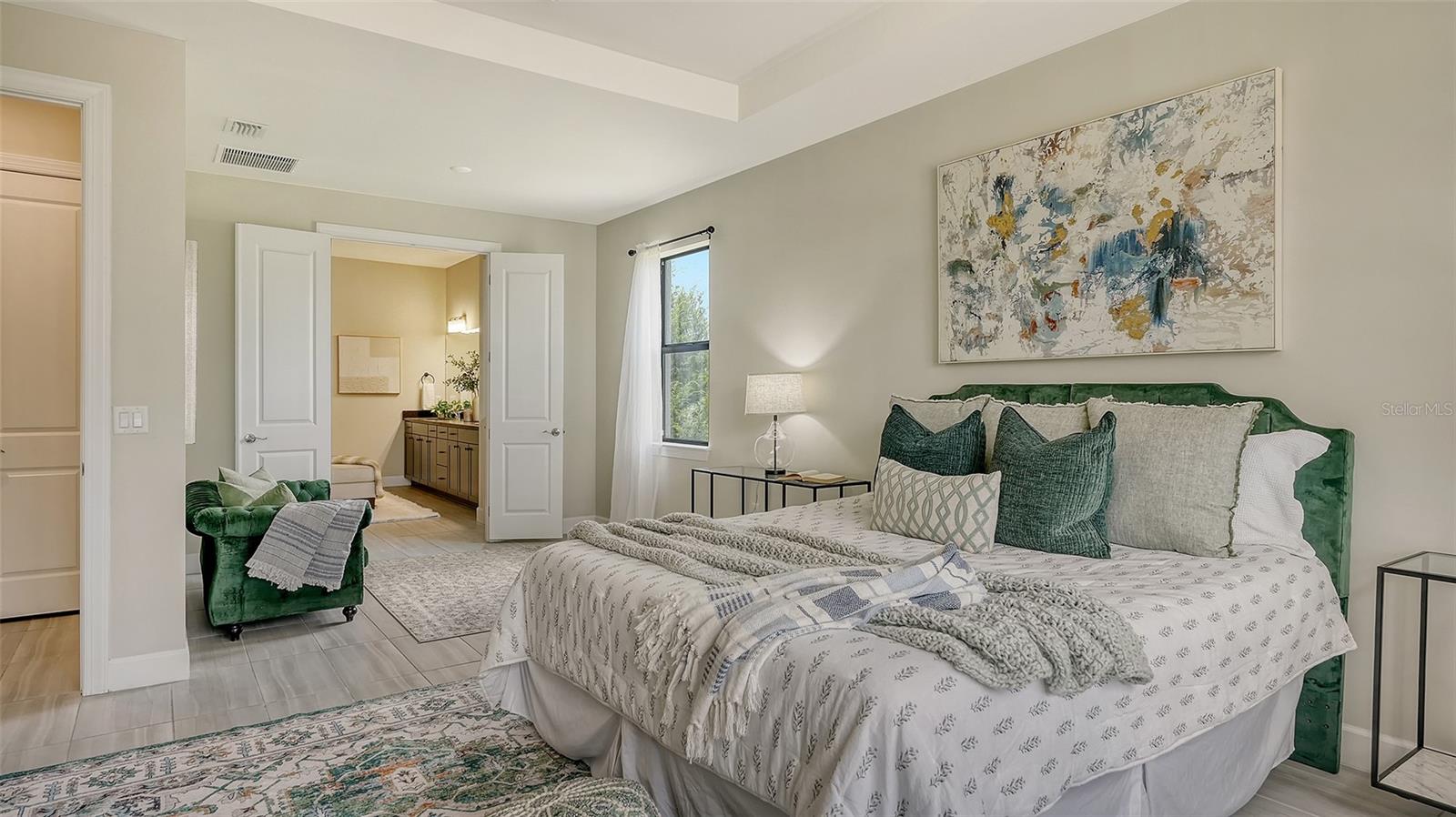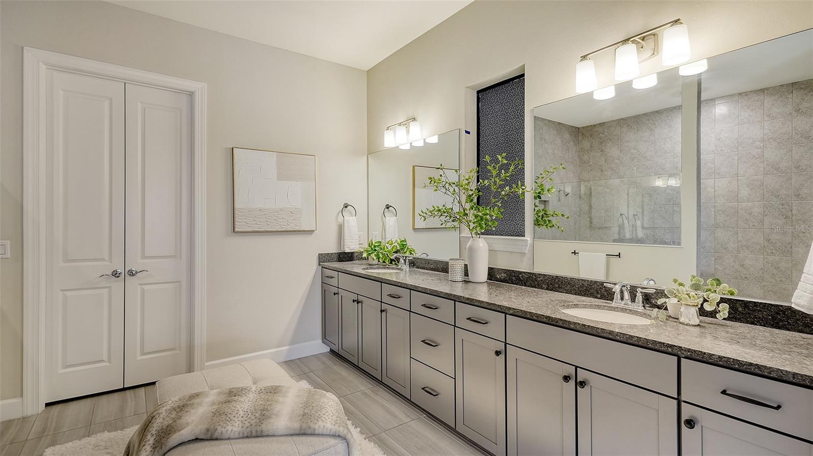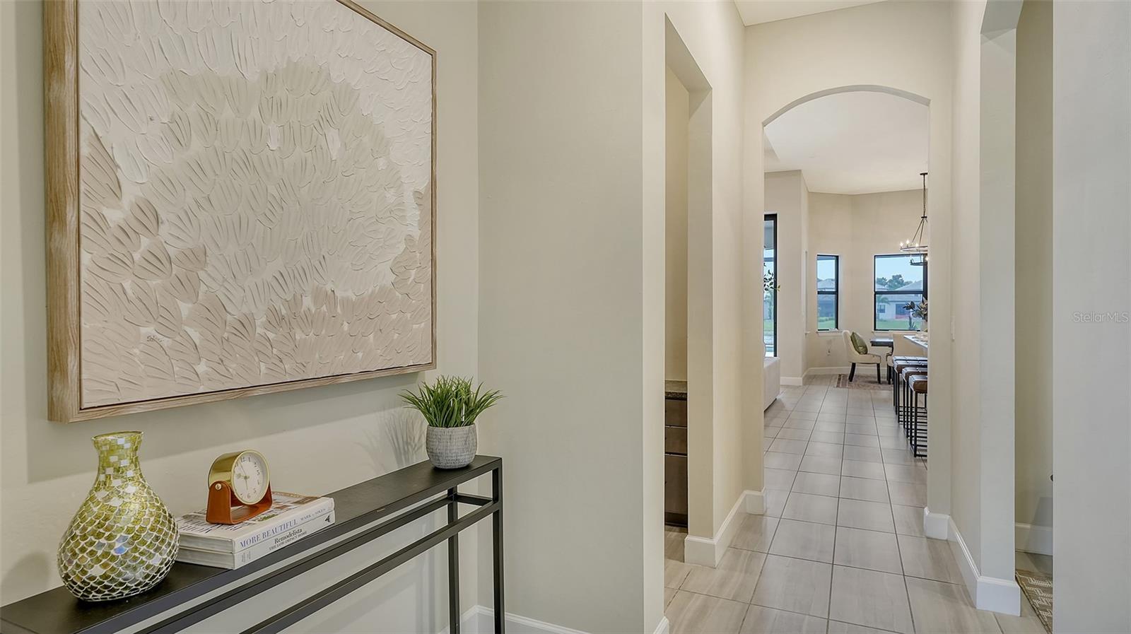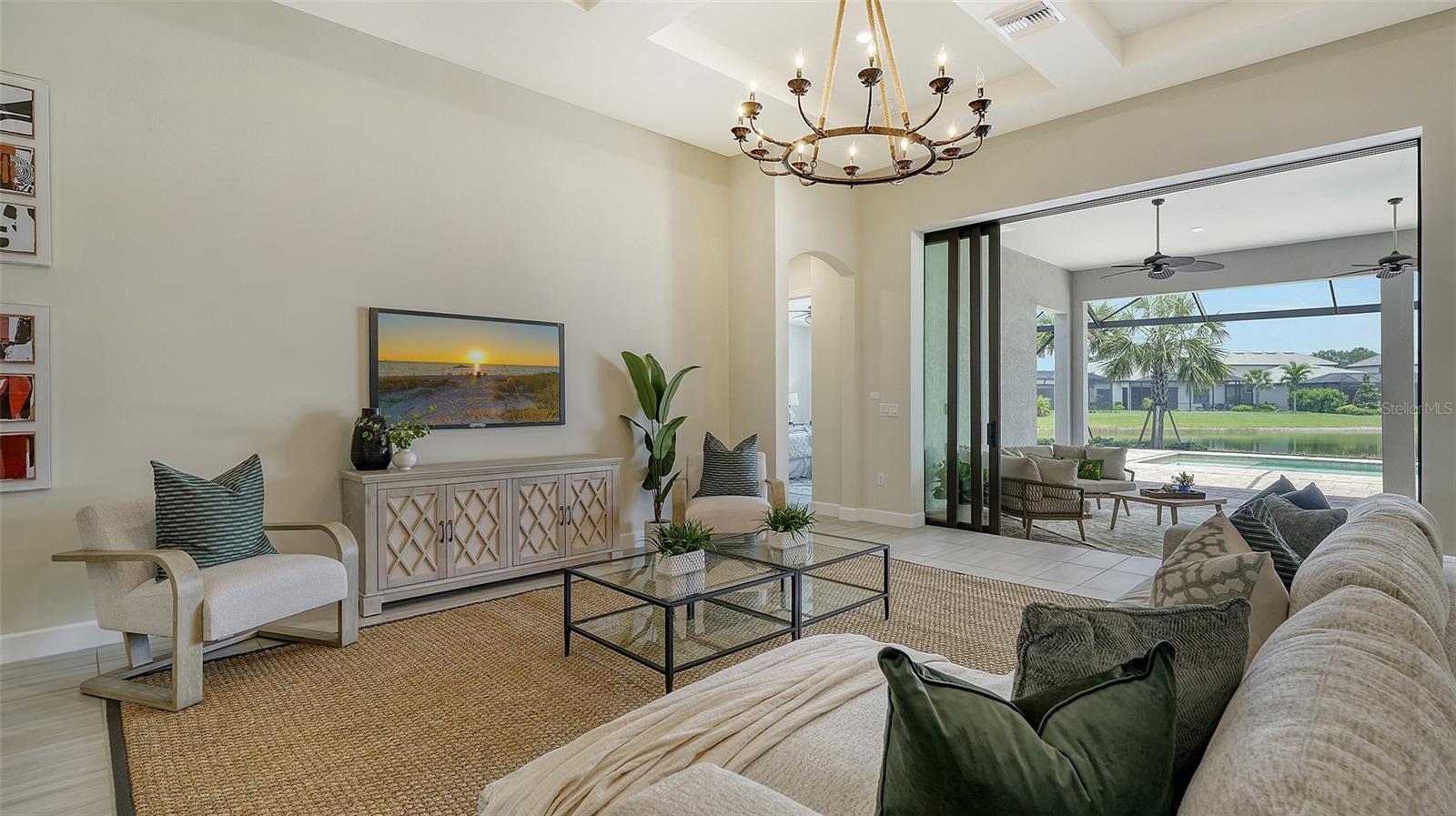 Discover Lakewood Ranch Waterside's sought after lifestyle in this exquisite 4-bedroom, 3.5-bath residence situated on a premier homesite with lake views in back and preserve in front. With 3,207 square feet of spacious living, the Camelot floor plan offers versatile space that can be tailored to your needs including a sizable flex room that can be used as a dining room, office, or playroom. Open to the great room, the kitchen boasts stainless appliances, leathered quartz counters, a gas cooktop, reverse-osmosis water system, a generous walk-in pantry, and a large center island. The great room, which also includes a spacious dining area, features a coffered ceiling and pocket sliders to the lanai. Impressive in size, the primary retreat showcases a tray ceiling, a generously-sized dressing room, double vanity, walk-in closet, and two linen closets. Step outside to the expansive lanai with clear view screens offering unobstructed lake views, a heated saltwater pool, and gas and water plumbing in place for an outdoor kitchen. Additional highlights include tandem garage space (allowing parking for a third car,) energy-efficient insulated windows, hurricane shutters, 12 x 24 tile throughout (no carpet in home), a utility sink in the laundry room, epoxy painted garage floors, a water softener and filtration system and more. Located close to a variety of shopping and dining destinations like Waterside Place, University Town Center, and Downtown Sarasota, this home is a perfect blend of elegance and convenience. Lakewood Ranch is the #1 bestselling community in the country close to medical facilities, beaches, and airports.