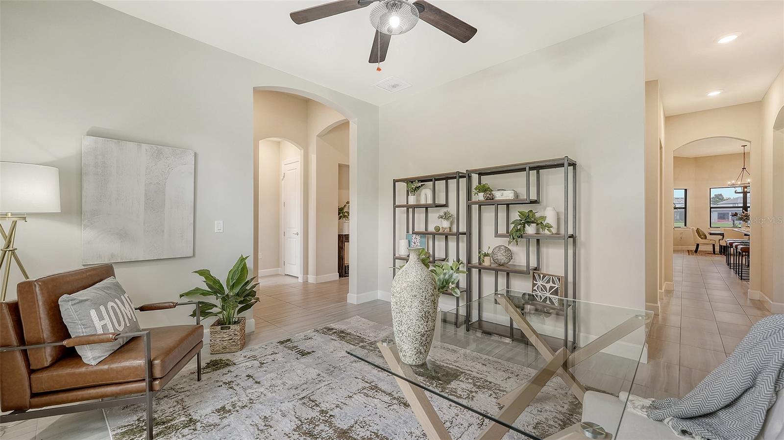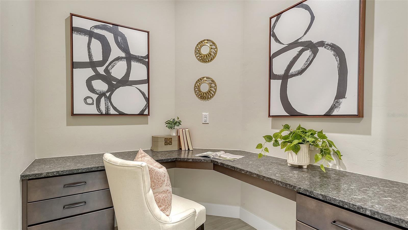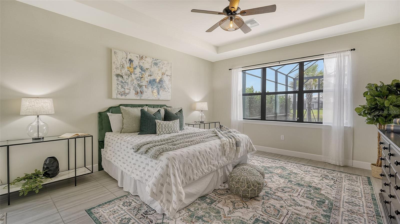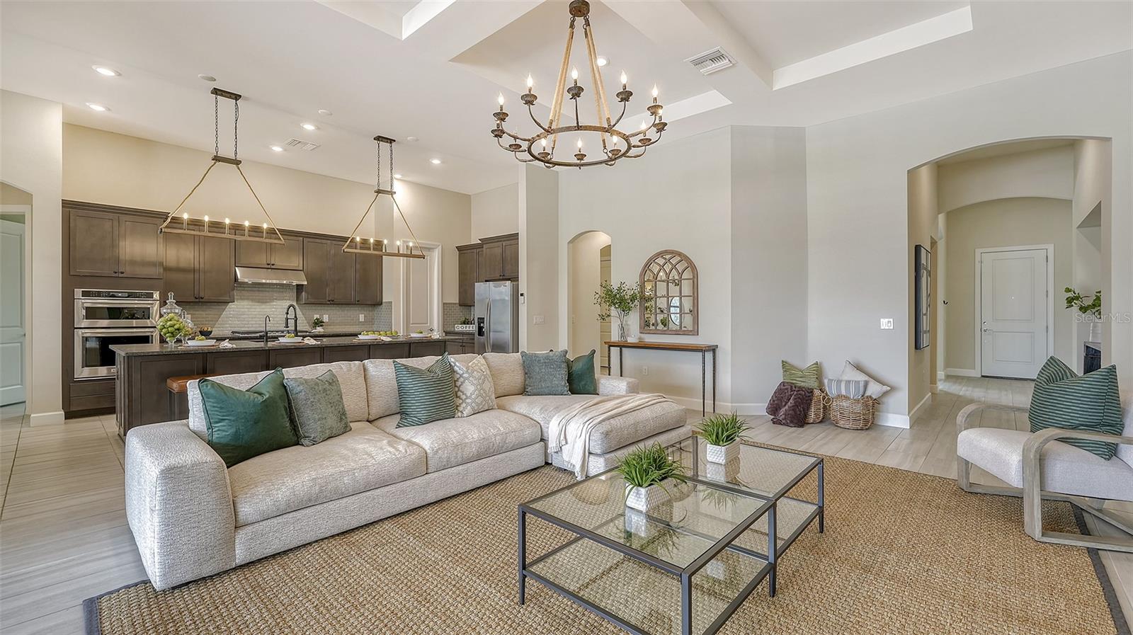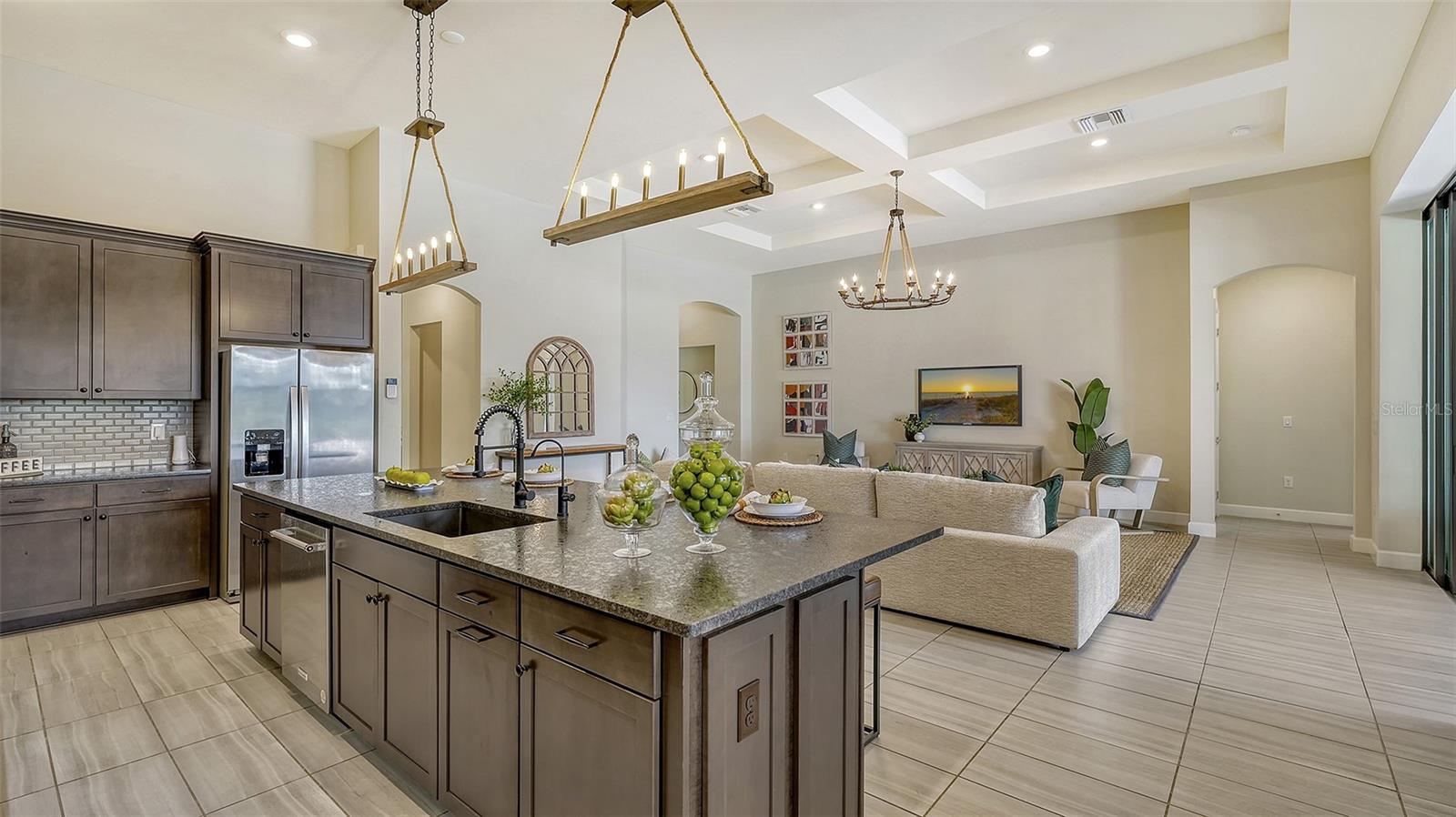 Discover Lakewood Ranch Waterside's sought after lifestyle in this exquisite 4-bedroom, 3.5-bath residence situated on a premier homesite with lake views in back and preserve in front. With 3,207 square feet of spacious living, the Camelot floor plan offers versatile space that can be tailored to your needs including a sizable flex room that can be used as a dining room, office, or playroom. Open to the great room, the kitchen boasts stainless appliances, leathered quartz counters, a gas cooktop, reverse-osmosis water system, a generous walk-in pantry, and a large center island. The great room, which also includes a spacious dining area, features a coffered ceiling and pocket sliders to the lanai. Impressive in size, the primary retreat showcases a tray ceiling, a generously-sized dressing room, double vanity, walk-in closet, and two linen closets. Step outside to the expansive lanai with clear view screens offering unobstructed lake views, a heated saltwater pool, and gas and water plumbing in place for an outdoor kitchen. Additional highlights include tandem garage space (allowing parking for a third car,) energy-efficient insulated windows, hurricane shutters, 12 x 24 tile throughout (no carpet in home), a utility sink in the laundry room, epoxy painted garage floors, a water softener and filtration system and more. Located close to a variety of shopping and dining destinations like Waterside Place, University Town Center, and Downtown Sarasota, this home is a perfect blend of elegance and convenience. Lakewood Ranch is the #1 bestselling community in the country close to medical facilities, beaches, and airports.