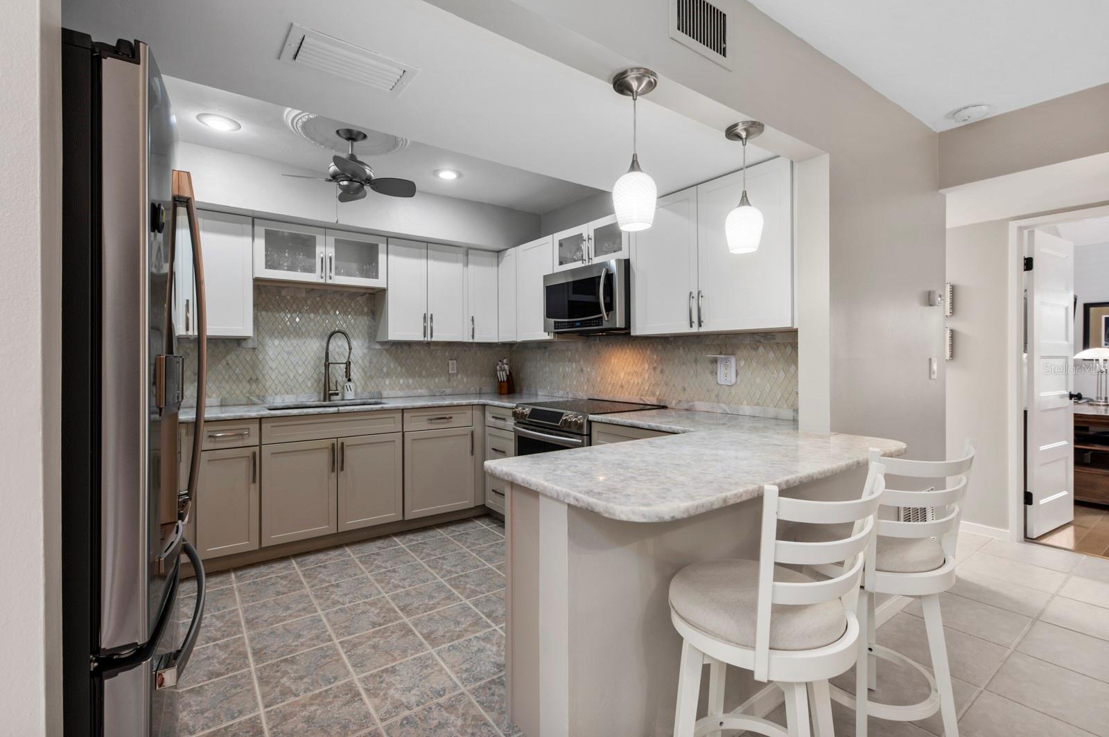 Experience the epitome of coastal living in the exclusive gated Pelican Cove Community. Revel in the natural light that pours in through the clerestory windows and expansive sliding glass doors, illuminating the impeccable craftsmanship within. The remodeled kitchen boasts tile floors, striking quartz countertops, and wood cabinets complemented by top-of-the-line stainless steel appliances. Modern conveniences abound, including BRAND NEW A/C system, upgraded electric panel, and refreshed bathrooms with stylish quartz vanities. Boat and kayak to Midnight Pass and have direct access to the gulf! Residents gain entry to the unique blend of natural habitats, miles of scenic trails, a fitness room, multiple heated pools and hot tub. There are six new pickleball courts and resurfaced tennis courts with active clubs for play. Many more recreational and cultural events are hosted year around. Robust live music, art and culture, and educational seminars are abundant in season. The community is also conveniently located with shopping and restaurants nearby.