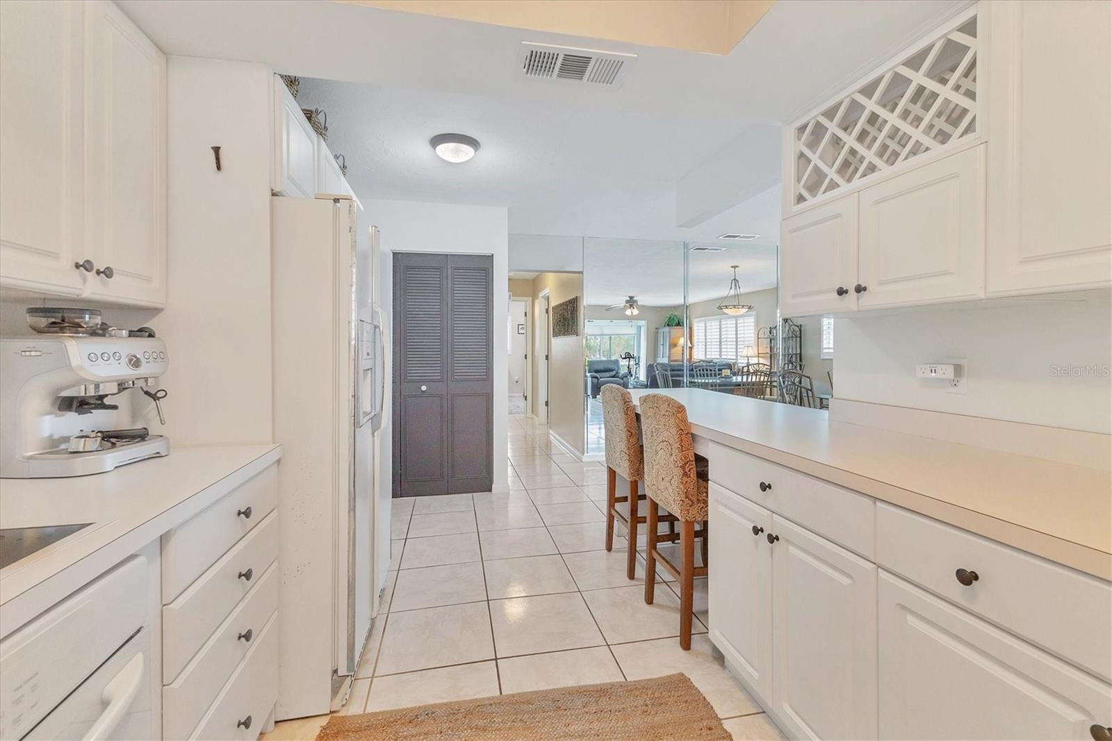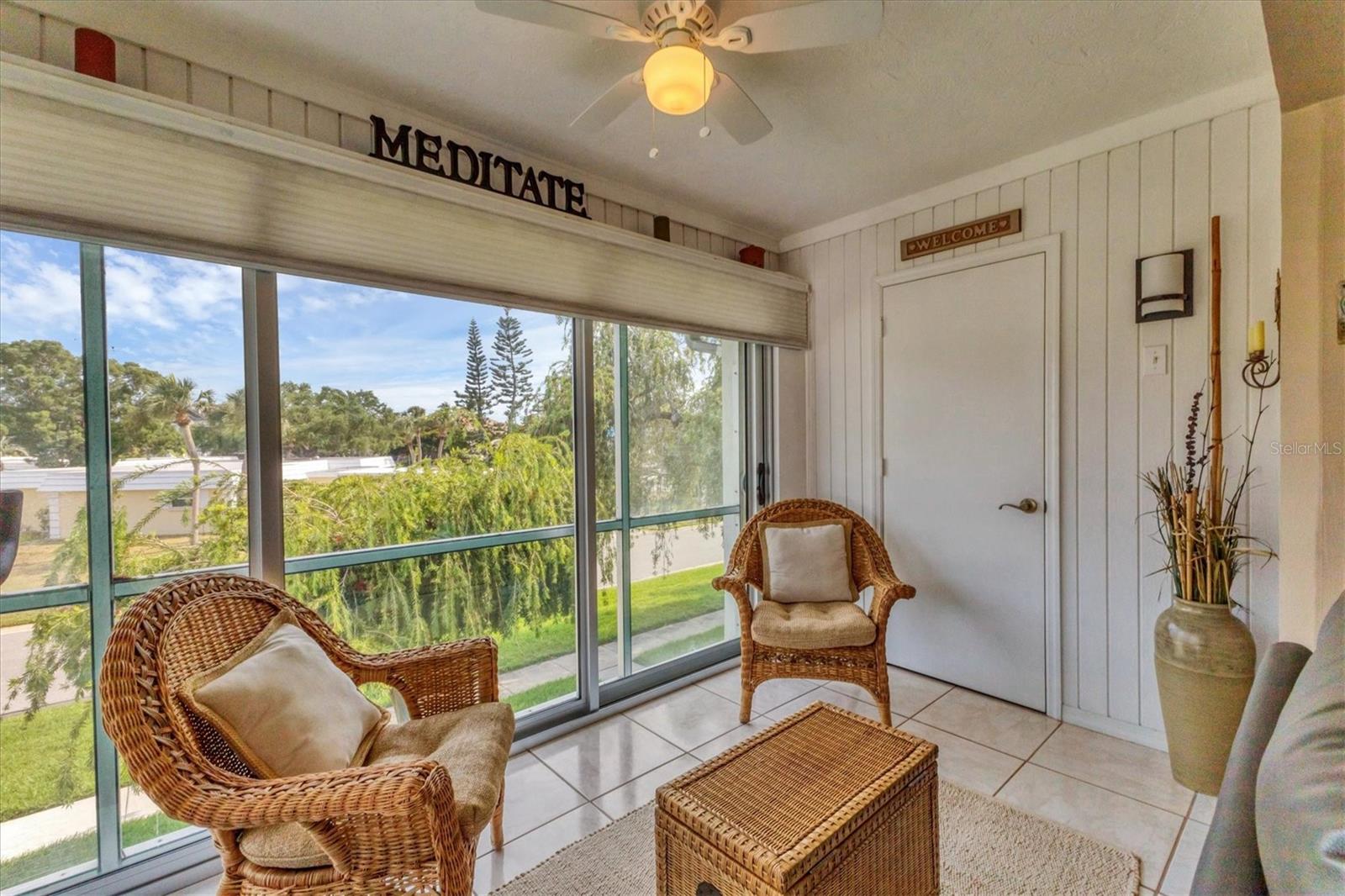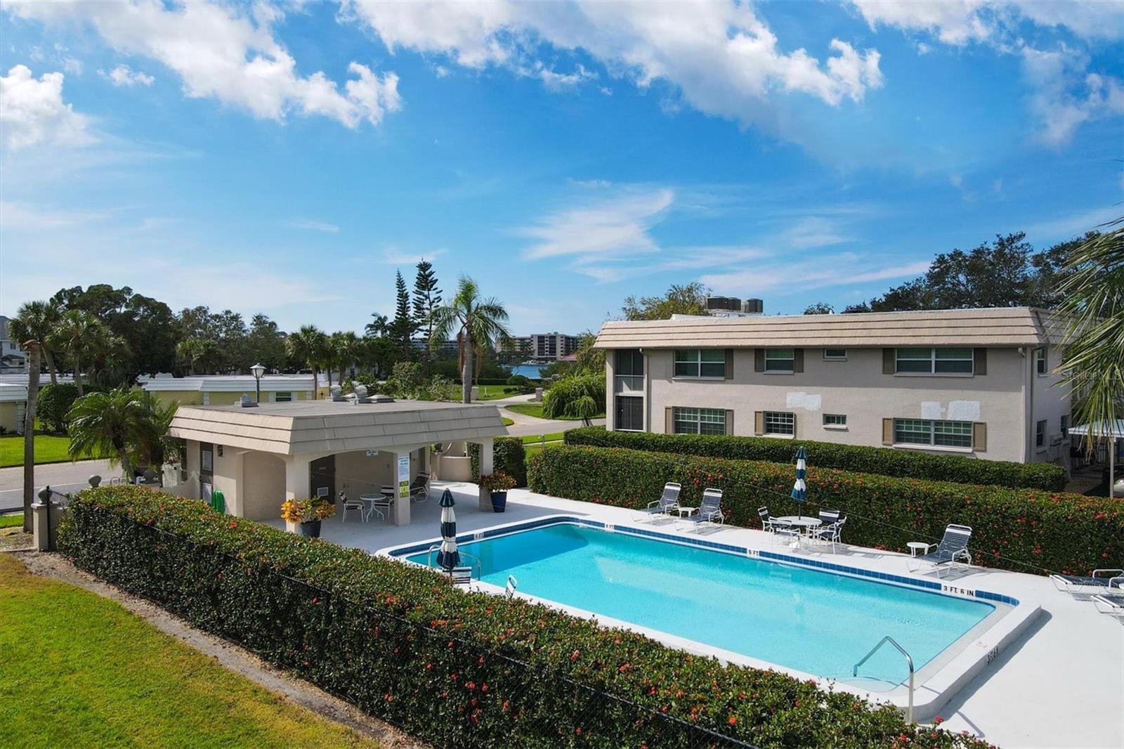 Step into this beautifully furnished, light-filled END UNIT condo and embrace the charm of coastal living. Located in the sought-after Baywood Colony Southwood community, this 2-bed, 2-bath condo is just a short bike ride over the bridge to Siesta Key’s world-famous beaches, shopping, and dining. Recent upgrades include NEW HURRICANE RATED WINDOWS throughout for safety and peace of mind. BRAND NEW Frigidaire refridgerator. The primary suite features plantation shutters, a spacious walk-in closet, and an en-suite bath. The open-concept living area also boasts plantation shutters and hurricane-rated windows, creating a bright and inviting space. Enjoy the convenience of a brand-new stacked Washer/Dryer and included appliances. The enclosed porch with hurricane-rated doors features a storage closet and opens to let in refreshing breezes. Assigned covered parking and ample guest spaces add to the convenience. This pet-friendly community offers a heated pool, tennis & pickleball courts, and a neighborhood access path to the 60 Acre Phillippi Estate Park where you can enjoy Outdoor Concerts, Art Shows, a weekly Farmers Market, Fishing, Birding, Canoeing, Kayaking, Fishing Piers, Indoor Rental Space, Both Paved and unpaved Nature Trails, a Canoe/Kayak Launch and Picnic Facilities. Ideal for seasonal snowbirds or as a vacation retreat, this condo is just minutes from downtown Sarasota and St. Armands Circle. Fish along the Intracoastal Waterway or unwind by the community fountain while taking in breathtaking sunsets.