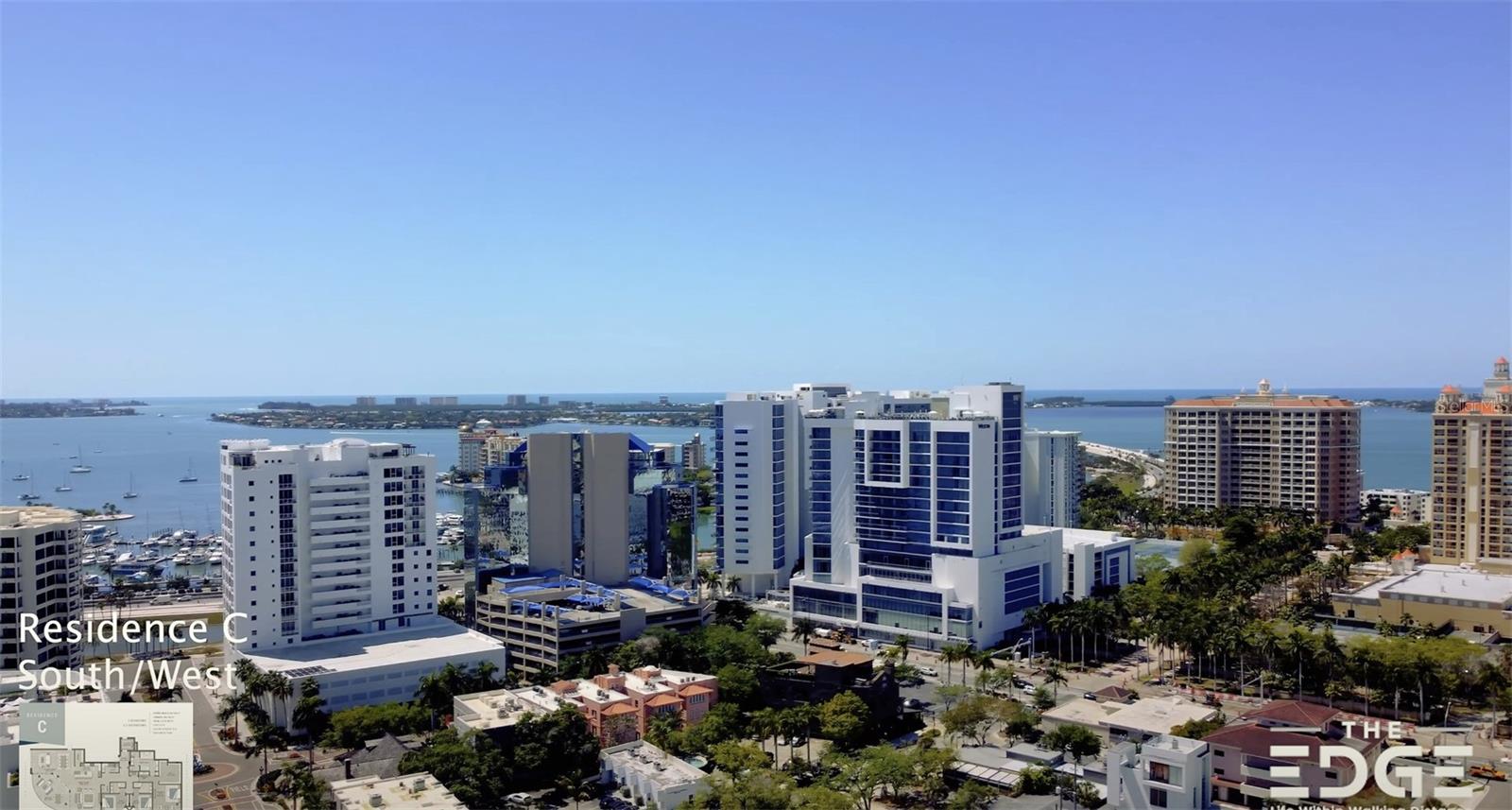 Under Construction. The 7th level C floorplan with south to south west to west views is where downtown Sarasota and the Bayfront unite. Featuring three bedrooms with three full bathrooms Plus half bath with 12' floor to ceiling glass to allow the Florida sunshine in! Enjoy morning coffee as the eastern sunrise comes shining through your living area. Equally gorgeous take in the orange hues and sunsets from your great room plus a 476 Sq Ft oversized balcony while enjoying your spectacular views of colorful downtown Sarasota. Residence includes 2 elevated parking spaces for auto security plus a building generator. A timeless, modern design with generous open light-filled spaces and grand outdoor living areas create an opulent yet casual lifestyle for twenty-seven astute owners. Here it all comes together. Every detail has been chosen with care. From your private in-suite elevator, towering floor-to-ceiling windows, and spa-like bath retreats. Life at The Edge can best be defined as an incomparable encounter. The Edge takes outdoor living to new heights with dramatic glass railings to maximize Sarasota's iconic views, amid exceptional amenities embrace Sarasota lifestyle. Located close to everything that matters. Sarasota is a destination of choice. Condensed walkable community for those that love to simplify their lives and go the urban life.