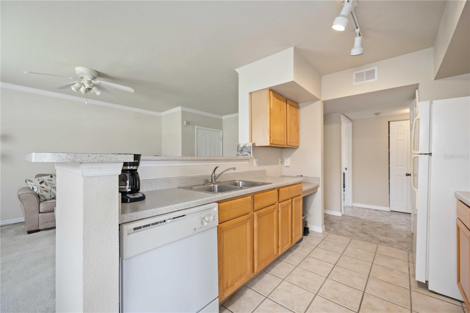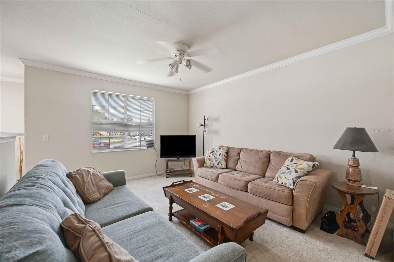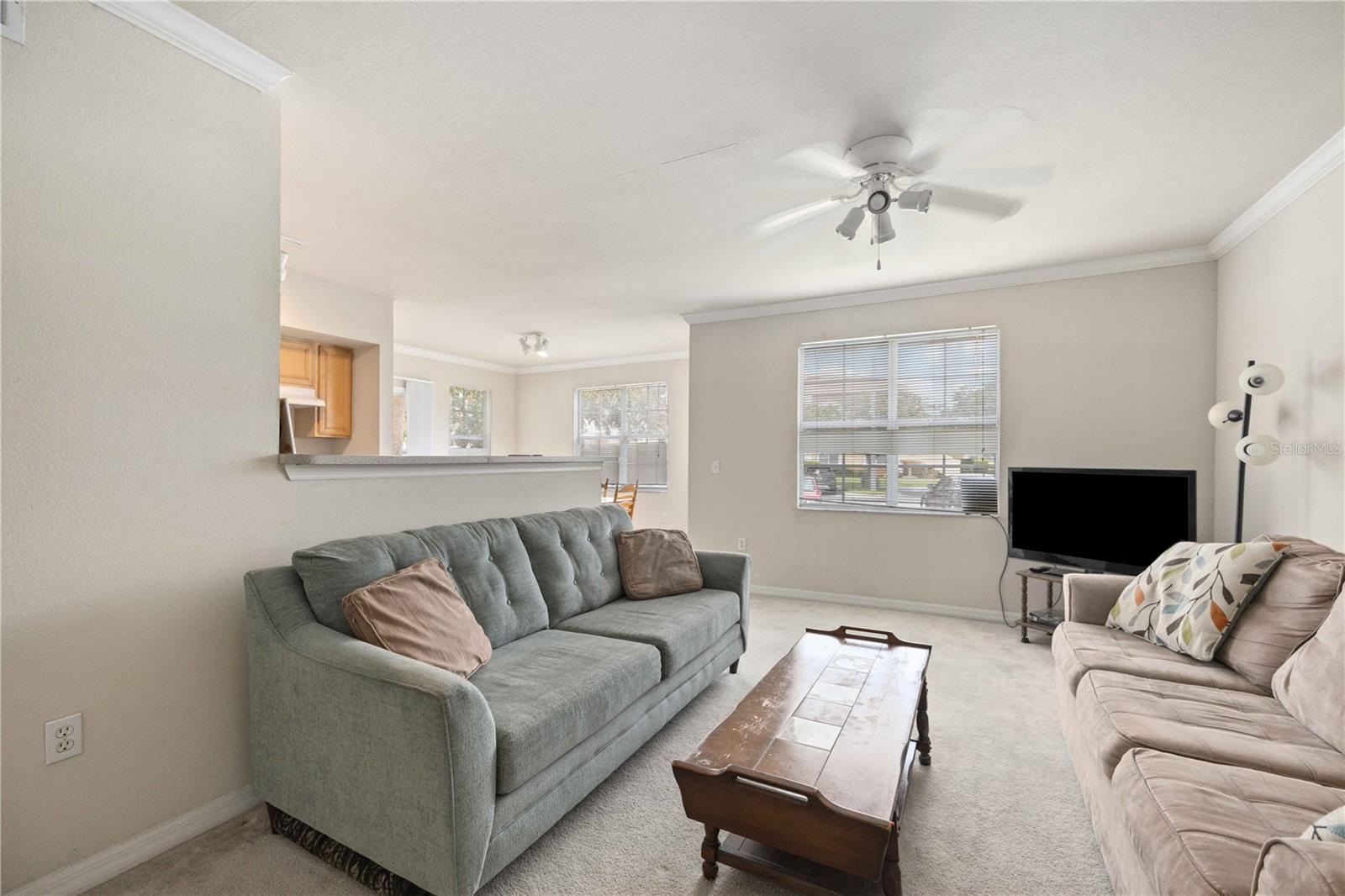 Welcome to the desired Villagio Condominiums, close to downtown Sarasota. This spacious corner unit, conveniently located on the first floor, comes furnished (negotiable) and features one of the highly sought after carports just around the corner. Enjoy beautiful pond views from your private entrance area. There is tile flooring throughout the hallway and bedrooms and carpet in the living room and dining room. The kitchen has hardwood cabinets and plenty of storage space and the breakfast bar adds to the open feel of the unit. The primary bedroom features an ensuite bathroom with a garden tub, a spacious walk-in closet as well as an additional office/storage nook. The two other bedrooms offer plenty of closet space and easy access to the guest bathroom. Enjoy a cup of coffee in the morning on your spacious covered lanai. You can access your outdoor oasis from the living room area as well as from the primary bedroom. Enjoy the convenience of your own washer and dryer in a designated laundry room. The Ac was replaced in 2021 and the hot water heater is less than a year old. The unit is nestled within the gated Villagio condominium association, minutes away from downtown Sarasota, shopping and beautiful beaches (Lido Beach & Siesta Key), with easy access to 301, I75 and public transportation. Community amenities include a heated resort-style pool, fenced in dog park, tennis/pickle ball court, playground and gym. All the tile roofs in the community were replaced in 2021 and they're currently painting all the building exteriors. Low monthly dues make this a great place to make your new home, seasonal get away or rental property. Call today to set up your showing or virtual tour.
