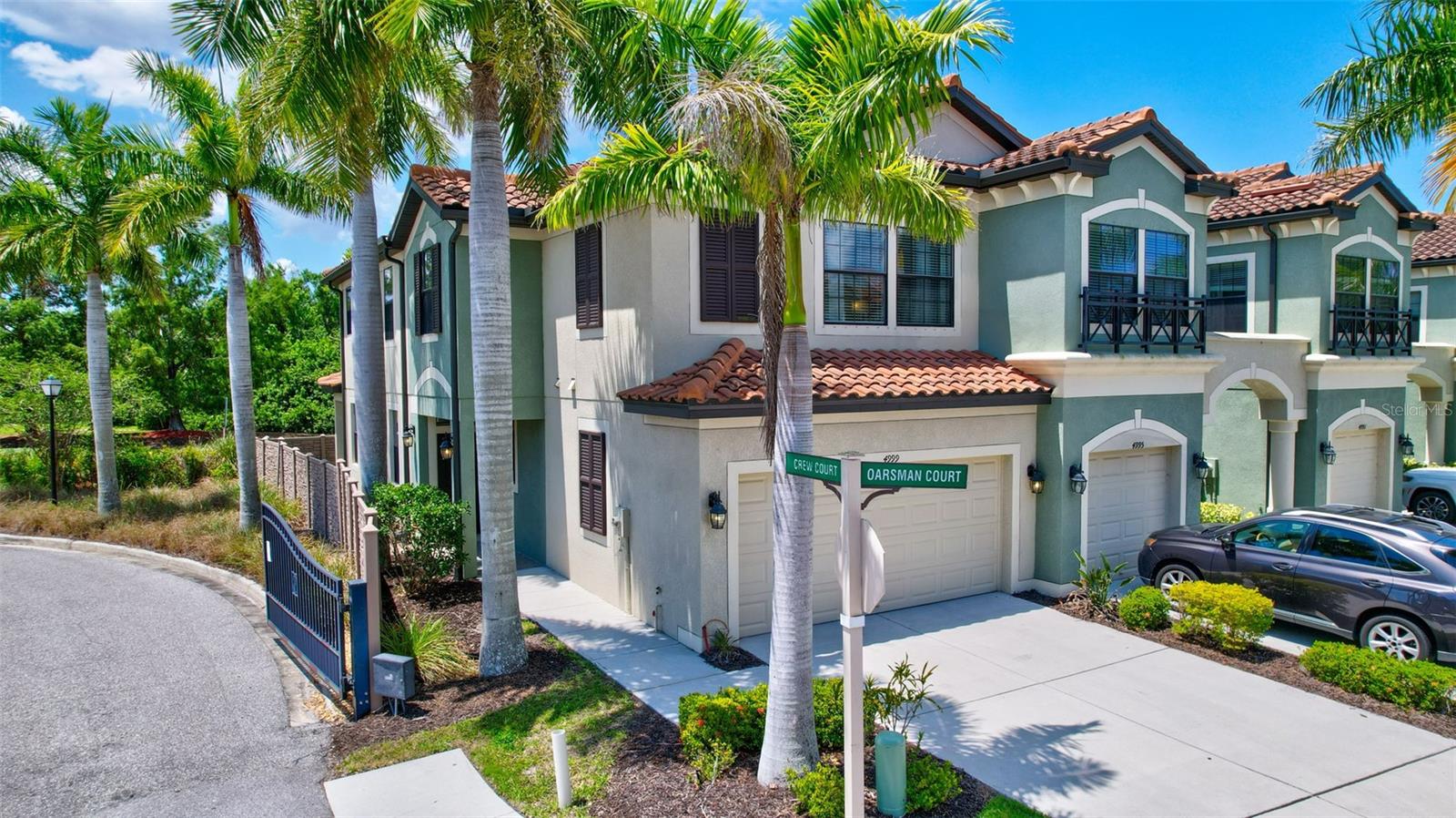 Sarasota University Pkwy amazing lifestyle! Muirfield Village is gated, pet friendly community located just 0.4 mile from Whole Foods, only seconds to UTC Mall, other stores, and fabulous restaurants; 2.6 mile to Benderson Park used for biking, jogging, rowing, or relaxing by the water. This park spreads over 600 acres, including a 400-acre lake, hosts special events including the Circus, Food and Music Festivals, fireworks, and world-class rowing events! Muirfield community has easy access to Honore, University Pkwy and I-75, downtown and beaches. This 2-story end unit townhouse features newly installed living, diningcroom and kitchen crown molding with lights, freshly painted interior walls, doors and baseboards, 3 bedrooms (all with walk in closets!), 2.5-bath, 2 car garage, outside patio, high ceilings, wood and tile floors, bonus/media room, great entertaining space, and open floor plan. 3 bedrooms, 2 bathrooms, and the bonus room is located on the second floor. Modern style kitchen, spacious dining room, half bath, living room, and laundry room is on first floor. New roof installed in July 2024! Come to view this jewel in central Sarasota! This unit is by far one of the most beautiful and clean you can find on the market! Photos show furnished rooms from the time it was occupied by the tenant. Hardwood flooring was just polished and resealed.