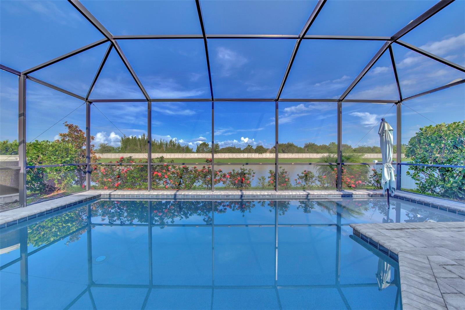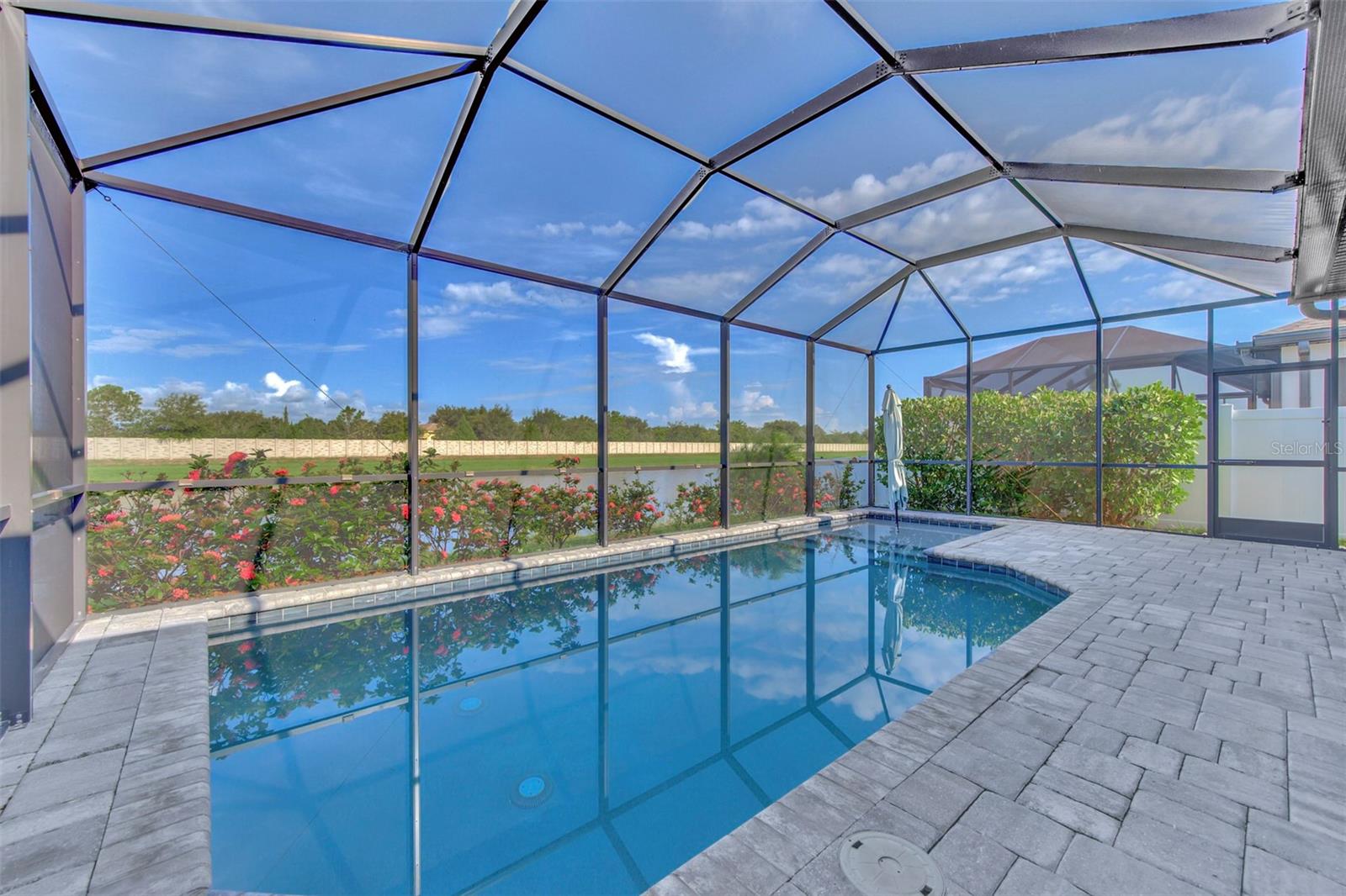 One or more photo(s) has been virtually staged. Back on the market, buyer changed their mind. Welcome to this stunning single-family home located in the secluded community of Hidden Creek. This 4-bedroom, 2 bathroom home boasts a heated salt water pool with a sun shelf perfect for sunbathing and a private water view. As you enter the home, you will discover a popular open floor plan with a contemporary coastal décor throughout. The kitchen features a large center island with quartz countertops and plenty of cabinet space. The primary ensuite bedroom features a large walk-in closet and a spa-like bathroom with a walk-in shower. This home also offers two living areas, perfect for entertaining or providing one area for the kiddos and another for adults. Hidden Creek community provides families with a large recreation center a covered pavilion, a tot lot, a grill park, picnic area, a sports field, and an extensive dog or human walking trail around the community. Centrally located to everything and we mean everything! Nathan Benderson Park, a 600 acre park that is nationally and internationally recognized as a top competitive sprint rowing course and regatta center. Additionally there is the Mote Marine Aquarium and research center, the University Town Center, which provides upscale shopping and dining, you are minutes from downtown Sarasota, Gulf Beaches, the community of Lakewood Ranch and interstate 75. What more can you ask for?