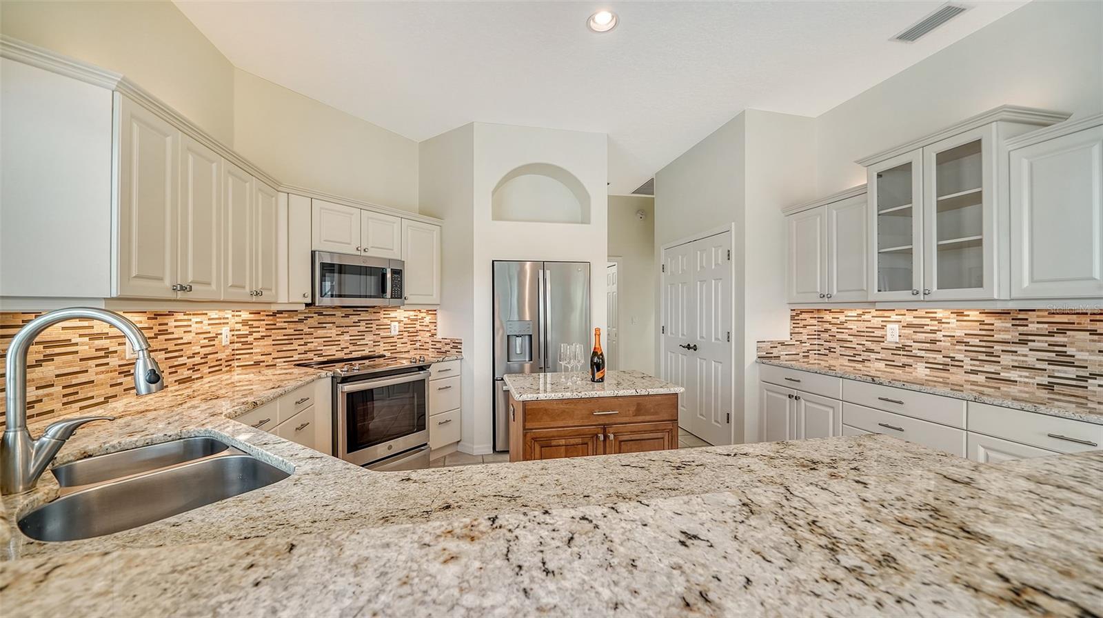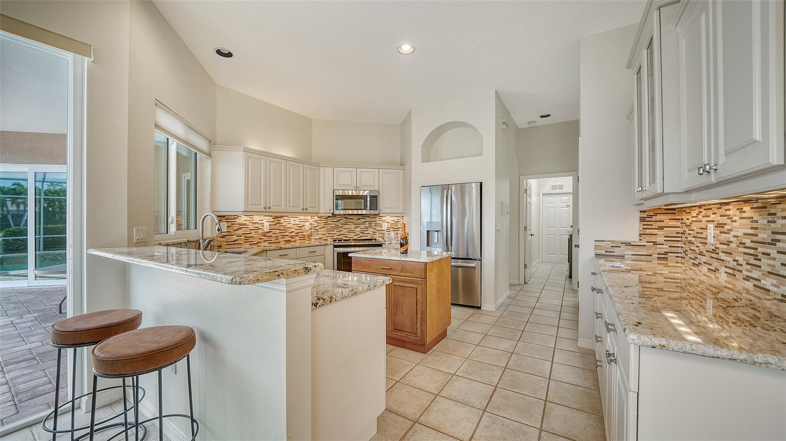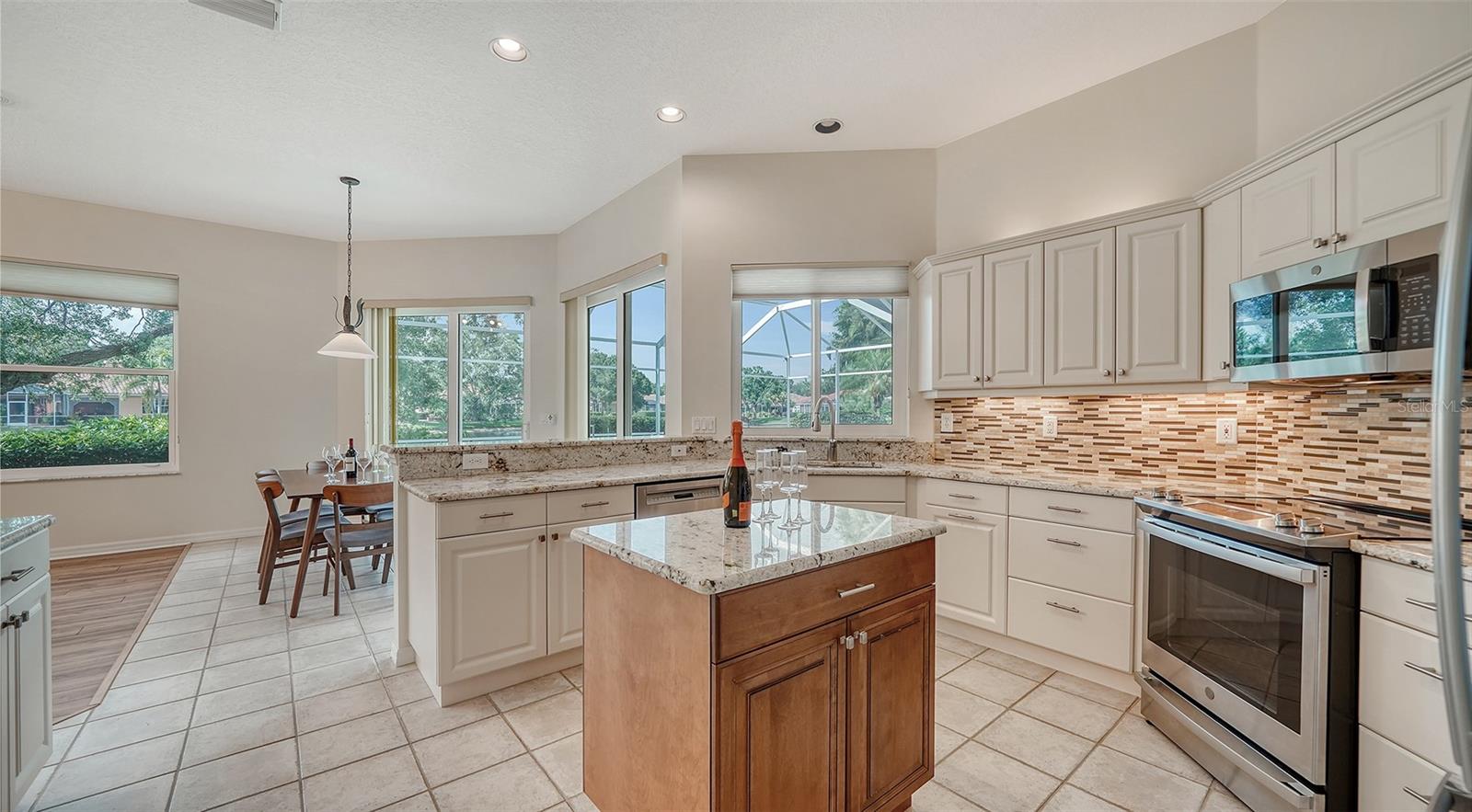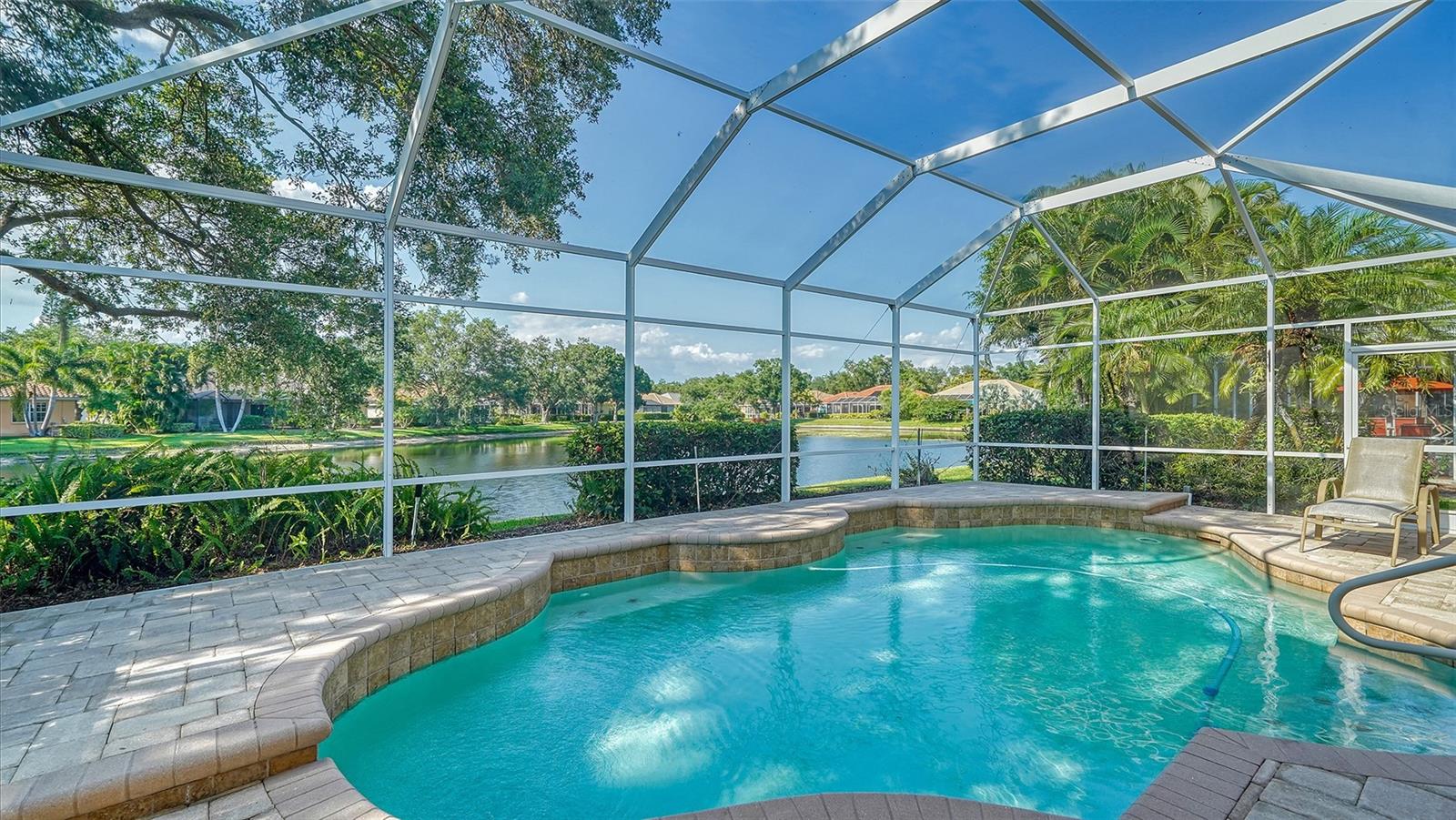 Inviting Lakefront 3bd/2.5ba/office/3 car garage Pool Home Welcome to a beautifully maintained home in the Oakleaf HOA, a tranquil and sought-after neighborhood. This delightful property offers a perfect blend of comfort, style, and convenience, making it an ideal choice. Key Features: Spacious Living Areas: Open-concept layout with great natural light and a warm and inviting atmosphere. The living room opens to the lanai and pool, perfect for indoor-outdoor entertaining and relaxation. Renovated Kitchen: The recently updated kitchen with granite counters, glass tile backsplash, and soft close cabinetry is ready for its new owners and flows into the adjacent dining area and family room perfect for meals and after dinner relaxation. Bedrooms and Bathrooms: The property includes three generously sized bedrooms, each with ample closet space. The owners’ suite features an en-suite bathroom with a luxurious soaking tub and a separate shower. An additional full bathroom and a half bath ensure convenience for family and guests. Outdoor Space: You will enjoy the large, maturely landscaped front yard. The enclosed lanai, large swimming pool, outdoor shower, and patio area is an ideal combination for barbecue gatherings and alfresco dining. Location: Situated in a serene and friendly neighborhood, the home is within top-rated schools, parks, and local amenities. Zoned schools are Ashton elementary with rating 10/10, Sarasota middle with gifted Panther academy, Sarasota High. Legendary Pine view magnet school is minutes away. Easy access to major roads and highways makes commuting a breeze. Just minutes to Siesta Key Beach and Downtown Sarasota. Additional Highlights: Office with built in desk and shelving Waterview and frontage along the HOA lake / pond Remodeling and upgrades: Roof 2016, family room, pool 2013, kitchen 2014, AC and master bathroom 2015, PGT Windows & Sliders, Impact resistant, insulated 2017, garage 2017-18, paver driveway & walkway 2017, Appliances 2019-22, lights 2023. Attached 3-car garage with additional storage space HOA has a playground and a basketball hoop