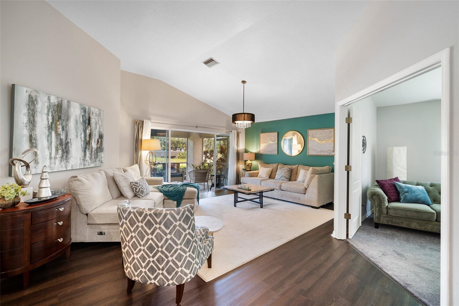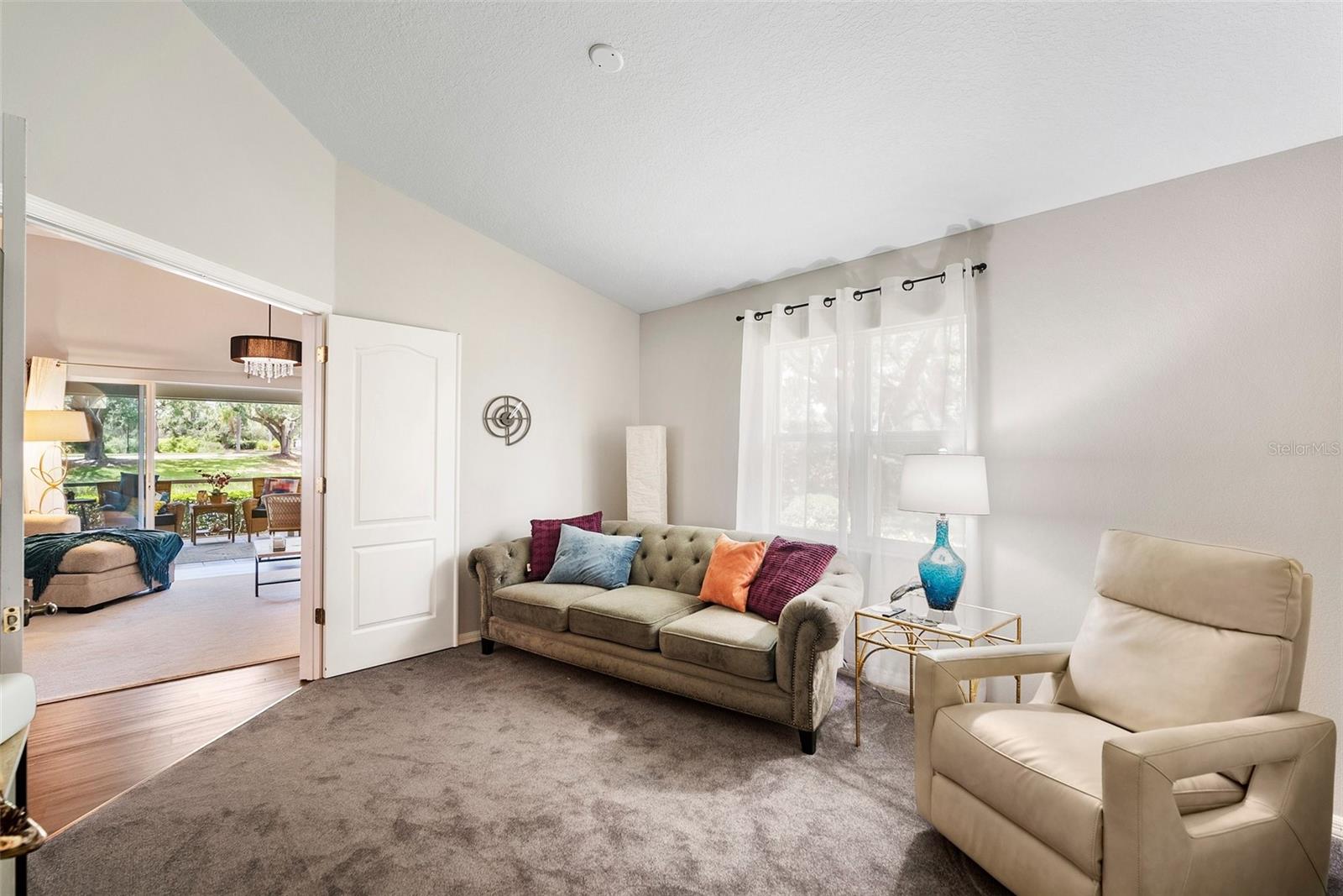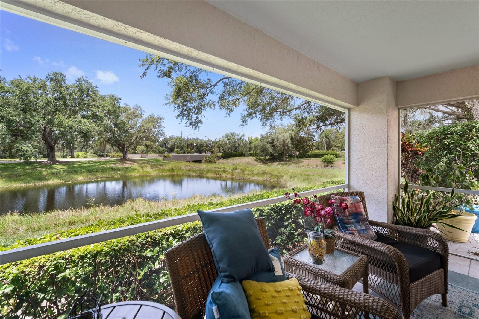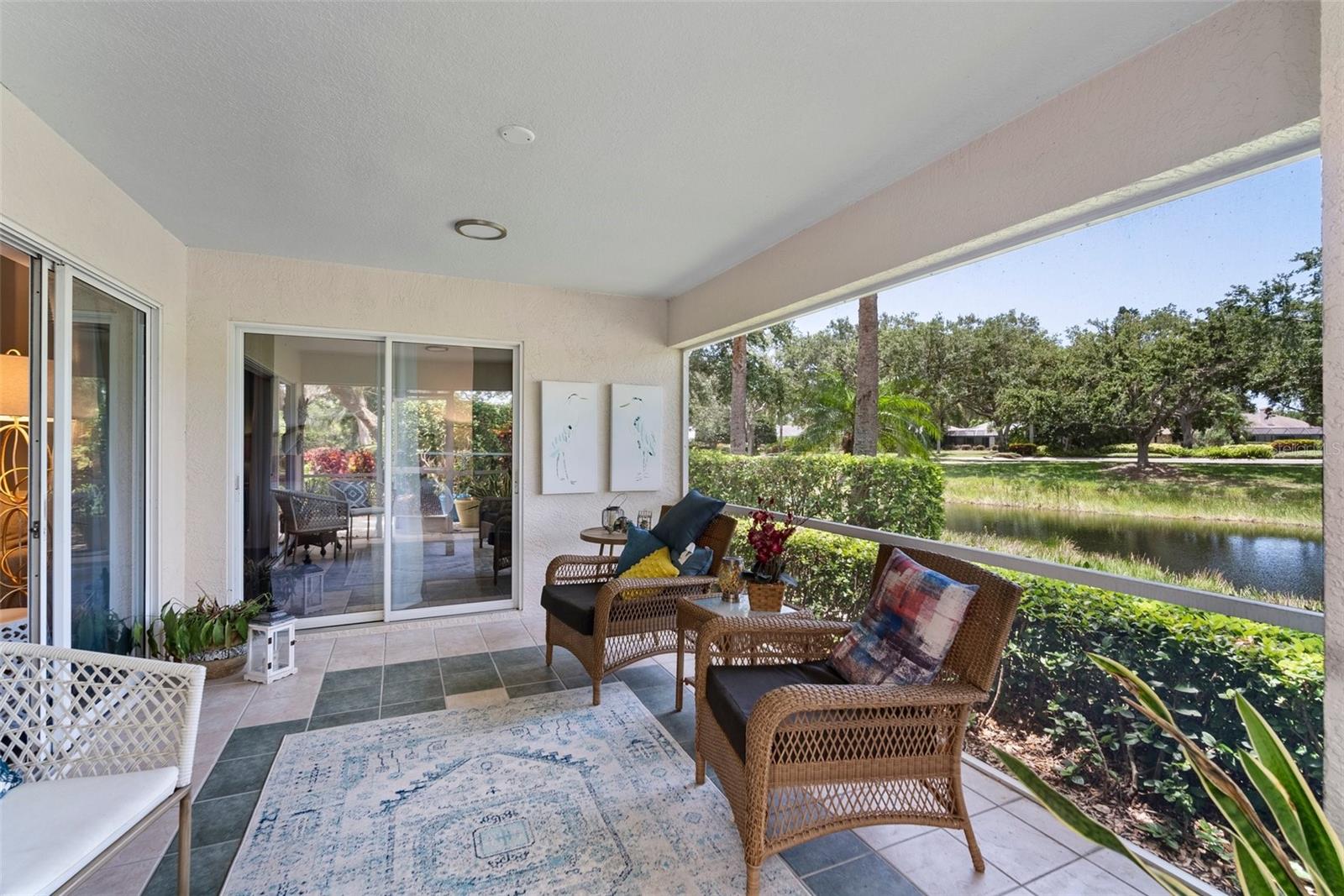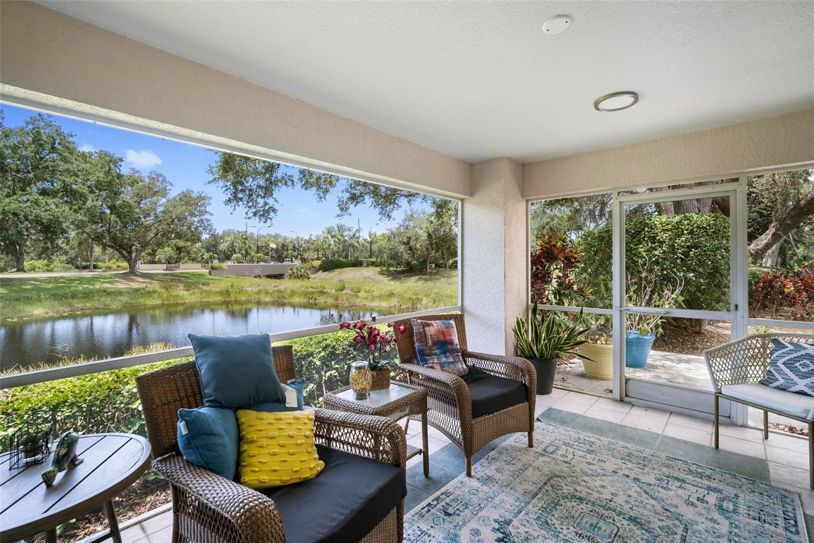 Look no further! A gorgeous waterfront Villa in the sought after gated community of Deer Creek. Turnkey furnished home with two bedrooms and a den. Impeccably maintained and ready to move in. The living room has vaulted ceilings, luxury vinyl flooring and a great view of the water. The kitchen has quartz countertops, newer appliances and a breakfast bar perfect for your morning coffee. Entertaining is a breeze in the open kitchen or formal dining room. The primary bedroom has a spacious walk in closet, carpet and glass sliders out to the lanai. The guest bedroom is in the front of the home giving your guests lots of privacy. The garage is oversized with plenty of room for storage. Additional features of the home include new A/C 2023, newer carpet, painted interior, 2021 Rheem water heater and vinyl flooring. A private and peaceful location with your screened lanai overlooking the lake. An active community with social activities, a heated pool and a 24 hour manned gate. This home is in close proximity to the Legacy Trail, Costco, Siesta Key beach and more. Call today to schedule your private showing.