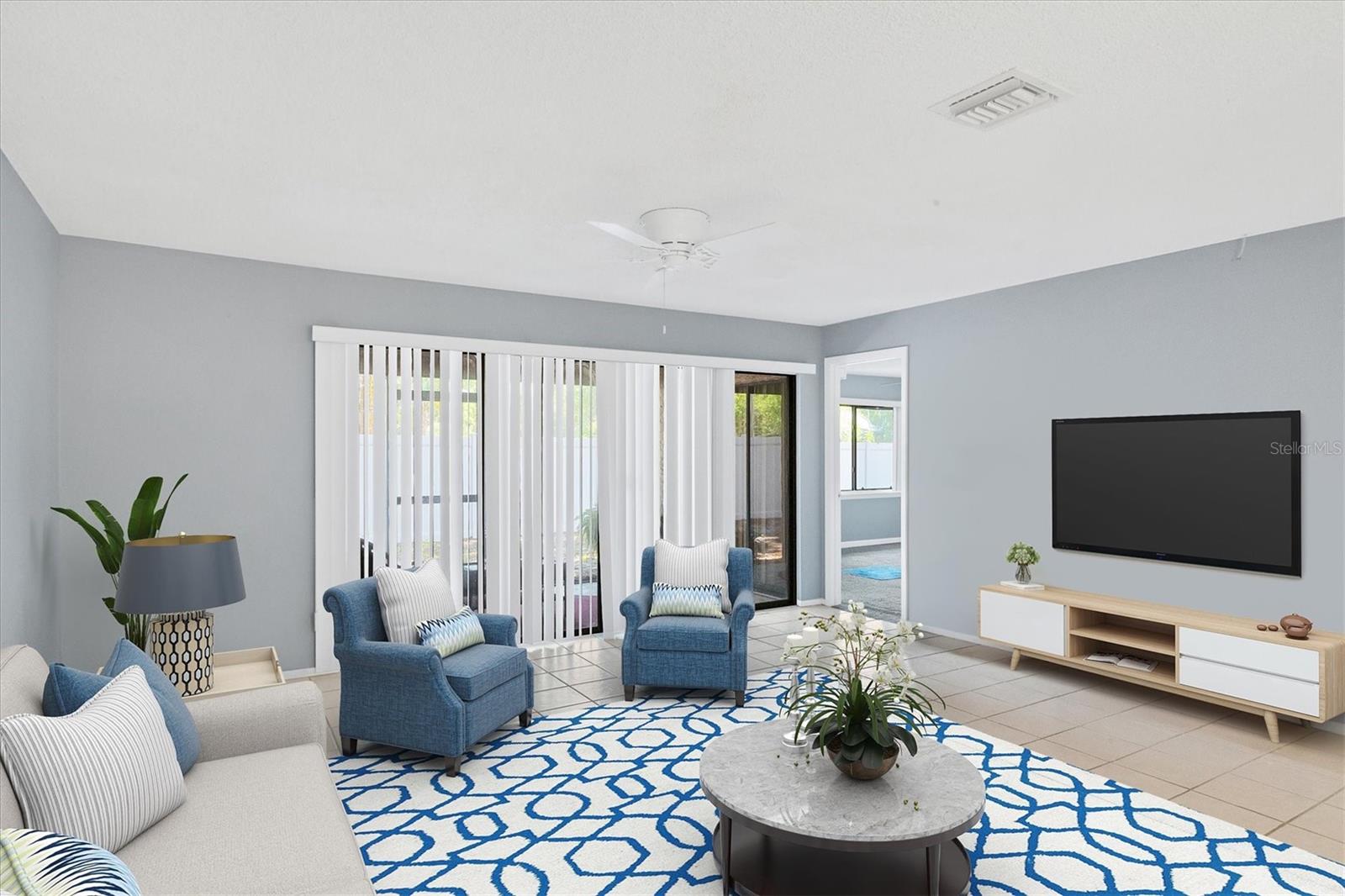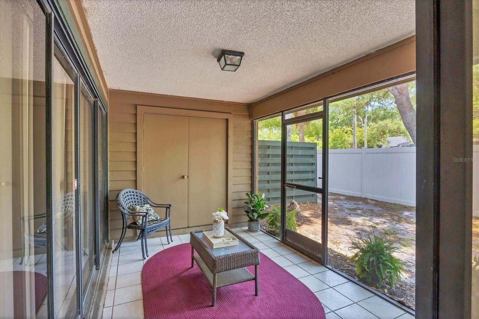 Hurricane Proof Condo! No damage or flooding from the recent hurricanes! Welcome to Sunridge and experience the joy of maintenance-free living! This quiet and private 2-bedroom, 2-bathroom Villa Unit is ready for you to MOVE in and is priced to SELL! This charming first-floor villa is completely on the first floor (NO STAIRS in the unit) and no one above you. The villa welcomes you with a spacious living room and dining room combo, offering a serene view of the lanai and backyard. The bright and open kitchen comes equipped with matching white appliances. The villa features tile floors throughout the living spaces and cozy carpet in the bedrooms. Enjoy peace of mind with a NEW 2024 roof, a 3-year-old AC unit, and a water heater that is less than 2 years old. Situated near numerous museums and three popular college campuses—USF, New College, and Ringling College—this property is perfect for students and young professionals. If you are a traveler, this property is perfect for you as it is right down the street from the SRQ airport. Despite its proximity to these exciting attractions, the community maintains a sense of privacy, offering a fenced backyard where you can unwind and relax in your own quiet space. Included in your dues is the community pool clubhouse, garbage, water, cable, landscaping, lawn maintenance, roof maintenance, exterior maintenance, and pest control. Situated just blocks from Sarasota Bay, the condo is about 7 miles to I-75 and the UTC Mall. Restaurants, fitness clubs, and many other shops are located within a mile radius. The downtown area of Sarasota is less than 10 minutes away. You are about 15-20 minutes away from all of the best beaches the Gulf Coast has to offer, including Anna Maria Island, Bradenton Beach, Lido, St. Armands, and Longboat. Residents can have 2 pets that are no bigger than 35 pounds per the association rules. BIG SAVINGS! If you use our preferred Home Inspection Company, discounts will apply on a home inspection package.If you use our preferred lender, you can get credit for a free appraisal and additional interest rate buy down credit. Come and experience the Community of Sunridge today!