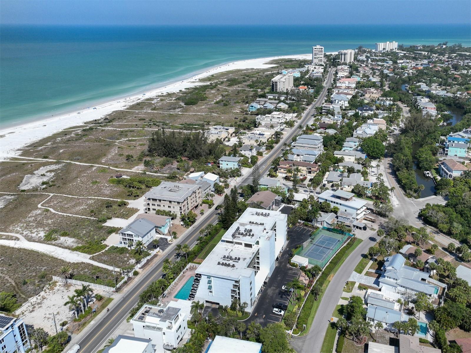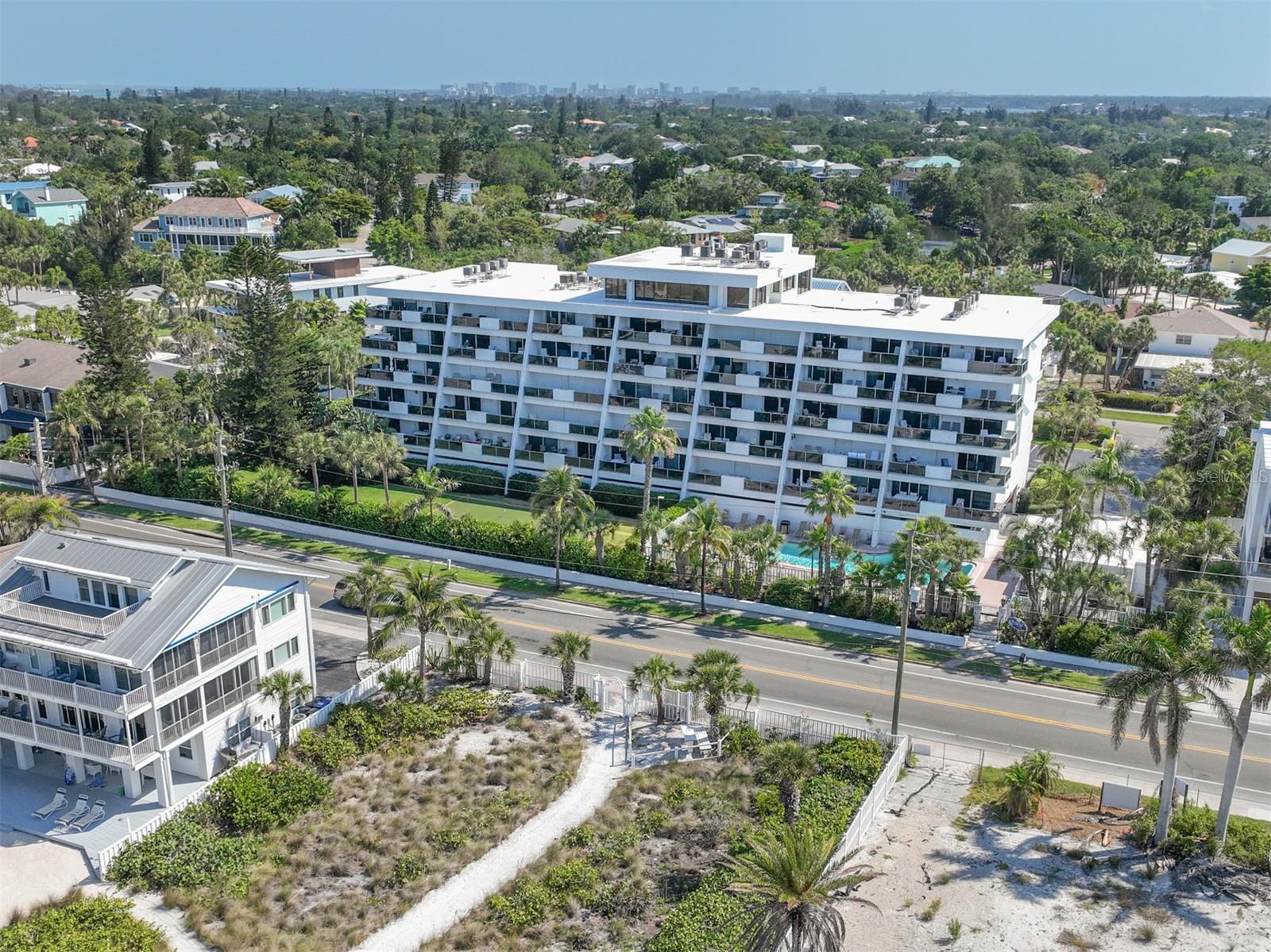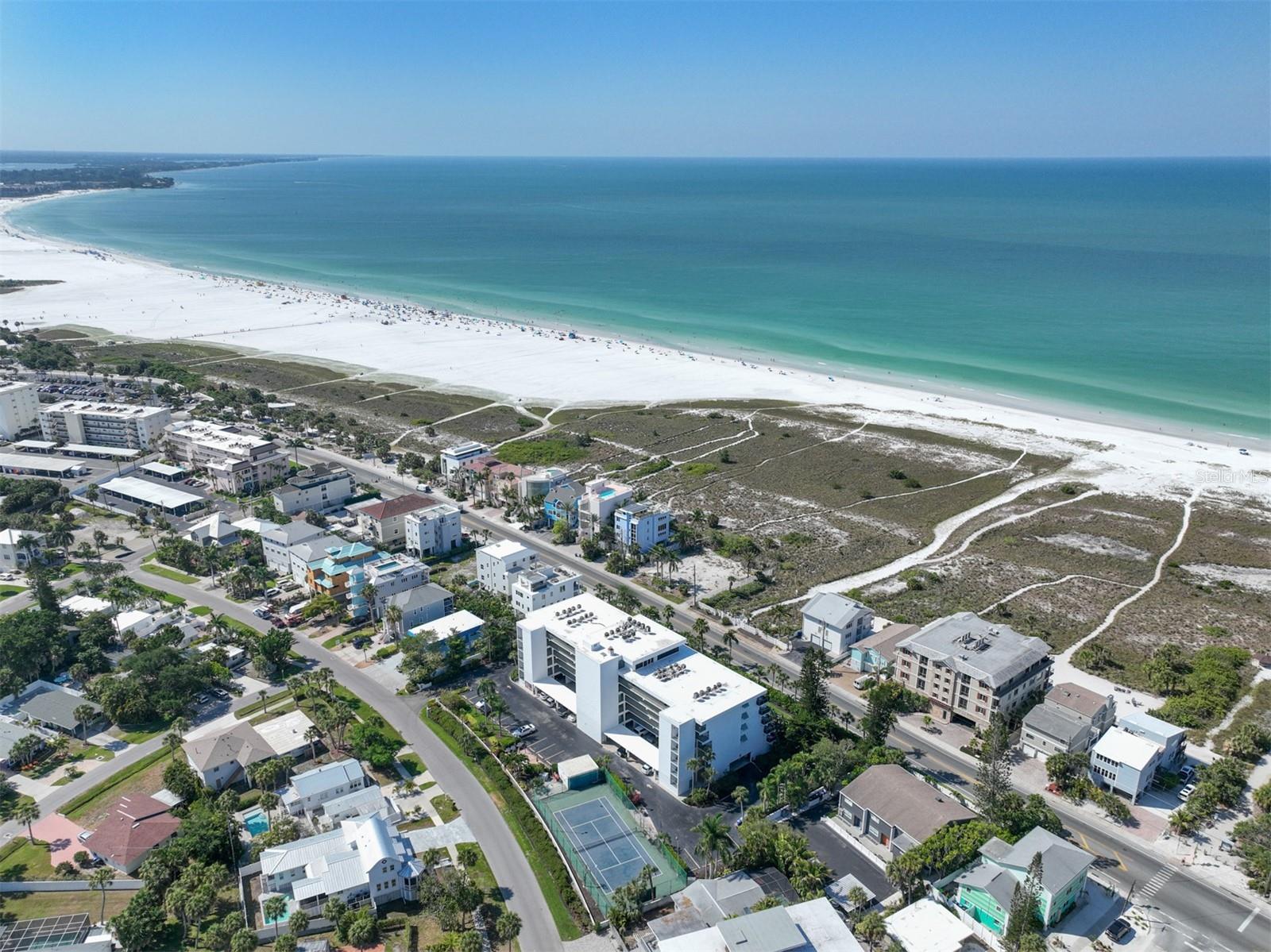 Direct views over Siesta Key Beach and the Gulf of Mexico! This 2 bed 2 bath 3rd floor unit is fully remodeled and is being offered turnkey furnished. Welcome to Tivoli by the sea the closest weekly rental condo complex to the village on Siesta Key. Ready for immediate rental. Similar units in Tivoli are generating over $90,000 in bookings yearly. This unit has been family owned and never rented since 2007. Own your slice of paradise while generating rental income when you are not here. The updated kitchen has updated appliances hidden with cabinet matching panels including hideaway dishwasher, ice machine & refrigerator. Custom built booth seating with pull out storage drawers. Built in desk area. Kitchen also features granite counter tops, a double sink & custom back splash. Every kitchen utensil, pan and appliance you can think of is already here. Just bring your toothbrush. The master suite boasts an updated en suite bathroom with beach and gulf views out the sliding glass doors to the balcony. Bedroom # 2 is on the east side of the unit providing a split plan. Large 26 x6 balcony. Roll down hurricane shutters on the balcony and Impact windows everywhere else provide peace of mind.. Amenities include a large community pool, tennis/ basketball courts, game room, putting green, fitness room and private gated access to Siesta Key Beach. New building roof installed 2023; assessment paid. This is the only complex along this stretch with its own private beach. Walking distance to Siesta Key Village.