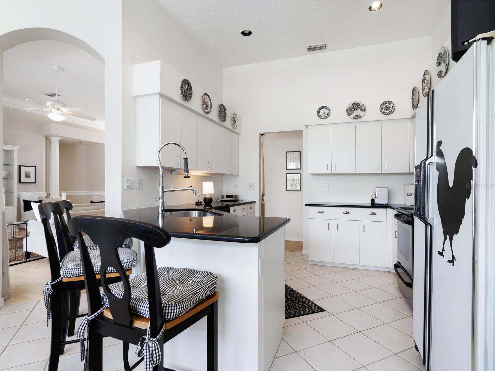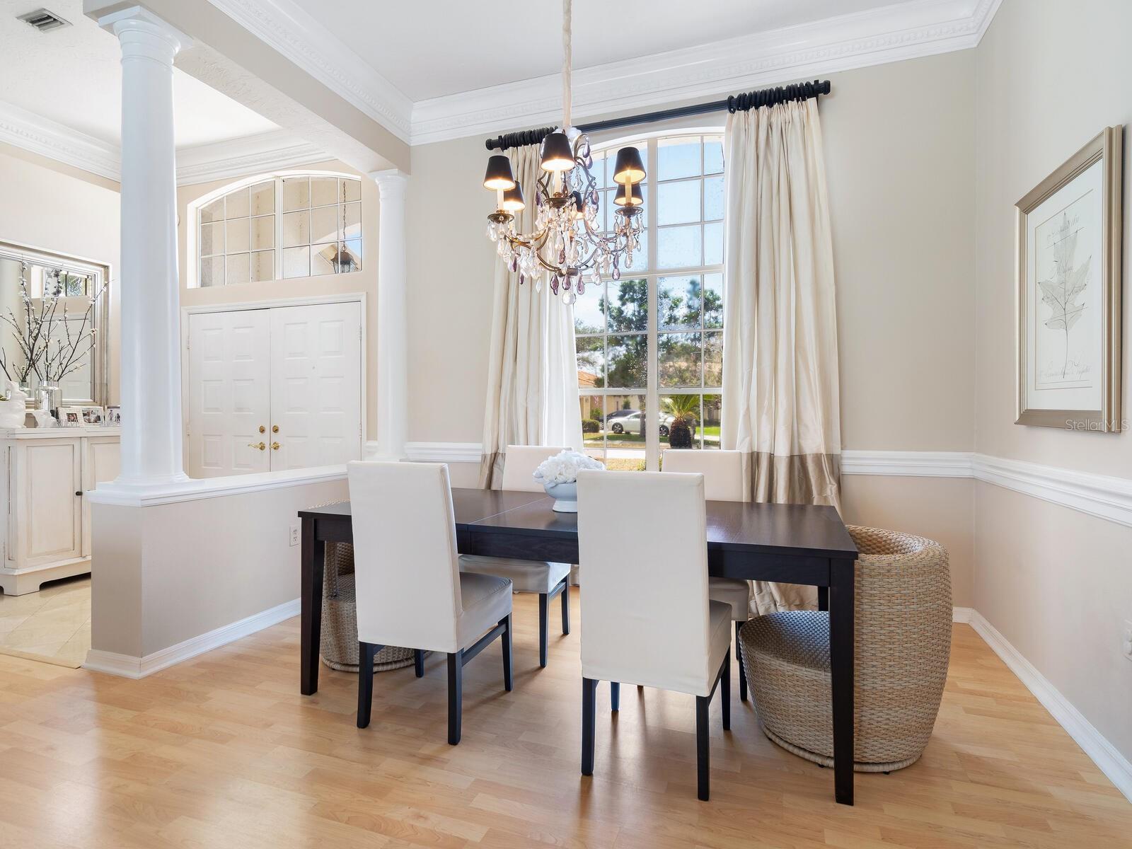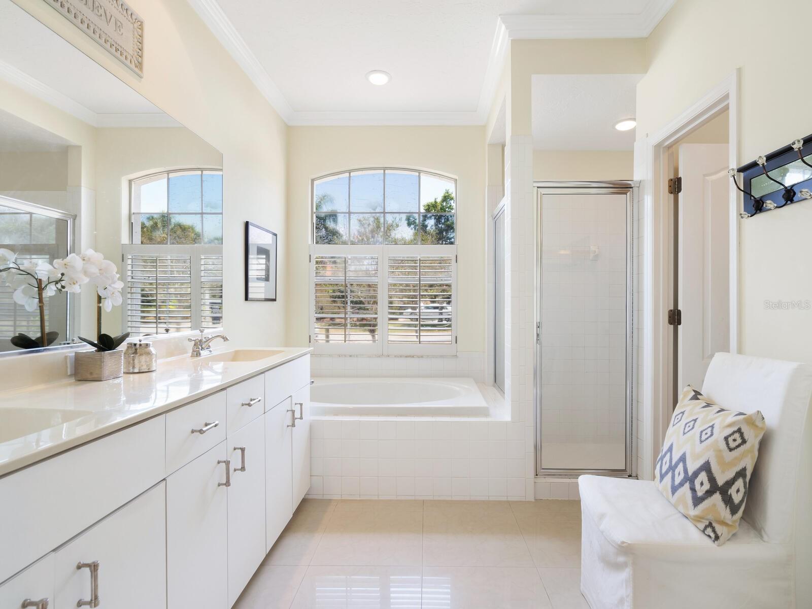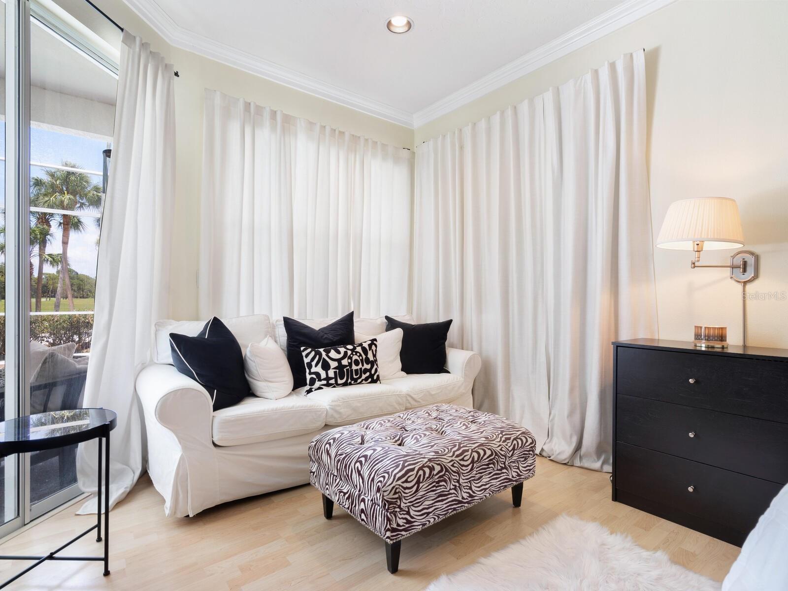 Welcome to a lifestyle of luxury and tranquility in this stunning home, situated in a premier country club community. Enjoy expansive views with golf course frontage and a serene lake view, all from the comfort of your exquisitely designed residence. The home features a neutral color palette and stunning architectural details throughout, including hand-carved crown molding and 10’ ceilings. The expansive great room and dining room offer ample space for entertaining, while the main living areas open to the pool through disappearing sliders, seamlessly blending indoor and outdoor living. The kitchen boasts black granite counters, a chef’s sink and faucet, a breakfast bar, and a casual dining area with breathtaking views. At the end of the day, the owner’s suite offers a relaxing retreat complete with a generous sitting area and a spa-like bath. A separate guest wing offers two additional bedrooms and a shared bath, providing privacy and comfort for all. Residency in The Meadows Community includes the Renaissance Access Plan, with access to premier amenities. Enhanced country club memberships are also available. You’ll be minutes away from the shops and restaurants of UTC, Benderson Park and Rowing Facility, the arts and entertainment of downtown Sarasota, and Sarasota’s pristine beaches. This tasteful, move-in ready home, along with its coveted location, is a statement of refined living, with every detail thoughtfully curated to enhance your lifestyle. As a bonus, the home can be purchased turnkey with its timeless designer French neoclassical furnishings and accessories, available under a separate contract.