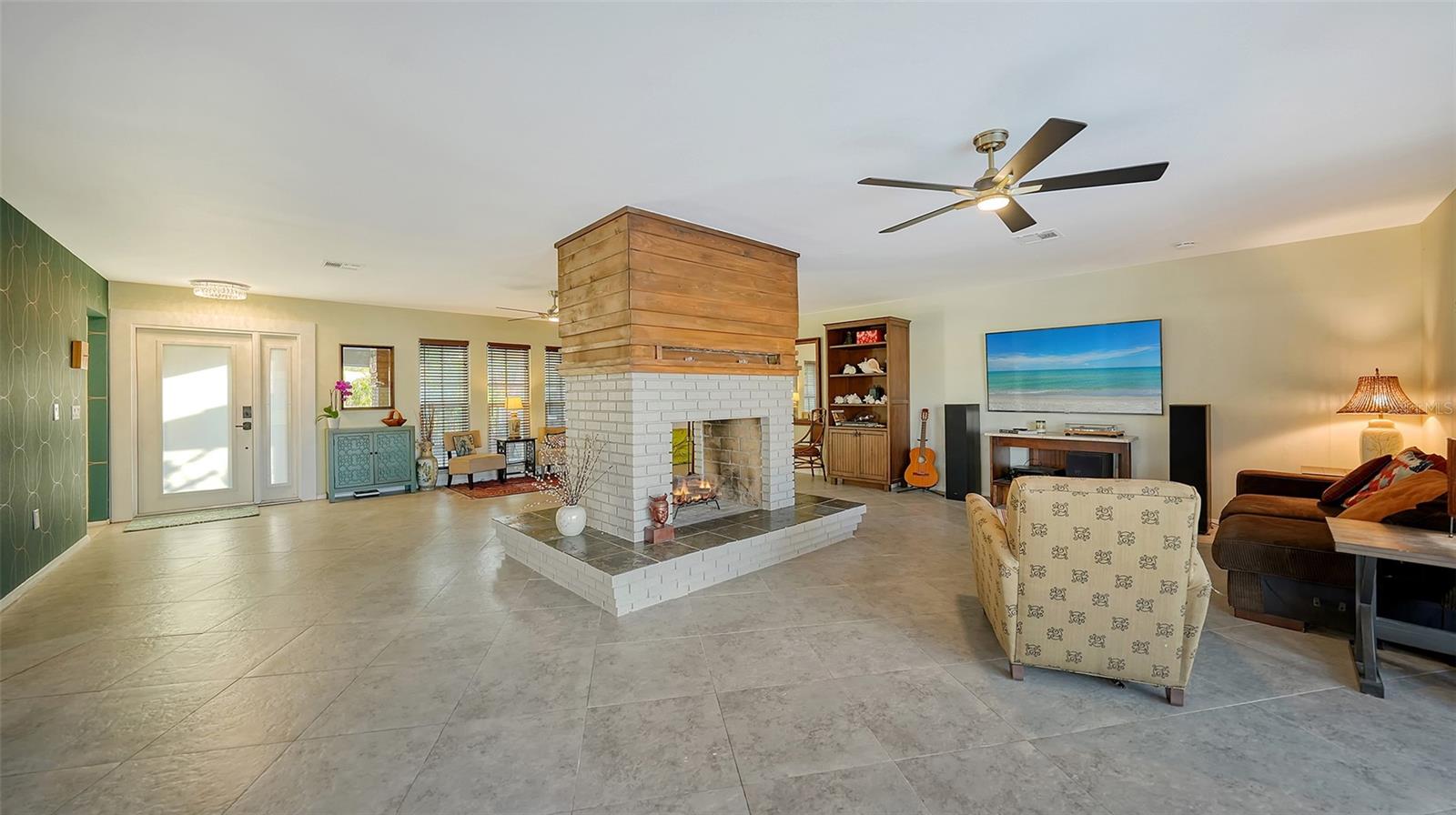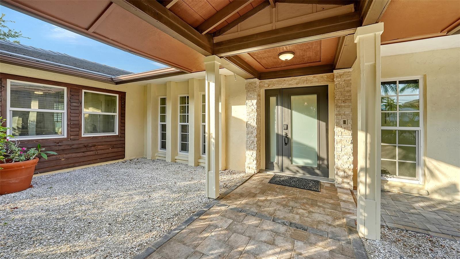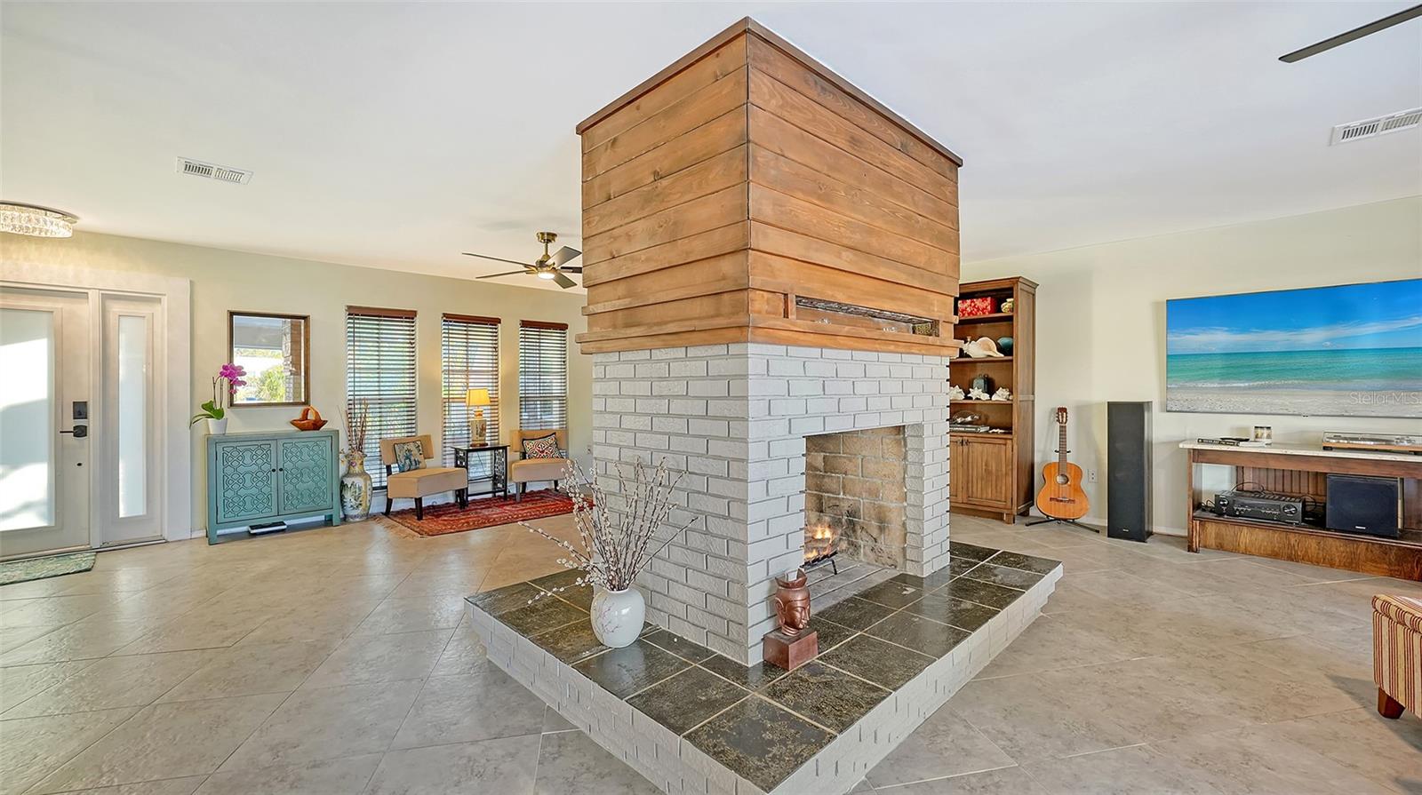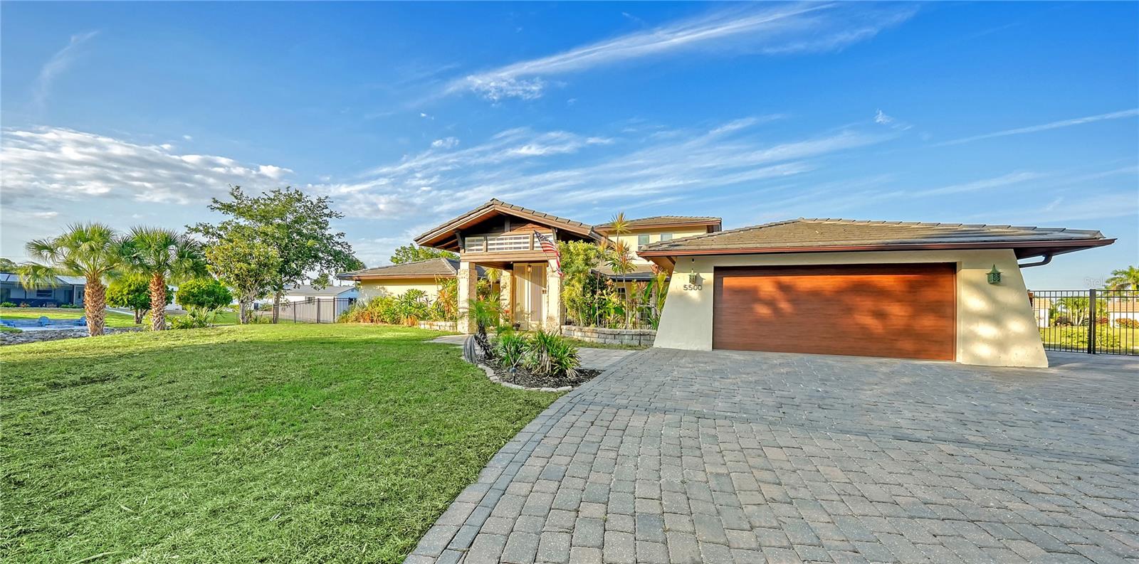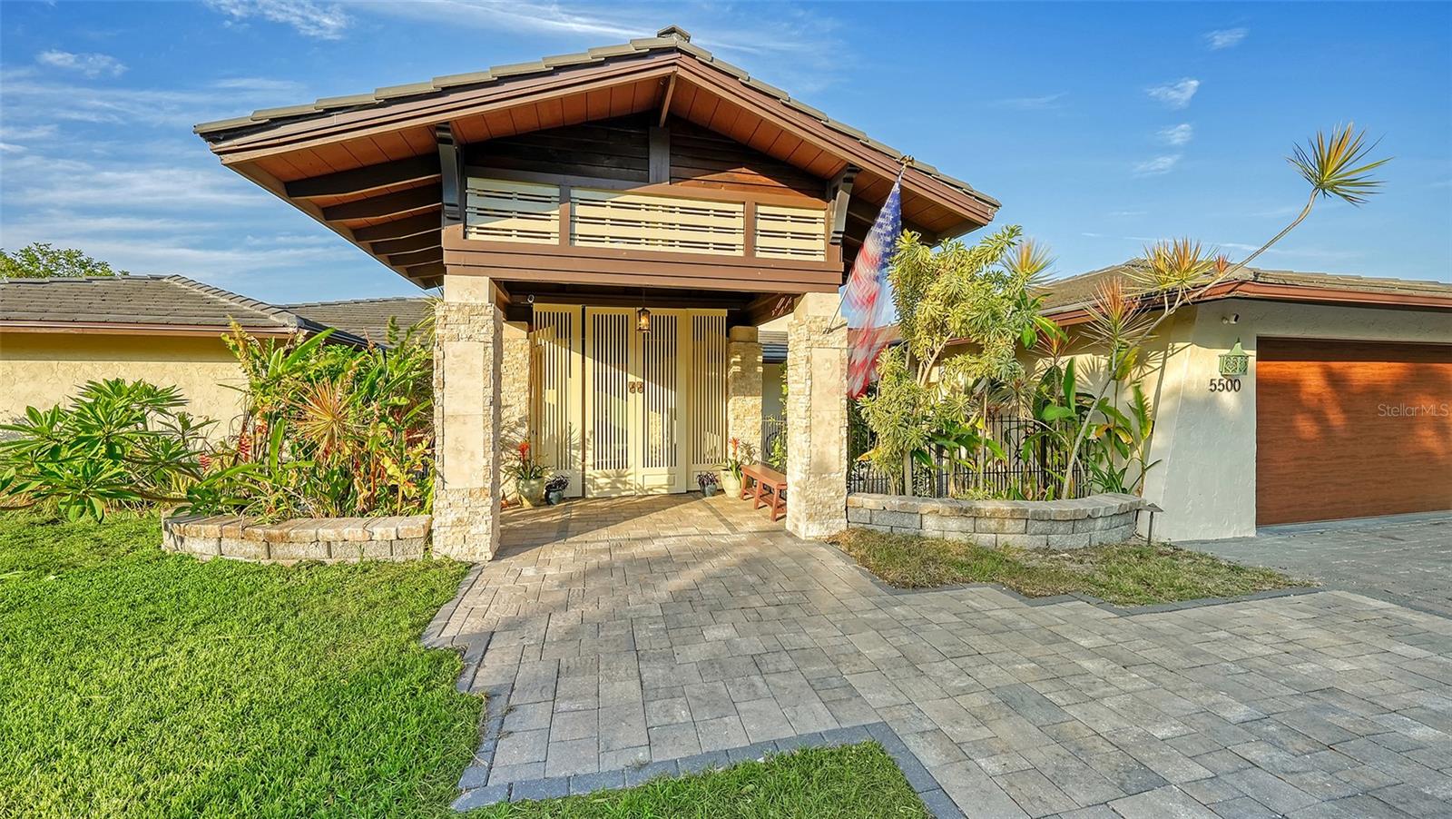 One or more photo(s) has been virtually staged. PRIVATE WATERFRONT PENINSULA! This property is the quintessential location for living an incredible Florida lifestyle. The home itself is unique, offering space that lends itself to anything you can imagine. With four bedrooms, some of which can be configured to other uses, and 4 full baths, this home is made for entertaining. But you may find the pièce de résistance is outside, as the oversized .61-acre lot is beautifully situated on two waterways just off Phillippi Creek. With over 400 feet of private water frontage, this property is truly your tropical oasis, quiet and peaceful, yet close to everything you need. The house itself has been continuously updated from 2017-2024. Exploring the interior, you will find a great room with a dual sided wood burning fireplace, large, updated kitchen with stainless steel appliances, farmhouse sink and pot filler. With 3 bedrooms on the first floor (one en-suite), and a master suite on the 2nd floor, there is room for residents and guests alike. The balcony off the 2nd floor provides gorgeous views, morning and night, with big blue-sky views to sunrises and sunsets. Want to feel like you are on vacation every day of the year? This home is made for tropical living. It has an outdoor tiki hut with a bar and grill, 2 outdoor fire pits, 5 zone outdoor exterior low voltage automatic night lighting, a pool, spa and boat lift. Other upgrades include a new boat house in 2019, new seawall in 2023/2024, two new A/C in 2019, and septic to sewer conversion in 2018. Tucked away at the end of cul-de-sac in Phillippi Gardens, the location is ideal, While the neighbor is private and quiet, it is close to The Landings and other shopping and eatery venues, a short bike ride to Gulf beaches, and not far from the vibrant downtown of Sarasota and all its cultural and recreational offerings. You truly must see this amazing property to appreciate all it has to offer.