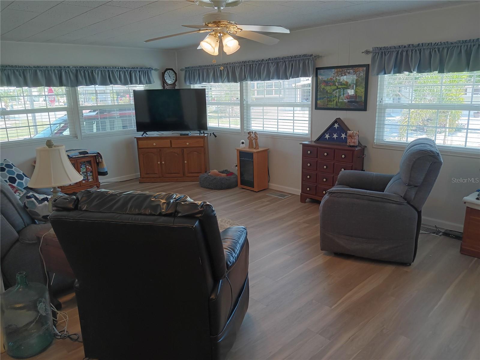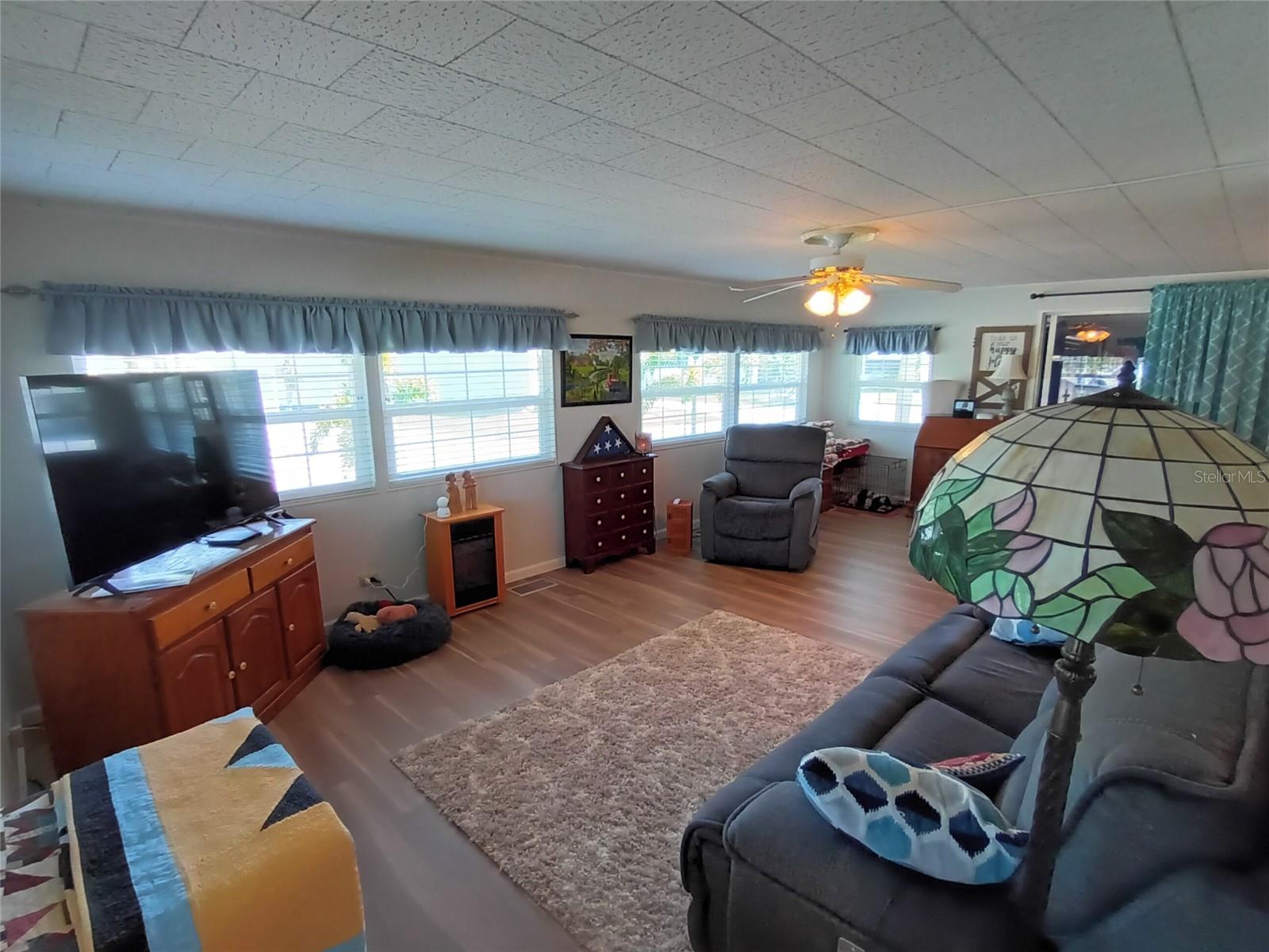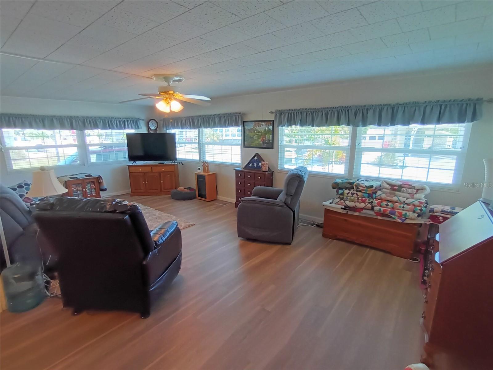 Oversized corner lot in a wonderful location. Open-concept home with many windows creating a bright and spacious home. The kitchen, living room and dining are combined, but still allowing plenty of room for a formal dining room and an eat-in space in the kitchen. The bedrooms are large, and both have full en-suites, lots of closet space, and built-ins. The main bedroom en-suite features a shower, and the other is very large with a tub and shower, with agress into the hallway. There is a large bonus room currently used for crafts, but could be made into a family room, office, or whatever you want. Move-in ready, offered furnished, see attached list of items that do not convey. This home is very well cared for with many updates including: vapor barrier, windows, HVAC, flooring, and plumbing throughout the home. Currently has two parking spots with a ramp but could easily be reverted back to a semi-circular driveway with four parking spots! Two sheds for extra storage, one which houses the laundry facilities. Tri-par Estates is an active 55+ community where each property is individually owned with a deed and titles to the home. We have many amenities here such as a large pool, spa, palapa tiki hut, pickleball courts, fitness center, shuffleboard, miniature golf, horseshoes, game rooms for billiards, ping-pong, and other activities such as sewing and painting classes and card games. The large clubhouse is host to events such as dinners, dances, meetings, church services and more. Located close to downtown Sarasota, marinas, hospitals, shopping, dining, Sarasota airport, cultural centers such as museums, performing arts, opera house, and of course, Florida's famous beaches! You own your own land in this special park and recreation district and pay no HOA fee to Tri-par directly; the annual fee of $1,584.00 is included in your property taxes. We are a very golf-cart-friendly community and have optional storage for your R/V and boat.