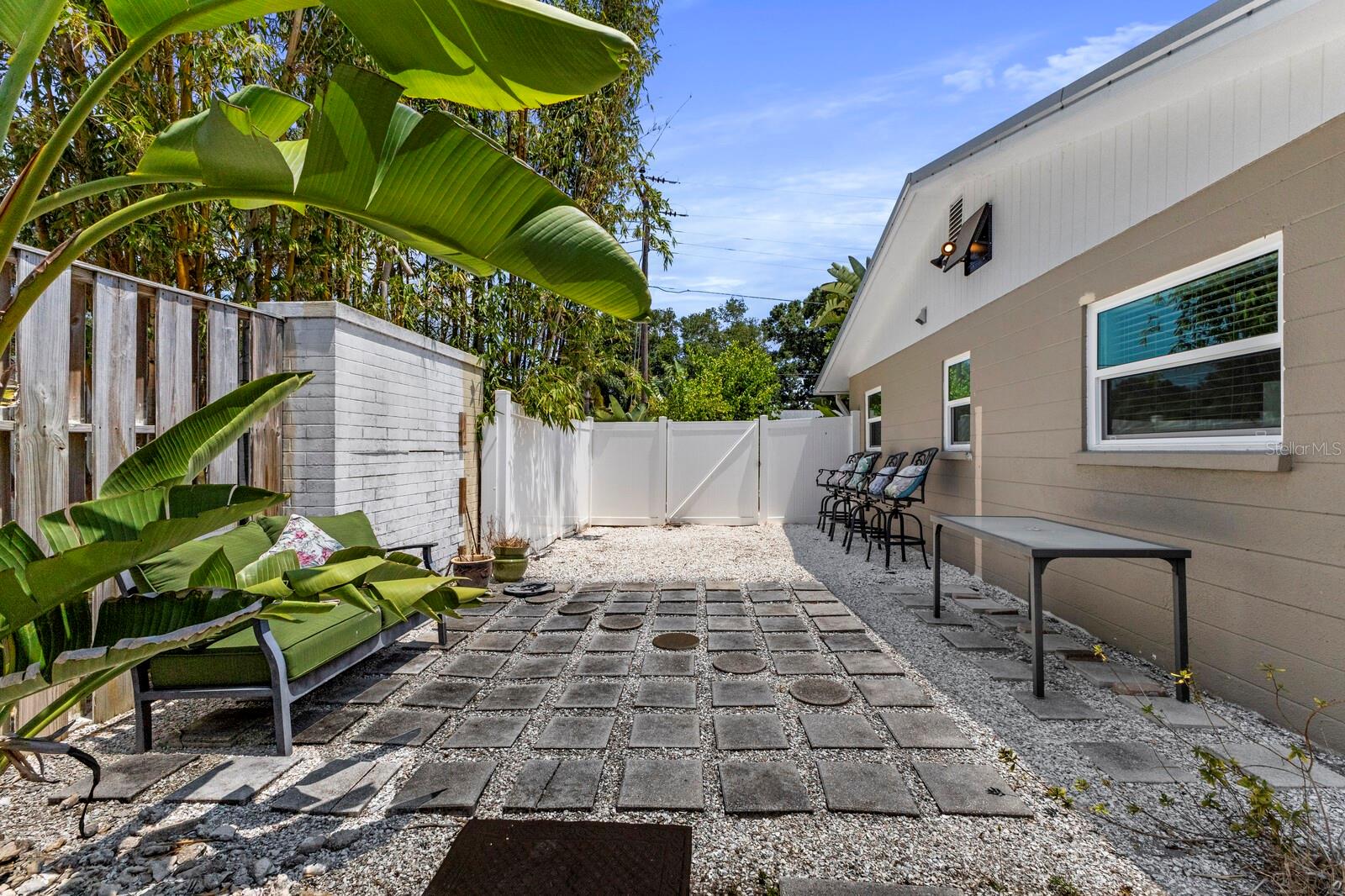 This meticulously updated 3/2 with a fully-fenced yard tucked in on a quiet street in the coveted Indian Beach/Sapphire Shores neighborhood is ready for you to move right in. The kitchen has stone countertops, stainless appliances, and a large island, and opens into the dining and living rooms, which connect to the patio and yard with sliding doors. There is plenty of room for a pool or boat storage. Extensive renovations include new kitchens and bathrooms including appliances, all new plumbing and electrical, new HVAC, duct work and insulation, new tankless hot water heater, new impact windows and garage door, and metal roof. Nestled in a low maintenance tropical oasis of flowers and fruit, including hibiscus, citrus, starfruit, and a mature lychee tree, this home is a short walk to the bay front, 10 minutes to the SRQ airport, the Ringling Museum, Ringling College of Art & Design, and New College. With a quick hop over the Ringling bridge you can enjoy St. Armands and Lido beach. No HOA and no flood zone; you can relax and enjoy the restaurants, opera, theater, galleries and more of downtown Sarasota, or walk over to the bay for sunset.