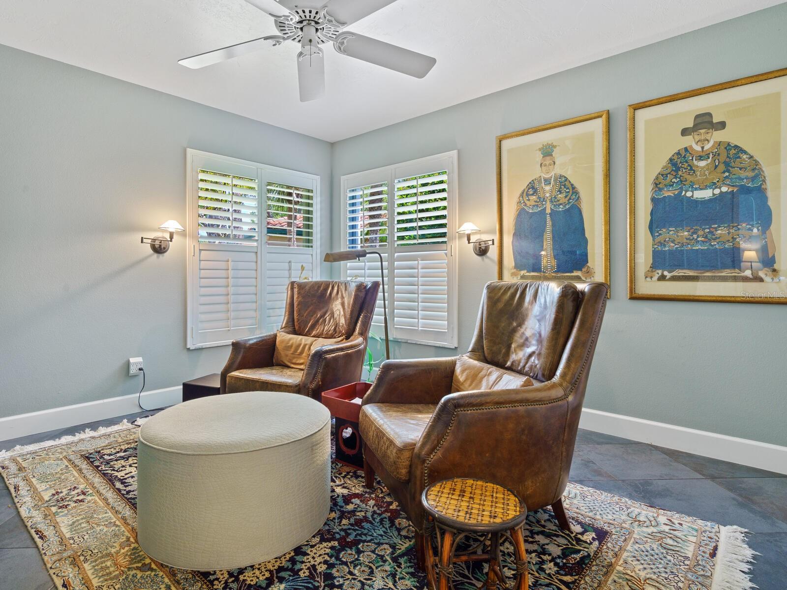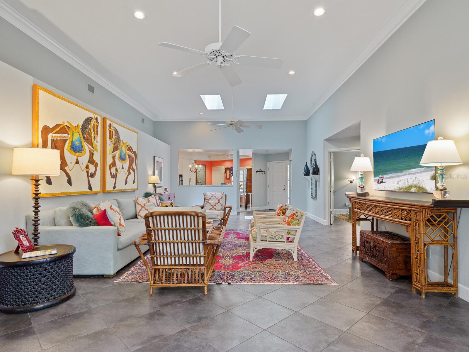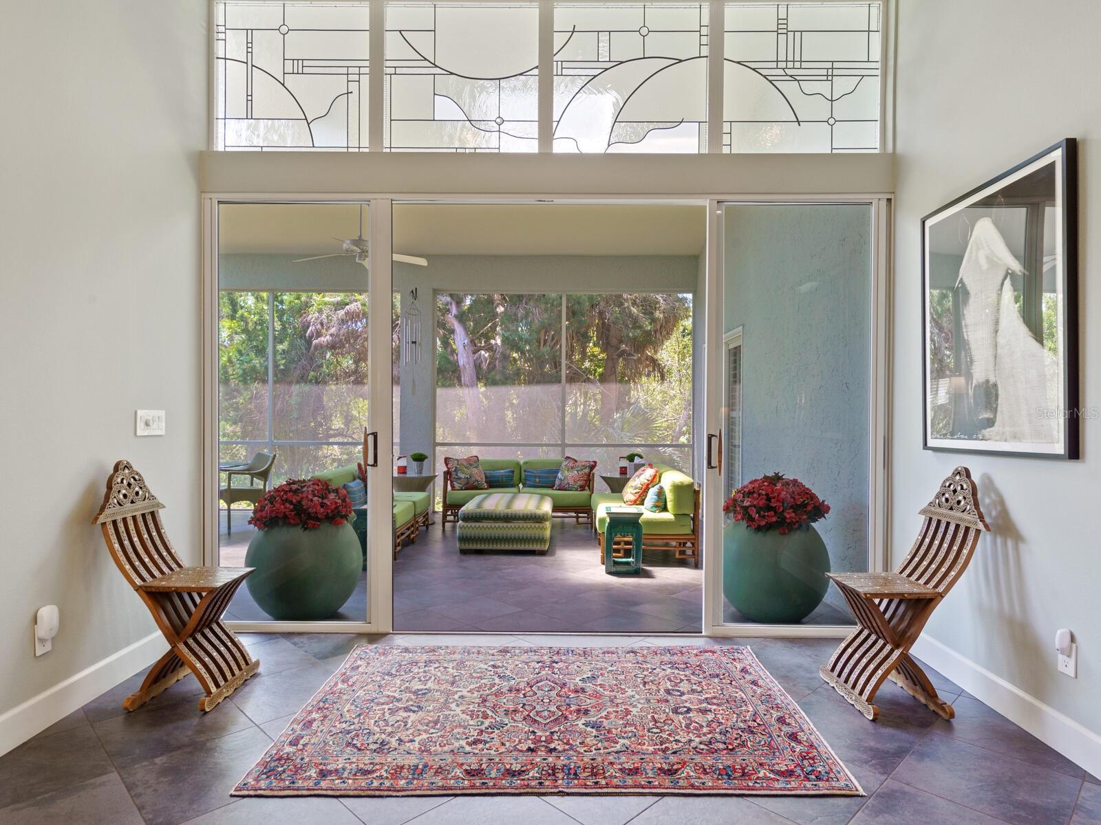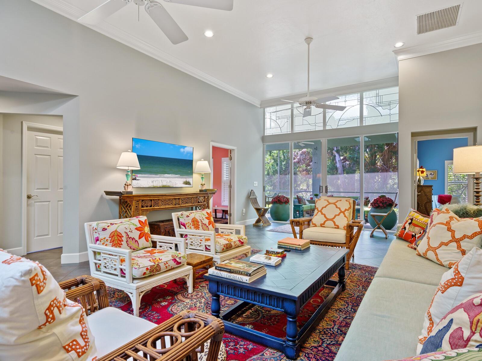 Tasteful and chic, a single-story Eagles Point villa in The Landings with a southern exposure and preserve view. Walking into this 2 bedroom with den/2 bath villa you are drawn into the open great room and feel the sun pulling you out to the spacious screened lanai sanctuary. Sliding glass doors with leaded transom windows above are the focal point to the great room as well as the volume ceiling and skylights. The kitchen is a chef’s delight with a clean design, ample storage, wood cabinetry, granite counters with waterfall detail on the kitchen island. Subzero refrigerator and Fisher Paykel double drawer dishwasher, induction cooktop and wall oven complete the high-end appliance package. Plenty of room for a casual dining table in the kitchen or entertaining the cook while sitting on bar stools at the island. The primary bedroom is bright and cheery with plenty of light with custom walk-in closets, ensuite with spa bath, shower stall and dual sinks. The walk-in closet connects directly to the laundry room for easy access. There are two additional bedrooms, one currently used as den/office. Plantation shutters, and ceramic tile floors throughout. Attached two-car garage with paver driveway. Take advantage of the Landings amenities with membership to the exclusive Landings Racquet Club with social activities, har-tru tennis courts, exercise room, heated pool/spa, sauna, library or walk the nature trail leading to the bayfront gazebo. Kayak storage is available on the nature trail with a new newly built launch site. Enjoy fishing from the gazebo and watching the boats go by.