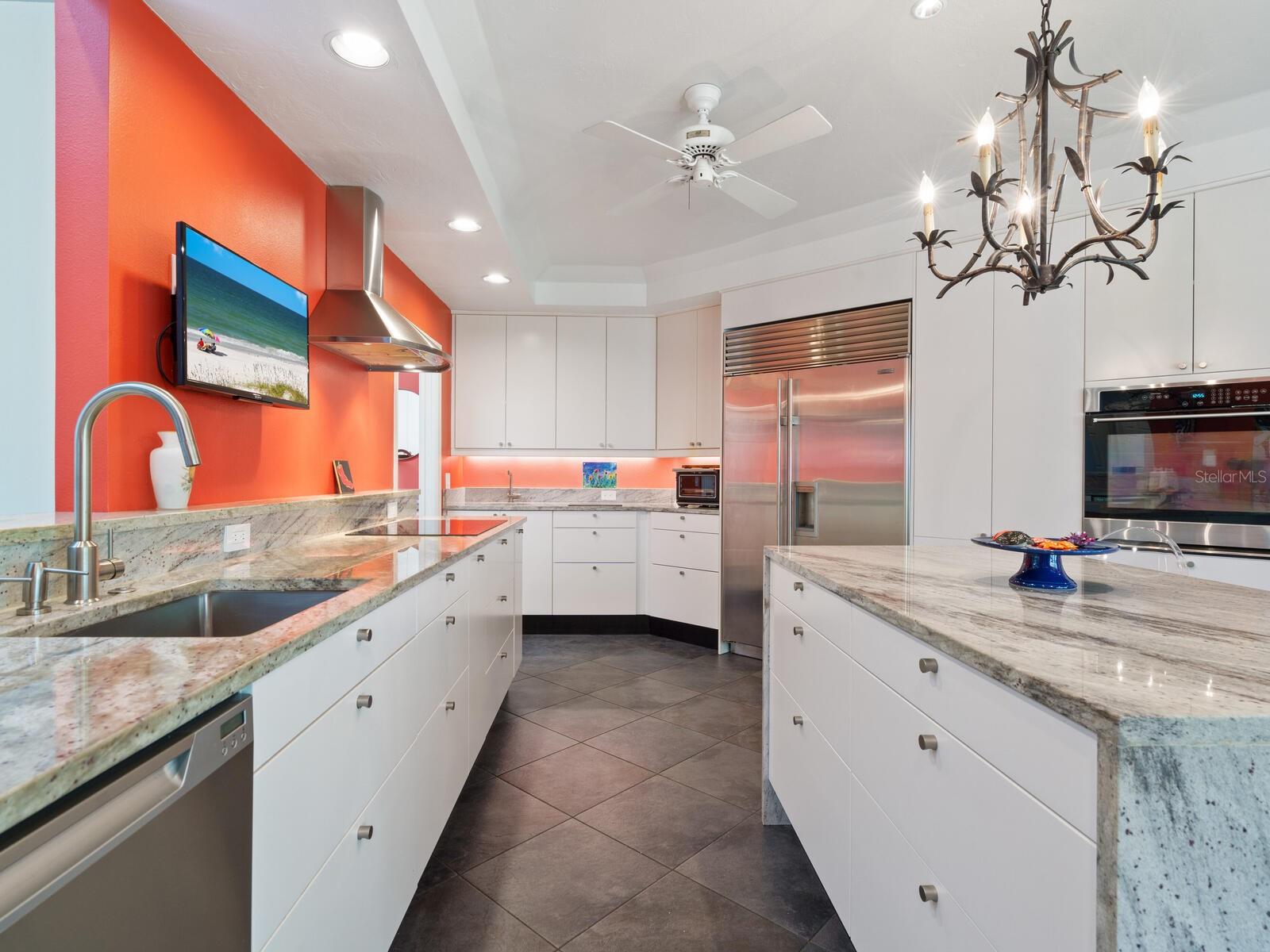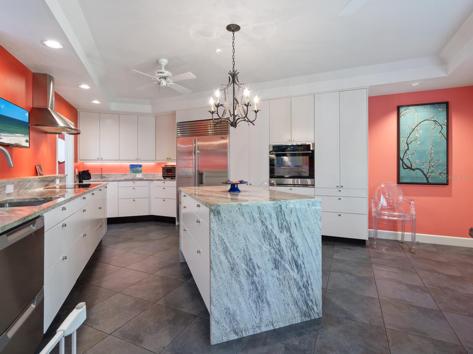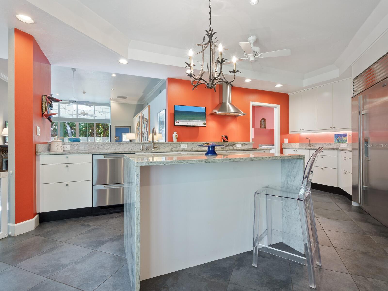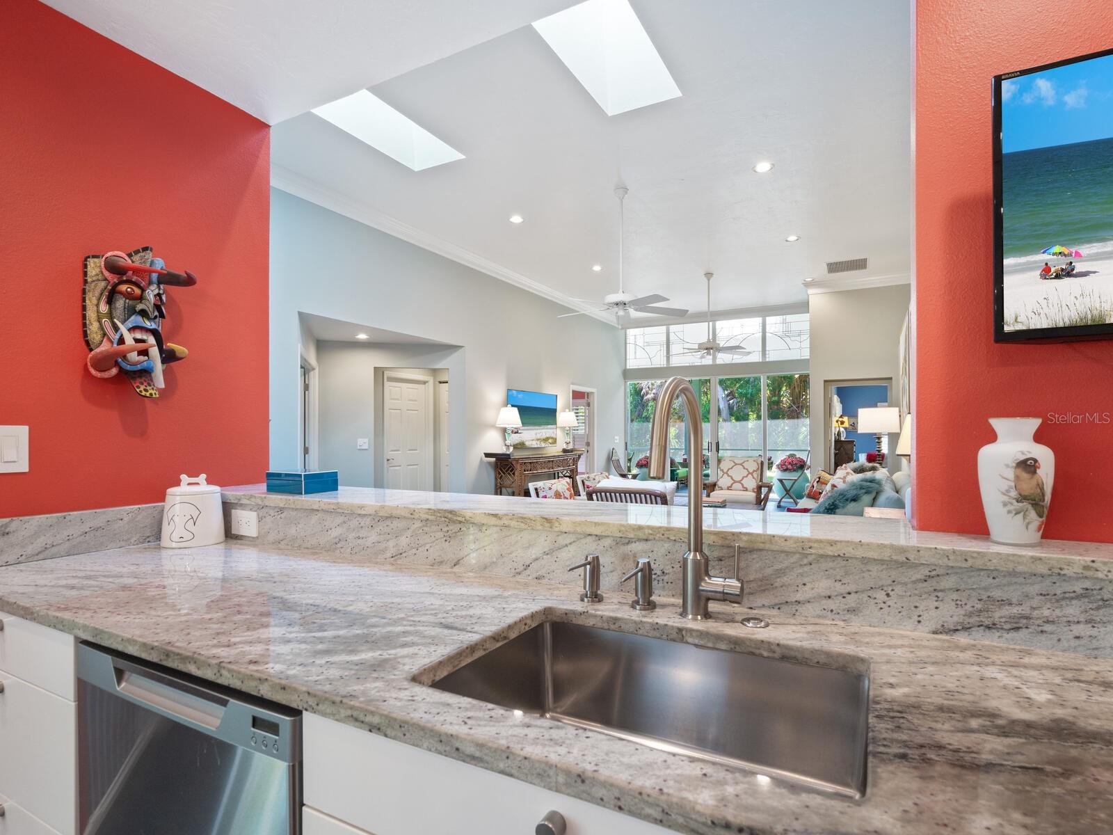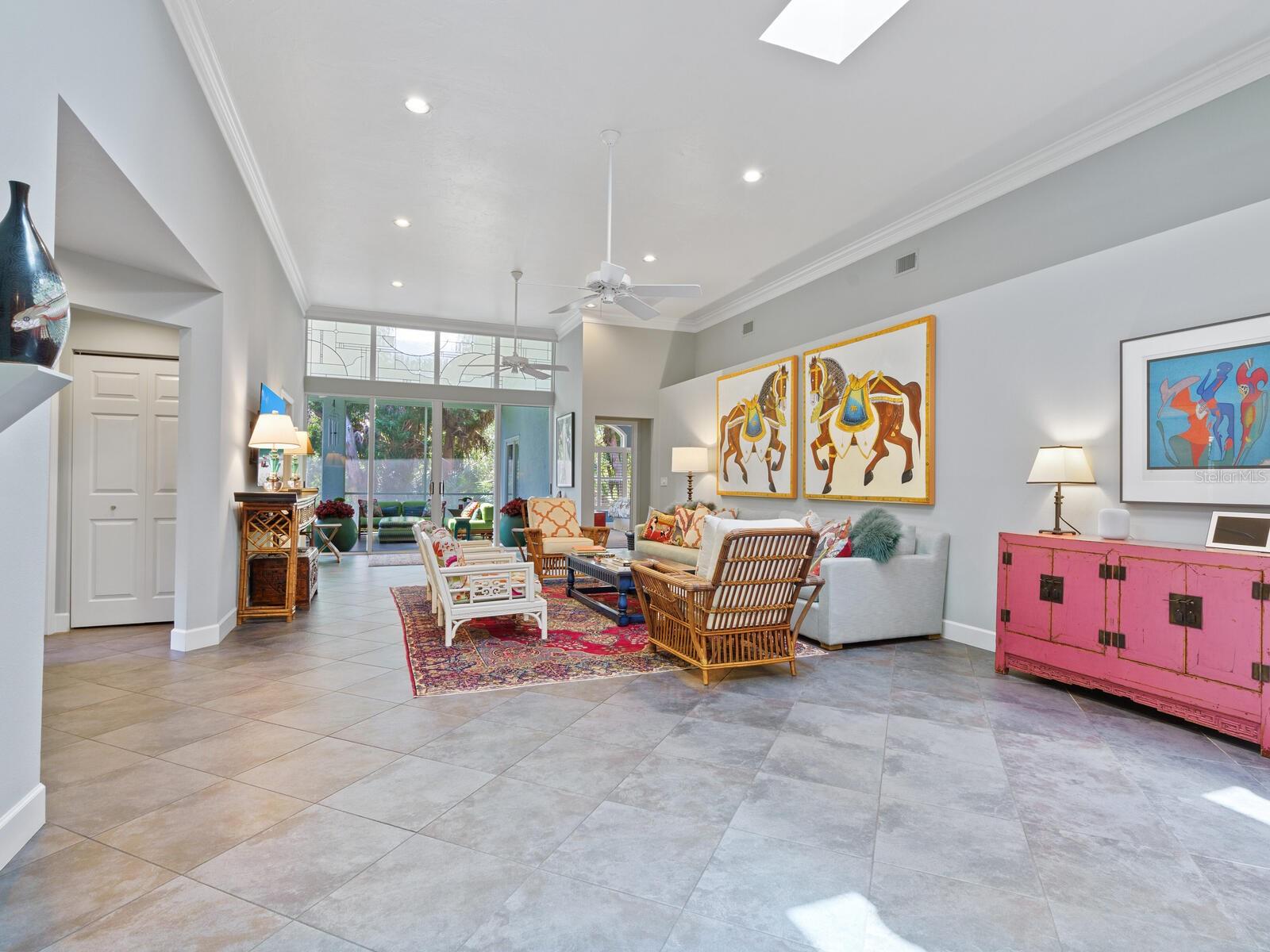 Tasteful and chic, a single-story Eagles Point villa in The Landings with a southern exposure and preserve view. Walking into this 2 bedroom with den/2 bath villa you are drawn into the open great room and feel the sun pulling you out to the spacious screened lanai sanctuary. Sliding glass doors with leaded transom windows above are the focal point to the great room as well as the volume ceiling and skylights. The kitchen is a chef’s delight with a clean design, ample storage, wood cabinetry, granite counters with waterfall detail on the kitchen island. Subzero refrigerator and Fisher Paykel double drawer dishwasher, induction cooktop and wall oven complete the high-end appliance package. Plenty of room for a casual dining table in the kitchen or entertaining the cook while sitting on bar stools at the island. The primary bedroom is bright and cheery with plenty of light with custom walk-in closets, ensuite with spa bath, shower stall and dual sinks. The walk-in closet connects directly to the laundry room for easy access. There are two additional bedrooms, one currently used as den/office. Plantation shutters, and ceramic tile floors throughout. Attached two-car garage with paver driveway. Take advantage of the Landings amenities with membership to the exclusive Landings Racquet Club with social activities, har-tru tennis courts, exercise room, heated pool/spa, sauna, library or walk the nature trail leading to the bayfront gazebo. Kayak storage is available on the nature trail with a new newly built launch site. Enjoy fishing from the gazebo and watching the boats go by.