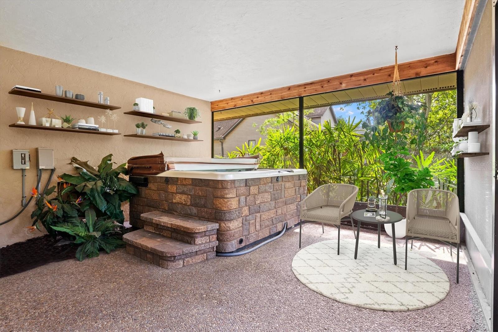 One or more photo(s) has been virtually staged. **Prime Location and Luxury Living in Palm Aire Country Club** Welcome to your dream home in the highly sought-after Palm Aire Country Club, ideally positioned along the University Boulevard corridor. This beautifully designed 4-bedroom, 2-bath residence offers the perfect blend of elegance, comfort, and convenience. Key Features include, Flexible Living Spaces, This home is officially a 4-bedroom residence but functions wonderfully as a 3-bedroom with a versatile den. The den features built-in cabinets, a 10-foot copper desk surface, and a closet, making it ideal for a home office or additional living area. Private Outdoor Retreats, The master bedroom boasts its own private courtyard, providing a serene outdoor space for relaxation and entertainment. Additionally, the home features a beautifully landscaped front courtyard and a private hot tub for ultimate comfort. Charming Family Room, The galley kitchen overlooks a family room adorned with stunning wood beams and a cozy wood-burning fireplace, creating a warm and inviting atmosphere for family gatherings and entertaining guests. Exceptional Location, Convenience is at your doorstep with UTC, Publix, Walmart, and a variety of dining and cultural options such as the Ringling Museum, Ballet, and Theatre just minutes away. Downtown Sarasota is 8 miles away, Lido Beach is 11 miles, and Siesta Key is 14 miles from your new home. Nature and Recreation, Your backyard opens to Manatee County's Conservatory Park, an 80-acre natural paradise with a 10-acre spring-fed lake perfect for wildlife viewing and daily walks. Optional Country Club membership provides access to a pool, golf, dining, tennis, pickleball, and a private workout area. With an incredibly low HOA fee of approximately $100/year, this home offers an unbeatable combination of luxury, location, and lifestyle. Do not miss the opportunity to experience this exceptional property. Schedule a visit today to see why this Palm Aire gem is the perfect place to call home.