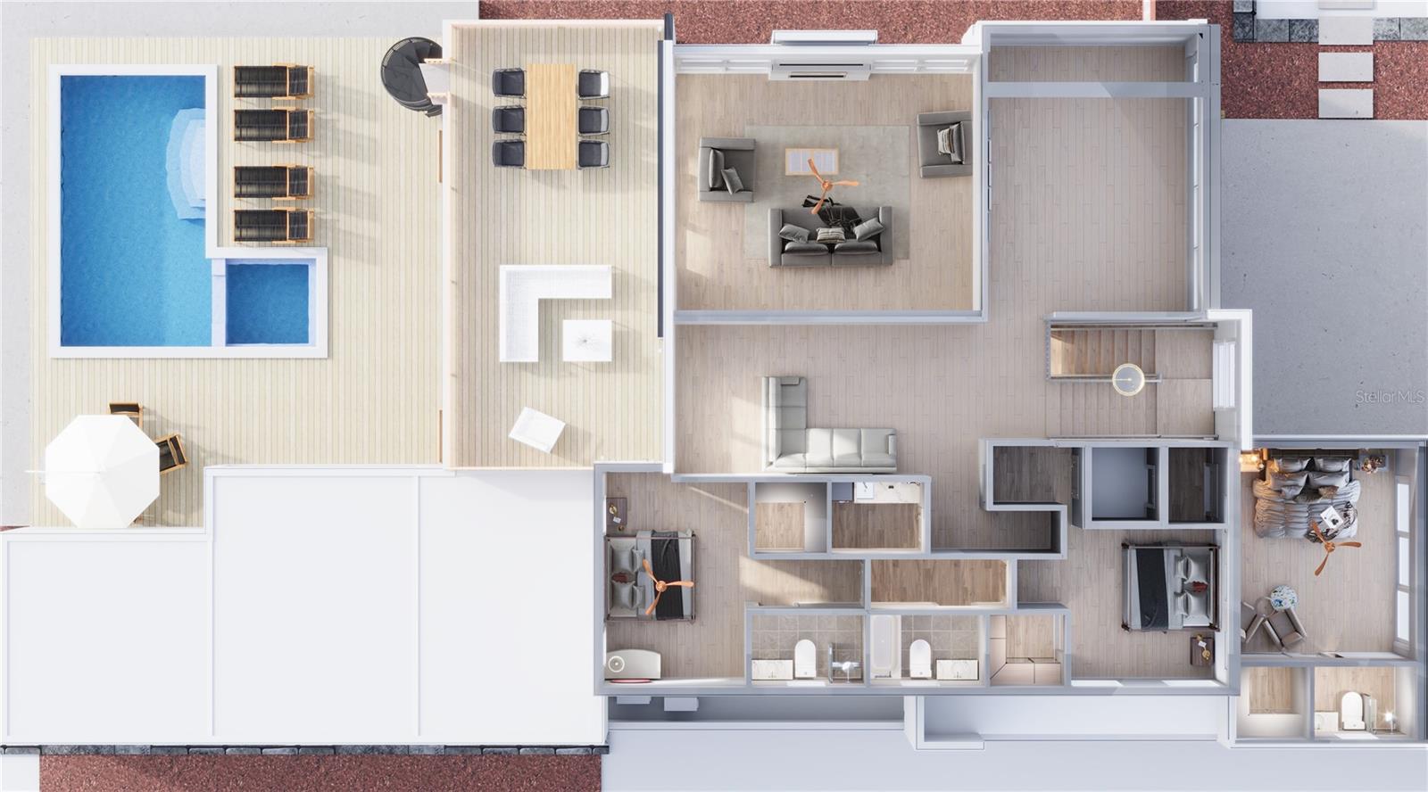One or more photo(s) has been virtually staged. Under Construction. Introducing an exquisite new construction home nestled in the heart of Siesta Key. Built by M&J Pham Development with 4 bedrooms, 4.5 bathrooms, and 3,996 square feet of living space, this stunning residence offers an unparalleled combination of luxurious comfort and unbeatable location. Once you enter this dazzling property, you will be greeted by an open and spacious floor plan that features high ceilings, natural light, and high quality finishes throughout. The home features a modern and elegant kitchen with top-of-the-line Viking appliances, quartz countertops, and custom cabinetry. Two patios with an outdoor kitchen and additional island seamlessly blend indoor and outdoor living with meticulously planned landscaping and pool area. The master bedroom of this gorgeous home is a true sanctuary, offering a plush and peaceful retreat after a long day. It boasts an ample layout with plenty of room, and large windows to let in unrestricted natural light, providing a bright and airy feel that's perfect for relaxation. The room also features a generously sized walk-in closet with abundant space for storage and organization as well as a private terrace for you to easily enjoy the outdoor scenery. The master bathroom is equally impressive, featuring a soaking tub and a separate shower that's great for unwinding after a long day. The opulent finishes and high-end materials used throughout the space add to the lavish feel of this spectacular master suite, making it the best place to recharge and rejuvenate. As you ascend the grand staircase to the upper level of the lavish estate, you are greeted with a breathtaking sight of three cozy bedrooms, each with its own private ensuite bathroom and a large rooftop deck that has fantastic views of the gulf. Situated on Siesta Key, you will have easy access to some of the best beaches, restaurants, and shopping that Sarasota has to offer. Whether you are looking for a day at the beach, a night out on the town, or a quiet evening at home, this home has everything you need. Photos are of similar finishes layout of home may vary. *finishes are subject to change due to possible supply delays of certain products. Renderings may not represent the final product. Changes may be made to physical features due to product and material availability. Changes can be made by ownership or General Contractors at any time.