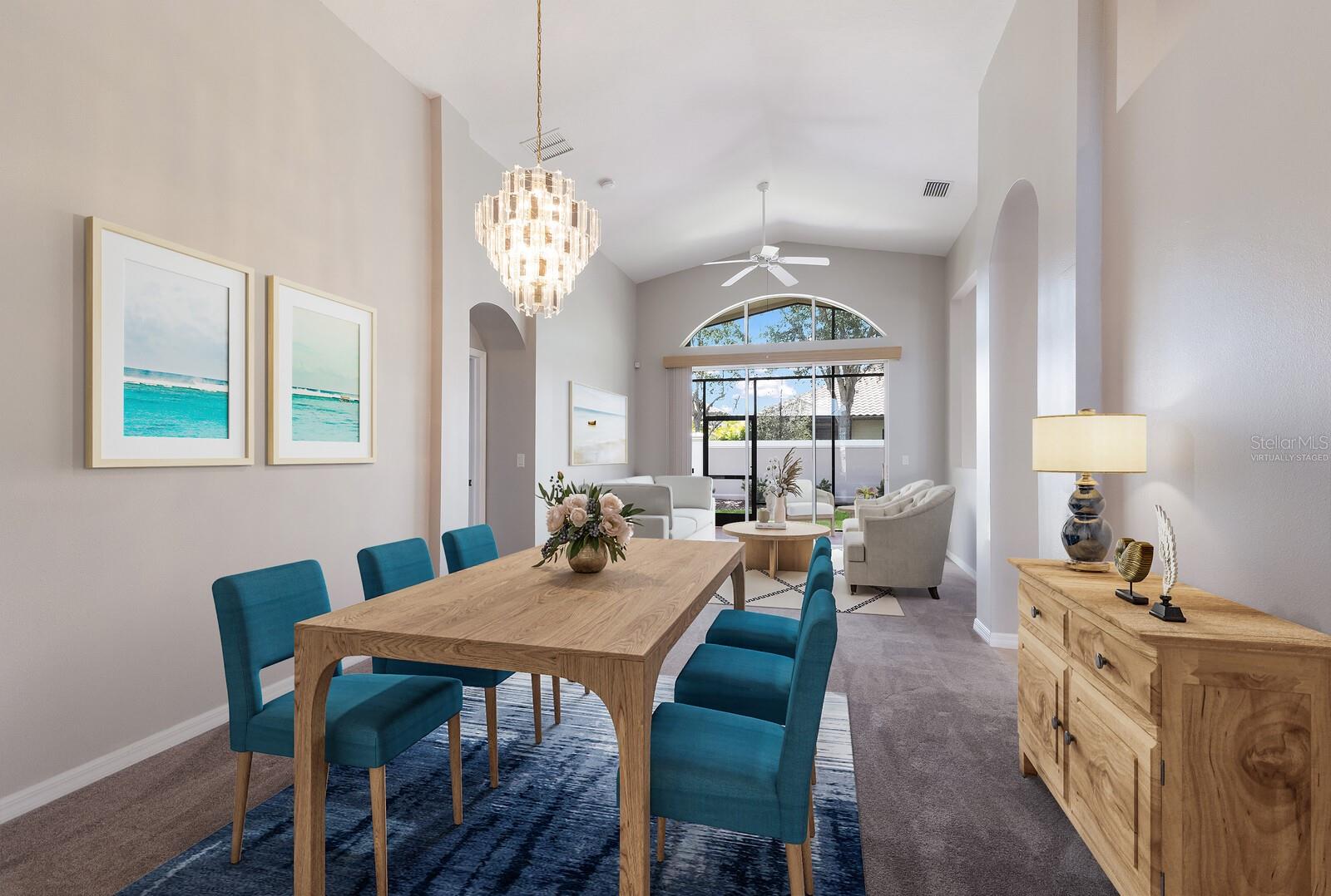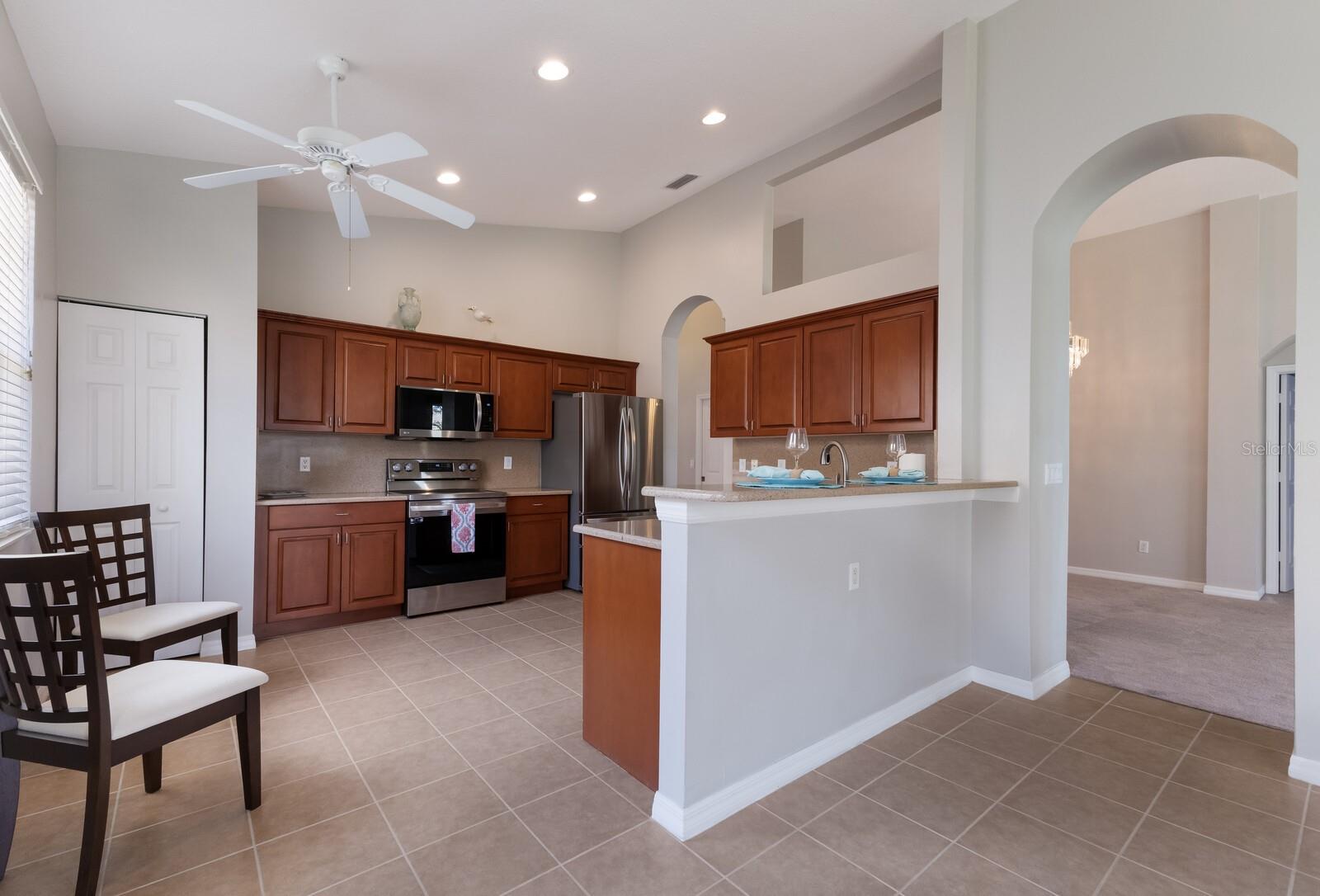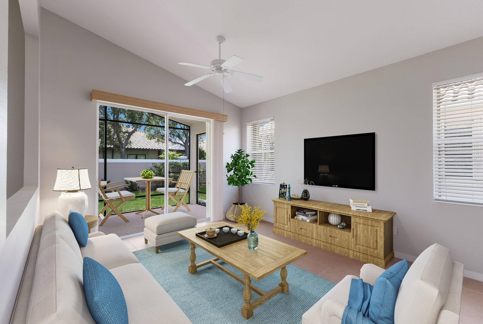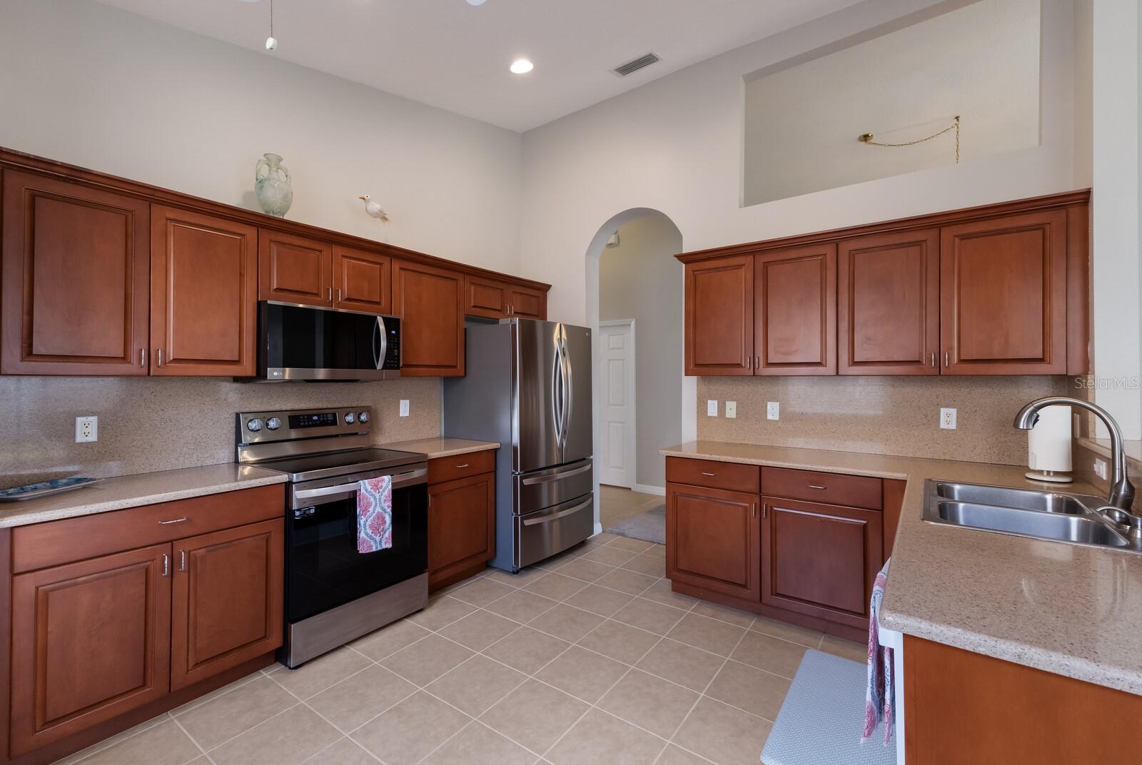One or more photo(s) has been virtually staged. Welcome to Cascades at Sarasota, a premier over-55 community offering luxurious resort-style living with an array of activities, including Pickleball, Tennis and the Exceedingly Popular Cascades Travel Club. This Montego floor plan is immaculate and move-in-ready. Enter the immediately impressive, tiled foyer with 12-foot ceilings, alcove lighting and an elegant archway leading to the expansive living area. Off the main entrance hall is the versatile den/office/3rd bedroom—a perfect sanctuary for reading, practicing music, or staying connected online. The chef’s kitchen is a culinary delight, complete with new LG refrigerator, range, and microwave. The 36-inch hardwood cabinets are paired with stunning quartz countertops and a matching backsplash. Entertain guests effortlessly. The bar-height counter has seating for 4. The adjacent tiled family room, bathed in natural light from 8 ft glass sliding doors and high transom windows. Experience al fresco dining on the screened and covered lanai, ideally oriented east for shady afternoon lounging. The spacious primary bedroom is a true retreat, accommodating king-size furniture with ease and featuring two generous walk-in closets. The luxurious bath invites relaxation with a corner garden tub, step-in shower, dual vanities, and a private lavatory. For ultimate peace of mind, the home includes a high-efficiency HVAC system (installed 3/22) and accordion HURRICANE SHUTTERS. Also...special-order, builder installed, exterior wall insulation. Cascades is wonderfully active community. An on-site sports director will guide you to the perfect pastime, whether it’s tennis on six pristine Har-Tru courts, exhilarating pickleball, bocce, or horseshoes. Dive into one of Sarasota’s largest indoor/outdoor pools or join the dynamic travel club. The recently updated clubhouse is a hub of activity, featuring a top-notch fitness facility, craft room with kilns, card and billiard rooms, and regular entertainment in the Grand Meeting Room. Nestled just north of University Parkway, Cascades offers unparalleled convenience to SRQ Airport (10 minutes), downtown dining and theaters (20 minutes), and world-renowned beaches (30 minutes). Enjoy the ease of private mailboxes and the benefit of no CDD fees in this prime Sarasota location.