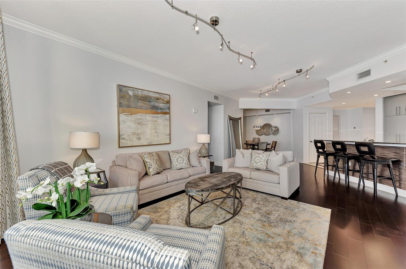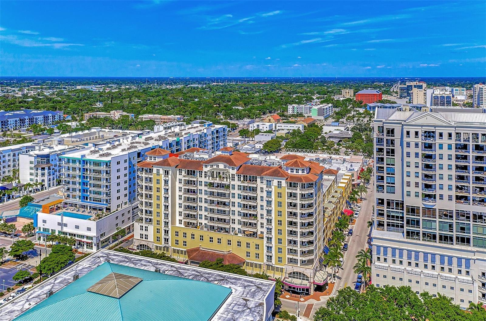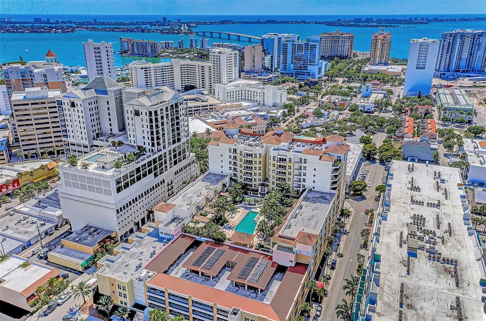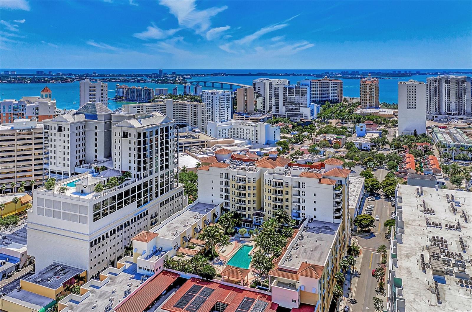 *NEWLY APPRAISED $50,000 PRICE IMPROVEMENT * Introducing 100 Central Avenue. Where Downtown is Downstairs. Discover a rare opportunity to own a fully furnished, updated unit in the heart of Sarasota. this stylish luxury condo boasts 1,725 sq. ft. and features 2 spacious bedrooms ( en suite), 2.5 bathrooms, a den and an expansive balcony with captivating bay and city views. Elegant touches like rich dark hardwood floors, custom cabinetry, and granite countertops create a warm, inviting space. NEW 2024 water heater and refrigerator. Located steps from Whole Foods, Starbucks, the Opera House, and countless dining options, enjoy urban living with Sarasota's cultural attractions at your doorstep. St. Armands Circle and Lido Beach are minutes away, offering world-class shopping and stunning beaches. Indulge in luxury amenities: a 24-hour concierge, heated pool, jacuzzi, fitness center, common area, movie theatre, art studio and even a guest suite available for a small fee. PET FRIENDLY building! This is downtown living at its finest—privacy, convenience, and style in one exceptional home. Don't miss out on this Sarasota gem! This would be a great choice for any barrier islanders displaced by the recent storms. The 2 PARKING SPOTS are high and dry on the 4th floor. PROACTIVE INSPECTION AND APPRAISAL COMPLETED JAN. 2025.