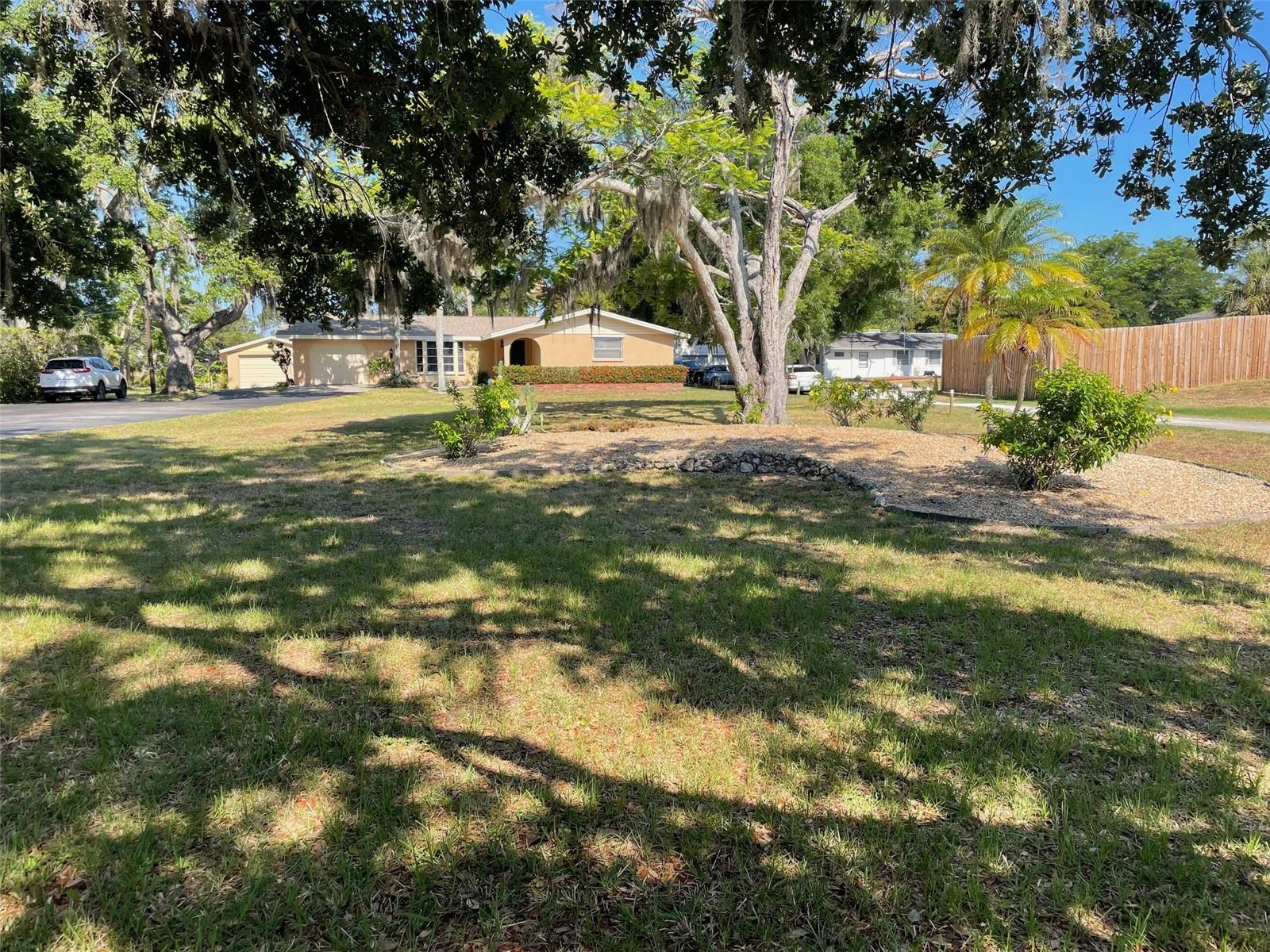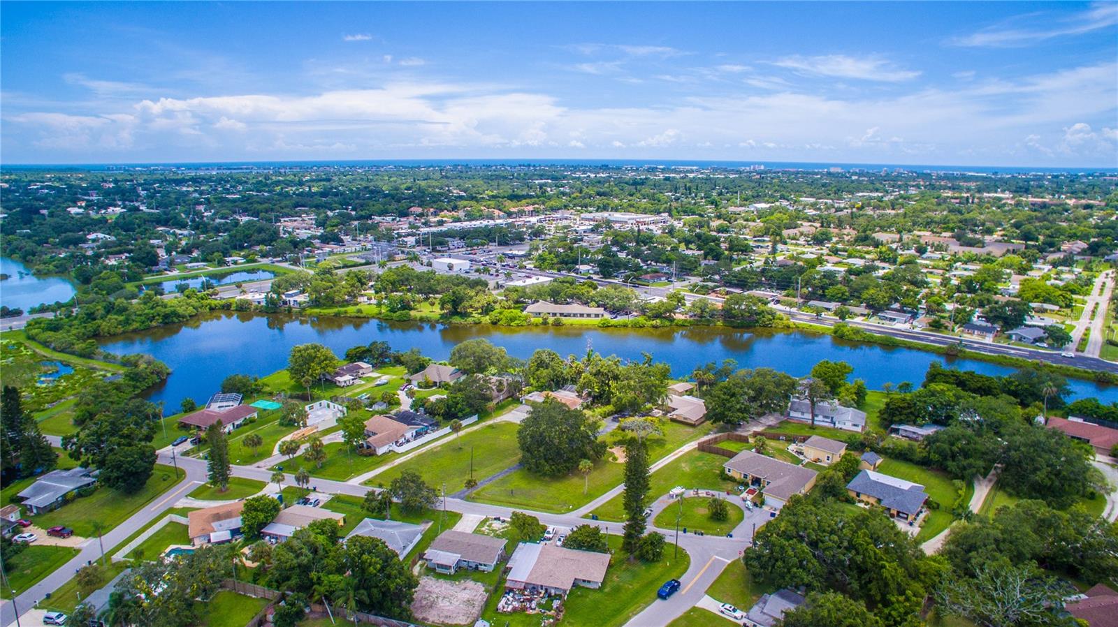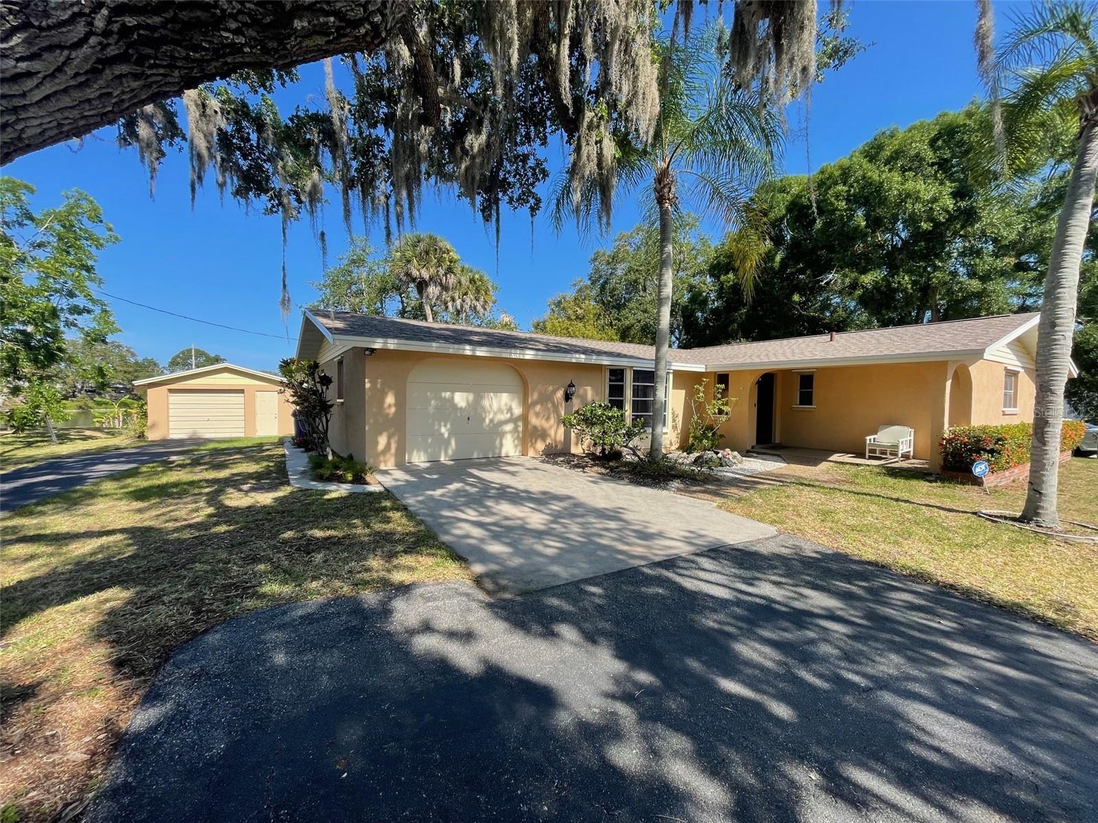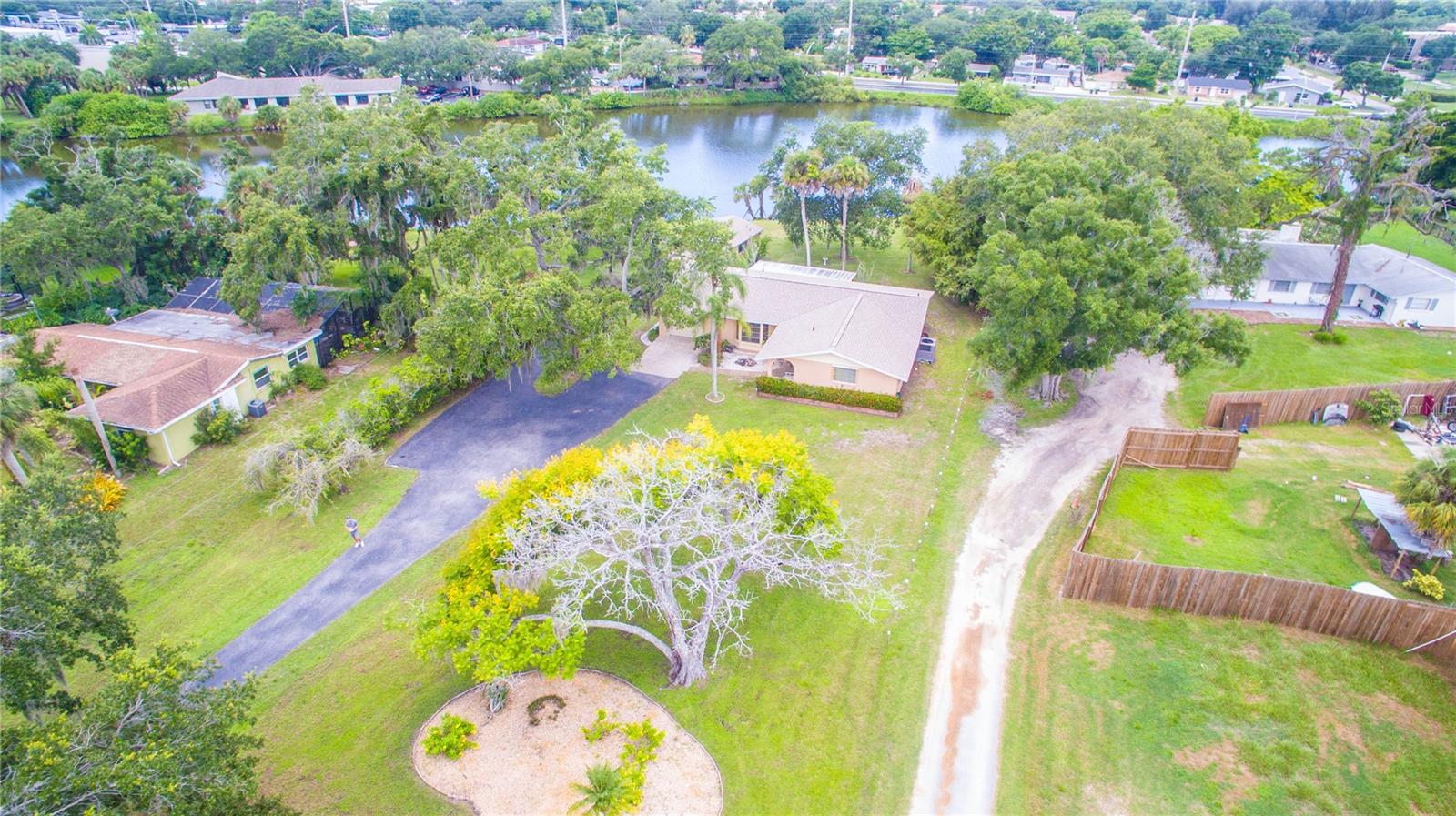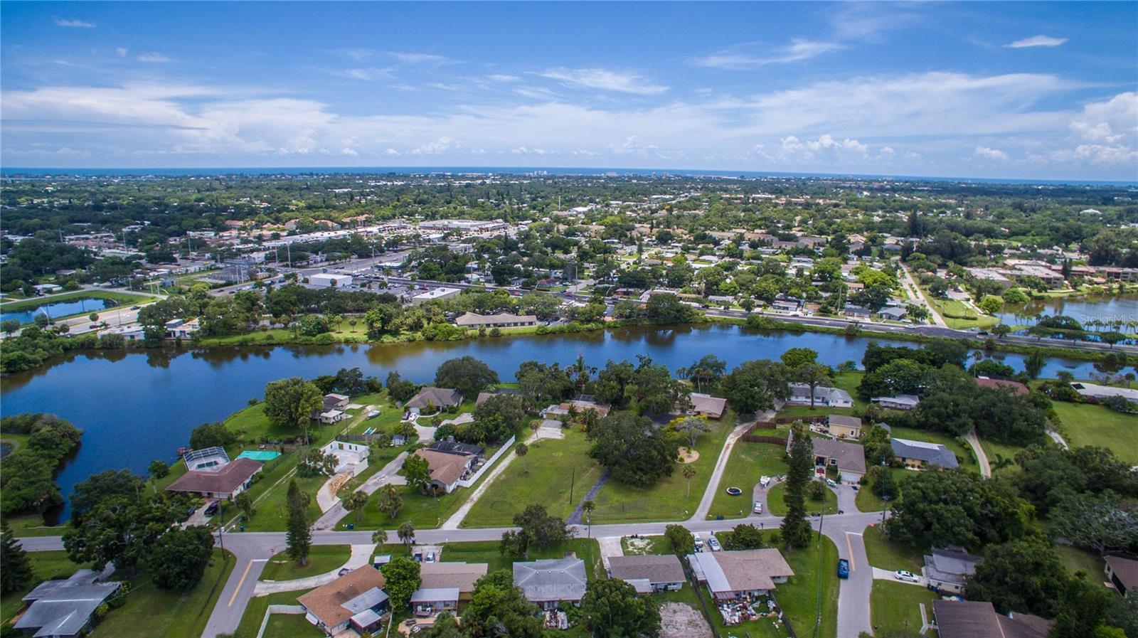 RARE FIND! ALMOST 1.2 ACRES OF LAKEFRONT SPLENDOR IN THE URBAN AREA! Walk to shops and dining. Only 3 miles to Siesta Key! Non-deed restricted Clark Lakes allows accessory structures and this lot may be split into 2 half+ acre lots. The classic home and workshop/ extra garage has been well maintained with a new roof in 2023, HVAC in 2022 and HW heater in 2023 and garage door opener in 2024, Storm shutters save in insurance too. The land features mature shady oak trees and fruit trees with the long drive is set up for future easement/ lot split. This is ideal for a large self-sufficient garden and family compound with accessory structures and amenities. Builder opportunity includes renovating existing home and building a new home on front lot.
