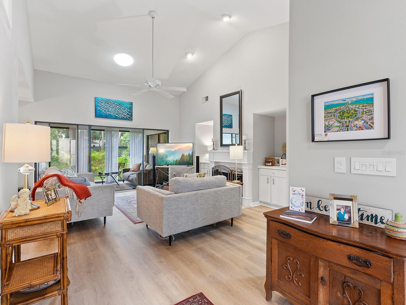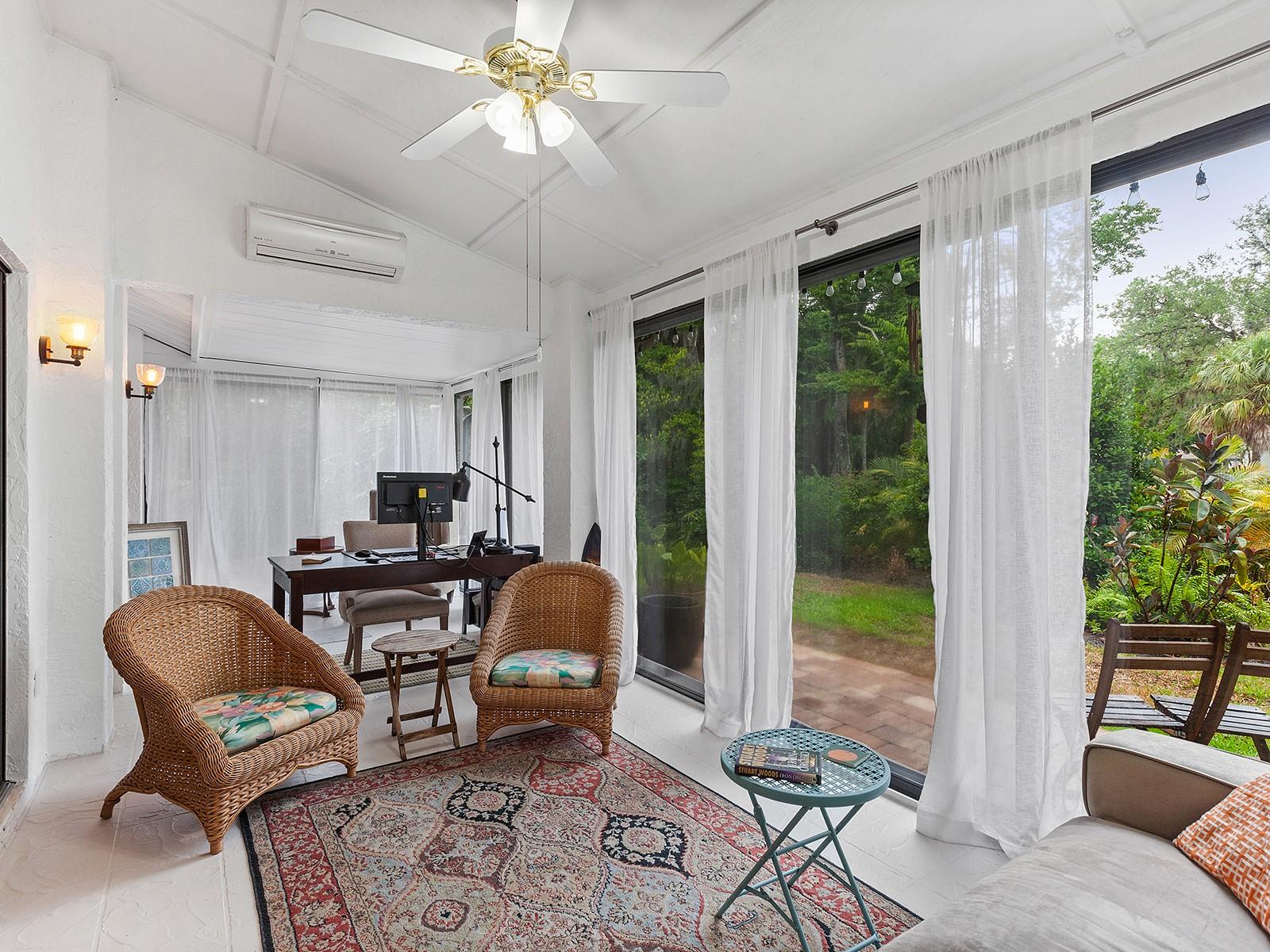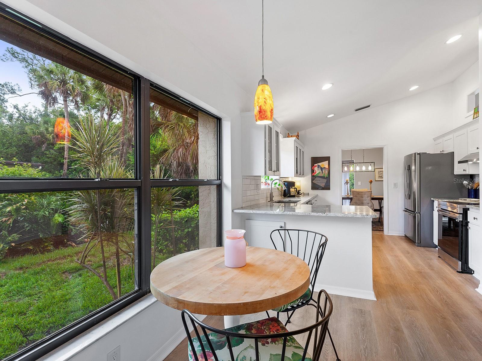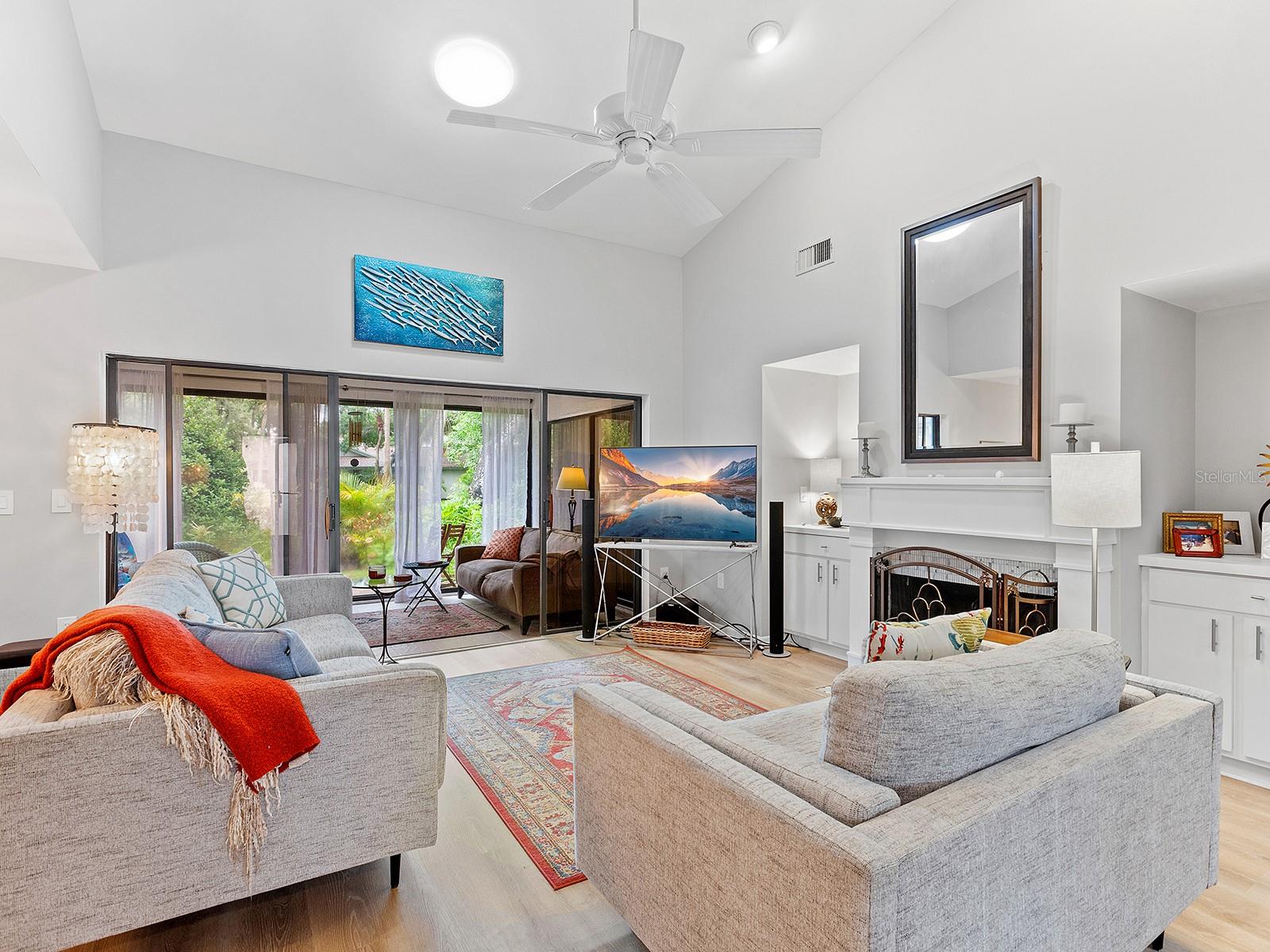 Pricing updated for this Modernized Villa in Gated Florida Lifestyle Community, for Over 55' ers. In the Hammocks IV neighborhood the fees were reduced for the 2025 budget and do include Gate, Wifi, cable, roofs, exterior paint, exterior pest control, Social Membership and lawn care, Manager. See the HOA Budget. One has to see Villa to appreciate all of the updates. * Two bedroom Two full bath Two car garage with space for workshop, PLUS fully enclosed and tiled Lanai adding to the square footage and under ac-split. Views of Florida's flora and fauna. Lots of natural sunlight, a flexible space to utilize for Florida living. * Modernized expansive Kitchen features subway tiles, a deep stainless steel sink, new dishwasher, granite counters, range hood, and garden window for starters. There is a dinette area in kitchen. * Extra closets & pantry's, and several built-ins throughout home. * A great room complete with a more formal dining area and living area with wooden fireplace, newly appointed, and a built-in wet bar. Kitchen is separate room with dinette area and breakfast bar. * Updated lighting fixtures and modernized switch plates for diming lighting and engaging exterior entry path's bubbly water fountain. *Updated flooring. *The entry walkway was sealed. * dome skylight in living room. * New hot water heater in oversized two-car garage. *Separate laundry area with oversized pantry for linen or extra storage closet, complete with new Washer & Dryer to Convey. * Floor plan offers flex Den/guest room + an expansive Lanai (which is under air condition-split) making this Villa much more spacious than if desired. Or close sliders and keep intimate spaces. Floor plan attached to MLS. * Block and stucco construction (not all Villas in Hammocks in Bent Tree are). Therefore this Floor Plan and Villa was designed properly for Florida living. Keeping the cool air in. Floor Plan attached to MLS. * Pride of ownership and curb appeal. Can be sold Turn key and ready for the next Floribean to move in. Beyond the enclosed and tiled lanai is an outdoor patio under some exterior lighting and with views of Floridas' hammock's, flora and fauna now in spring mode. An Easy walk or bike or golf cart it to community pools. An easy drive to all things Sarasota. Hammocks IV Community offers Two community pools, one heated, and nestled in the woods and off the trails. Golf carts allowed. Several golf courses, retail shopping, medical offices, restaurants and easy to get to beaches, downtown Sarasota, Galleries, Festivals, shopping and all things in Sarasota and Manatee counties. * This updated villa has more features than most new construction in area and at an affordable price point. Villa sits like a 3 bedroom floor plan. Added bonus room is the tiled, expansive and enclosed Lanai. It's fully enclosed with lots of natural sun light to view the Flora and Fauna of Florida. Walk out to exterior patio area, too. Situated in a neighborhood around a portion of Lake Sarasota perfect for fishing or enjoy the gazebo & benches at Hammocks' nature park. Take the overpass on Proctor Rd for easy access to the Beaches and downtown for all the Festivals and Galleries, Parks, Legacy Bike Trail, The Bay Park. This home was originally built as a great floor plan for entertaining friends, family and neighbors for just enjoy Florida lifestyle, yet close drive to golf, shopping, medical, retail and by-ways to all things Florida.