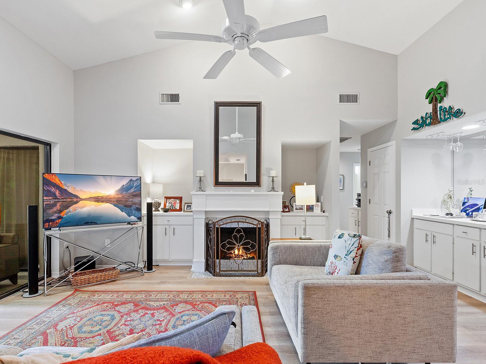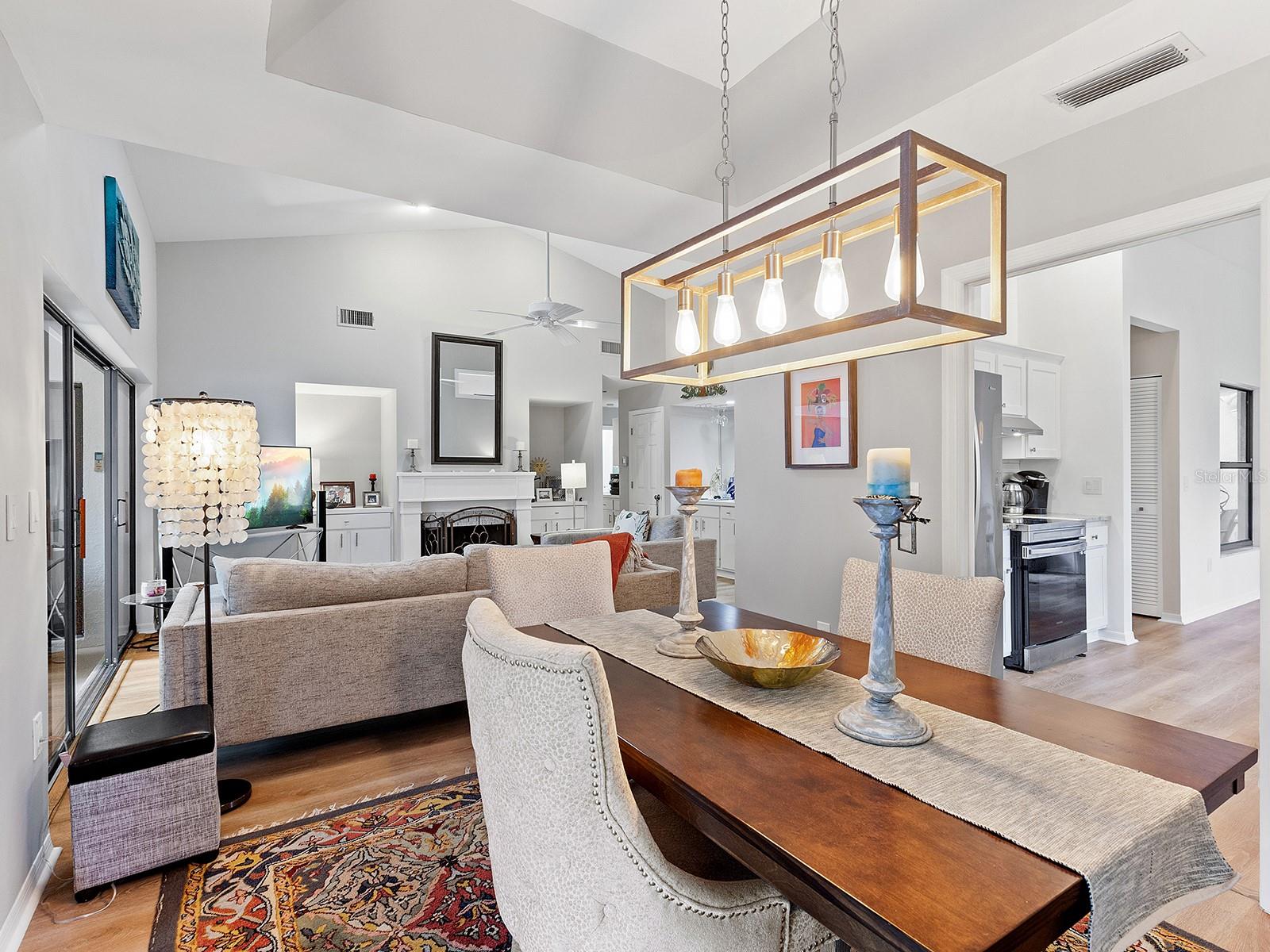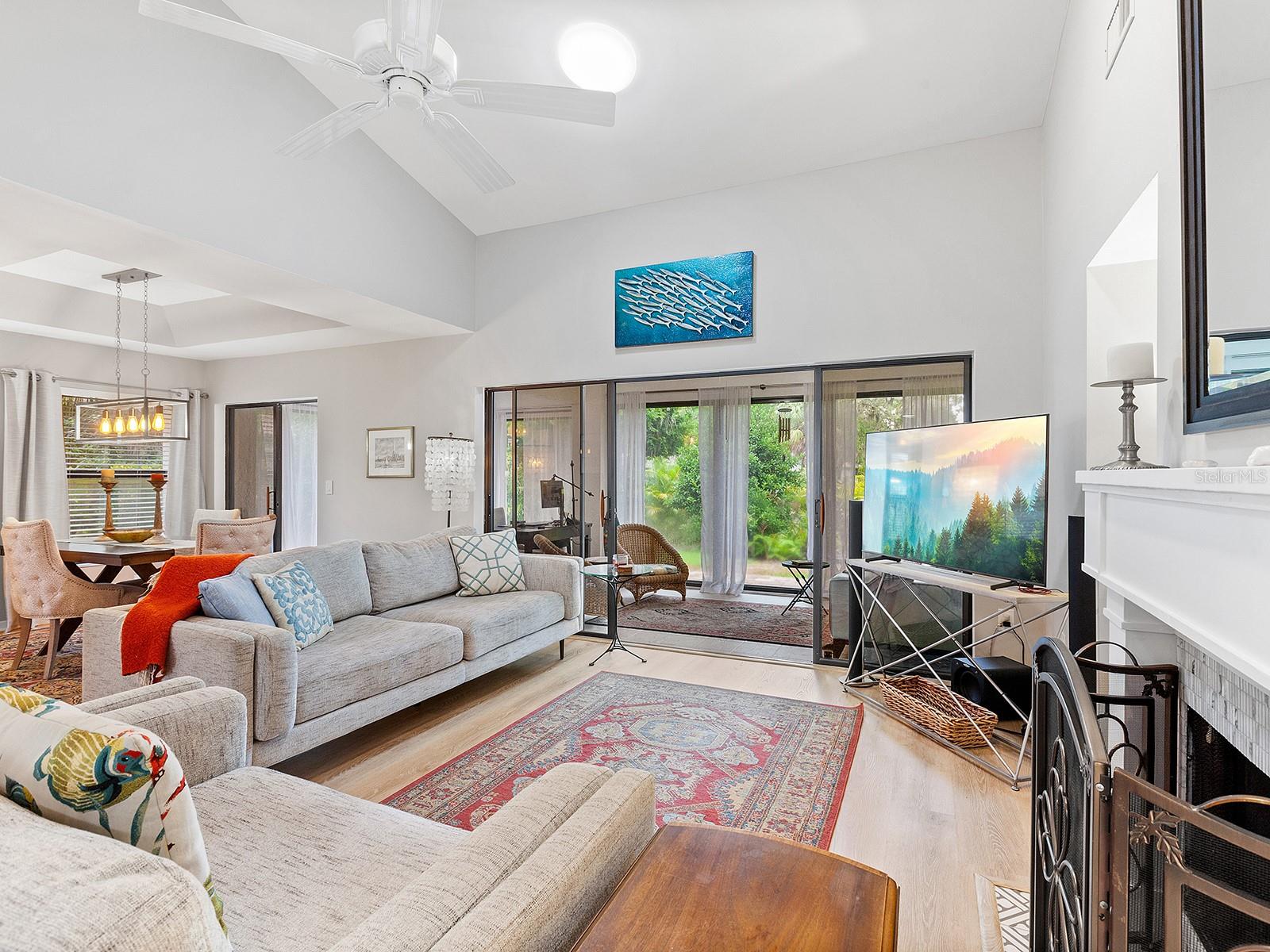Pricing updated for this Modernized Villa in Gated Florida Lifestyle Community, for Over 55' ers. In the Hammocks IV neighborhood the fees were reduced for the 2025 budget and do include Gate, Wifi, cable, roofs, exterior paint, exterior pest control, Social Membership and lawn care, Manager. See the HOA Budget. One has to see Villa to appreciate all of the updates. * Two bedroom Two full bath Two car garage with space for workshop, PLUS fully enclosed and tiled Lanai adding to the square footage and under ac-split. Views of Florida's flora and fauna. Lots of natural sunlight, a flexible space to utilize for Florida living. * Modernized expansive Kitchen features subway tiles, a deep stainless steel sink, new dishwasher, granite counters, range hood, and garden window for starters. There is a dinette area in kitchen. * Extra closets & pantry's, and several built-ins throughout home. * A great room complete with a more formal dining area and living area with wooden fireplace, newly appointed, and a built-in wet bar. Kitchen is separate room with dinette area and breakfast bar. * Updated lighting fixtures and modernized switch plates for diming lighting and engaging exterior entry path's bubbly water fountain. *Updated flooring. *The entry walkway was sealed. * dome skylight in living room. * New hot water heater in oversized two-car garage. *Separate laundry area with oversized pantry for linen or extra storage closet, complete with new Washer & Dryer to Convey. * Floor plan offers flex Den/guest room + an expansive Lanai (which is under air condition-split) making this Villa much more spacious than if desired. Or close sliders and keep intimate spaces. Floor plan attached to MLS. * Block and stucco construction (not all Villas in Hammocks in Bent Tree are). Therefore this Floor Plan and Villa was designed properly for Florida living. Keeping the cool air in. Floor Plan attached to MLS. * Pride of ownership and curb appeal. Can be sold Turn key and ready for the next Floribean to move in. Beyond the enclosed and tiled lanai is an outdoor patio under some exterior lighting and with views of Floridas' hammock's, flora and fauna now in spring mode. An Easy walk or bike or golf cart it to community pools. An easy drive to all things Sarasota. Hammocks IV Community offers Two community pools, one heated, and nestled in the woods and off the trails. Golf carts allowed. Several golf courses, retail shopping, medical offices, restaurants and easy to get to beaches, downtown Sarasota, Galleries, Festivals, shopping and all things in Sarasota and Manatee counties. * This updated villa has more features than most new construction in area and at an affordable price point. Villa sits like a 3 bedroom floor plan. Added bonus room is the tiled, expansive and enclosed Lanai. It's fully enclosed with lots of natural sun light to view the Flora and Fauna of Florida. Walk out to exterior patio area, too. Situated in a neighborhood around a portion of Lake Sarasota perfect for fishing or enjoy the gazebo & benches at Hammocks' nature park. Take the overpass on Proctor Rd for easy access to the Beaches and downtown for all the Festivals and Galleries, Parks, Legacy Bike Trail, The Bay Park. This home was originally built as a great floor plan for entertaining friends, family and neighbors for just enjoy Florida lifestyle, yet close drive to golf, shopping, medical, retail and by-ways to all things Florida.