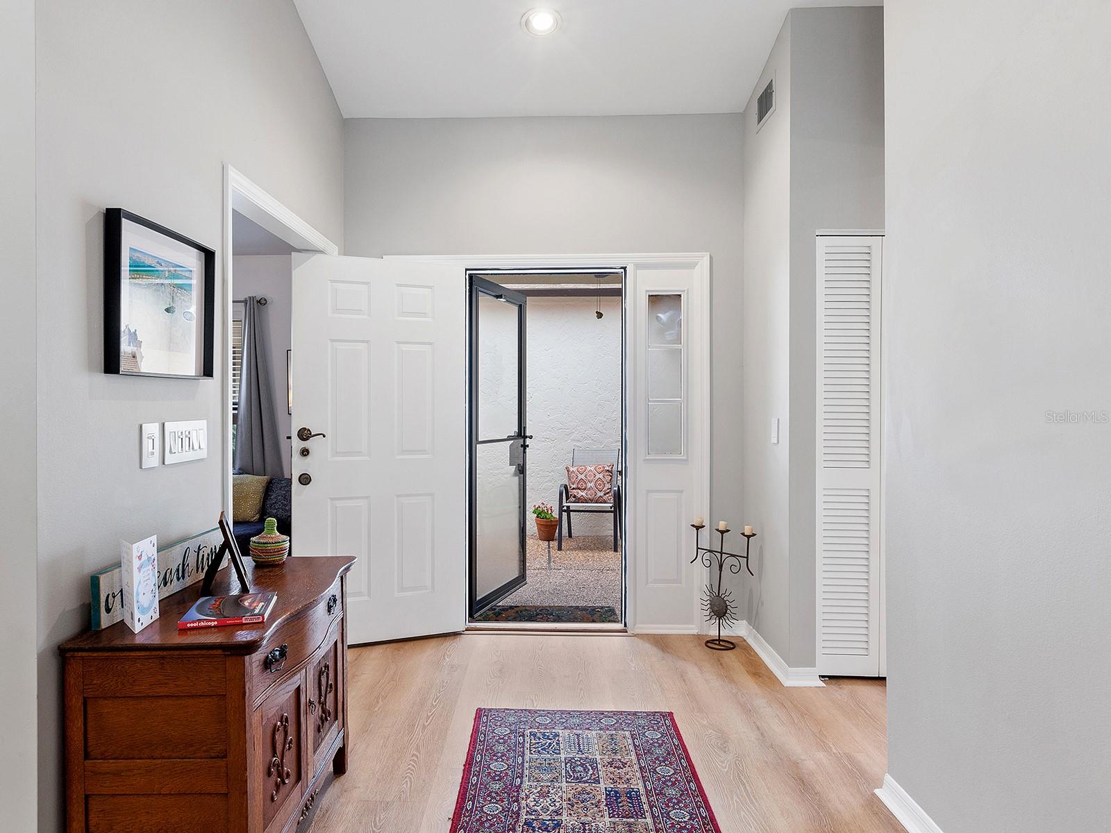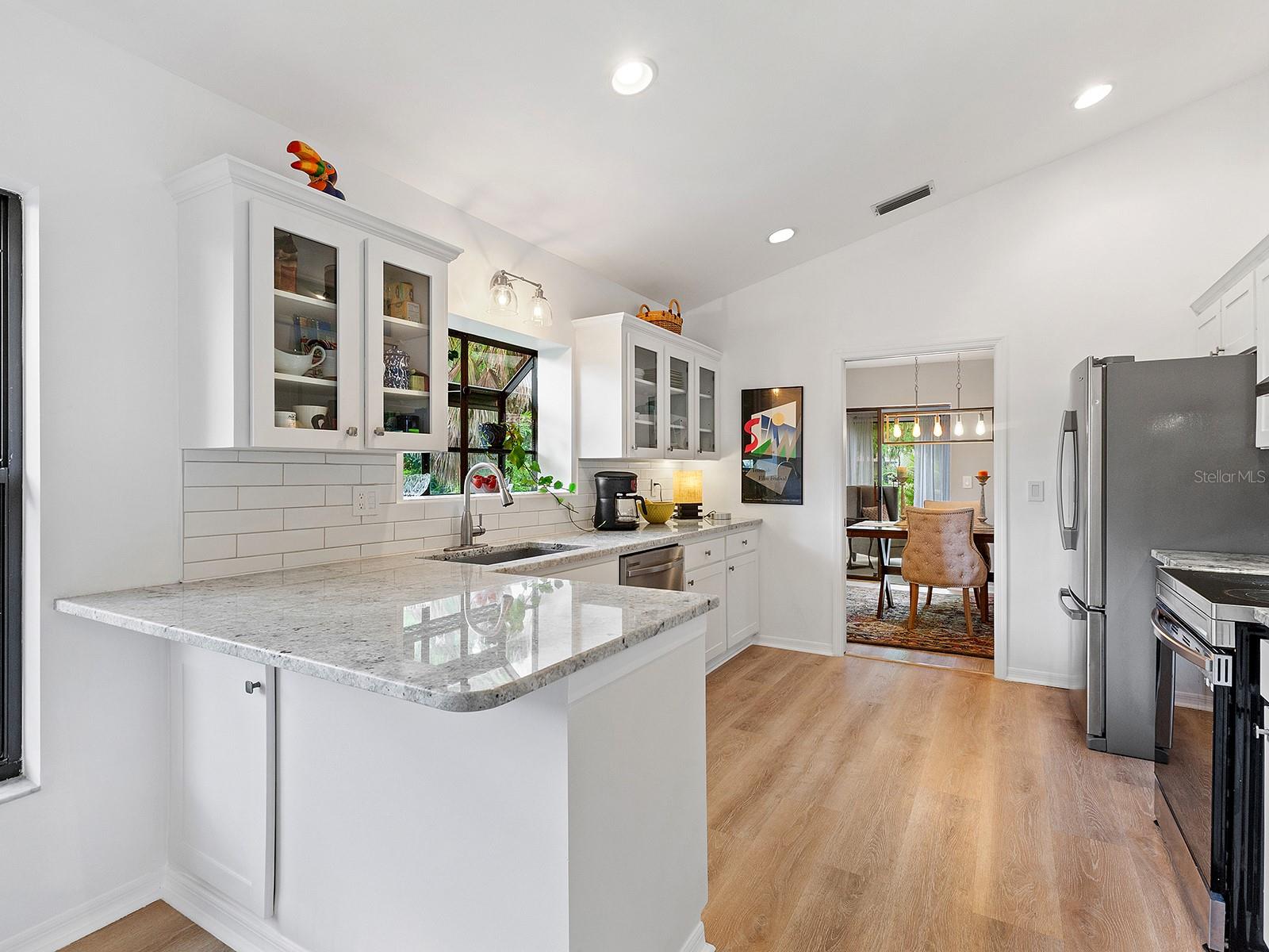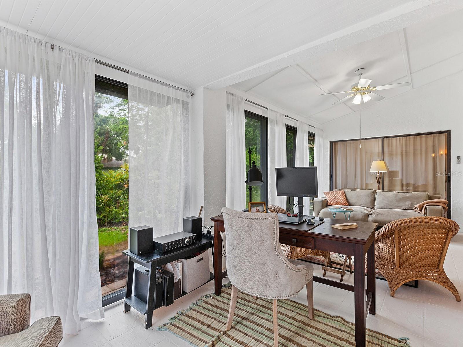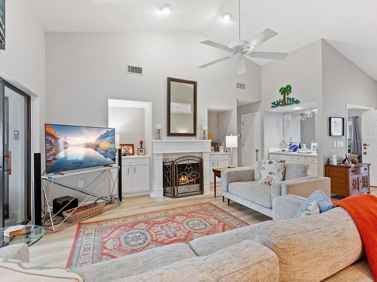 Pricing updated for this Modernized Villa in Gated Florida Lifestyle Community, for Over 55' ers. In the Hammocks IV neighborhood the fees were reduced for the 2025 budget and do include Gate, Wifi, cable, roofs, exterior paint, exterior pest control, Social Membership and lawn care, Manager. See the HOA Budget. One has to see Villa to appreciate all of the updates. * Two bedroom Two full bath Two car garage with space for workshop, PLUS fully enclosed and tiled Lanai adding to the square footage and under ac-split. Views of Florida's flora and fauna. Lots of natural sunlight, a flexible space to utilize for Florida living. * Modernized expansive Kitchen features subway tiles, a deep stainless steel sink, new dishwasher, granite counters, range hood, and garden window for starters. There is a dinette area in kitchen. * Extra closets & pantry's, and several built-ins throughout home. * A great room complete with a more formal dining area and living area with wooden fireplace, newly appointed, and a built-in wet bar. Kitchen is separate room with dinette area and breakfast bar. * Updated lighting fixtures and modernized switch plates for diming lighting and engaging exterior entry path's bubbly water fountain. *Updated flooring. *The entry walkway was sealed. * dome skylight in living room. * New hot water heater in oversized two-car garage. *Separate laundry area with oversized pantry for linen or extra storage closet, complete with new Washer & Dryer to Convey. * Floor plan offers flex Den/guest room + an expansive Lanai (which is under air condition-split) making this Villa much more spacious than if desired. Or close sliders and keep intimate spaces. Floor plan attached to MLS. * Block and stucco construction (not all Villas in Hammocks in Bent Tree are). Therefore this Floor Plan and Villa was designed properly for Florida living. Keeping the cool air in. Floor Plan attached to MLS. * Pride of ownership and curb appeal. Can be sold Turn key and ready for the next Floribean to move in. Beyond the enclosed and tiled lanai is an outdoor patio under some exterior lighting and with views of Floridas' hammock's, flora and fauna now in spring mode. An Easy walk or bike or golf cart it to community pools. An easy drive to all things Sarasota. Hammocks IV Community offers Two community pools, one heated, and nestled in the woods and off the trails. Golf carts allowed. Several golf courses, retail shopping, medical offices, restaurants and easy to get to beaches, downtown Sarasota, Galleries, Festivals, shopping and all things in Sarasota and Manatee counties. * This updated villa has more features than most new construction in area and at an affordable price point. Villa sits like a 3 bedroom floor plan. Added bonus room is the tiled, expansive and enclosed Lanai. It's fully enclosed with lots of natural sun light to view the Flora and Fauna of Florida. Walk out to exterior patio area, too. Situated in a neighborhood around a portion of Lake Sarasota perfect for fishing or enjoy the gazebo & benches at Hammocks' nature park. Take the overpass on Proctor Rd for easy access to the Beaches and downtown for all the Festivals and Galleries, Parks, Legacy Bike Trail, The Bay Park. This home was originally built as a great floor plan for entertaining friends, family and neighbors for just enjoy Florida lifestyle, yet close drive to golf, shopping, medical, retail and by-ways to all things Florida.