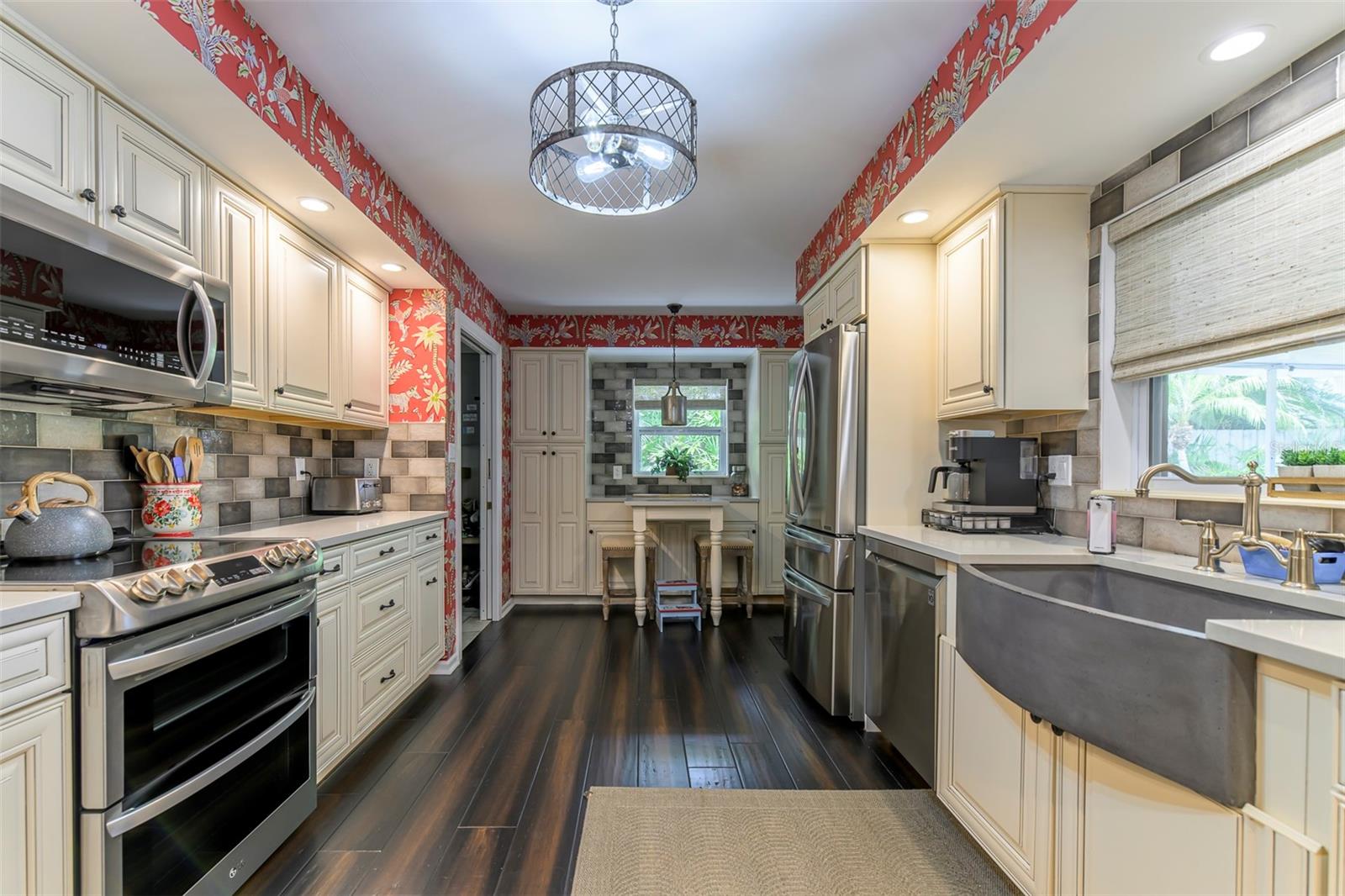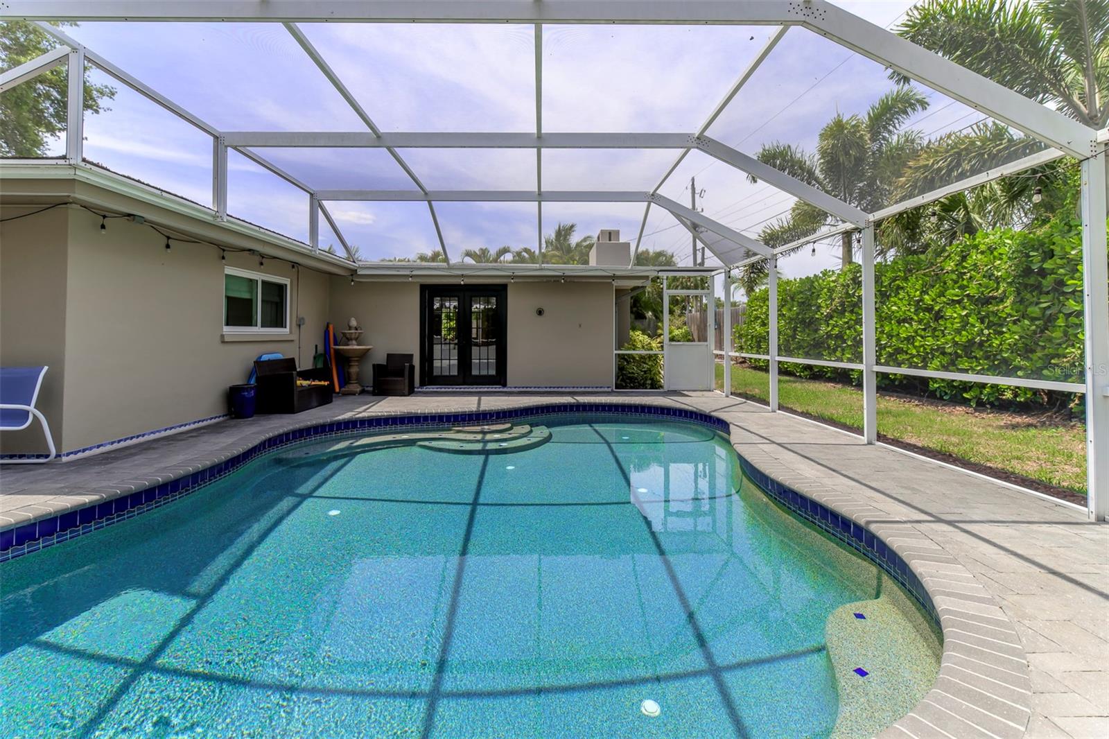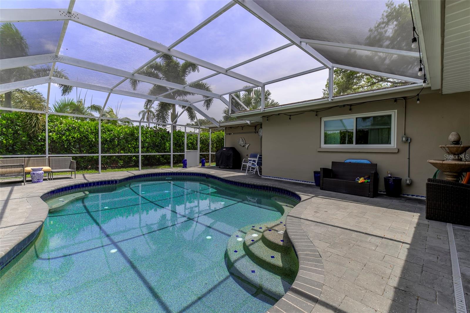 Beautifully renovated three bedrooms, two bath open floor plan home located in the highly sought-after Southside Elementary School District, minutes from downtown Sarasota, Siesta Key Beach, Selby Gardens, St. Armands circle, fine dining and shopping. Home boasts a kitchen with all wood soft-close cabinets, granite counter tops, two large pantry cabinets and two built in bar/seating areas. Great laundry/mud room with LG washer and dryer, very unique large wood slab hanging counter and a stainless-steel dog washing tub. Wonderful family room with fireplace and French doors that overlook the covered, heated pebble tech. pool on one side and the extra screened in porch on the other side so large that it will be hard not to entertain. Primary bedroom has custom tile accent wall and en suite bathroom. The windows are adorned with custom wood shutters and fabric treatments. Mature landscape with irrigation, nighttime lighting, fire pit, koi pond and tall wood privacy fencing only enhance this homes beauty. Call today!