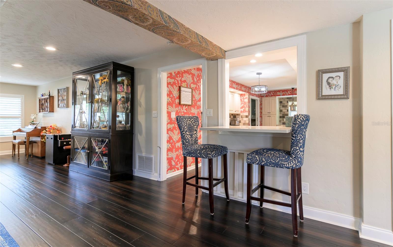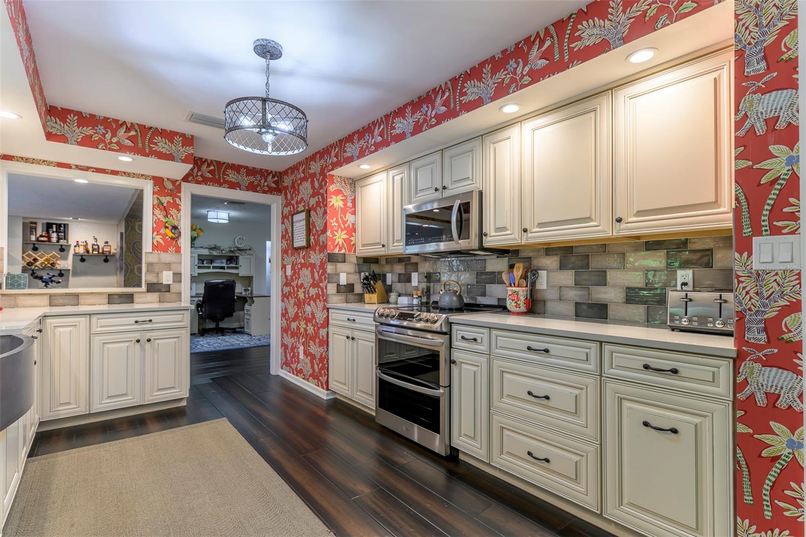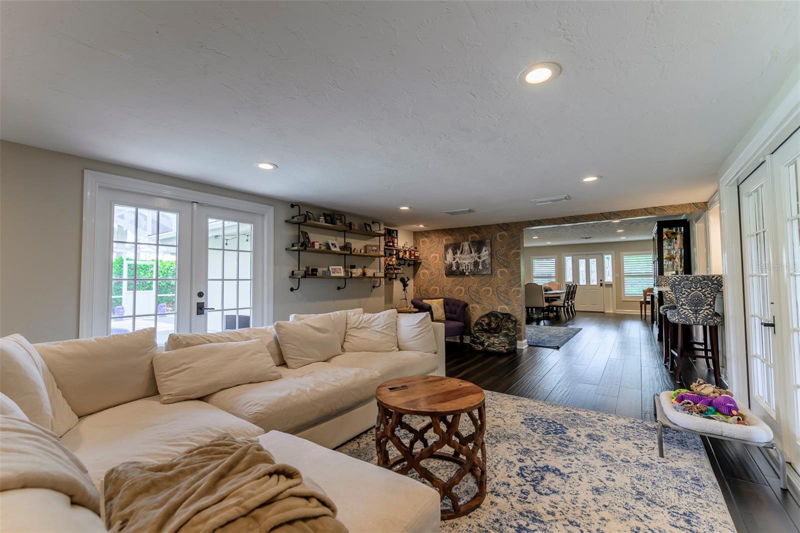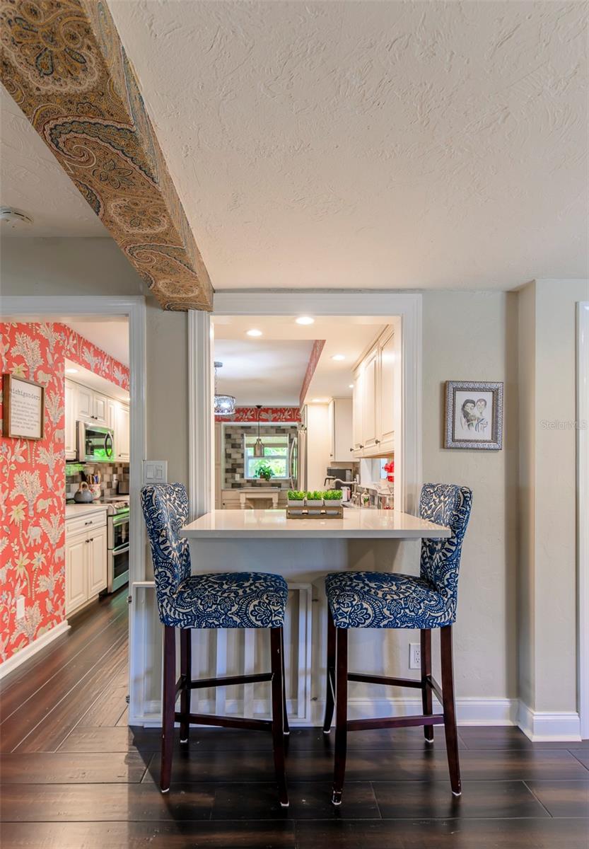 Beautifully renovated three bedrooms, two bath open floor plan home located in the highly sought-after Southside Elementary School District, minutes from downtown Sarasota, Siesta Key Beach, Selby Gardens, St. Armands circle, fine dining and shopping. Home boasts a kitchen with all wood soft-close cabinets, granite counter tops, two large pantry cabinets and two built in bar/seating areas. Great laundry/mud room with LG washer and dryer, very unique large wood slab hanging counter and a stainless-steel dog washing tub. Wonderful family room with fireplace and French doors that overlook the covered, heated pebble tech. pool on one side and the extra screened in porch on the other side so large that it will be hard not to entertain. Primary bedroom has custom tile accent wall and en suite bathroom. The windows are adorned with custom wood shutters and fabric treatments. Mature landscape with irrigation, nighttime lighting, fire pit, koi pond and tall wood privacy fencing only enhance this homes beauty. Call today!