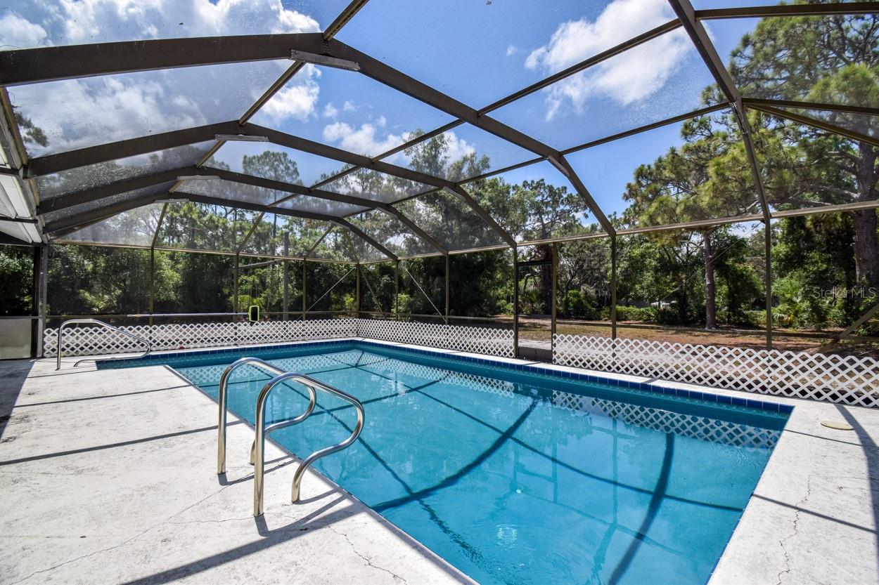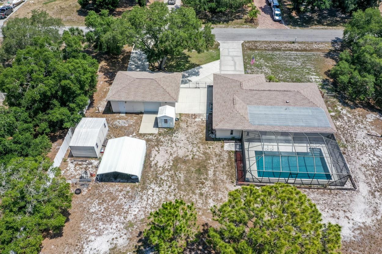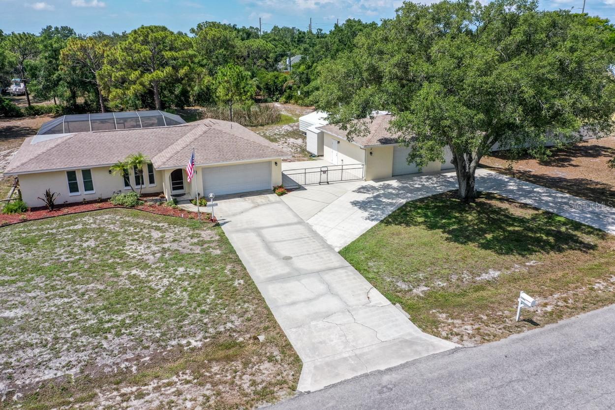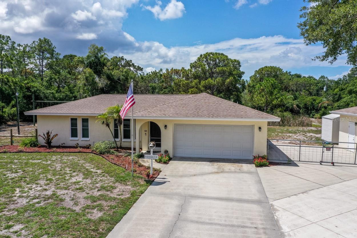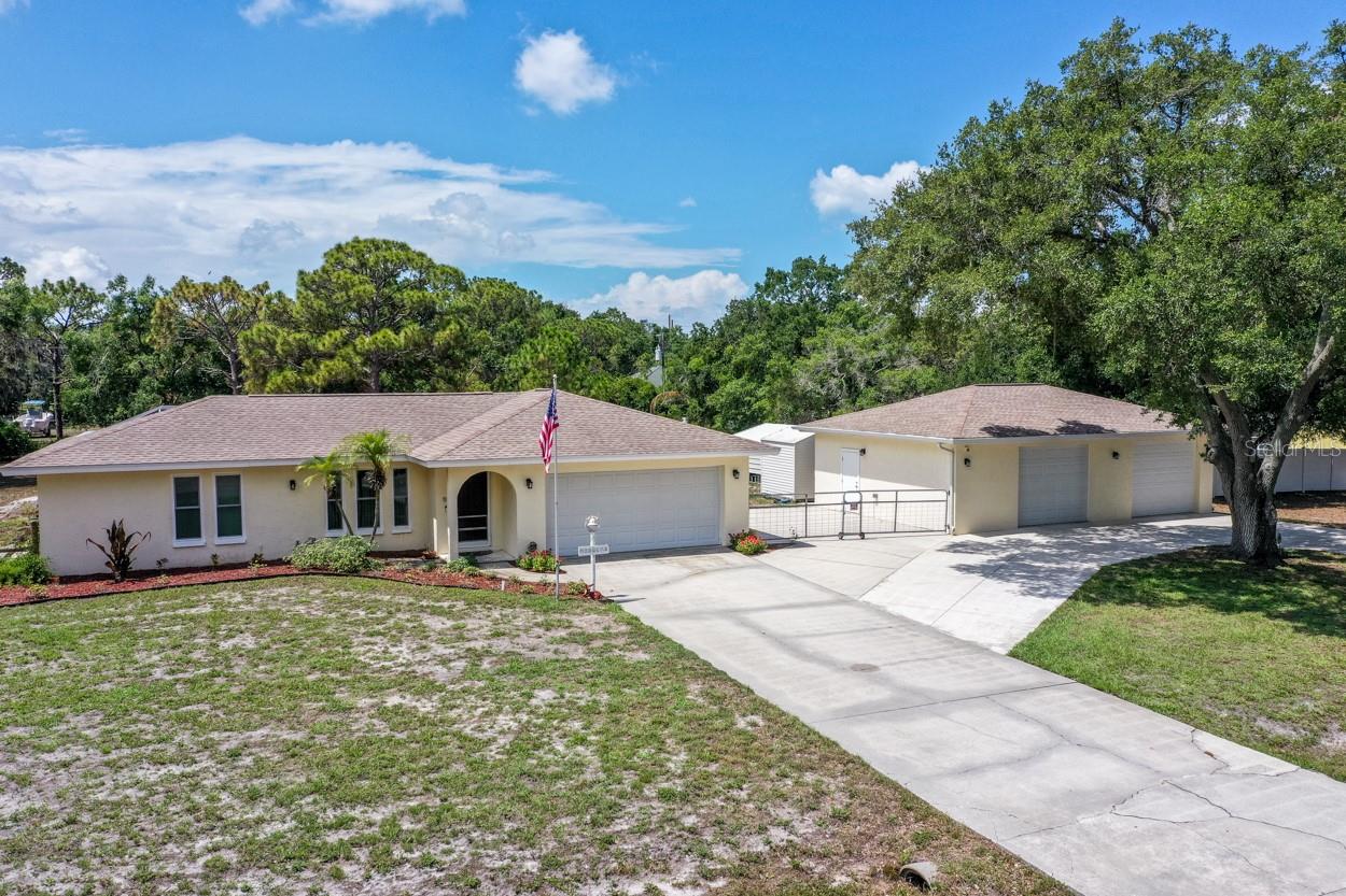Discover your tranquil haven on this expansive property, boasting over an acre of land. Recently painted both inside and out, this well-maintained home offers 4 bedrooms, 2 bathrooms, spacious 4-car garage and large pool with a 11 ft deep section. Enjoy the peace of mind provided by impact windows, eliminating the need for hurricane shutters. Key features include a new septic tank, HVAC system installed in 2022, and a pool resurfaced with poly pebble. The circular driveway simplifies ingress and egress, with ample parking space for vehicles and even RV parking with a 50-amp plug on the detached garage exterior. The oversized 875 sq ft detached 2 car garages provide ample room for large vehicles or recreational toys, while a 12x20 workshop serves various needs and doubles as a storage room. Additional storage is available in the covered area adjacent to the workshop. A newer 8x8 pump shed houses with the well equipment, featuring a two-year-old system.This home is equipped with security cameras that will convey with the home. Conveniently located approximately 1/4 mile from Twin Lakes County Park, 5 miles from the beach, and 7 miles from Myakka State Park, this home offers easy access to leisure activities. Top-rated schools and proximity to shopping, as well as easy access to Interstate 75, add to its allure.For further details on updates and improvements, refer to the attached feature sheet accompanying this listing. This magnificent property offers both serenity and modern amenities, presenting an ideal opportunity for discerning buyers. NO HOA and NO CDD an must see... Schedule your appointment for a private viewing.