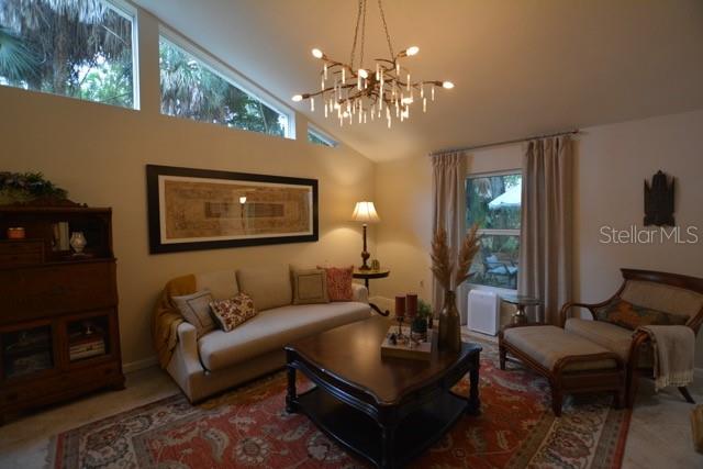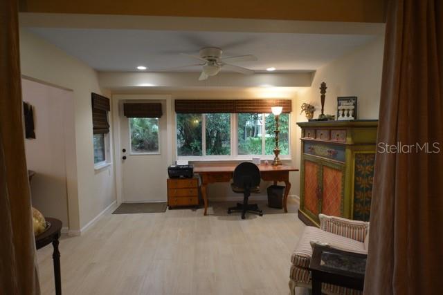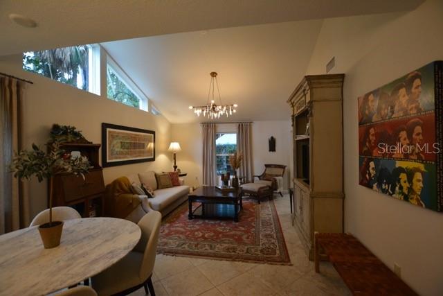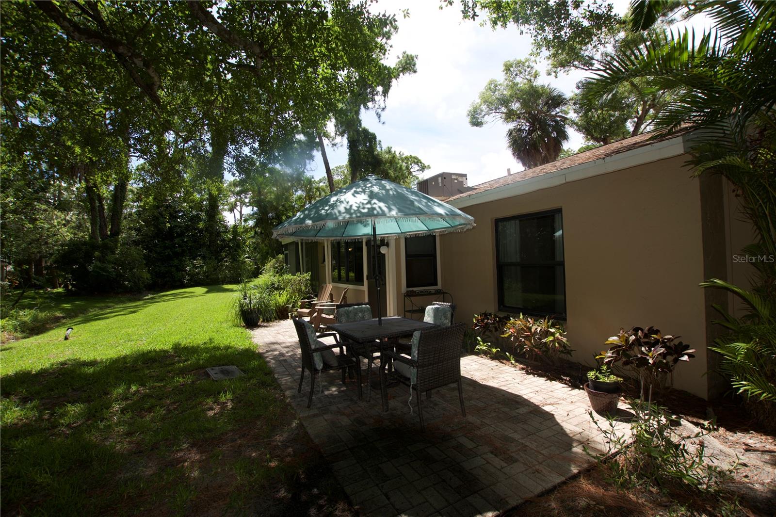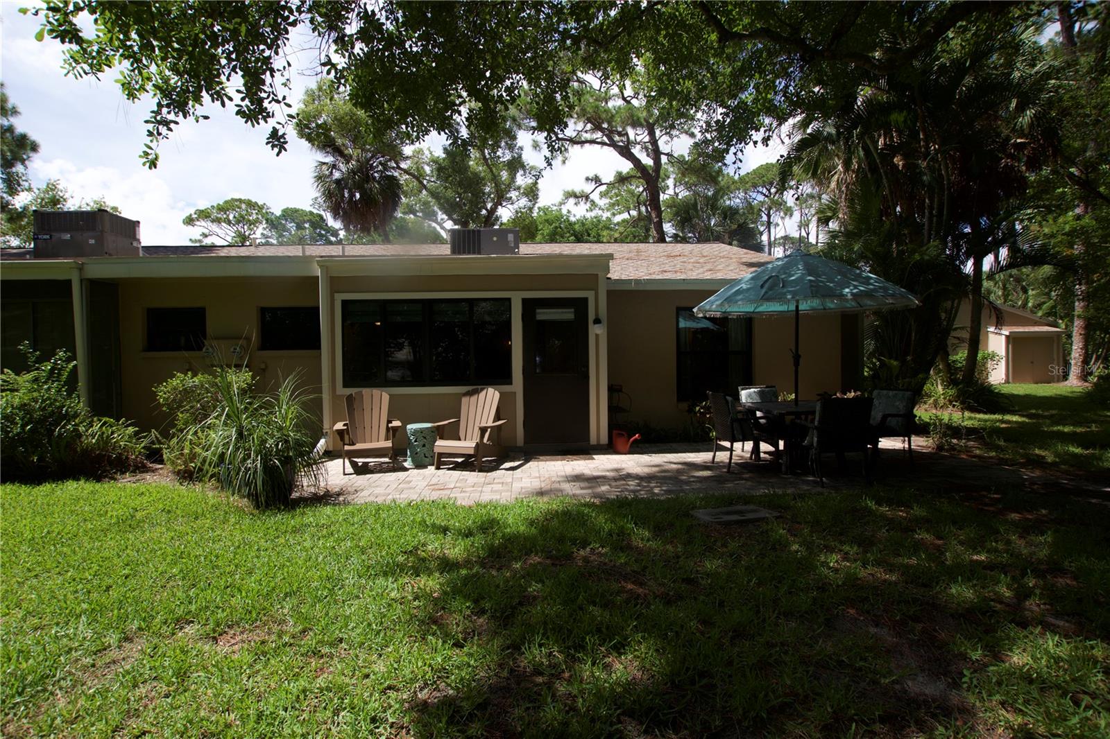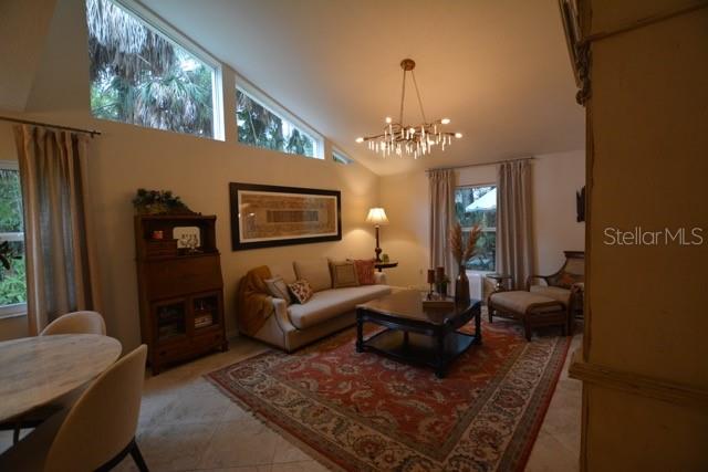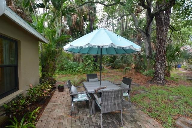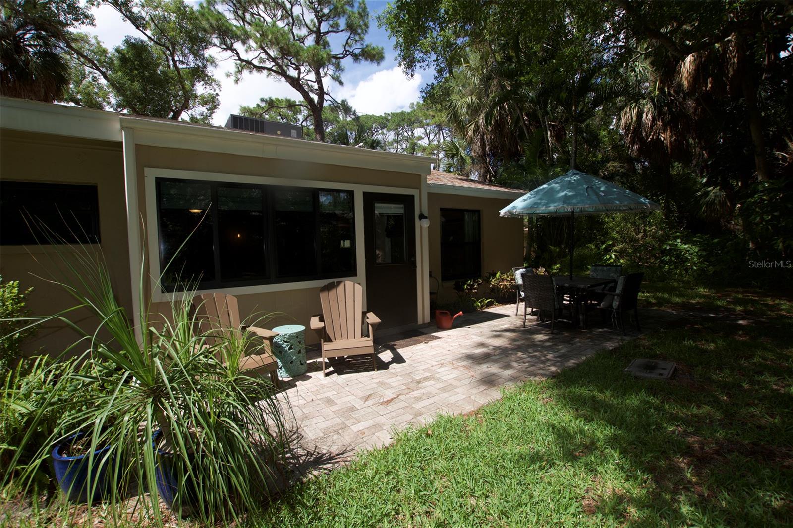 TROPICAL PARADISE IN UNBEATABLE LOCATION!!! NO STAIRS and ONLY 2 UNITS PER BUILDING -WINDOWS ON 3 SIDES give this no maintenance condo the feel of a single family home! Great location… 6 minute drive to Downtown, 10 minutes to St. Armands Circle and Lido Beach. 7 minutes to UTC Mall and 5 minutes to Publix. Walk to Water Tower Park and Ringling Museum. Light and bright 2 bedroom condo has upper Transom Windows in Vaulted Ceiling Living Room, large window (6’) in Office and is LIGHT, BRIGHT AND OPEN. Due to conversion of porch to living area unit shows much larger than actual footage. Updated with NEW porcelain tile throughout, white kitchen cabinets, stainless appliances, 1 1/2 years NEW counter depth refrigerator (that truly is counter depth!), gas range & oven, “extended” recirculating fan over stove, microwave & disposal. Pass thru bar to dining area with wine rack. NEW Living/Dining lighting, NEW draperies and custom Bali blinds in 2022. NEW Porcelain tile in 2 Bedrooms and Office in 2022. Refrigerator NEW in 2022. A/C NEW appx 6 years ago. NEW Gas Water Heater 2024. Porch converted to NEW living area appx 2018. NEW sound reduction double pane windows (excluding porch) in 2020. NEW Patio pavers installed across entire rear of home in 2016. NEW Dishwasher appx. 2019. NEW dimmers installed in Kitchen, Living room, Dining room and Main bedroom in 2022. NEW Pendant lighting in Main bedroom in 2022, NEW Light fixture in Living Room and NEW coordinating Wall Sconces in 2022. Community conveniently located close to airport but due to sound deafening windows you won’t know it! This condo feels like a house due to design with only 2 units per building and windows on 3 sides and it is like living in a house without the maintenance hassles! Community Clubhouse with BBQ Facilities, Pool with covered Lanai, Library and Kitchen in clubhouse, Tennis, Pickleball and Shuffleboard available. Neighborhood activities such as Happy Hour available to those who choose to participate. Conveniently located to everything and in move in condition…call today to view this exceptional property! TV in guest bedroom is included. Foyer mirror and draperies in guest bedroom do not convey (privacy blinds are included).