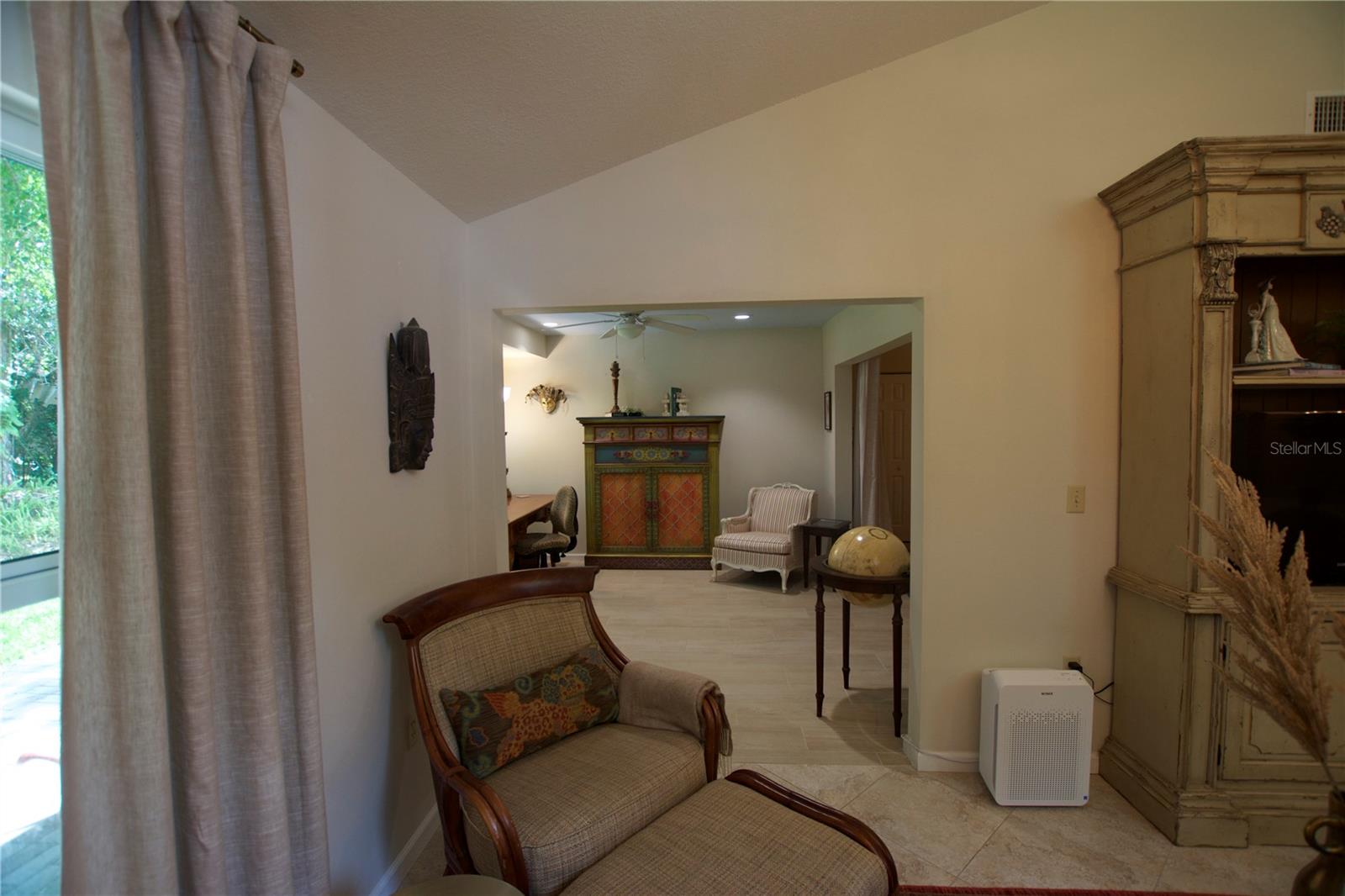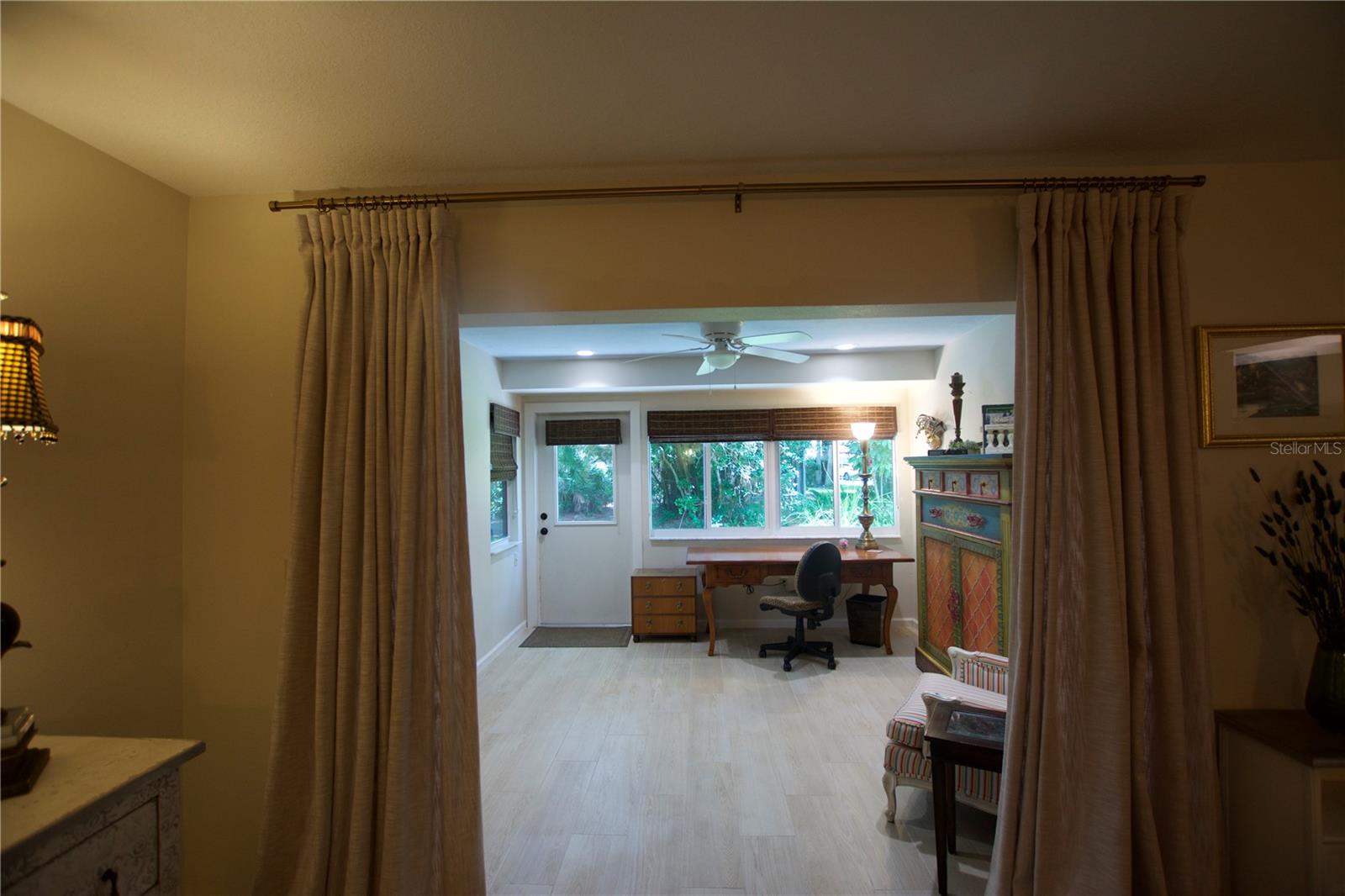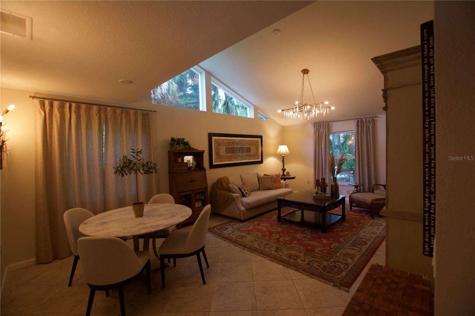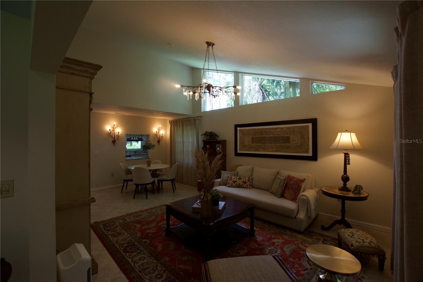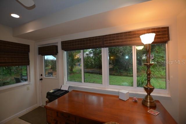 TROPICAL PARADISE IN UNBEATABLE LOCATION!!! NO STAIRS and ONLY 2 UNITS PER BUILDING -WINDOWS ON 3 SIDES give this no maintenance condo the feel of a single family home! Great location… 6 minute drive to Downtown, 10 minutes to St. Armands Circle and Lido Beach. 7 minutes to UTC Mall and 5 minutes to Publix. Walk to Water Tower Park and Ringling Museum. Light and bright 2 bedroom condo has upper Transom Windows in Vaulted Ceiling Living Room, large window (6’) in Office and is LIGHT, BRIGHT AND OPEN. Due to conversion of porch to living area unit shows much larger than actual footage. Updated with NEW porcelain tile throughout, white kitchen cabinets, stainless appliances, 1 1/2 years NEW counter depth refrigerator (that truly is counter depth!), gas range & oven, “extended” recirculating fan over stove, microwave & disposal. Pass thru bar to dining area with wine rack. NEW Living/Dining lighting, NEW draperies and custom Bali blinds in 2022. NEW Porcelain tile in 2 Bedrooms and Office in 2022. Refrigerator NEW in 2022. A/C NEW appx 6 years ago. NEW Gas Water Heater 2024. Porch converted to NEW living area appx 2018. NEW sound reduction double pane windows (excluding porch) in 2020. NEW Patio pavers installed across entire rear of home in 2016. NEW Dishwasher appx. 2019. NEW dimmers installed in Kitchen, Living room, Dining room and Main bedroom in 2022. NEW Pendant lighting in Main bedroom in 2022, NEW Light fixture in Living Room and NEW coordinating Wall Sconces in 2022. Community conveniently located close to airport but due to sound deafening windows you won’t know it! This condo feels like a house due to design with only 2 units per building and windows on 3 sides and it is like living in a house without the maintenance hassles! Community Clubhouse with BBQ Facilities, Pool with covered Lanai, Library and Kitchen in clubhouse, Tennis, Pickleball and Shuffleboard available. Neighborhood activities such as Happy Hour available to those who choose to participate. Conveniently located to everything and in move in condition…call today to view this exceptional property! TV in guest bedroom is included. Foyer mirror and draperies in guest bedroom do not convey (privacy blinds are included).