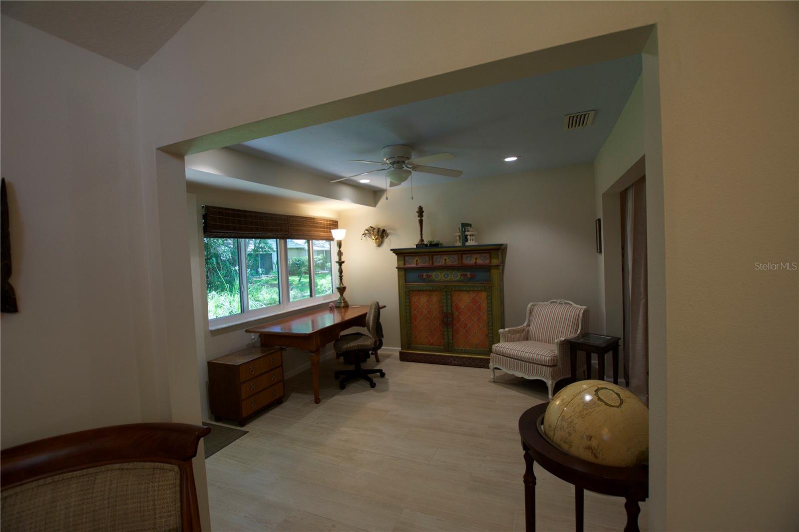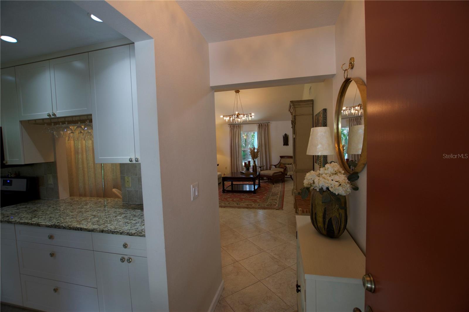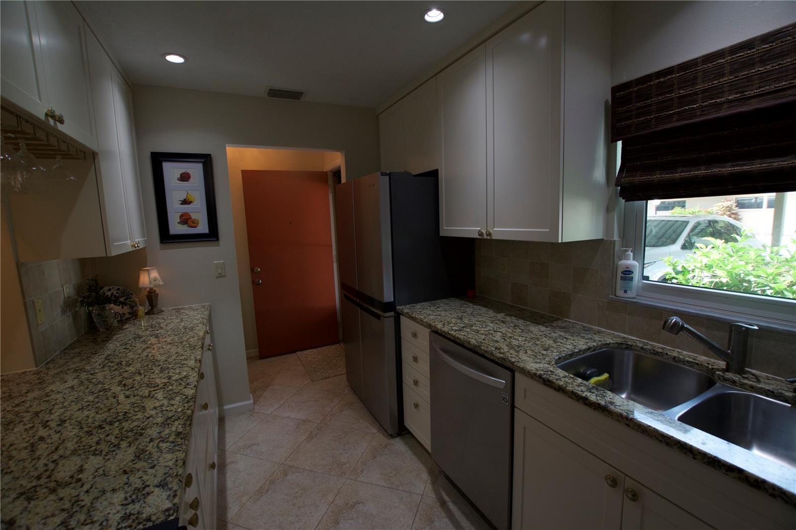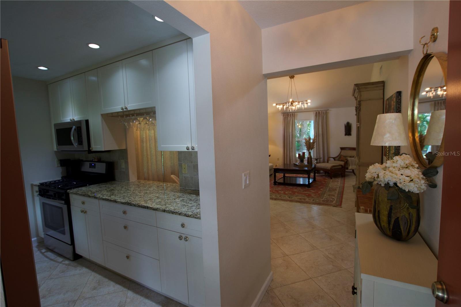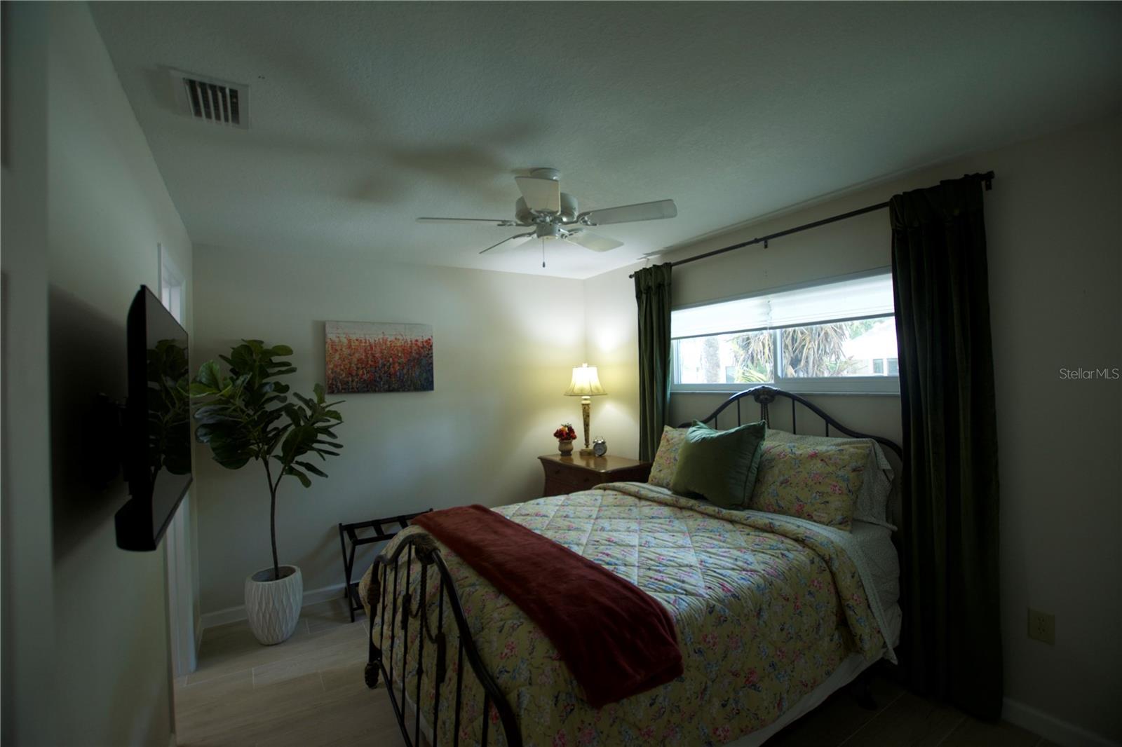 TROPICAL PARADISE IN UNBEATABLE LOCATION!!! NO STAIRS and ONLY 2 UNITS PER BUILDING -WINDOWS ON 3 SIDES give this no maintenance condo the feel of a single family home! Great location… 6 minute drive to Downtown, 10 minutes to St. Armands Circle and Lido Beach. 7 minutes to UTC Mall and 5 minutes to Publix. Walk to Water Tower Park and Ringling Museum. Light and bright 2 bedroom condo has upper Transom Windows in Vaulted Ceiling Living Room, large window (6’) in Office and is LIGHT, BRIGHT AND OPEN. Due to conversion of porch to living area unit shows much larger than actual footage. Updated with NEW porcelain tile throughout, white kitchen cabinets, stainless appliances, 1 1/2 years NEW counter depth refrigerator (that truly is counter depth!), gas range & oven, “extended” recirculating fan over stove, microwave & disposal. Pass thru bar to dining area with wine rack. NEW Living/Dining lighting, NEW draperies and custom Bali blinds in 2022. NEW Porcelain tile in 2 Bedrooms and Office in 2022. Refrigerator NEW in 2022. A/C NEW appx 6 years ago. NEW Gas Water Heater 2024. Porch converted to NEW living area appx 2018. NEW sound reduction double pane windows (excluding porch) in 2020. NEW Patio pavers installed across entire rear of home in 2016. NEW Dishwasher appx. 2019. NEW dimmers installed in Kitchen, Living room, Dining room and Main bedroom in 2022. NEW Pendant lighting in Main bedroom in 2022, NEW Light fixture in Living Room and NEW coordinating Wall Sconces in 2022. Community conveniently located close to airport but due to sound deafening windows you won’t know it! This condo feels like a house due to design with only 2 units per building and windows on 3 sides and it is like living in a house without the maintenance hassles! Community Clubhouse with BBQ Facilities, Pool with covered Lanai, Library and Kitchen in clubhouse, Tennis, Pickleball and Shuffleboard available. Neighborhood activities such as Happy Hour available to those who choose to participate. Conveniently located to everything and in move in condition…call today to view this exceptional property! TV in guest bedroom is included. Foyer mirror and draperies in guest bedroom do not convey (privacy blinds are included).