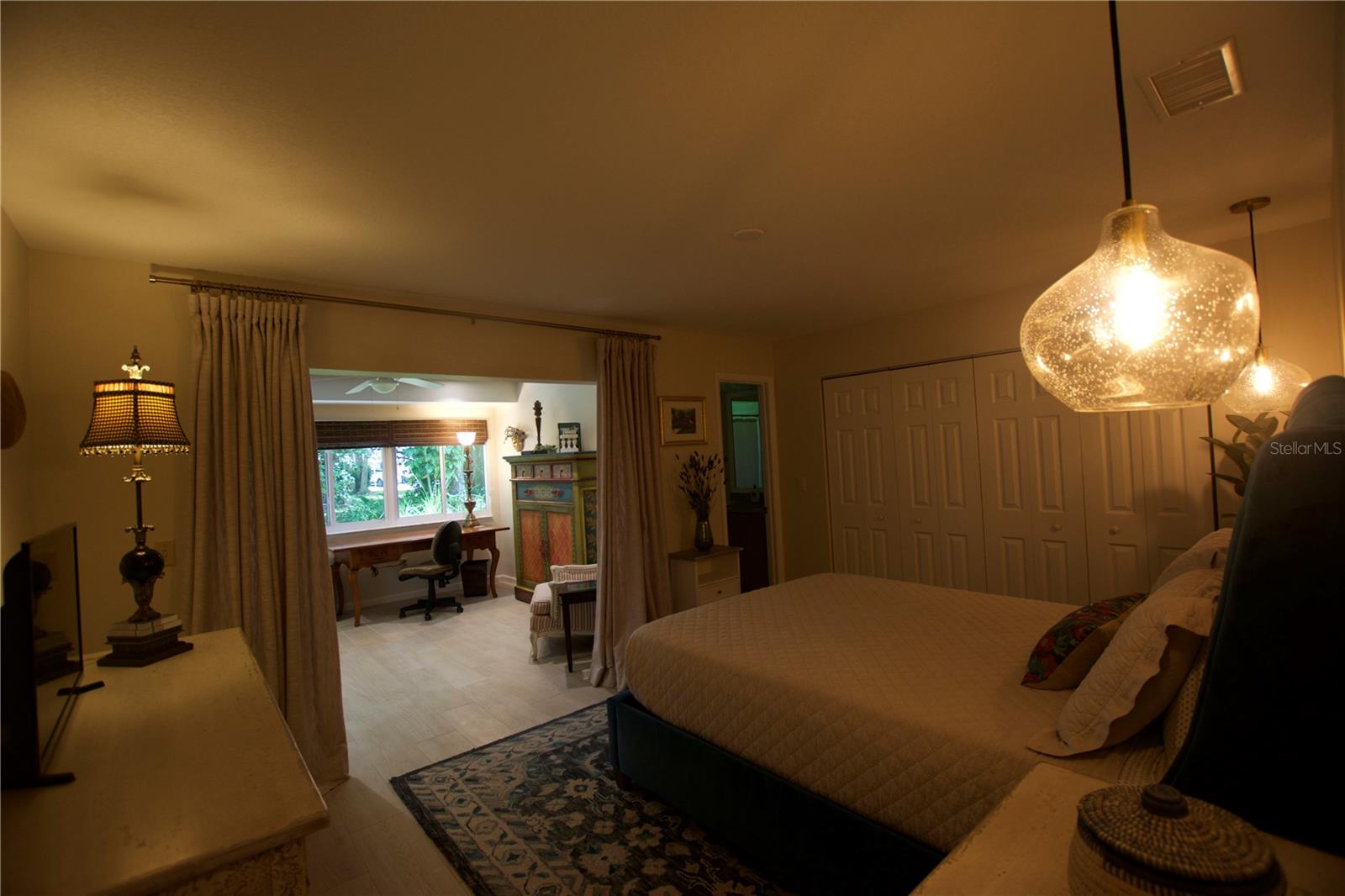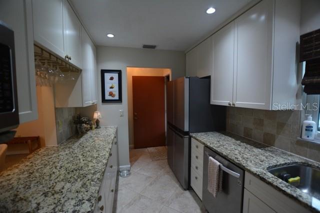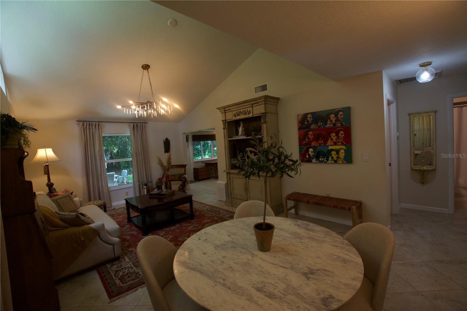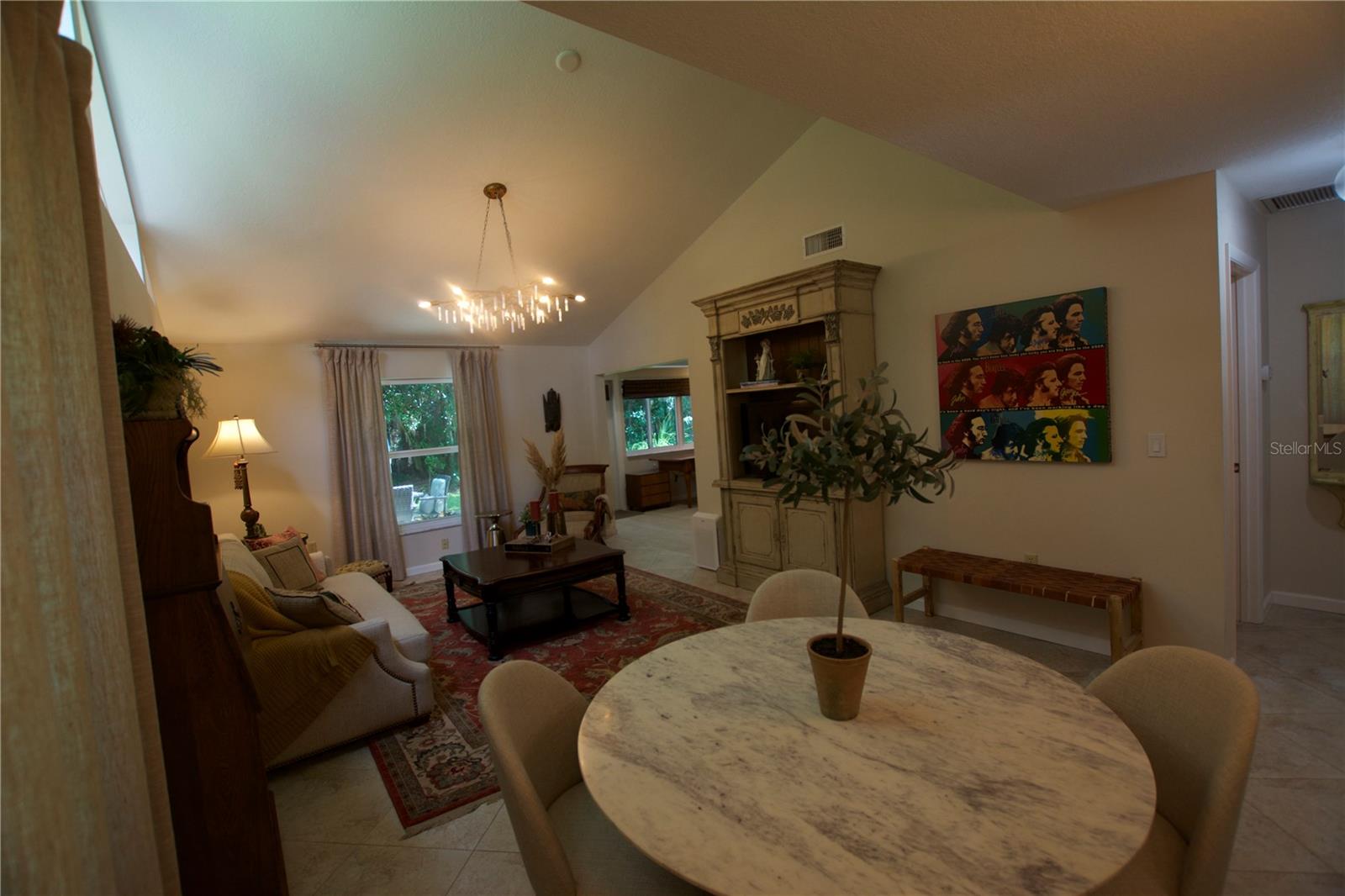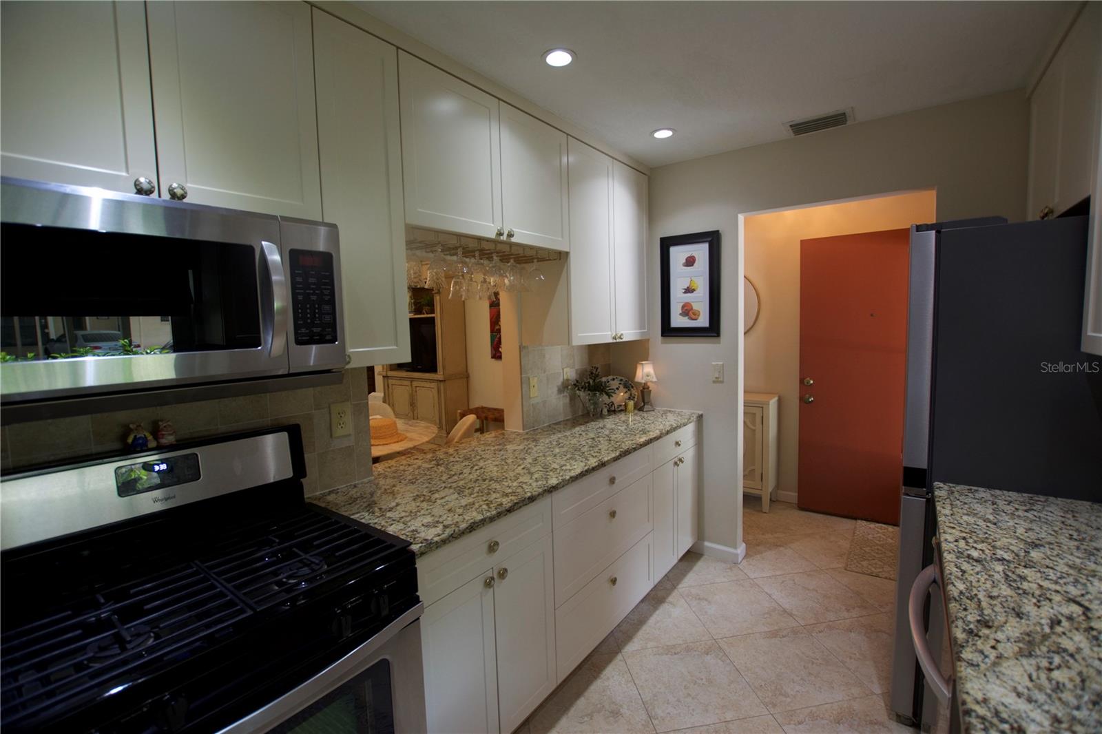 TROPICAL PARADISE IN UNBEATABLE LOCATION!!! NO STAIRS and ONLY 2 UNITS PER BUILDING -WINDOWS ON 3 SIDES give this no maintenance condo the feel of a single family home! Great location… 6 minute drive to Downtown, 10 minutes to St. Armands Circle and Lido Beach. 7 minutes to UTC Mall and 5 minutes to Publix. Walk to Water Tower Park and Ringling Museum. Light and bright 2 bedroom condo has upper Transom Windows in Vaulted Ceiling Living Room, large window (6’) in Office and is LIGHT, BRIGHT AND OPEN. Due to conversion of porch to living area unit shows much larger than actual footage. Updated with NEW porcelain tile throughout, white kitchen cabinets, stainless appliances, 1 1/2 years NEW counter depth refrigerator (that truly is counter depth!), gas range & oven, “extended” recirculating fan over stove, microwave & disposal. Pass thru bar to dining area with wine rack. NEW Living/Dining lighting, NEW draperies and custom Bali blinds in 2022. NEW Porcelain tile in 2 Bedrooms and Office in 2022. Refrigerator NEW in 2022. A/C NEW appx 6 years ago. NEW Gas Water Heater 2024. Porch converted to NEW living area appx 2018. NEW sound reduction double pane windows (excluding porch) in 2020. NEW Patio pavers installed across entire rear of home in 2016. NEW Dishwasher appx. 2019. NEW dimmers installed in Kitchen, Living room, Dining room and Main bedroom in 2022. NEW Pendant lighting in Main bedroom in 2022, NEW Light fixture in Living Room and NEW coordinating Wall Sconces in 2022. Community conveniently located close to airport but due to sound deafening windows you won’t know it! This condo feels like a house due to design with only 2 units per building and windows on 3 sides and it is like living in a house without the maintenance hassles! Community Clubhouse with BBQ Facilities, Pool with covered Lanai, Library and Kitchen in clubhouse, Tennis, Pickleball and Shuffleboard available. Neighborhood activities such as Happy Hour available to those who choose to participate. Conveniently located to everything and in move in condition…call today to view this exceptional property! TV in guest bedroom is included. Foyer mirror and draperies in guest bedroom do not convey (privacy blinds are included).