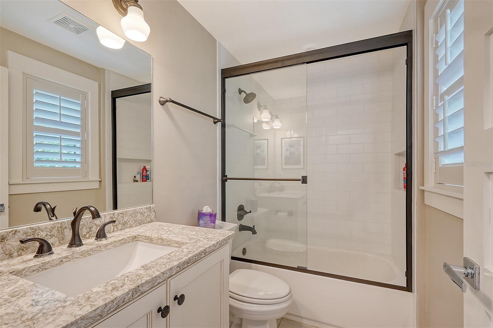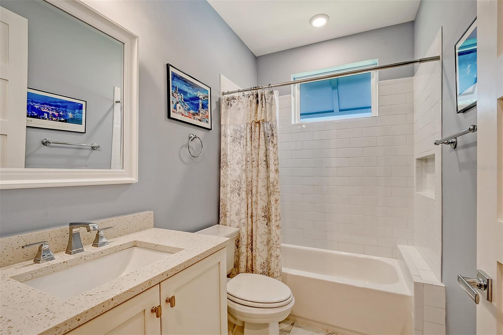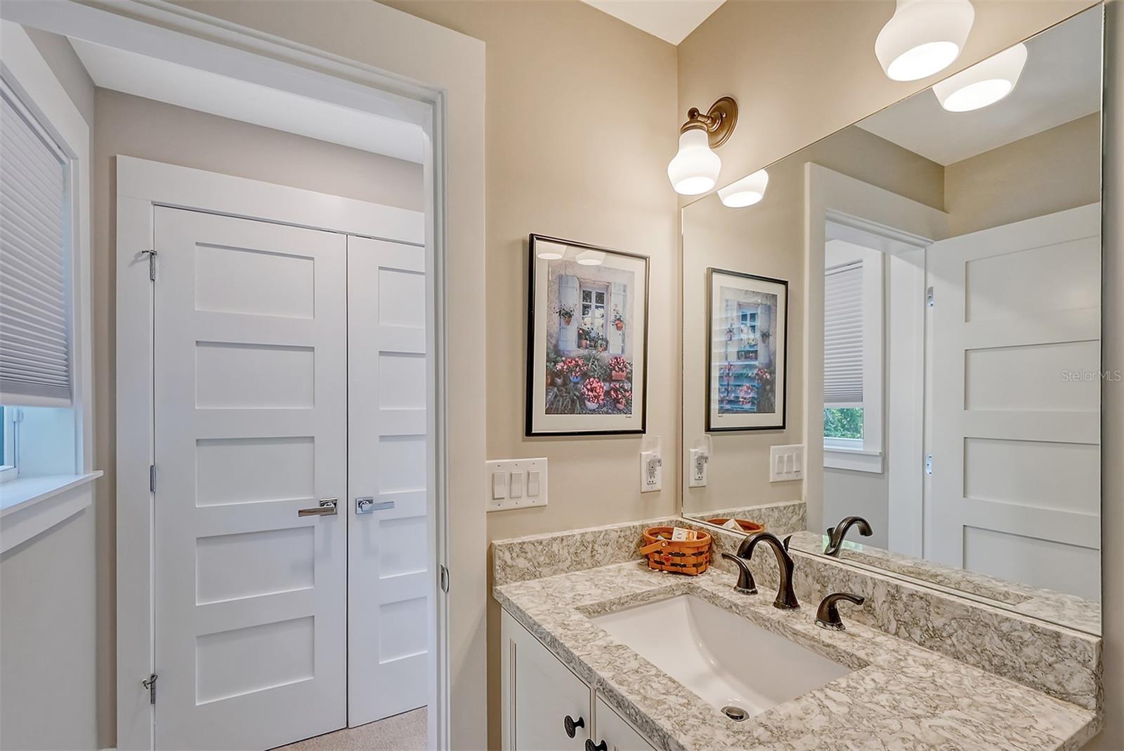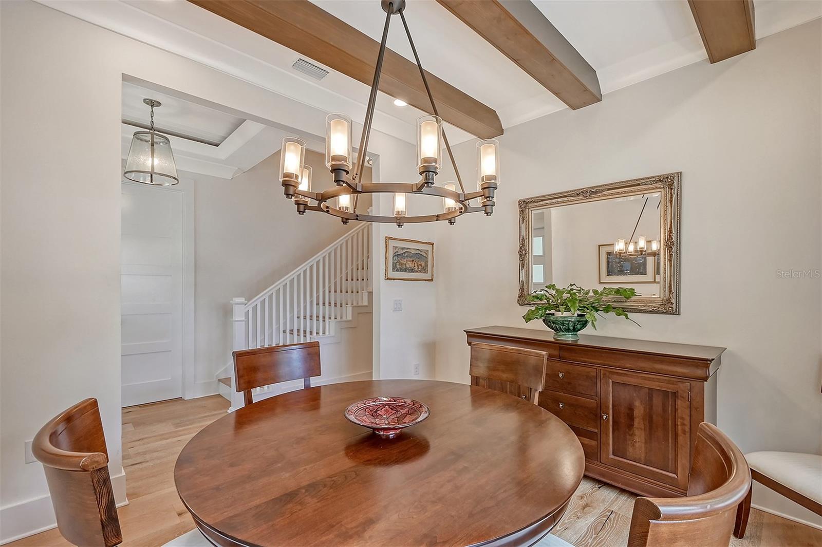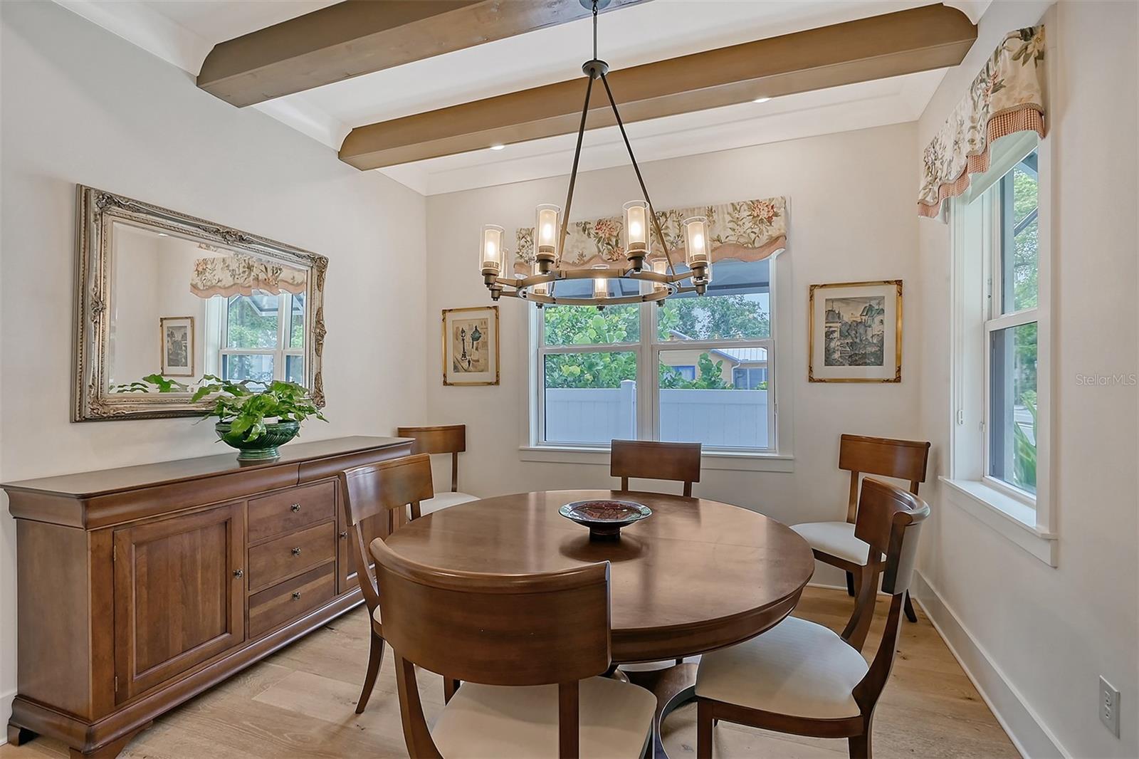 Welcome to Downtown Sarasota’s Historic Laurel Park. A hidden gem within the bustling city, offering a perfect blend of traditional design and coastal charm. This exceptional residence, built in 2018 presents an opportunity for urban living in a serene walkable neighborhood. Upon entering, one is greeted by wood flooring, plank ceilings, and enhanced baseboards and crown molding. Encompassing a flexible floorplan, the main house is complemented by a guest house above the two-car garage. At the heart of the home, the chef’s kitchen is adorned with top-of-the-line appliances including a 6-burner Thermador Professional gas range, Mid Continent Cabinetry and quartz waterfall countertops. The kitchen seamlessly flows into the great room featuring a wood plank vaulted ceiling and sliding glass doors leading out to the covered lanai, offering a perfect blend of indoor/outdoor living. The first-floor primary suite is a haven boasting a tray ceiling with wood plank, French doors to the lanai, two walk-in custom California closets, and a spa-inspired bathroom with a large dual vanity, walk-in shower and freestanding soaking tub. Upstairs, a central loft serves as the perfect bonus room or media room, while two additional large bedrooms and two full bathrooms provide ample space. The studio apartment above the garage serves as the fourth bedroom, complete with a full bathroom and a private entry, making it the ideal space for guests, an art studio, or home office. The outdoor oasis is a refreshing retreat featuring a natural tone travertine deck that leads to a heated pool with waterfall feature. An outdoor kitchen, nestled under a wood pergola, is fully equipped with a built-in grill, beverage refrigerator, and sink. The covered lanai, equipped with electronic retractable screens, seamlessly integrates indoor and outdoor living. Fully fenced outdoor entertaining area, along with an electric gate on the driveway, ensures privacy and security. Additional: high impact windows and doors, window treatments throughout, smart home devices, reverse osmosis water filtration system, wired ethernet throughout, new pool pump (May 2023), new pool heater (March 2022), and new mini-split a/c unit in guest house above garage (Dec 2023). Historic Laurel Park is a walkable neighborhood, offering easy access to grocery stores, Bayfront Park, Downtown Farmers Market, shopping, dining, and cultural entertainment. This downtown oasis presents an unparalleled opportunity to embrace a vibrant urban lifestyle within a serene and picturesque community.